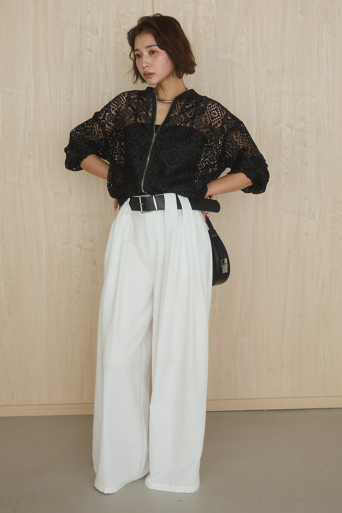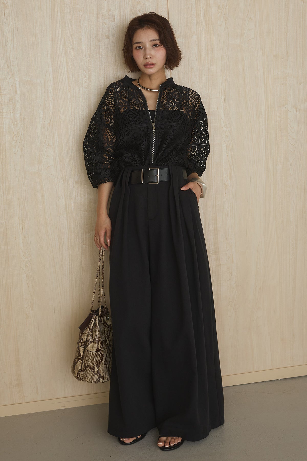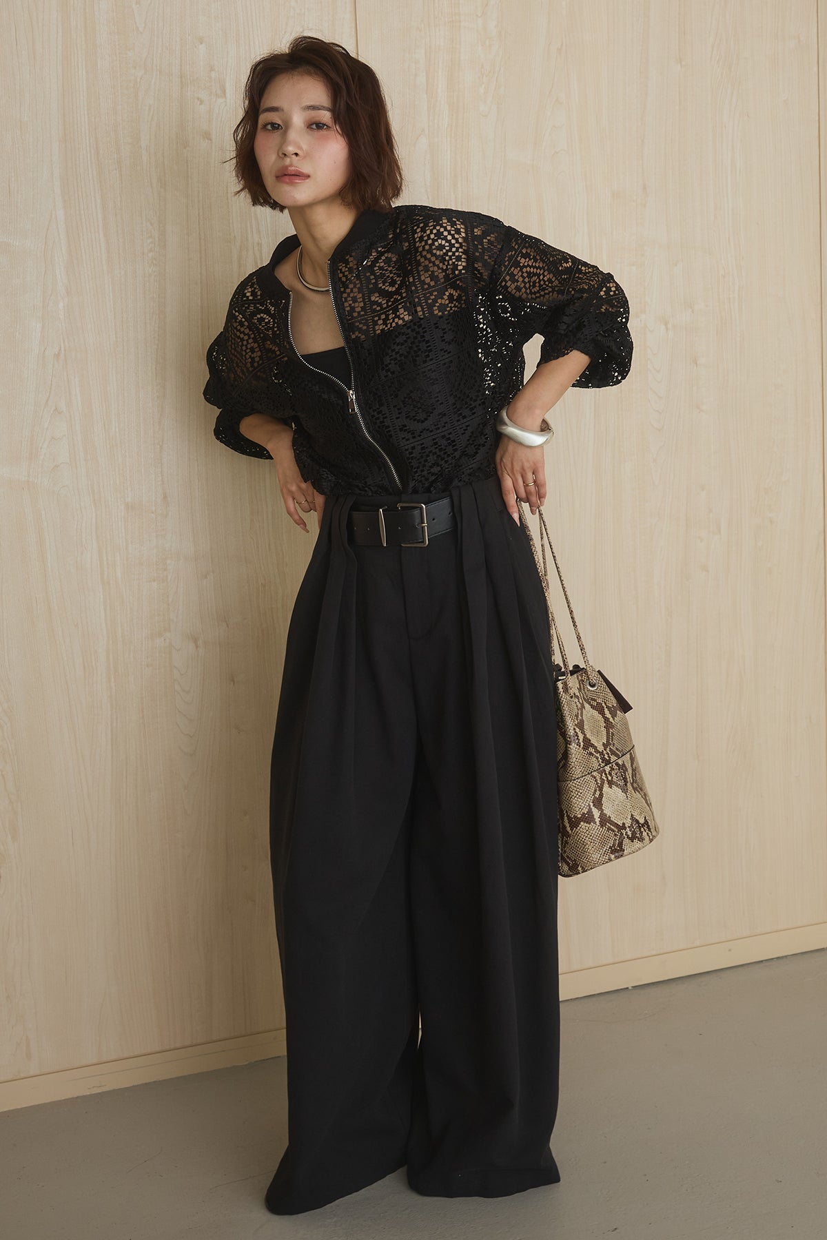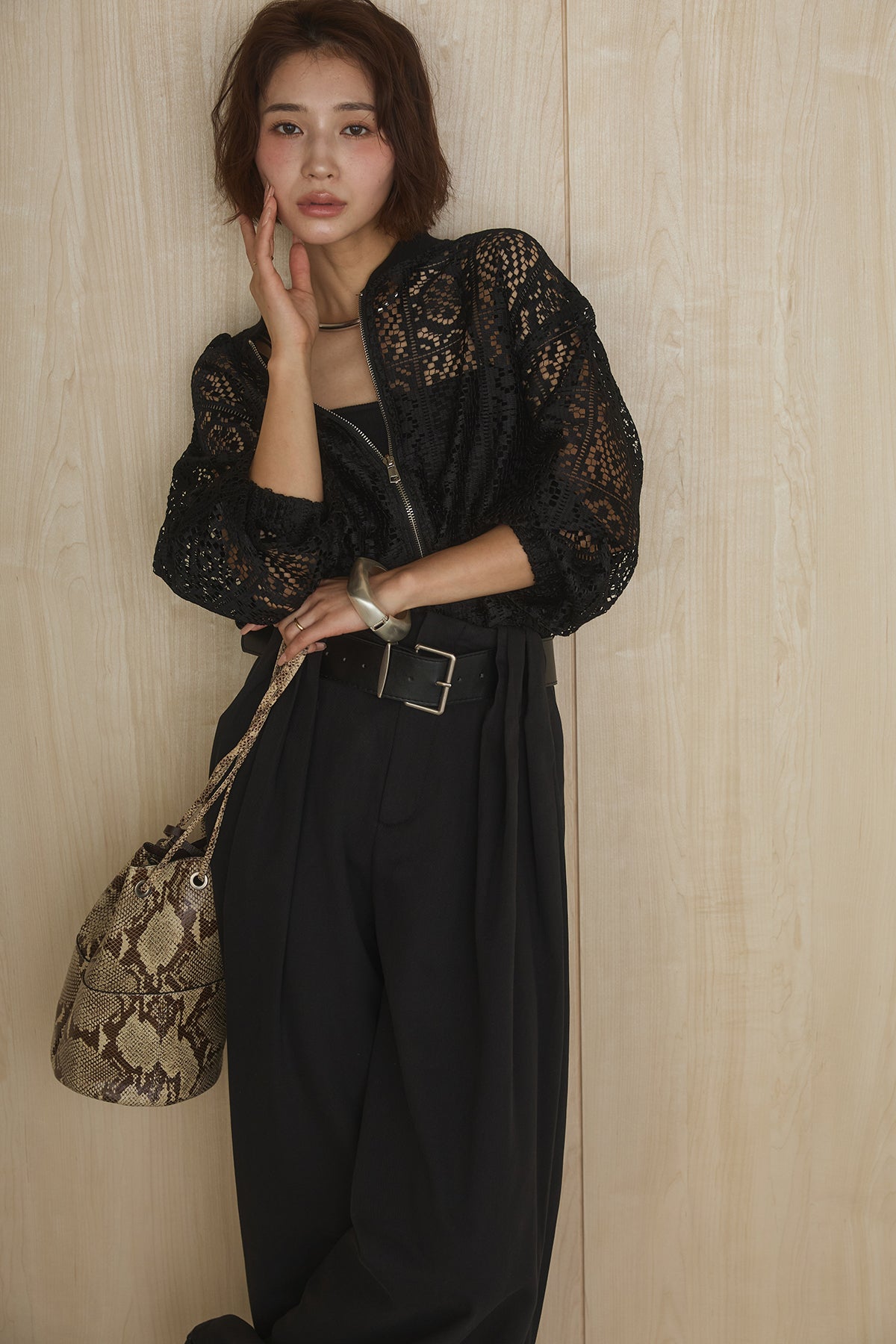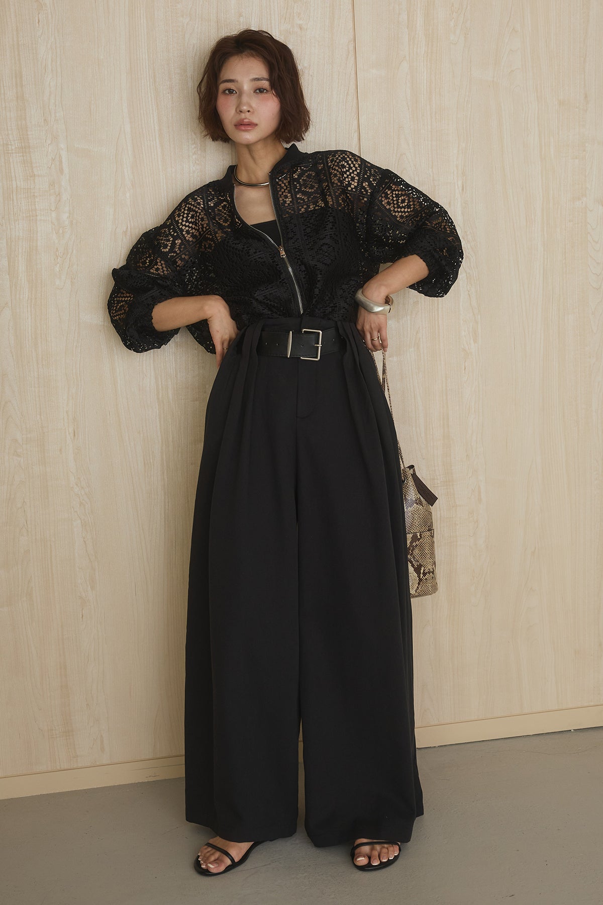 [SET]幾何レースブルゾン+ベルト付きビックループワイドパンツ(2set)