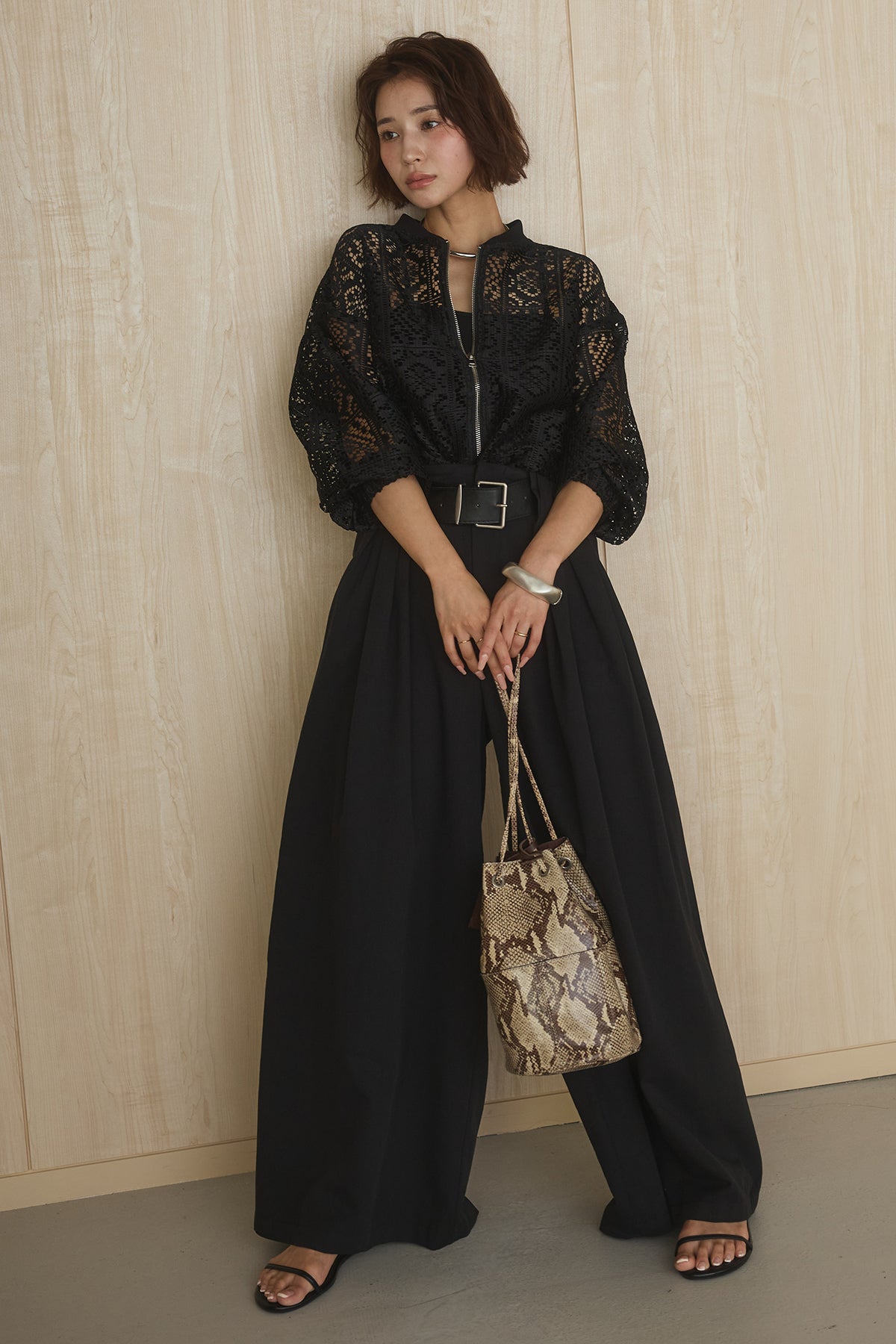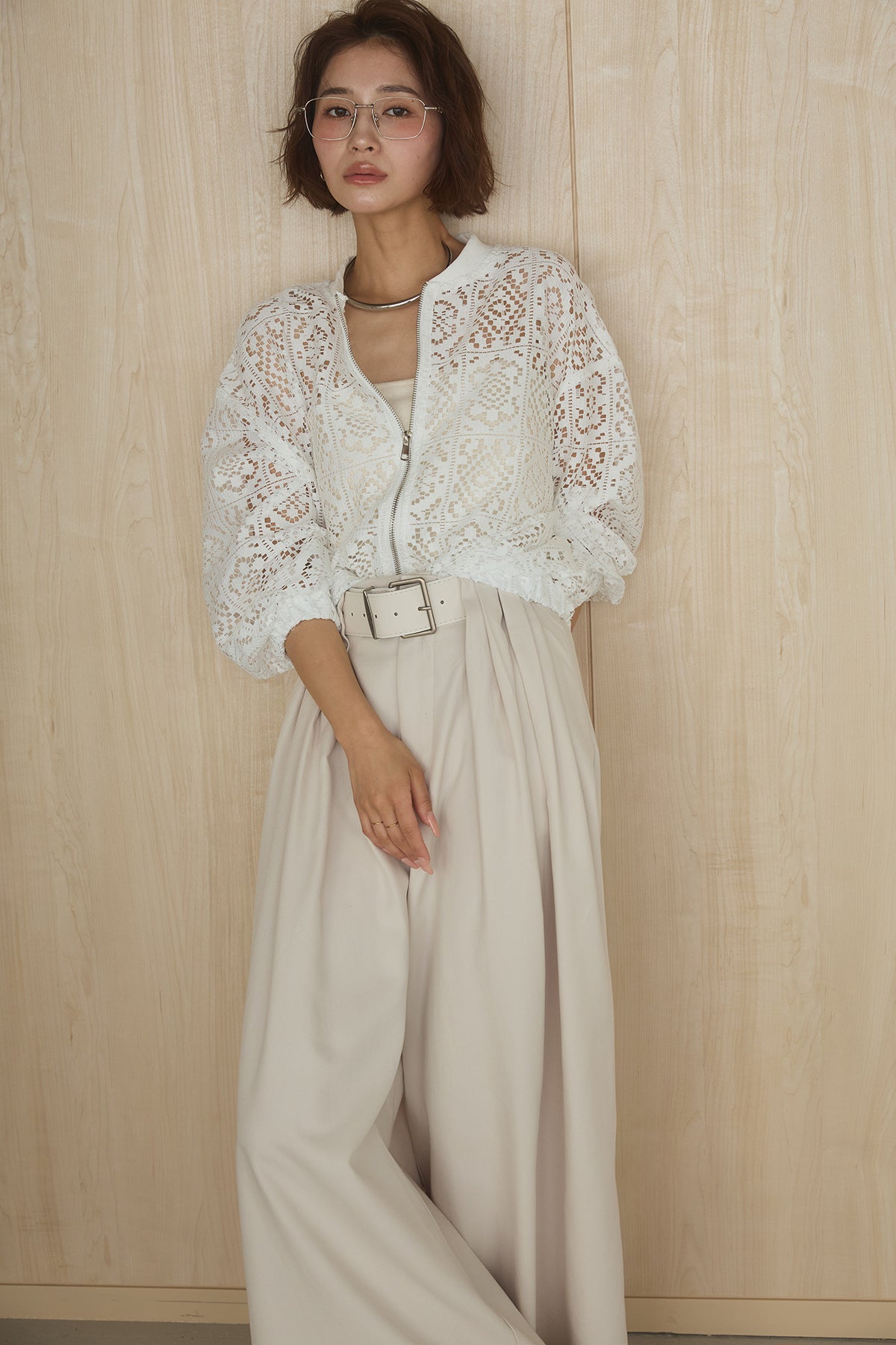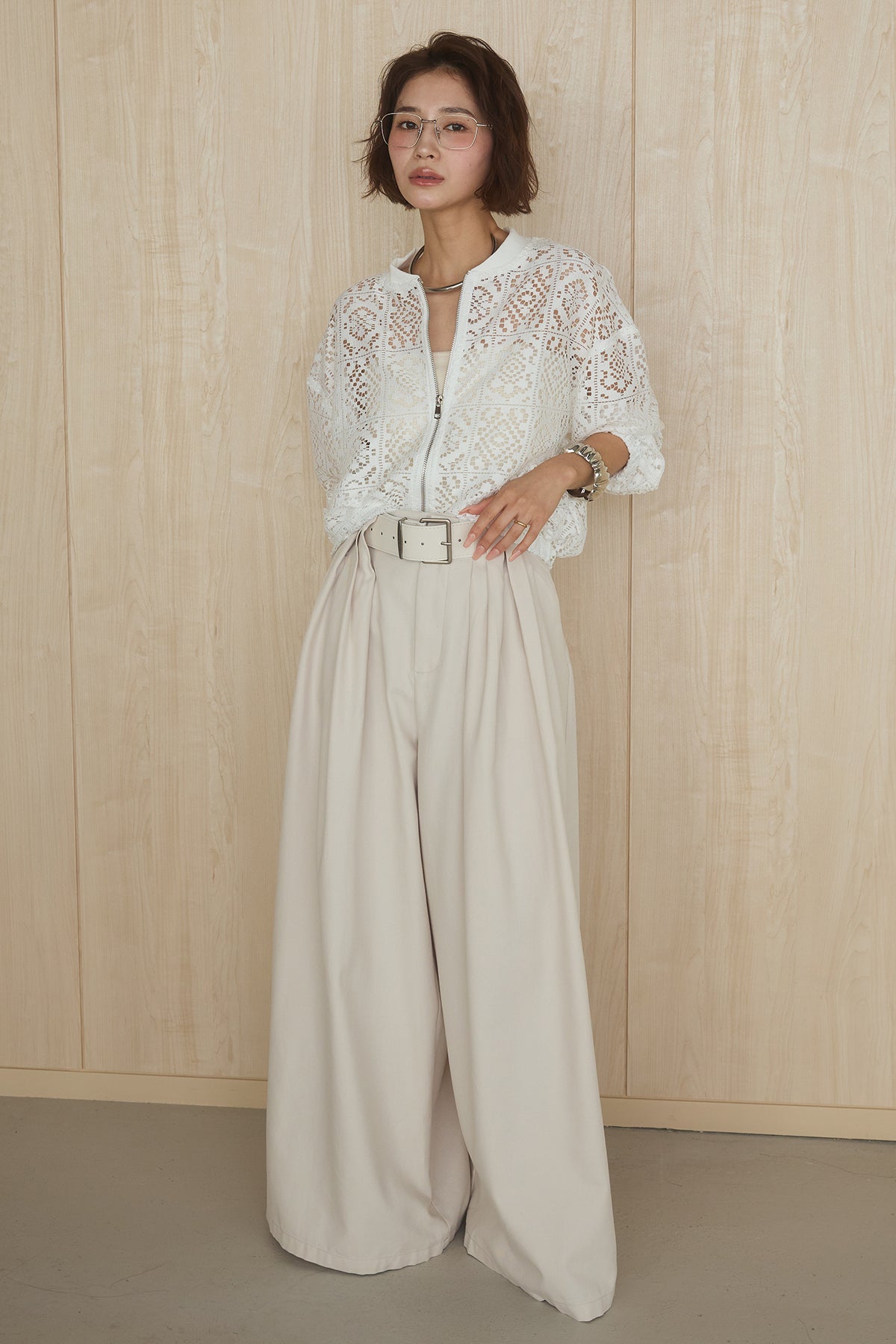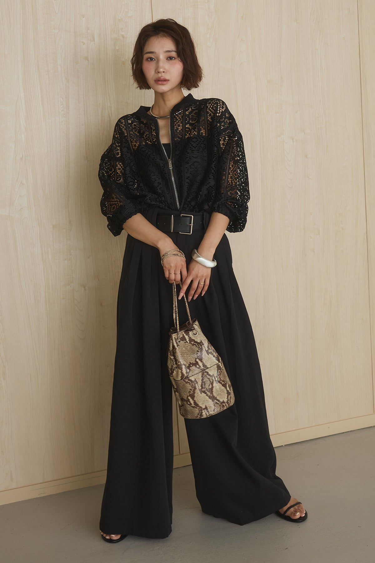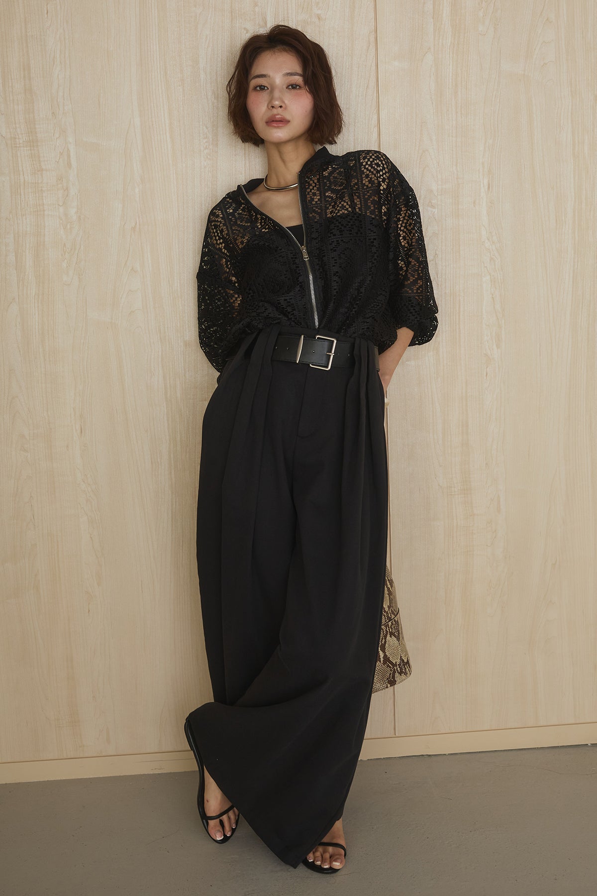 [SET]幾何レースブルゾン+ベルト付きビックループワイドパンツ(2set)