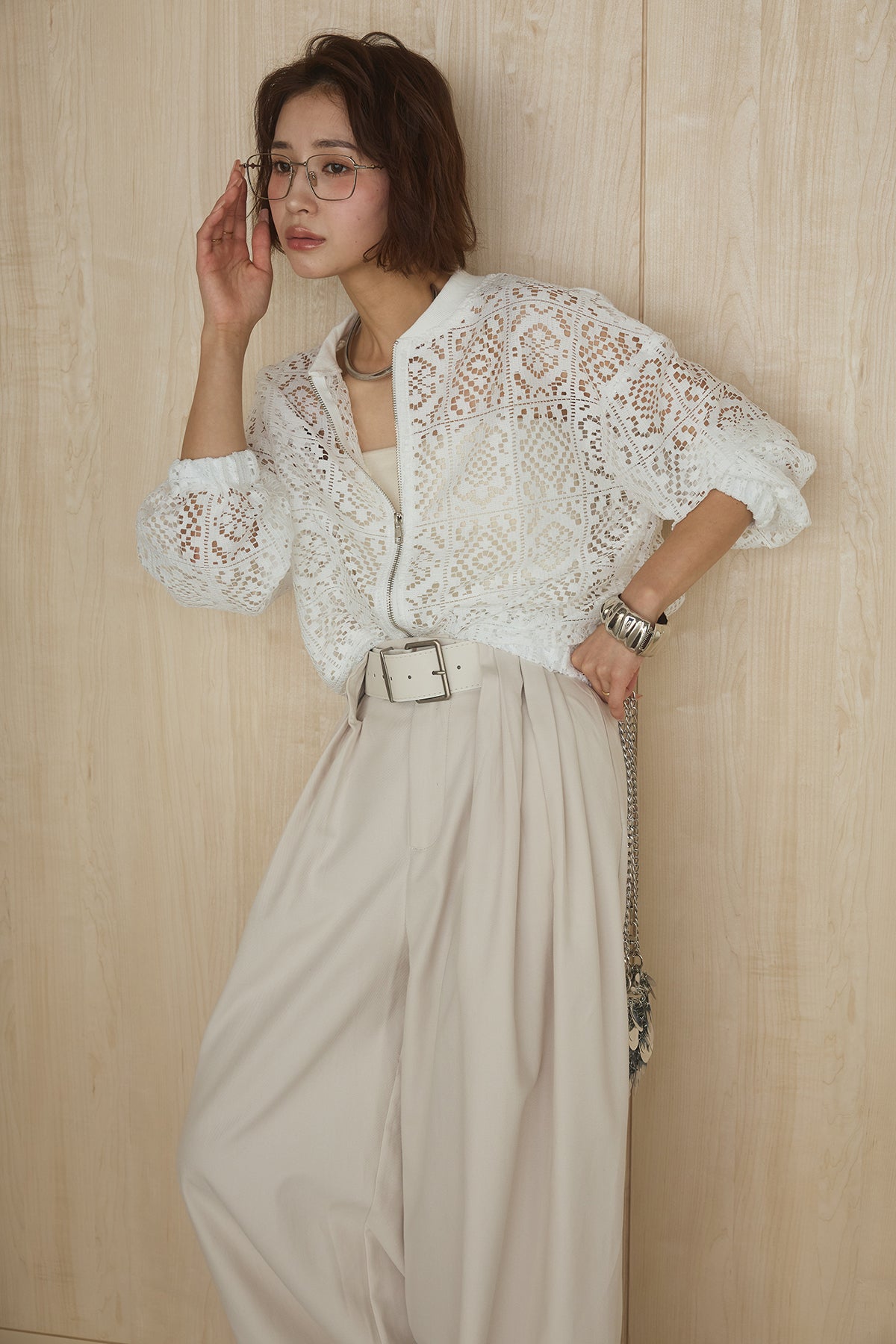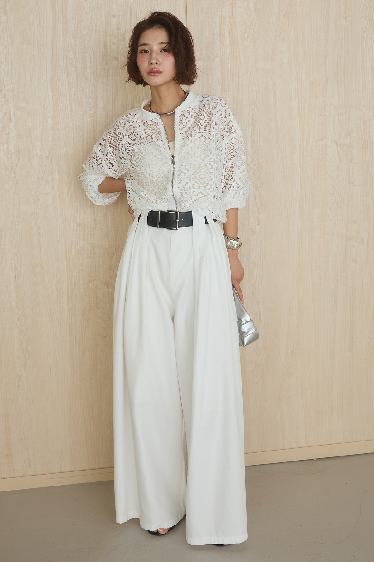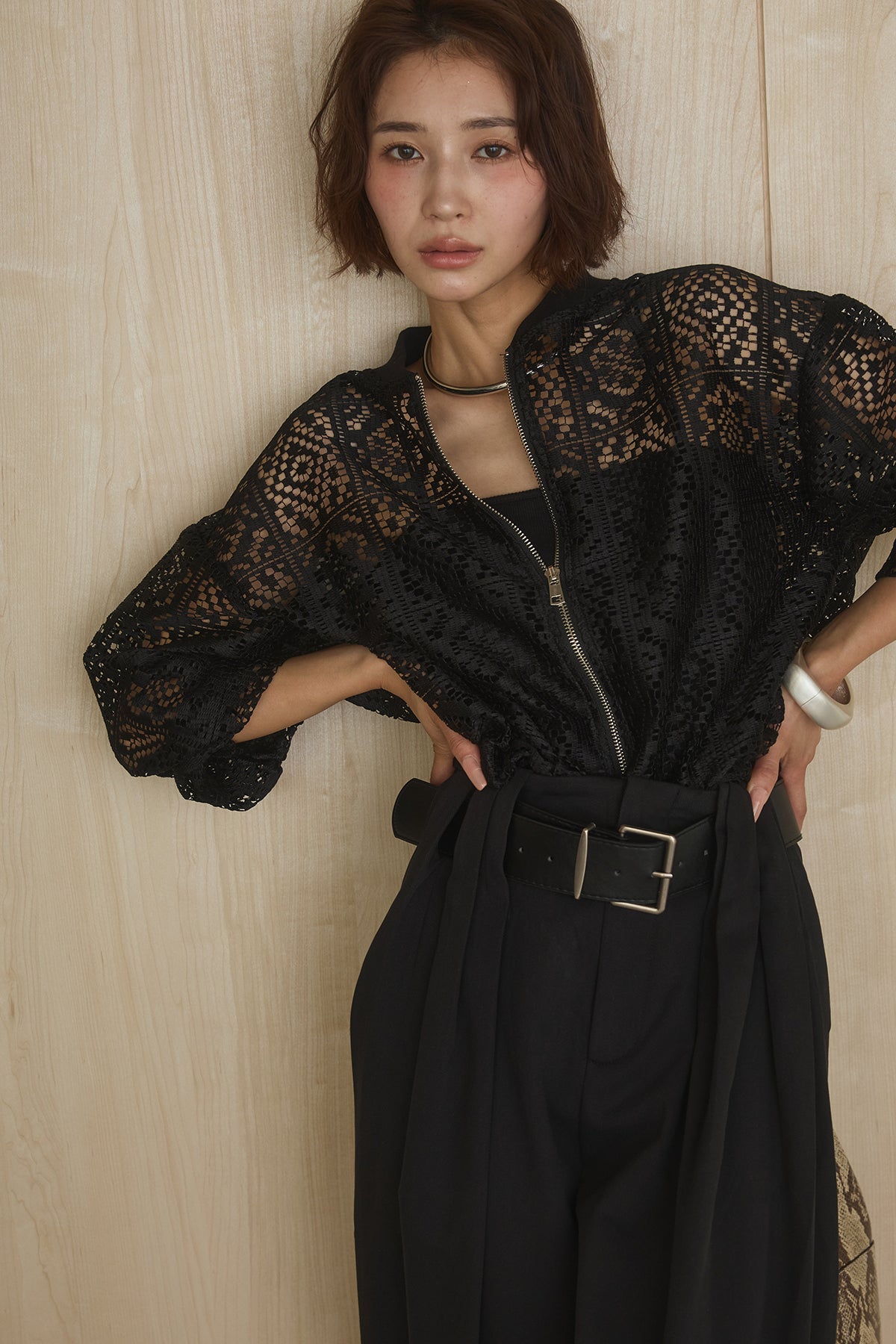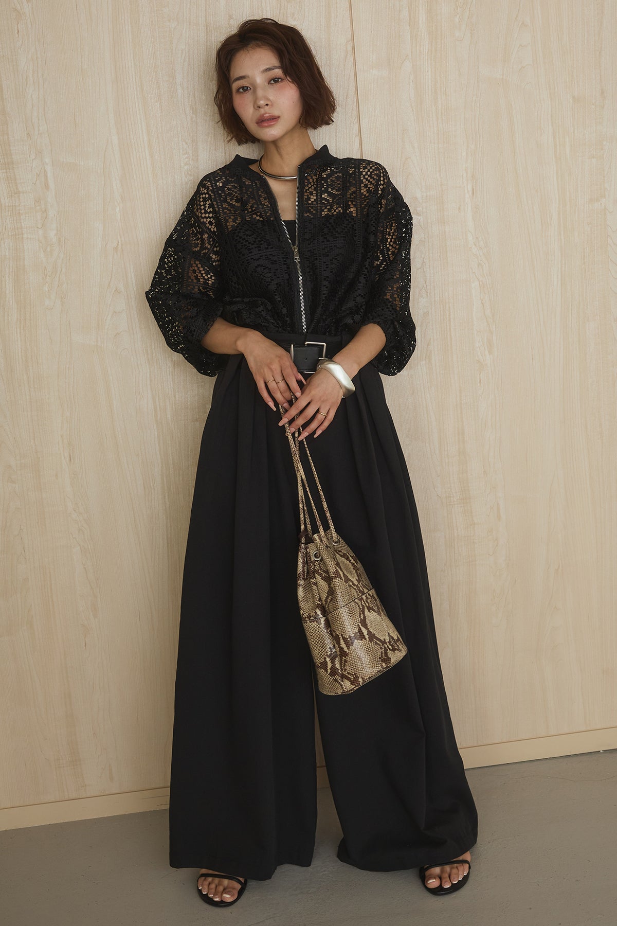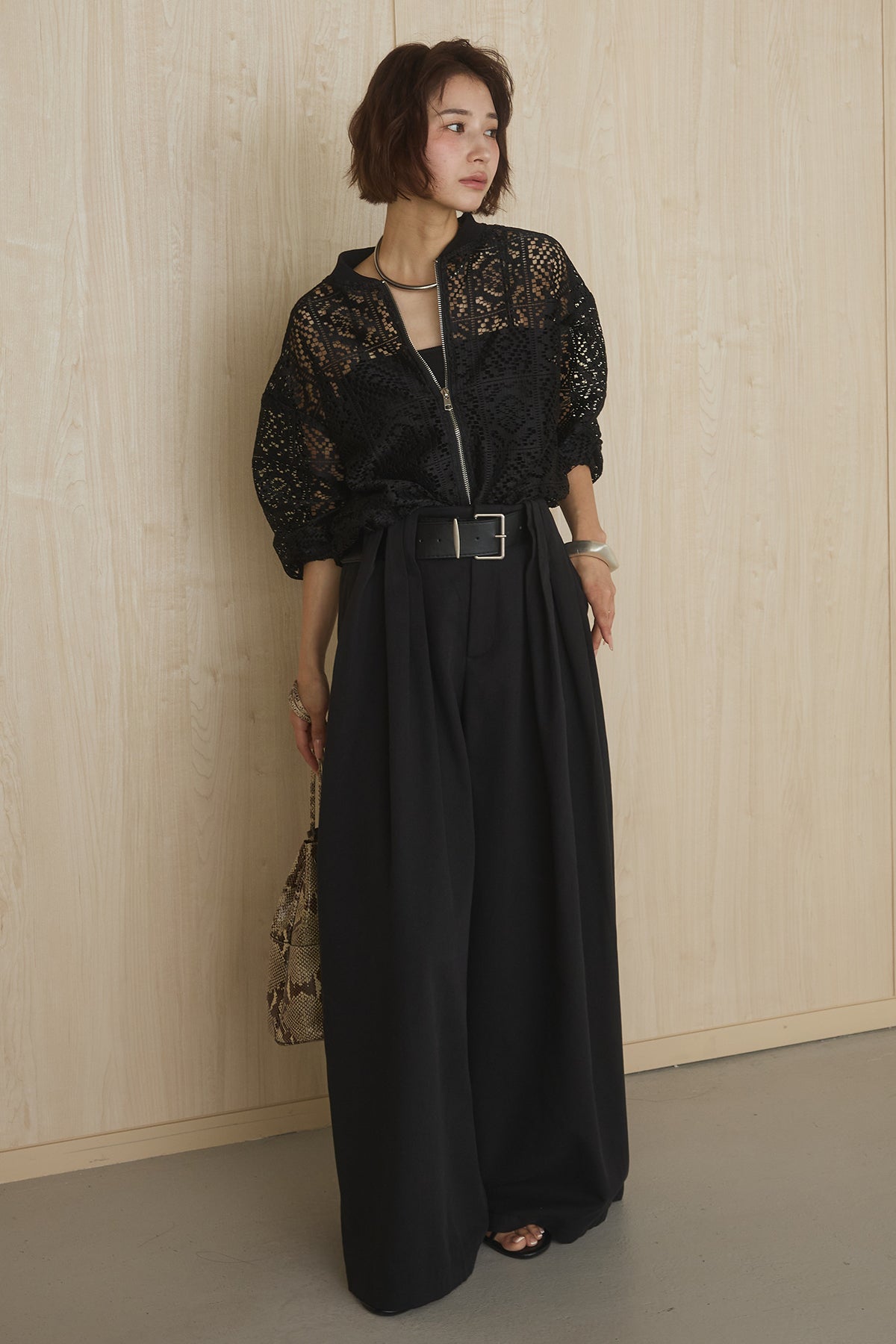 [SET]幾何レースブルゾン+ベルト付きビックループワイドパンツ(2set)