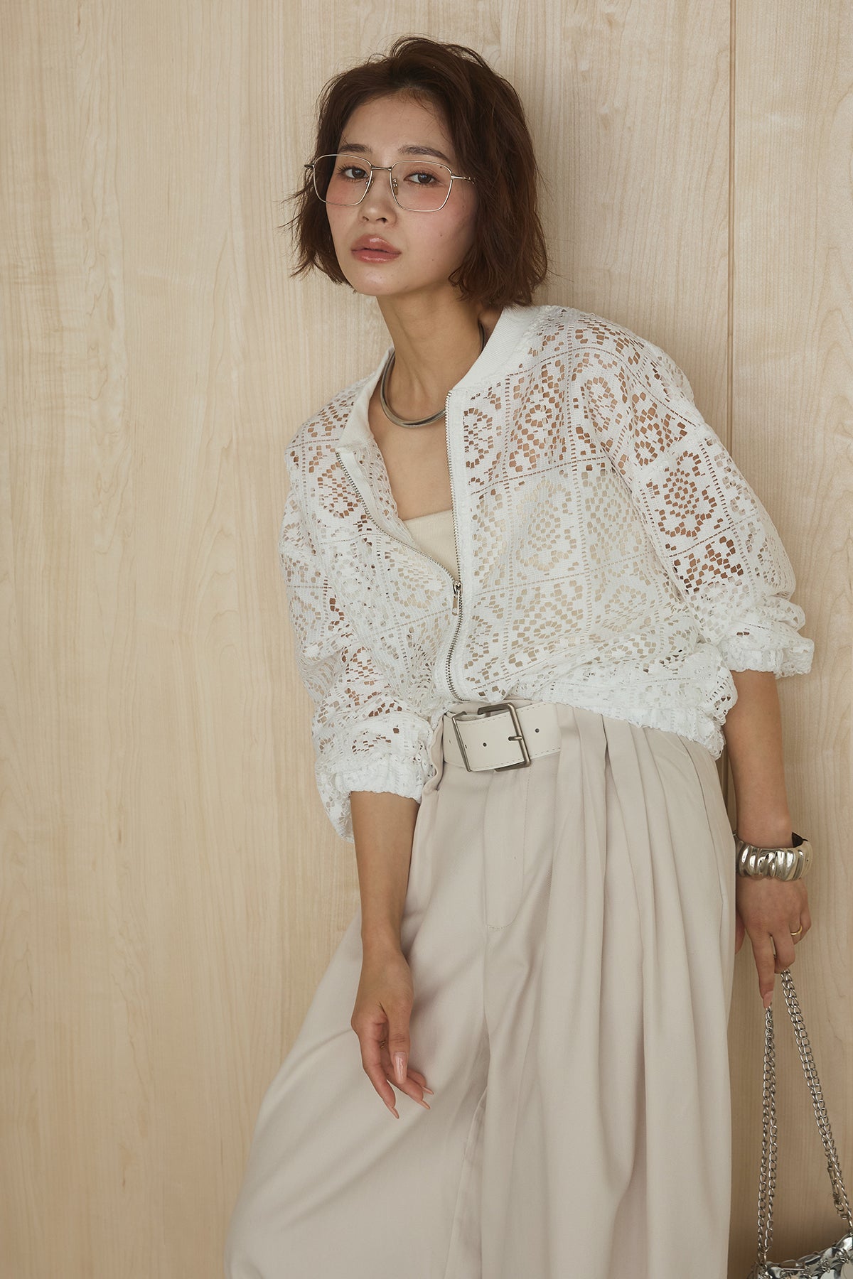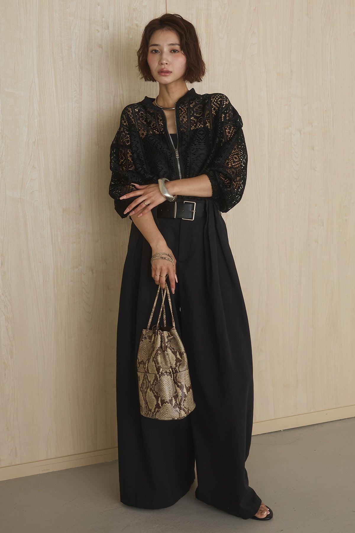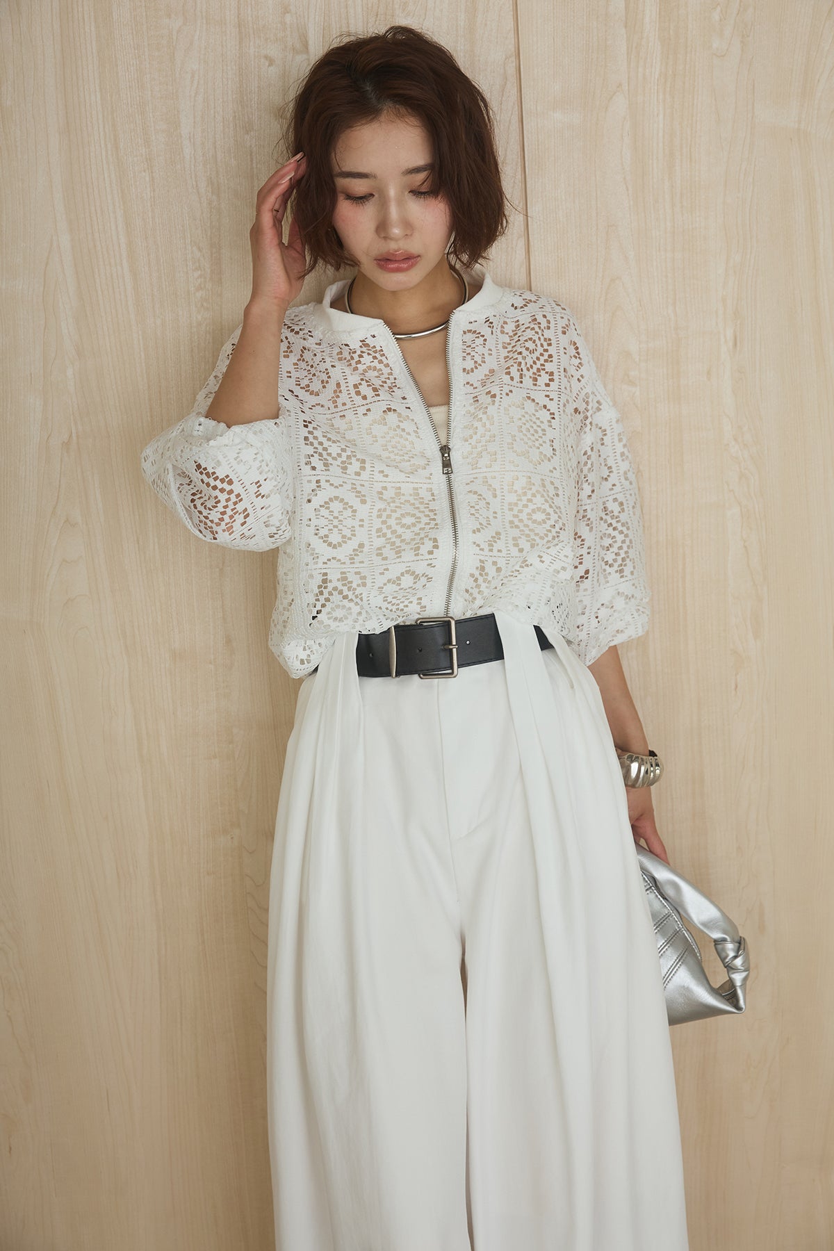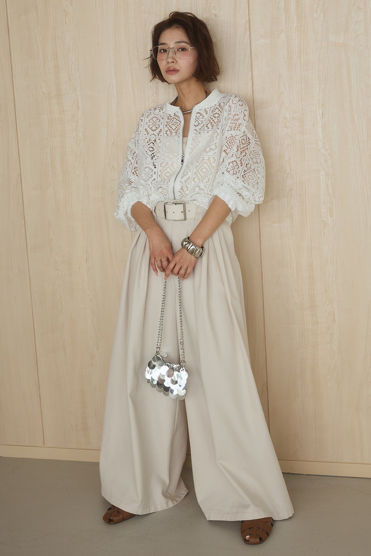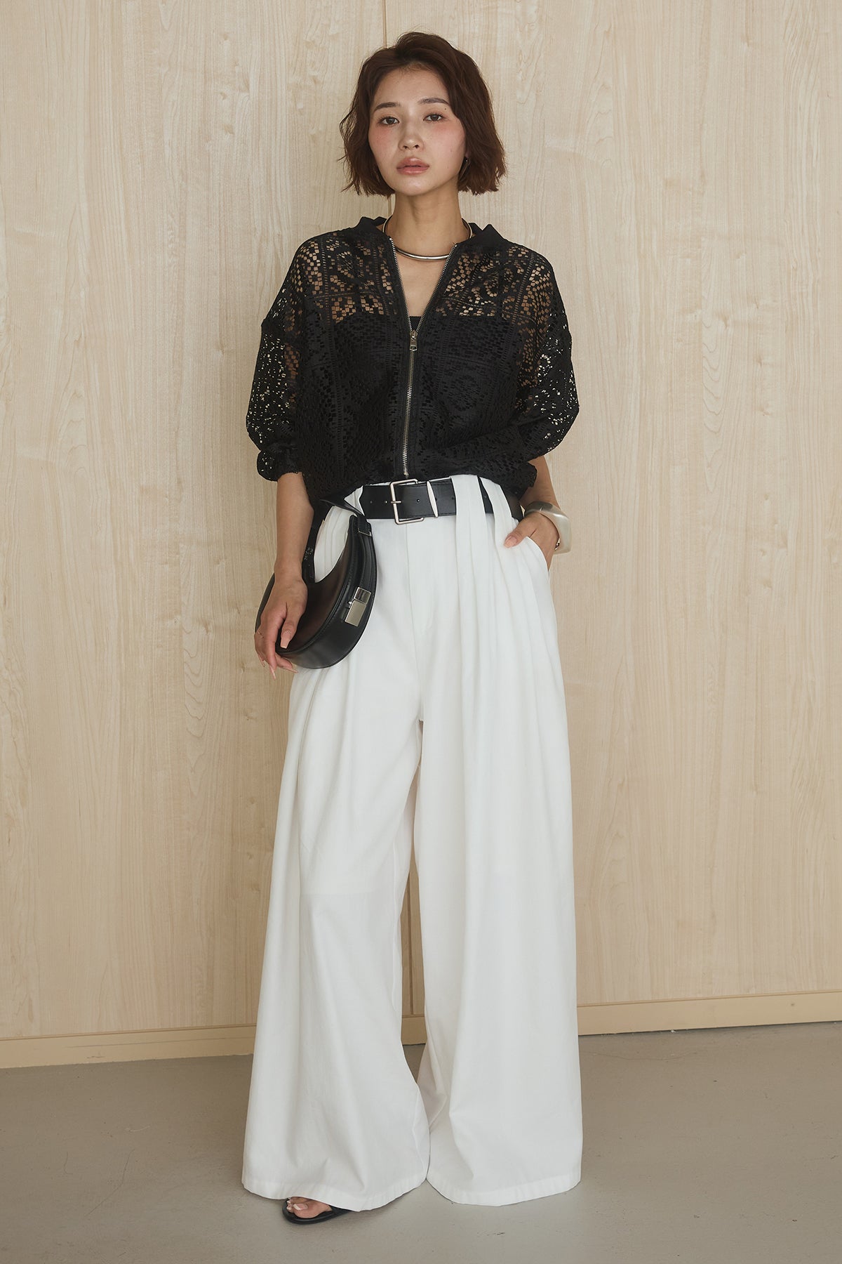 [SET]幾何レースブルゾン+ベルト付きビックループワイドパンツ(2set)