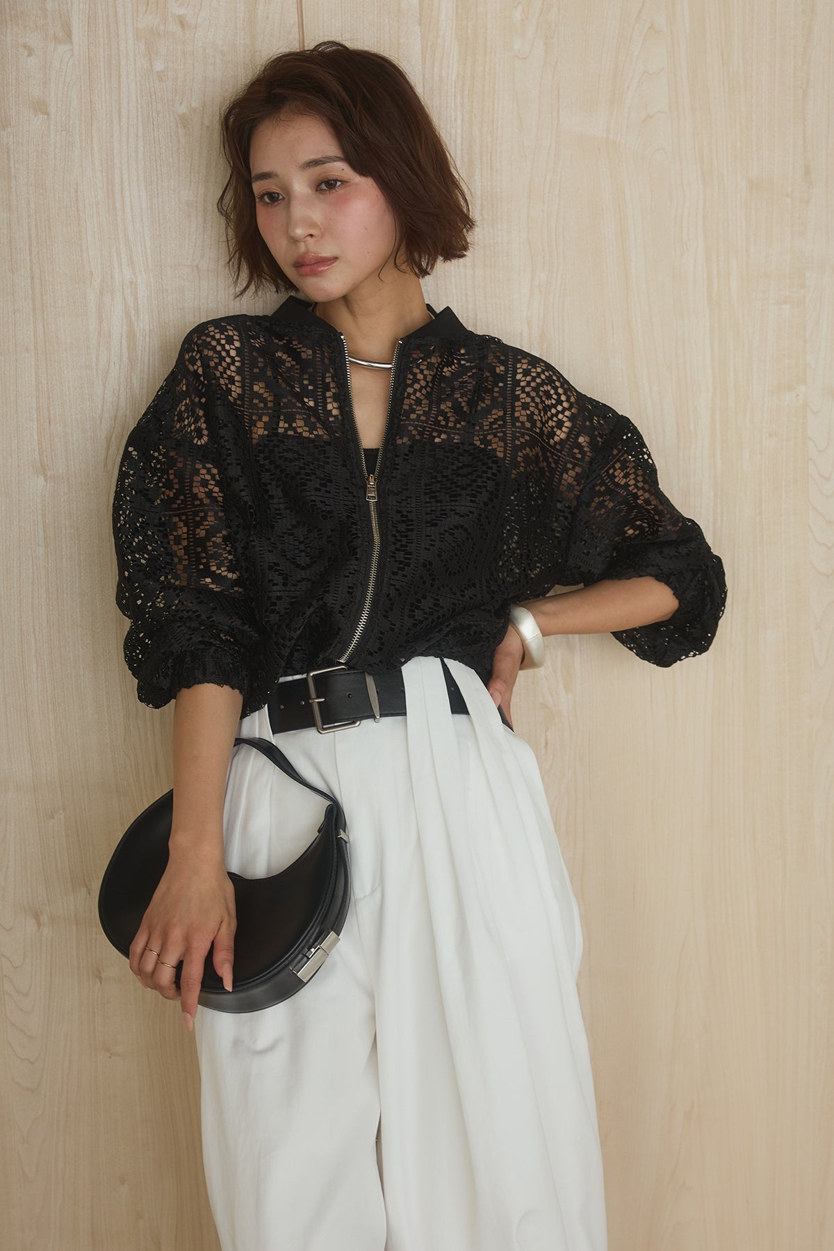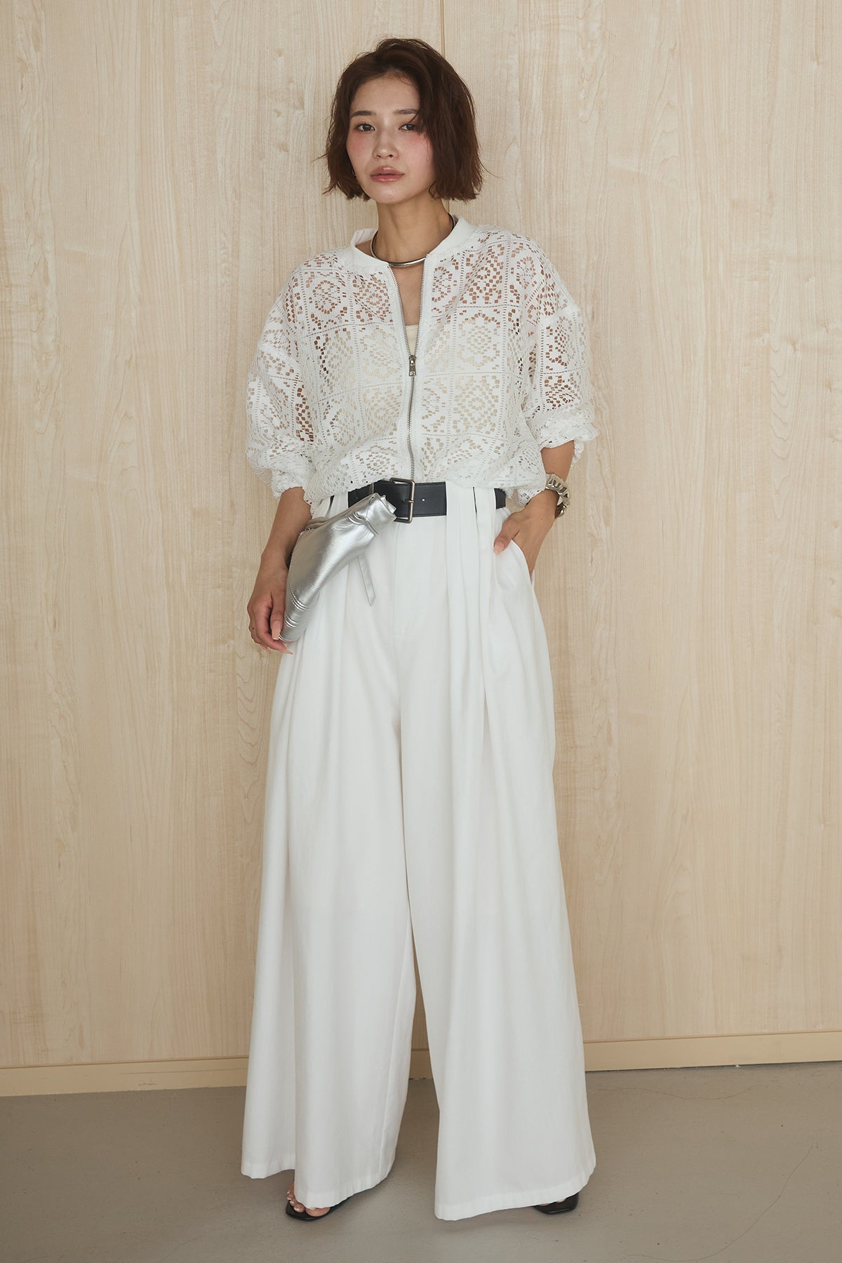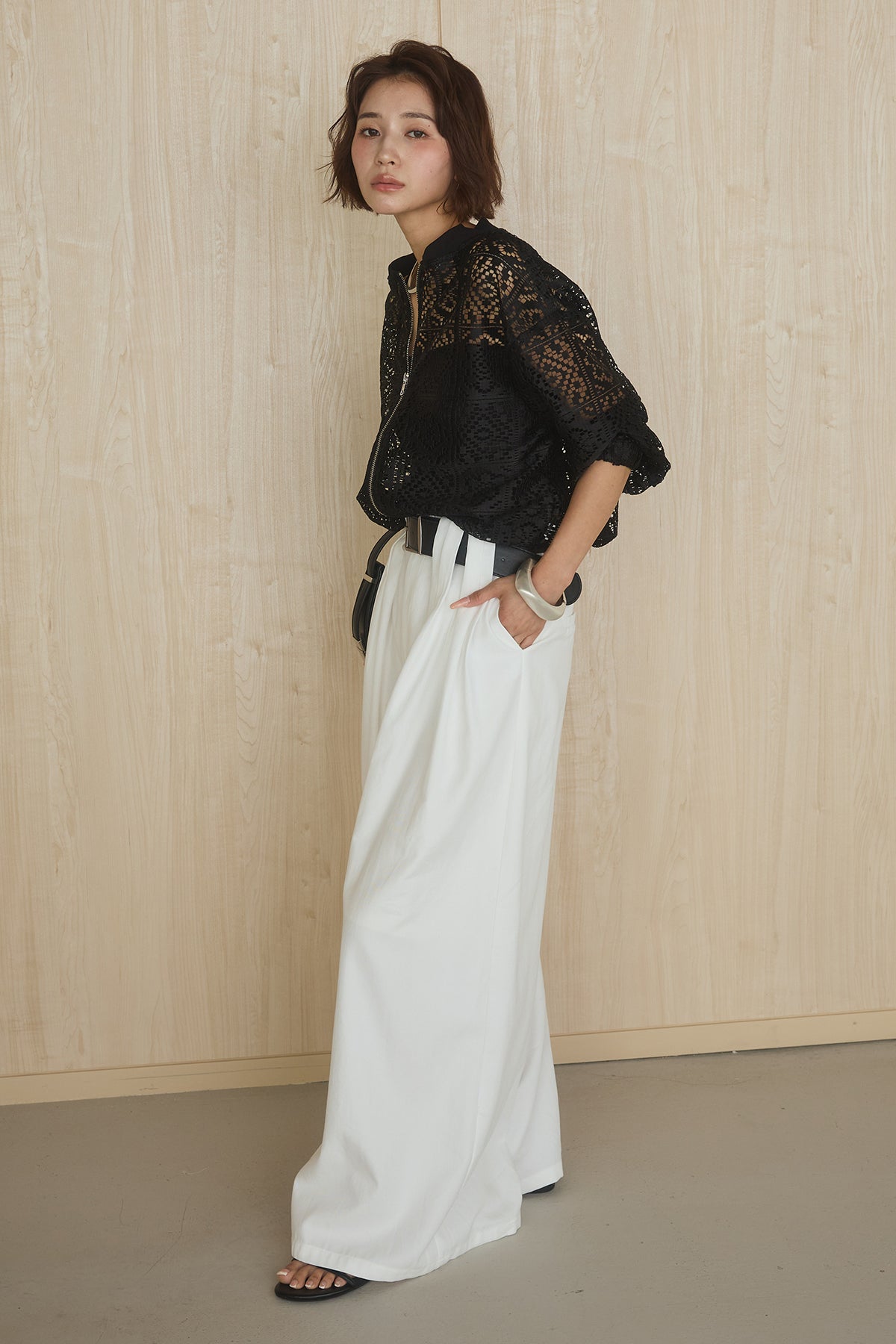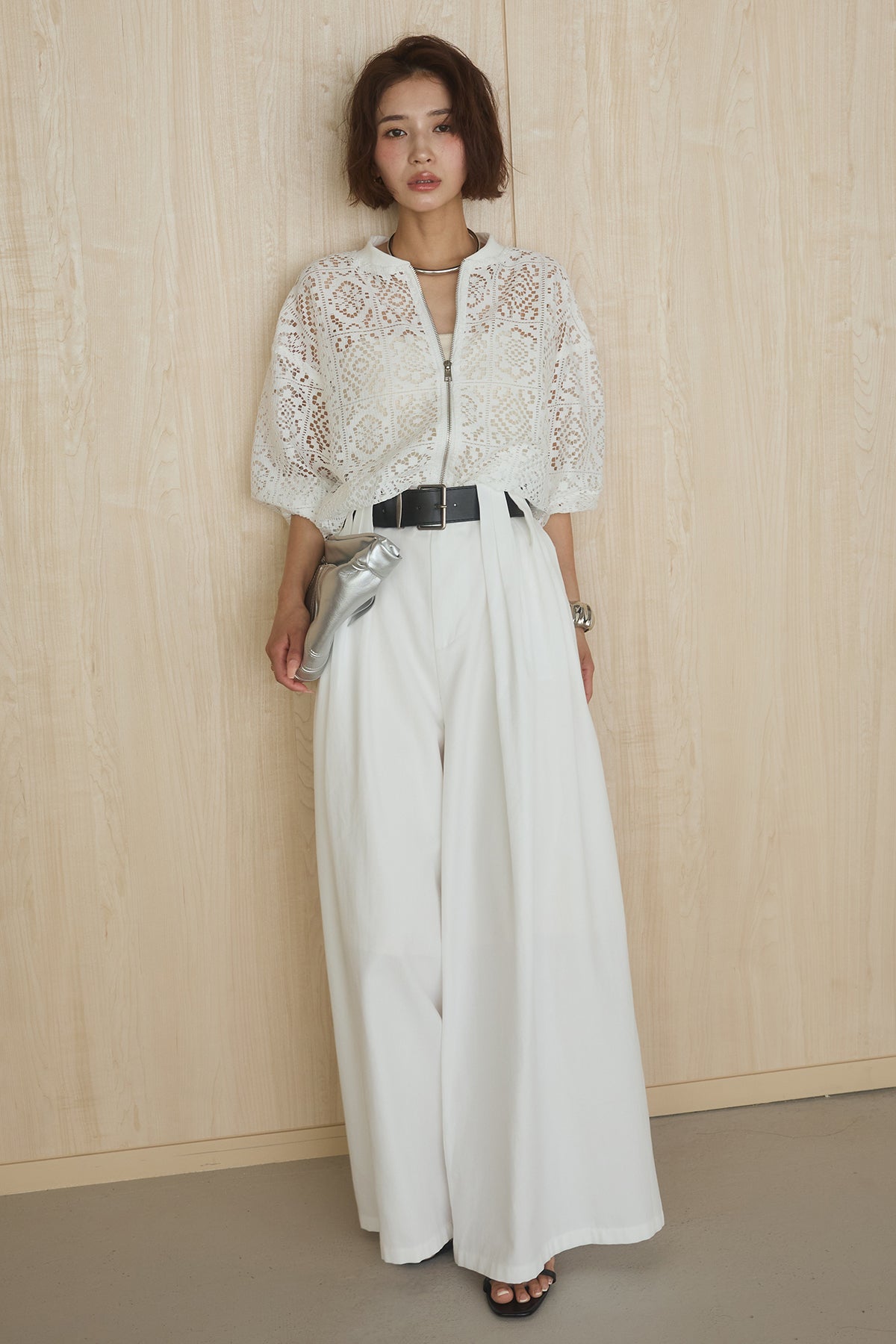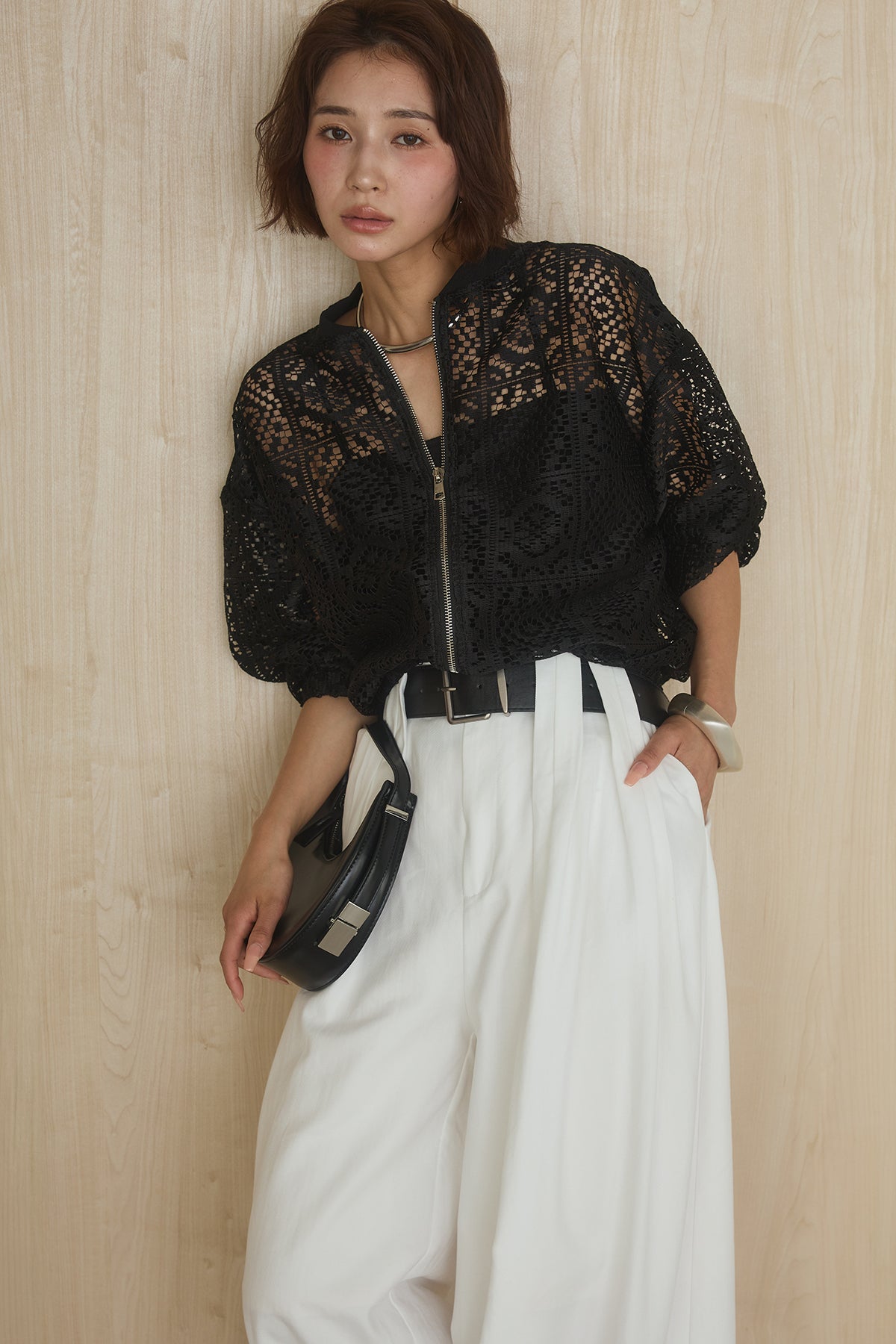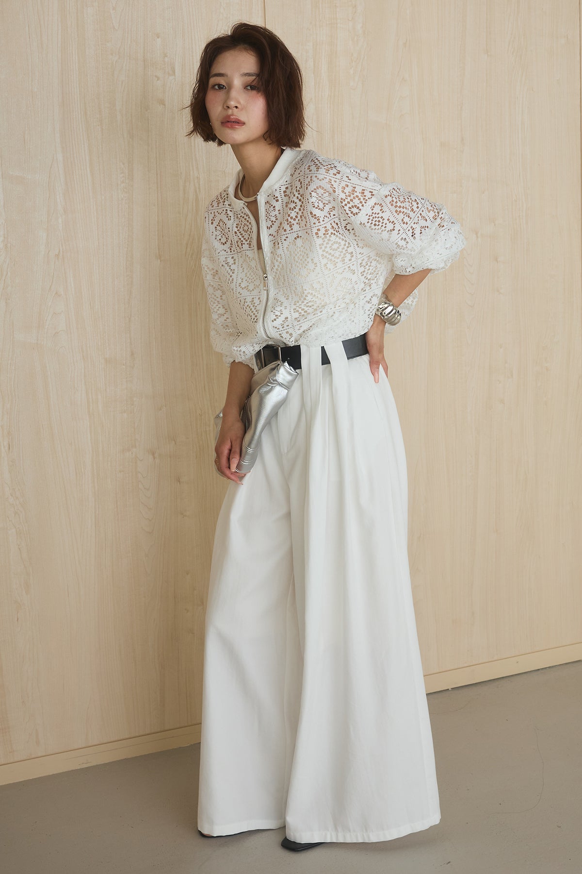 [SET]幾何レースブルゾン+ベルト付きビックループワイドパンツ(2set)