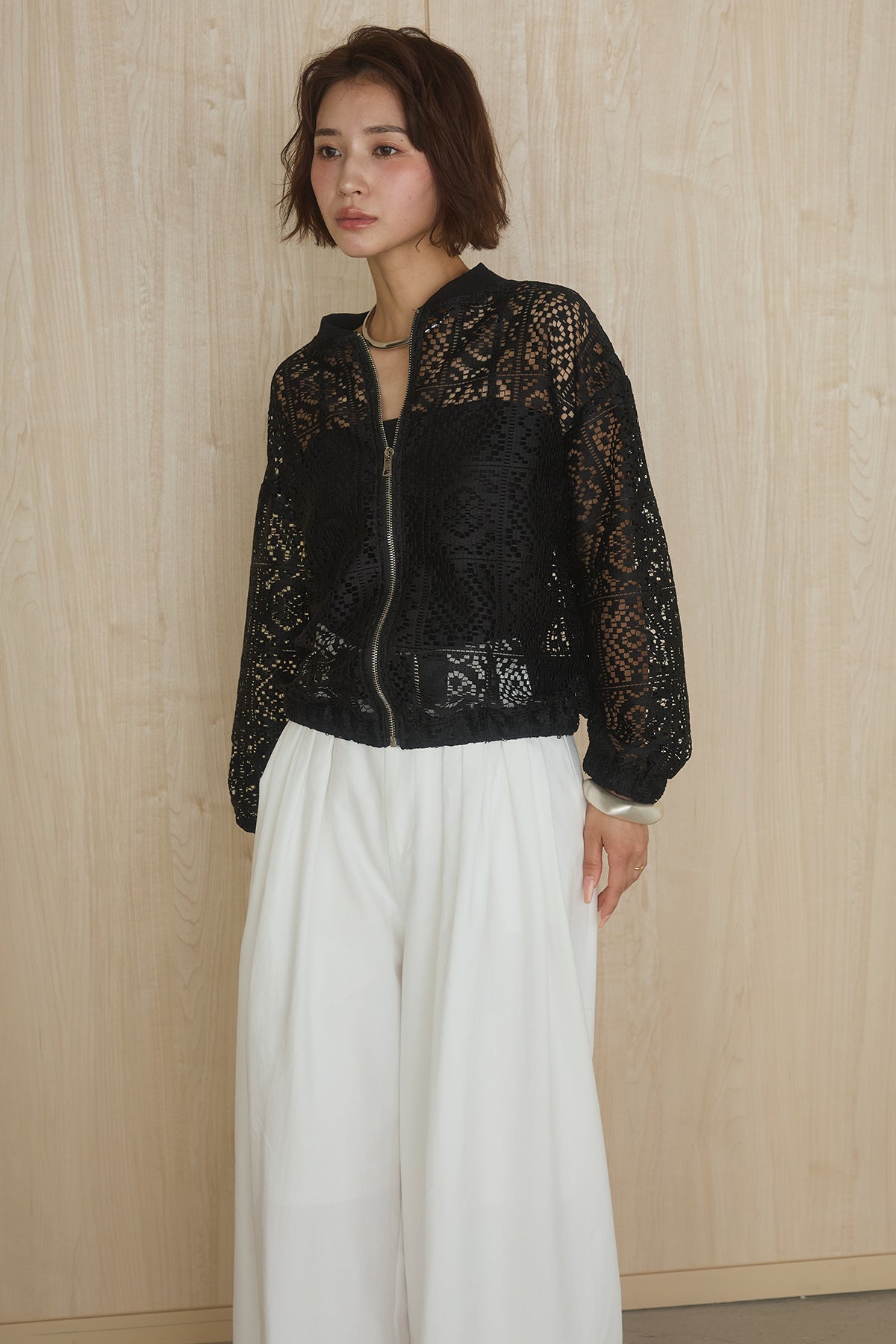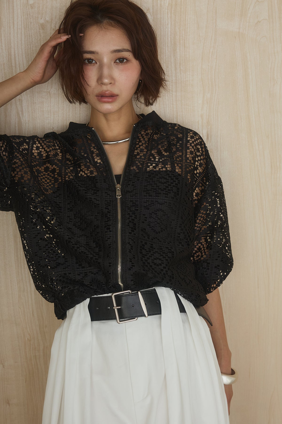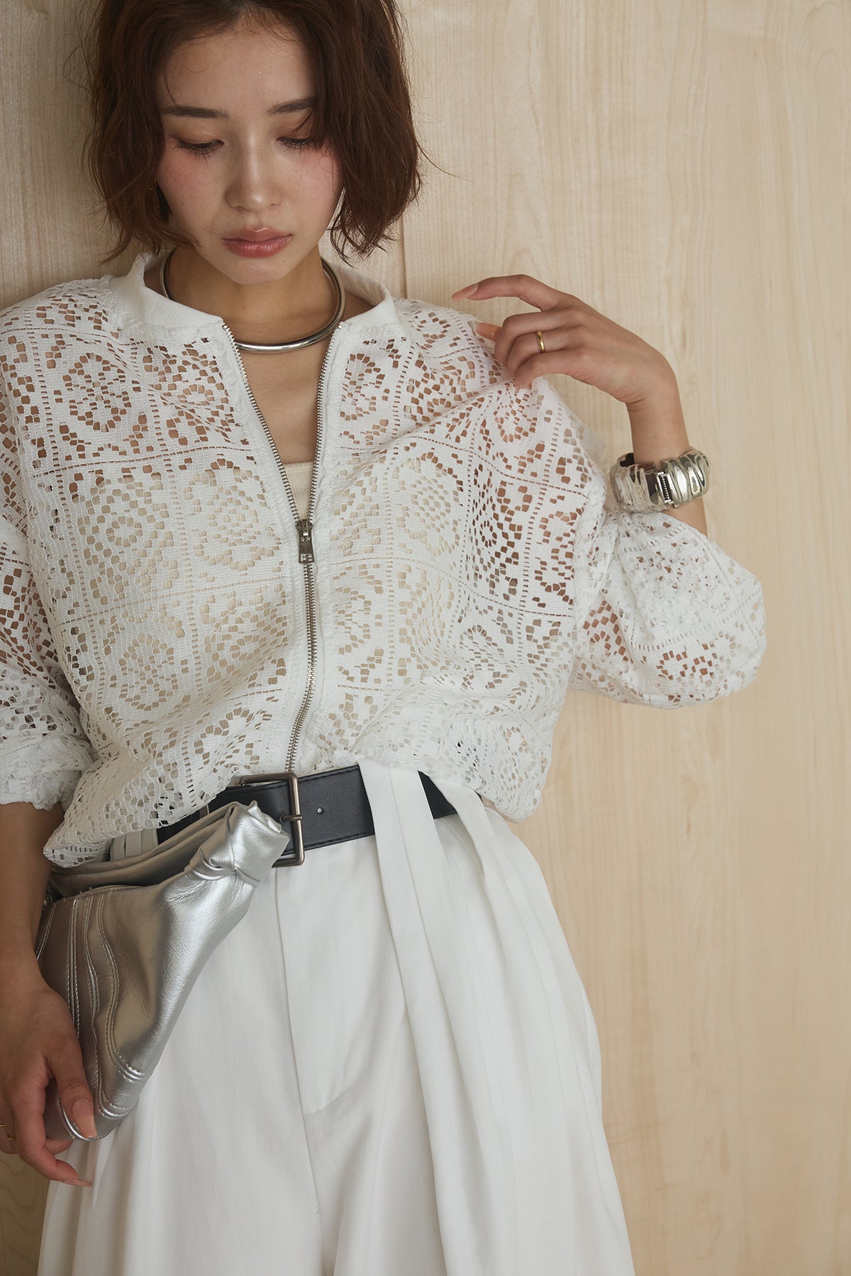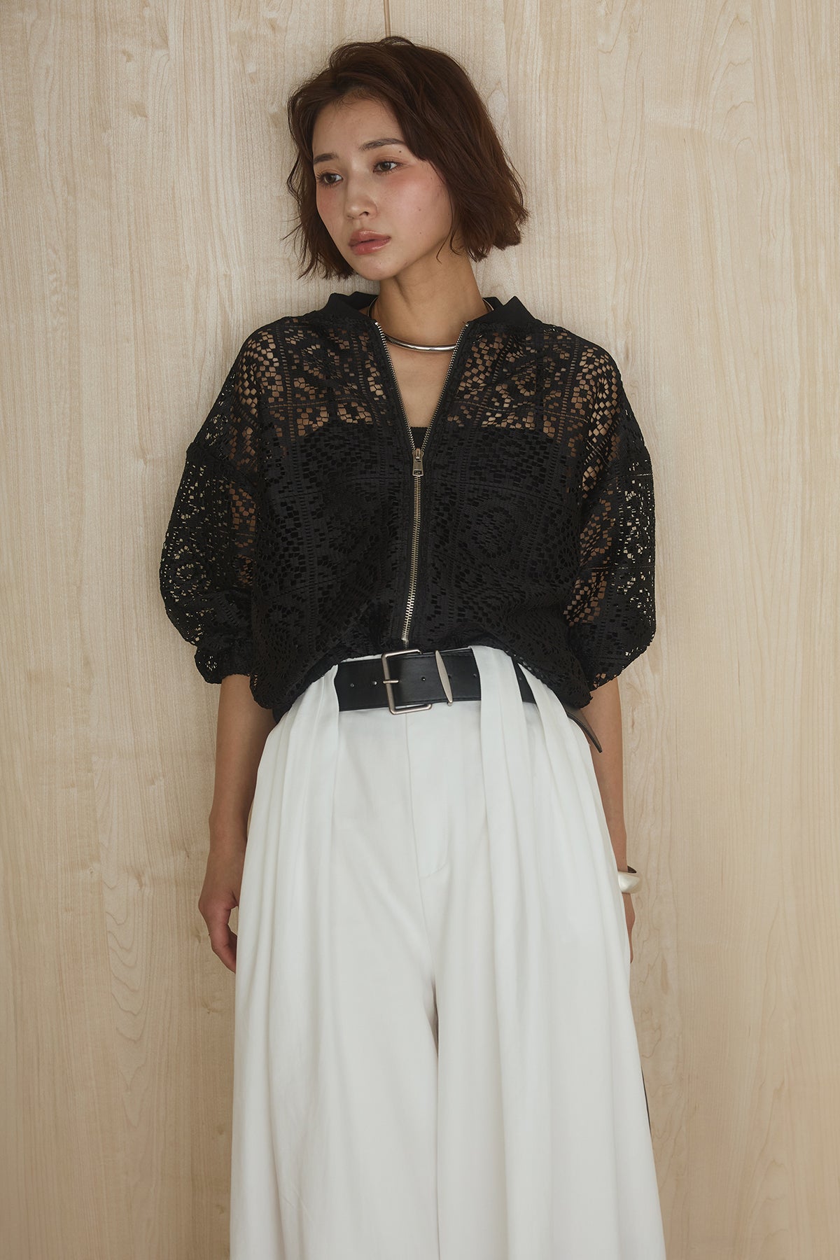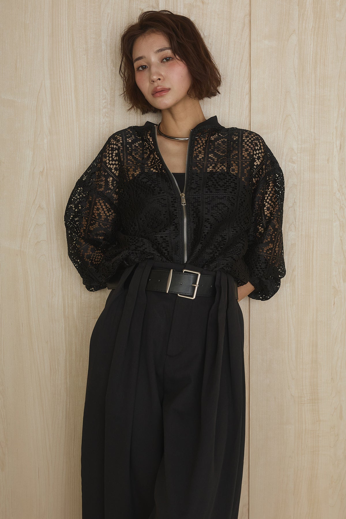 [SET]幾何レースブルゾン+ベルト付きビックループワイドパンツ(2set)