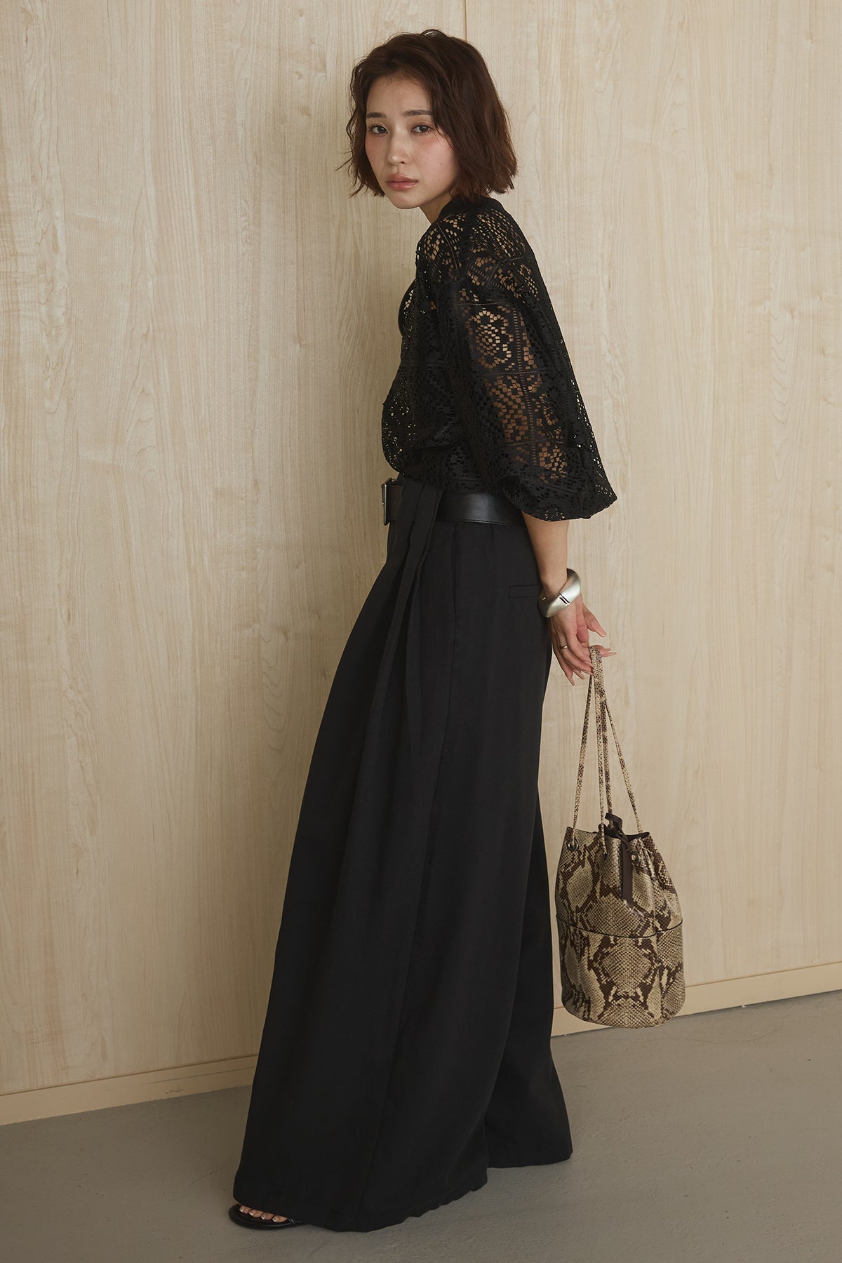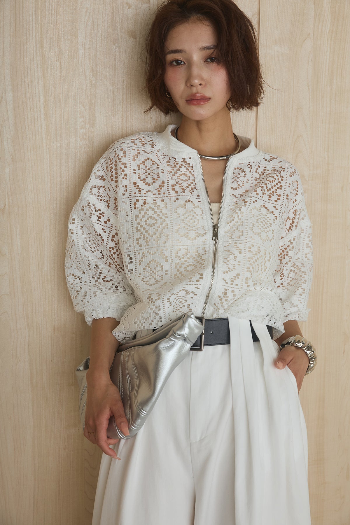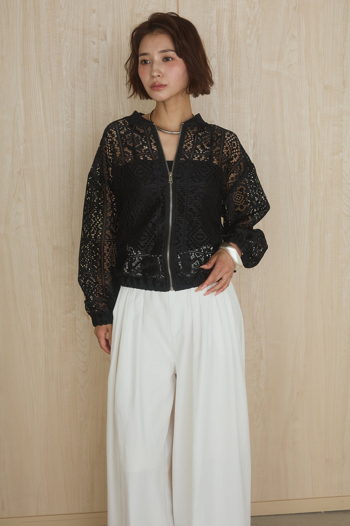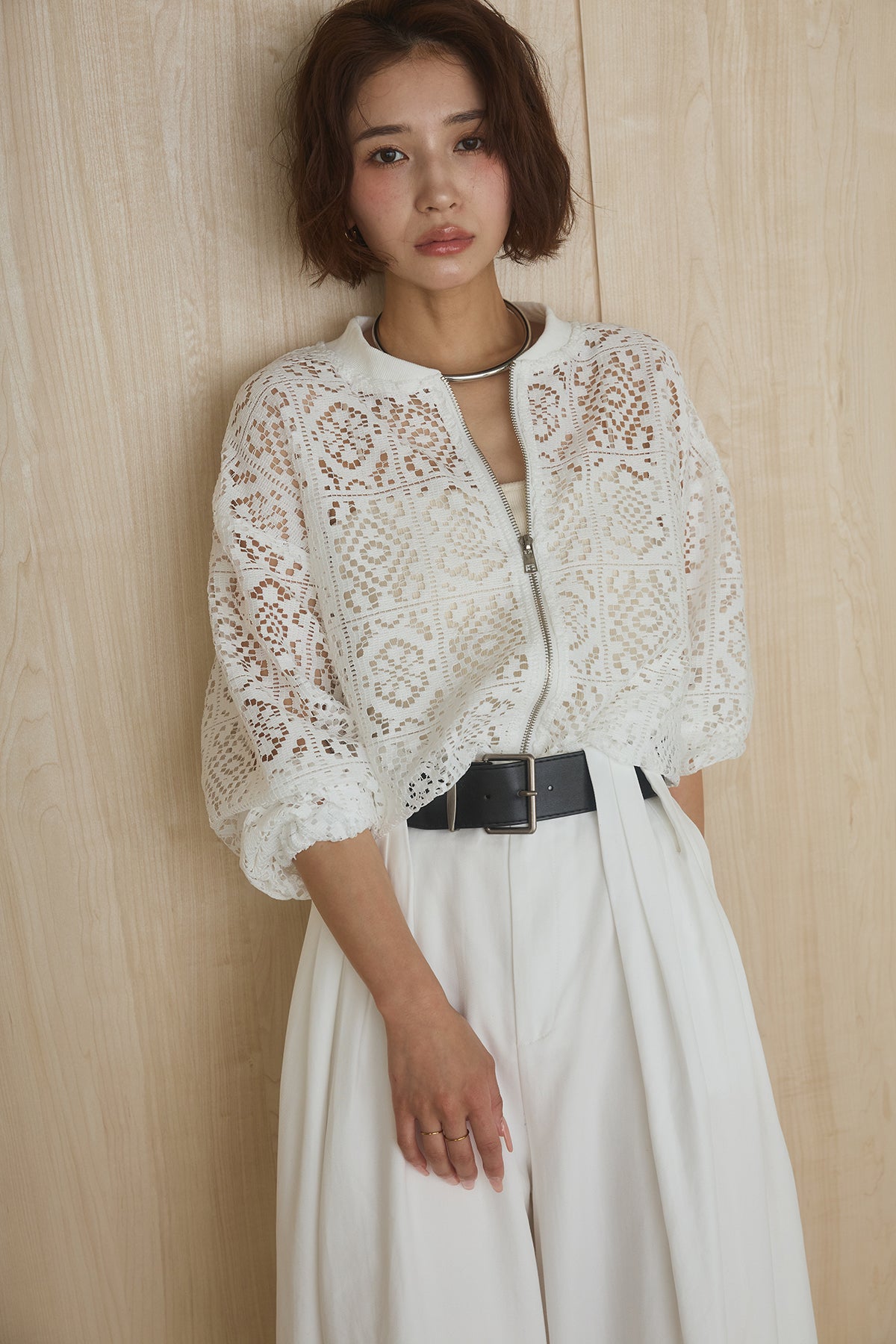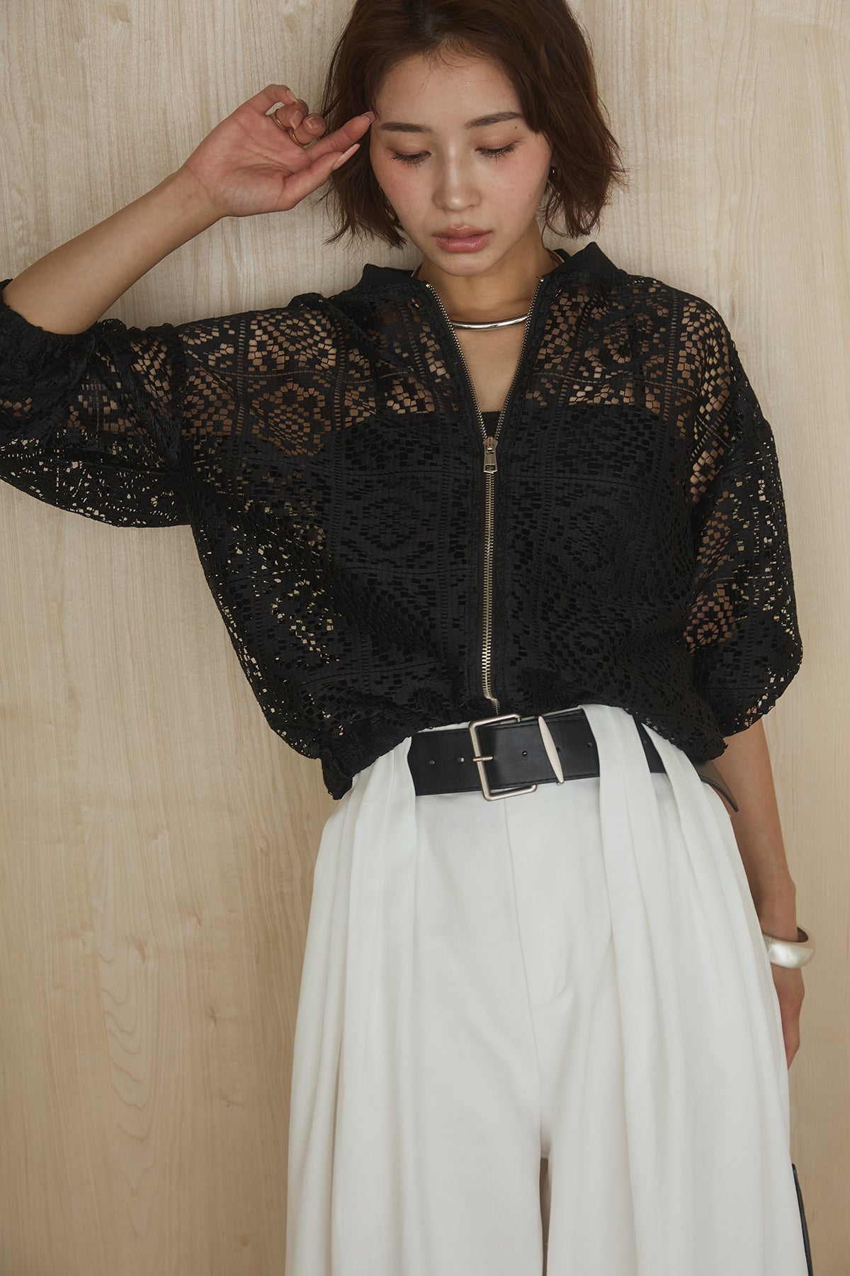 [SET]幾何レースブルゾン+ベルト付きビックループワイドパンツ(2set)