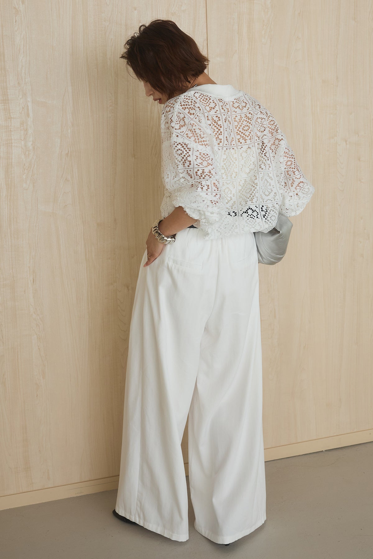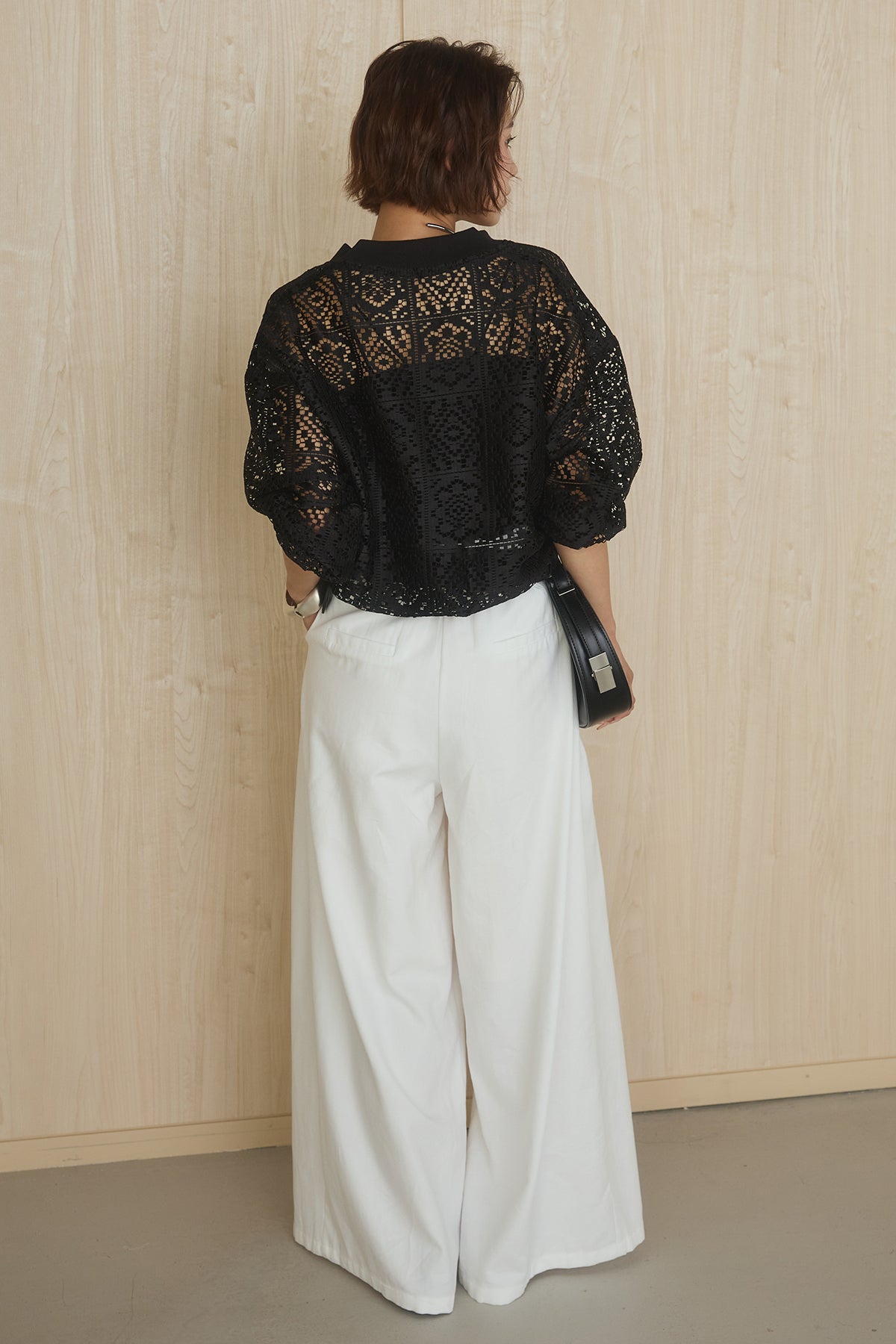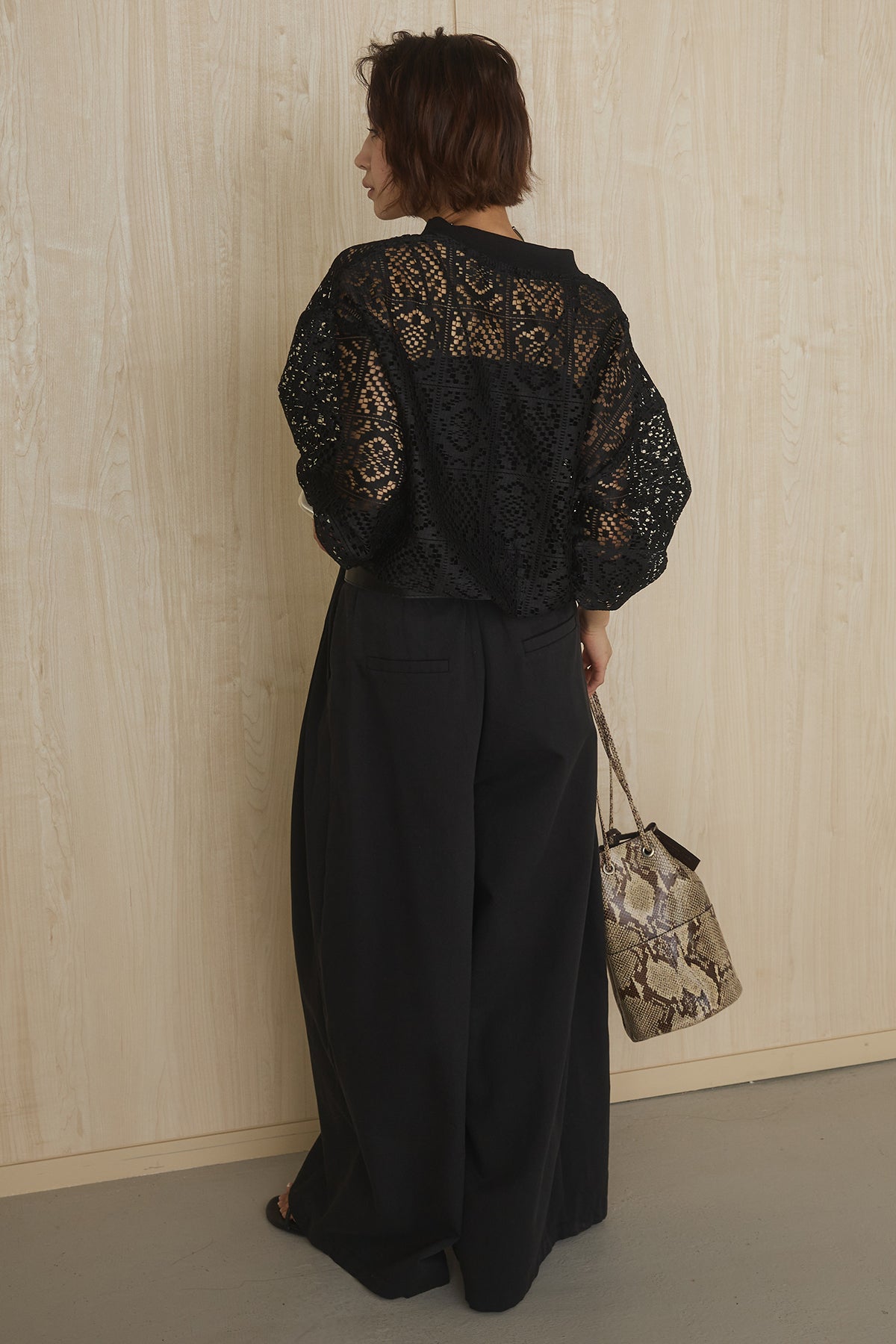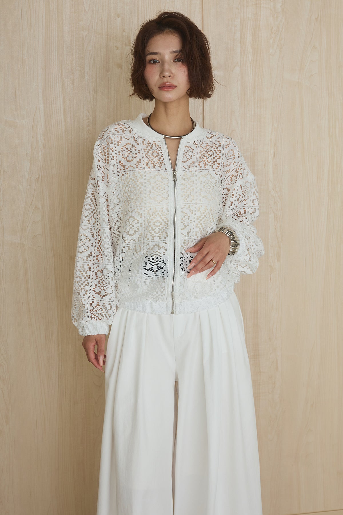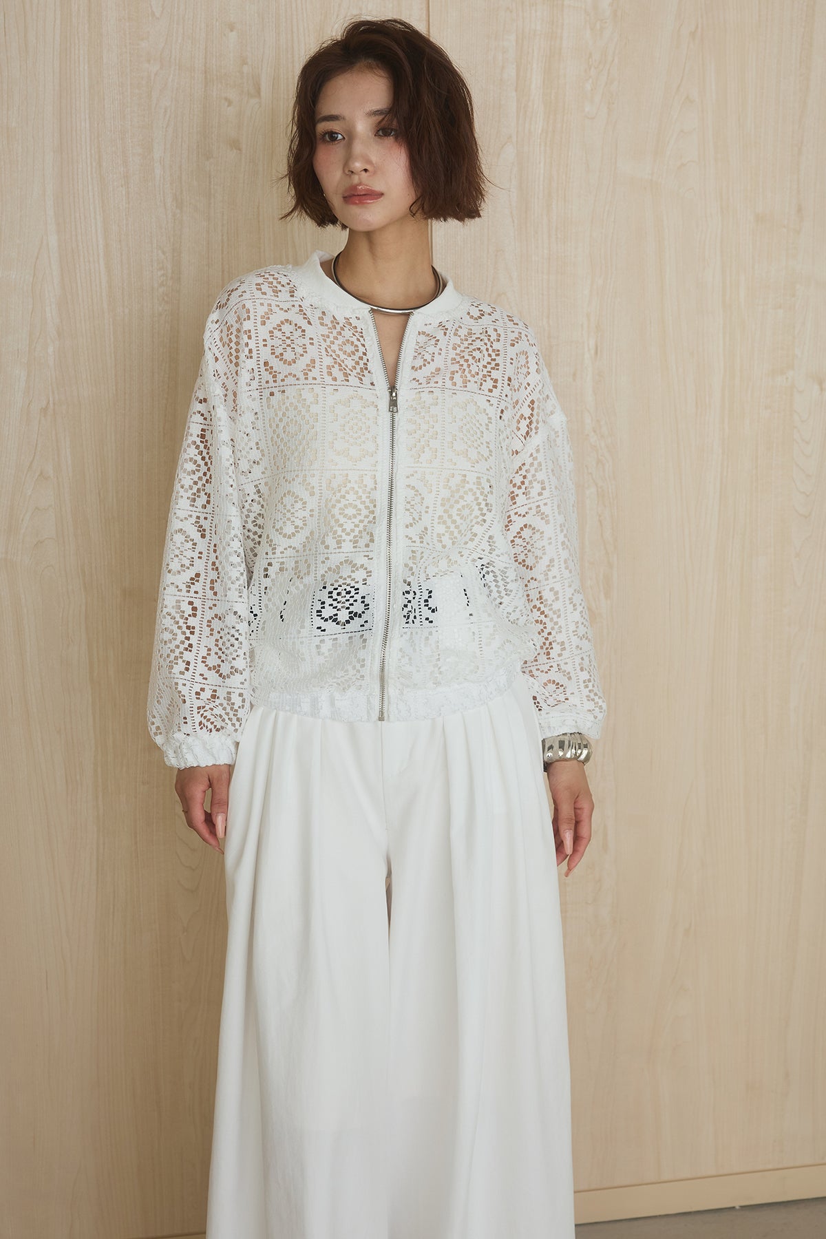 [SET]幾何レースブルゾン+ベルト付きビックループワイドパンツ(2set)