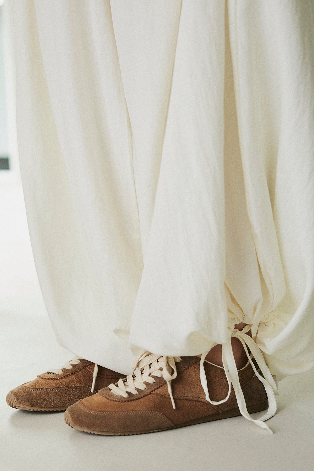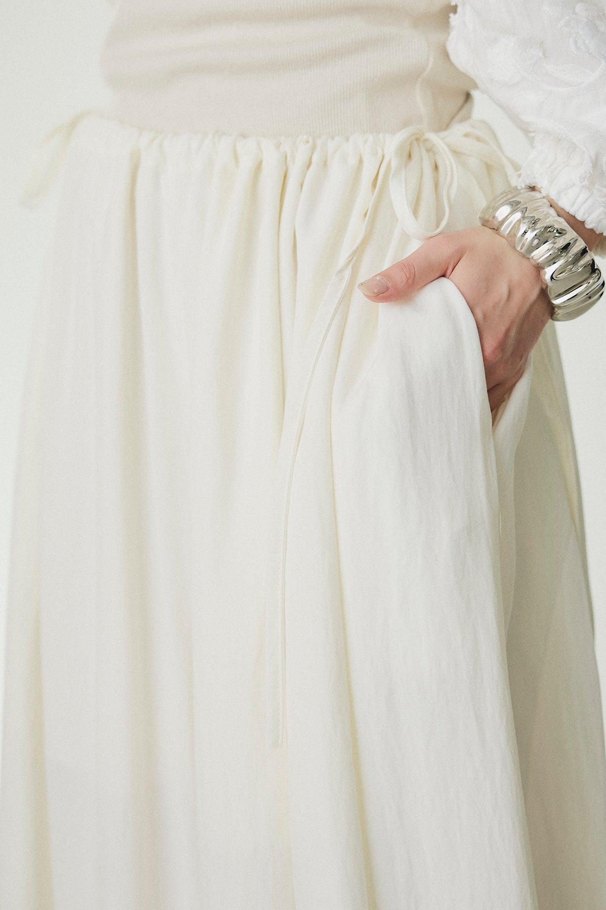 ウエストのドローストリングデザインがアクセントになったワイドパンツ。 シンプルな中に程よいラフさをプラスし、リラックス感のある一着に仕上げました。 ウエストを絞ることで生まれる立体感が、自然なメリハリを演出。 裾に向かってゆったりと広がるワイドシルエットが、動きのある軽やかな印象を与えます。 ストレスフリーな穿き心地で、デイリーに取り入れやすいのも魅力。 コンパクトなトップスを合わせてバランスを取ったスタイリングはもちろん、ゆったりとしたトップスとのリラックスコーデにもおすすめです。 シンプルながらもシルエットで魅せ、こなれたスタイリングを叶えてくれる一本です。