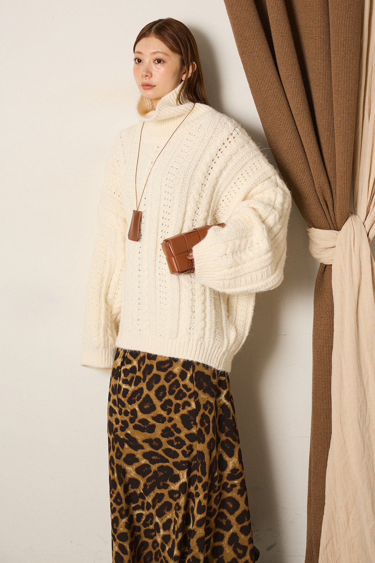 ハイネックオーバーシルエットニットトップスを含んだコーデセット商品を探す↓
