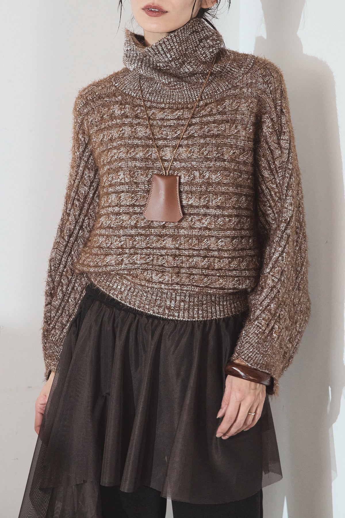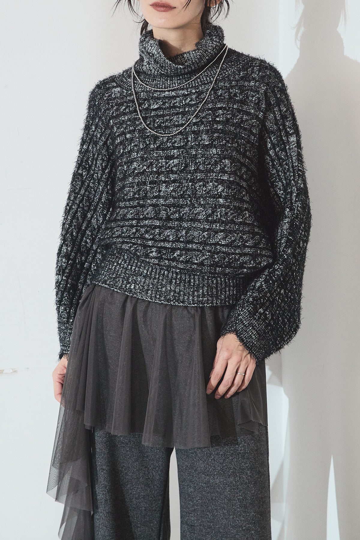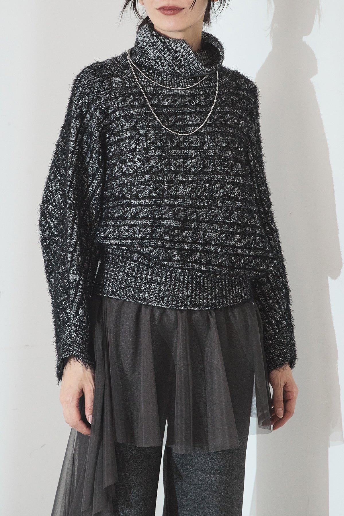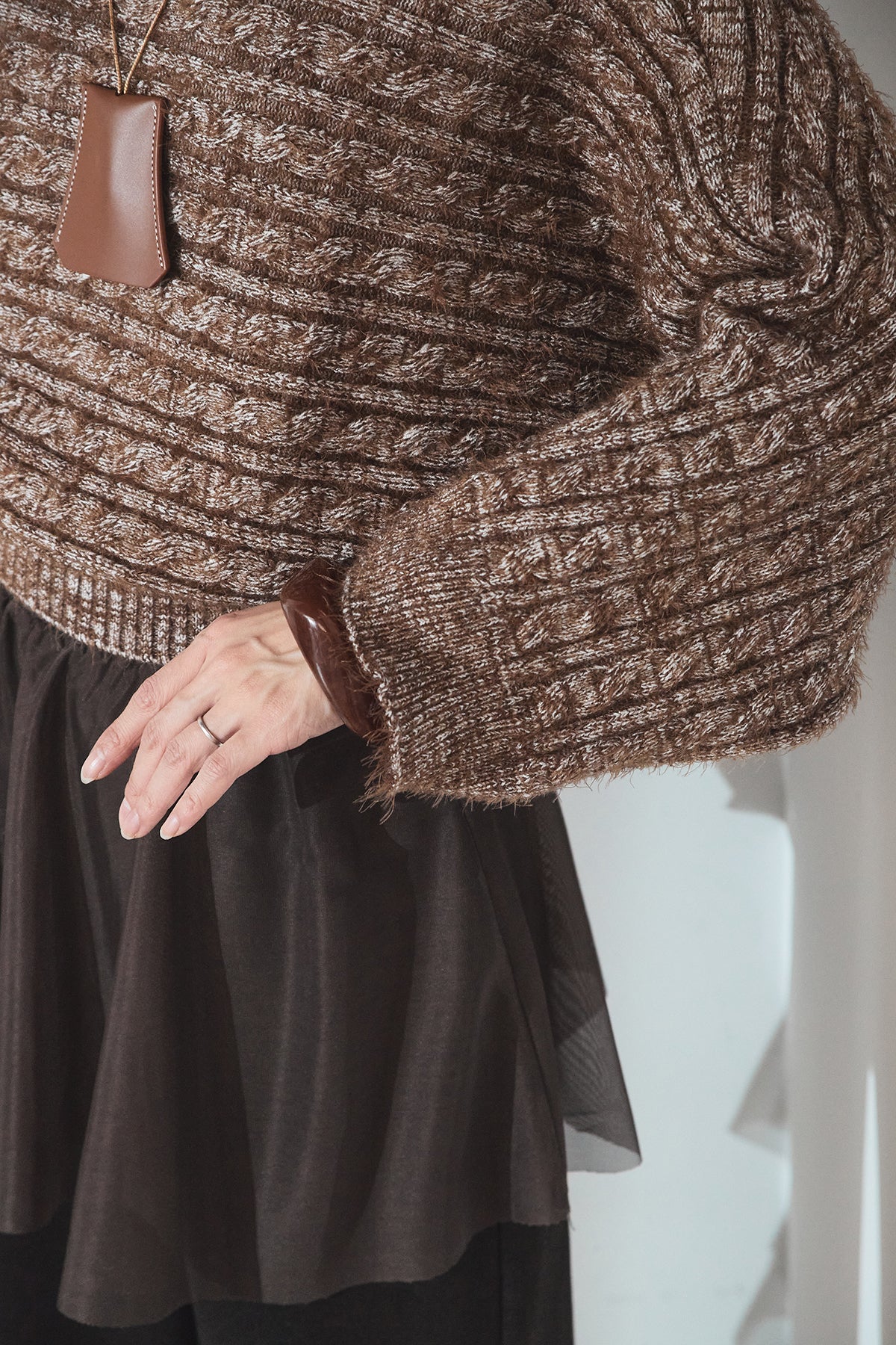 異なる編み地をミックスした表情豊かなドルマンニットトップス。立体感のある編み柄が奥行きを生み、シンプルなスタイリングにも自然な存在感を添えます。ゆったりとしたドルマンシルエットが抜け感を演出し、リラックスした着心地ながらも大人っぽい印象に。パンツにもスカートにも合わせやすく、レイヤードにも活躍する一枚です。