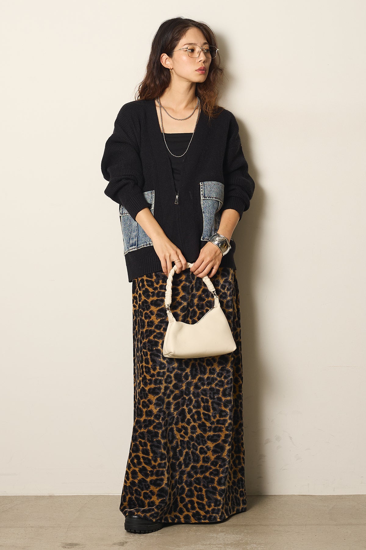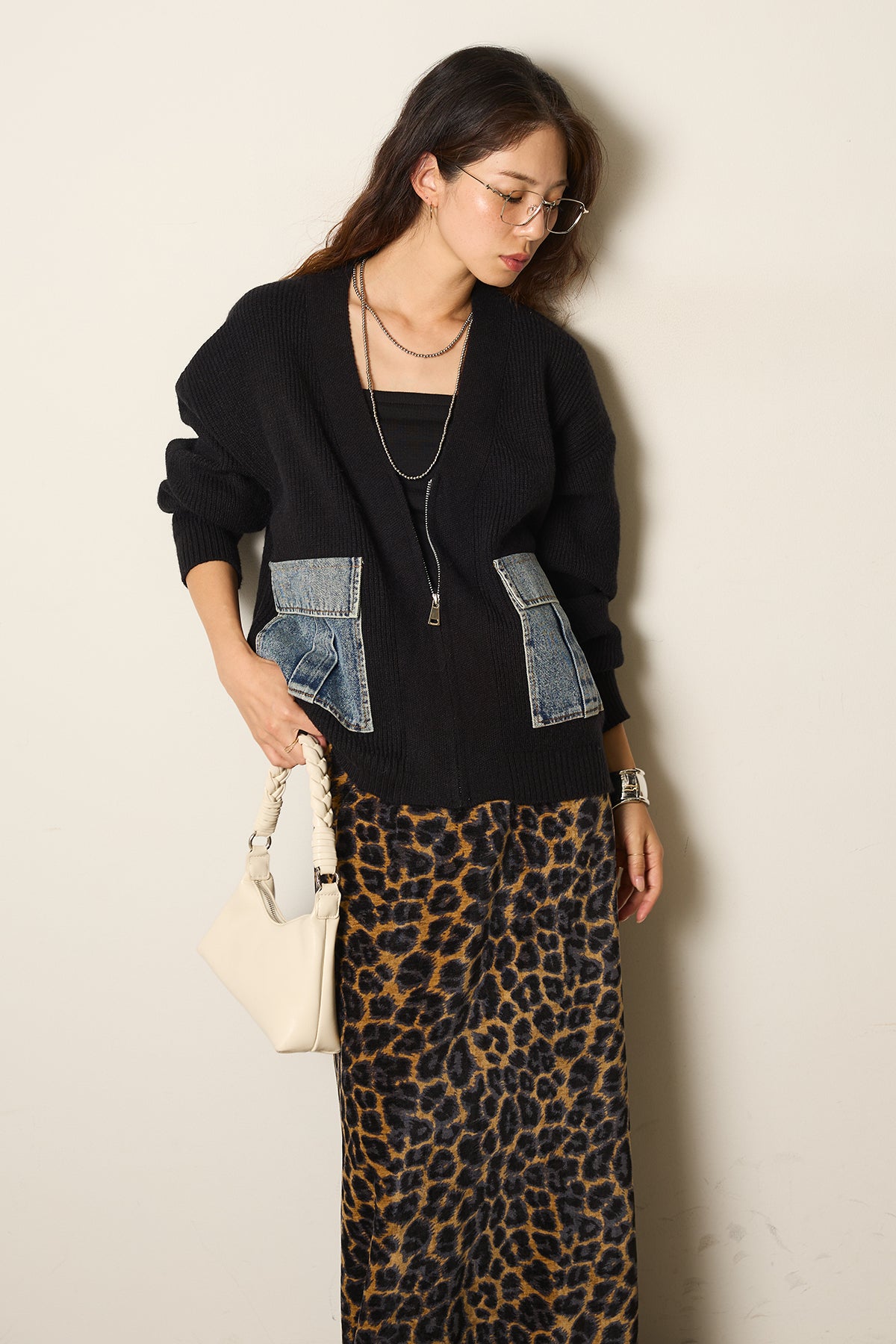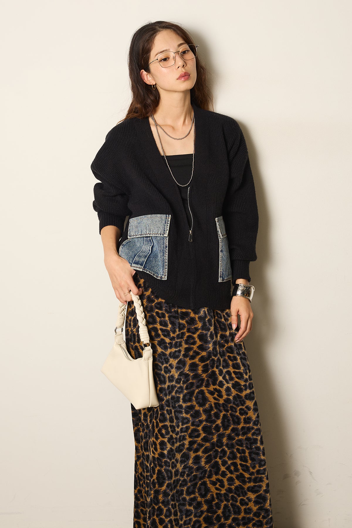 フロントのデニムポケットがアクセントになったジップアップタイプのニットカーディガン。 異素材の組み合わせがほどよいカジュアル感とモードな雰囲気を演出します。 ゆとりのあるシルエットで、羽織るだけでこなれ感のあるスタイルに。 Tシャツやシャツをインして、幅広いコーディネートが楽しめる万能アイテムです