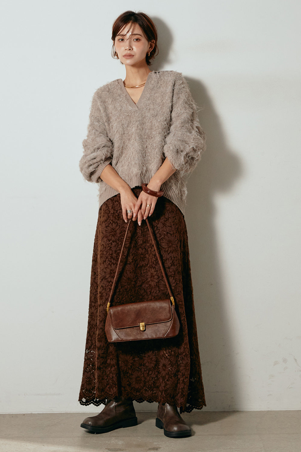 [SET]アルパカタッチ深Vニットトップス+アルパカタッチニットタイトスカート(2set)