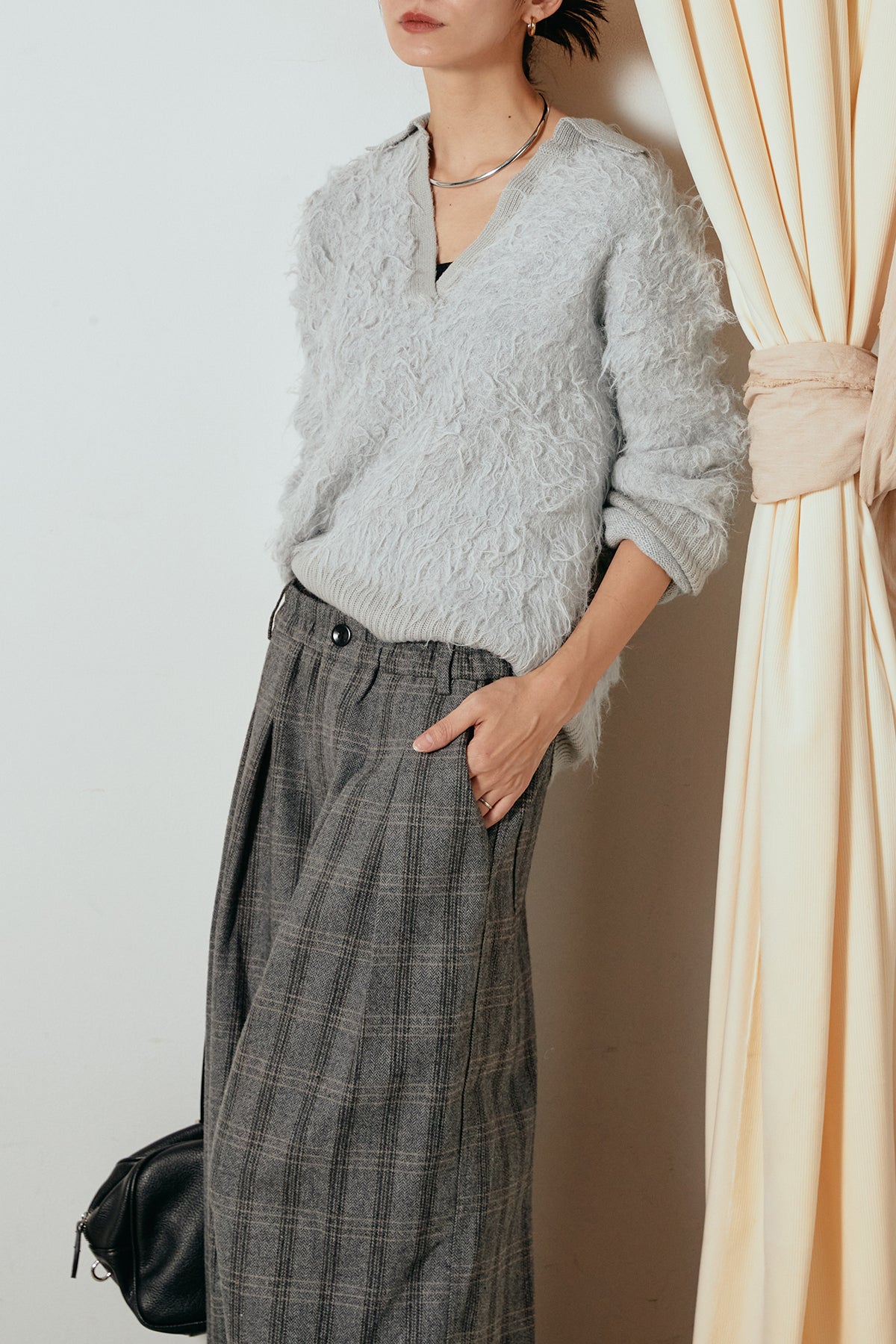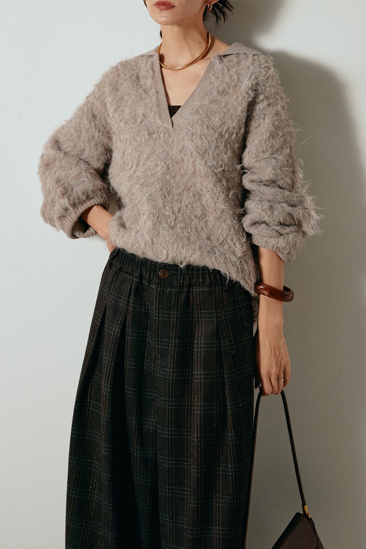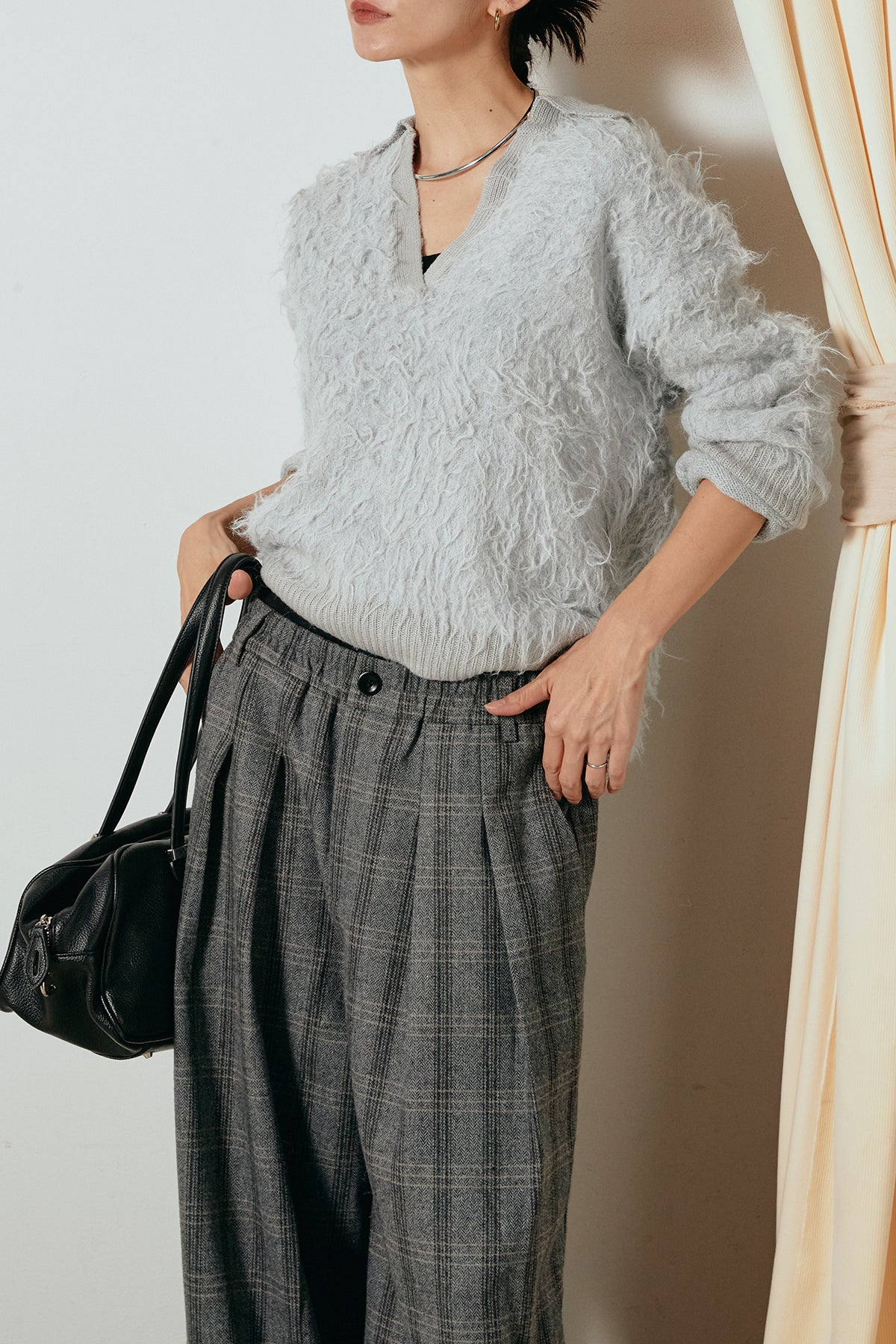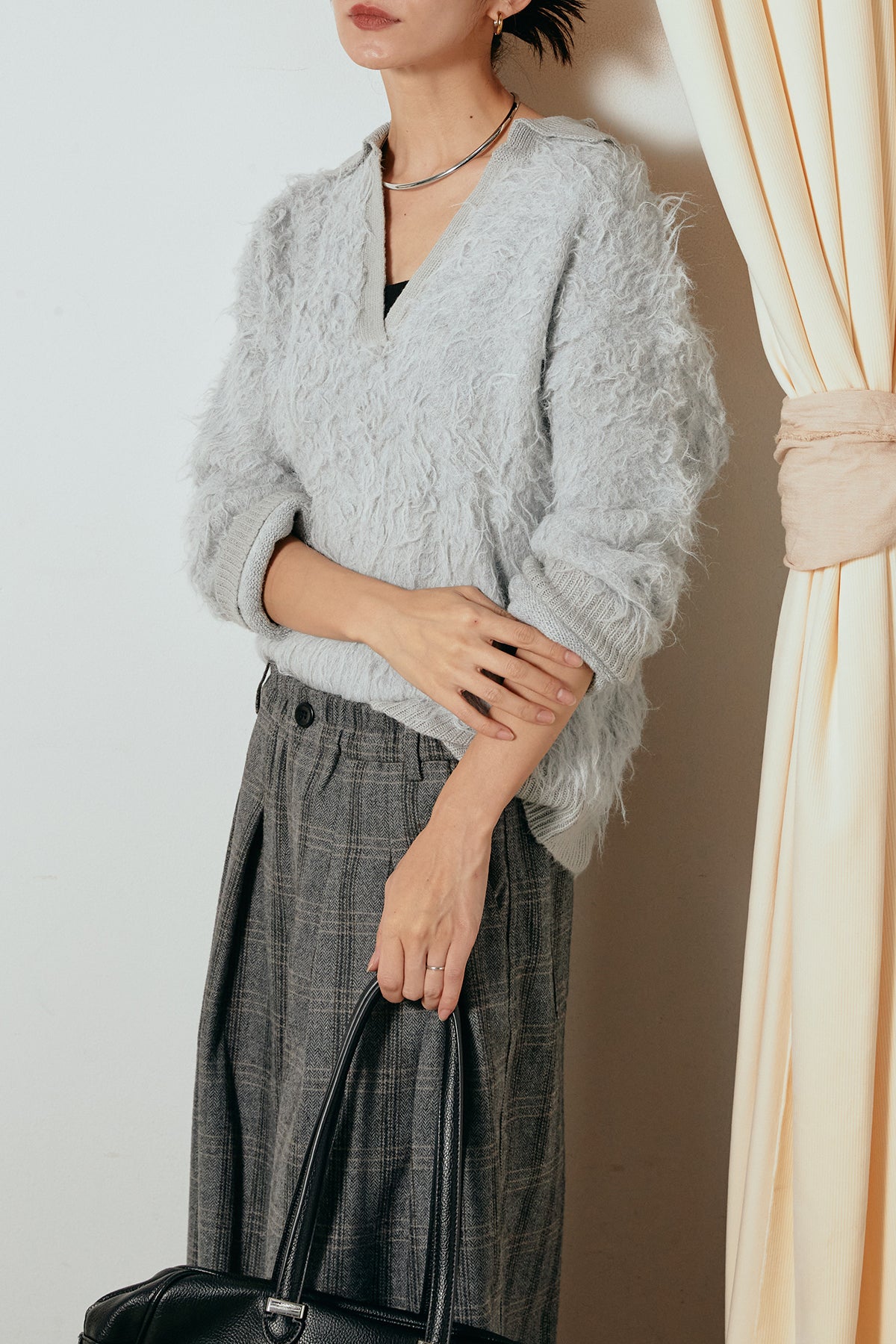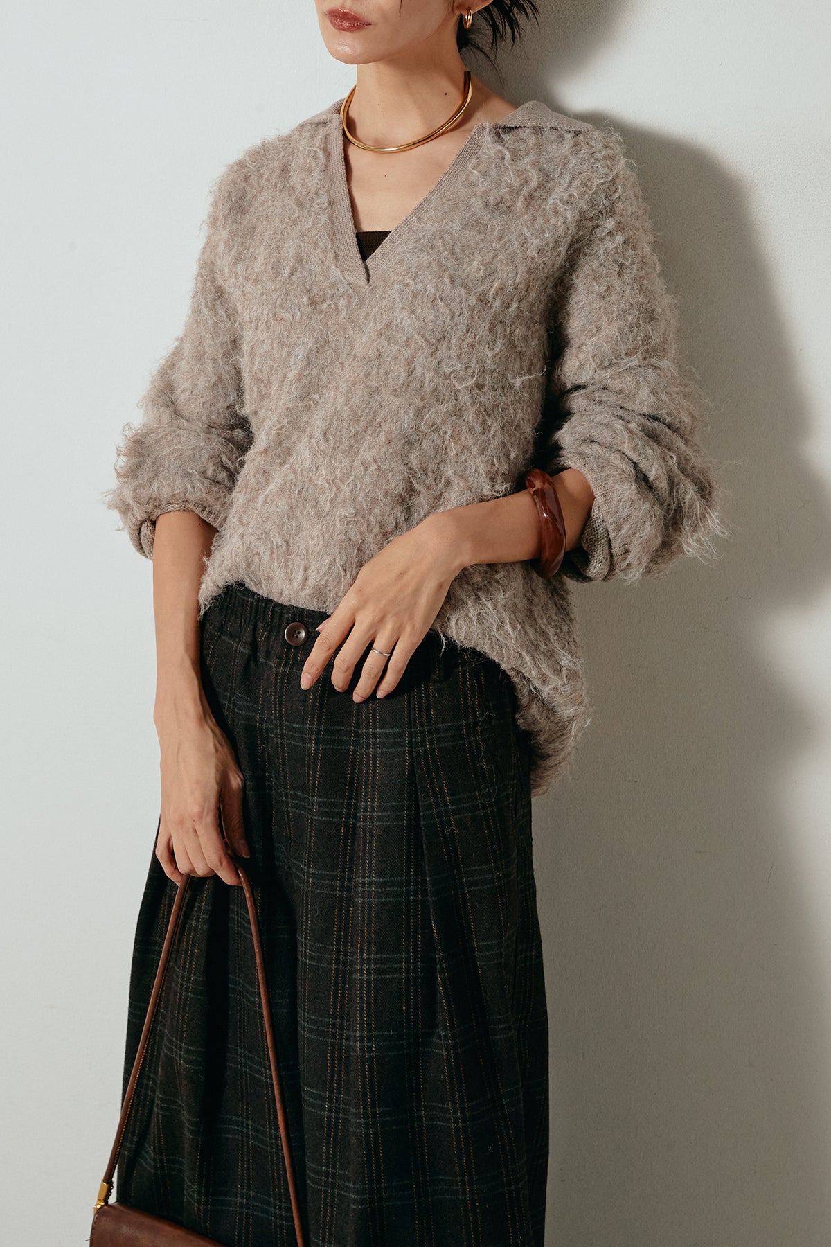 襟付きシャギーニットポロトップスの他のセットページはこちら