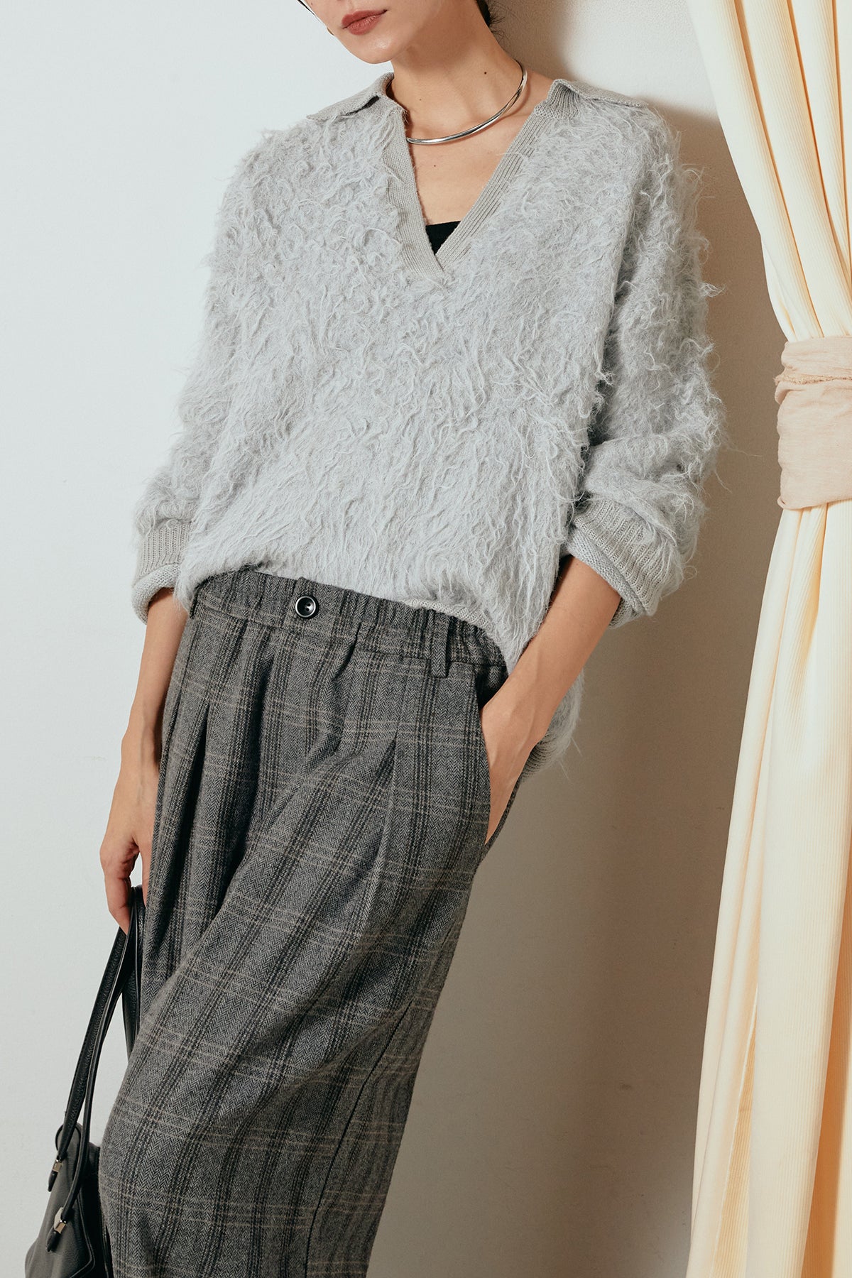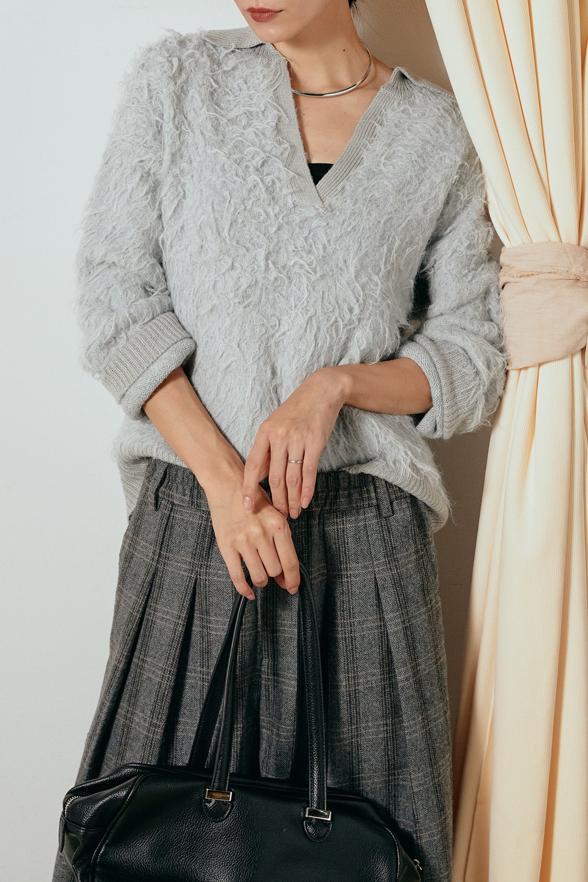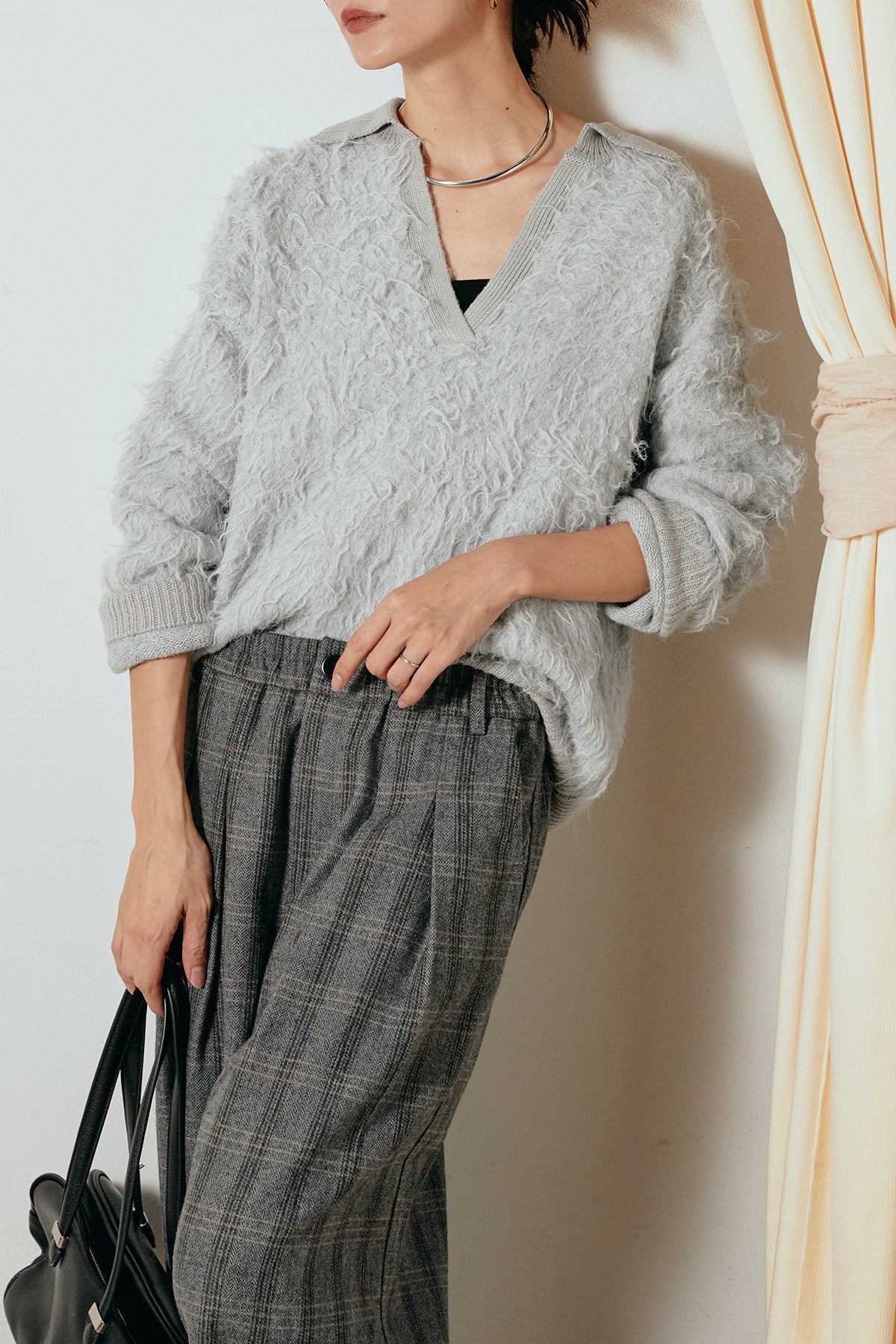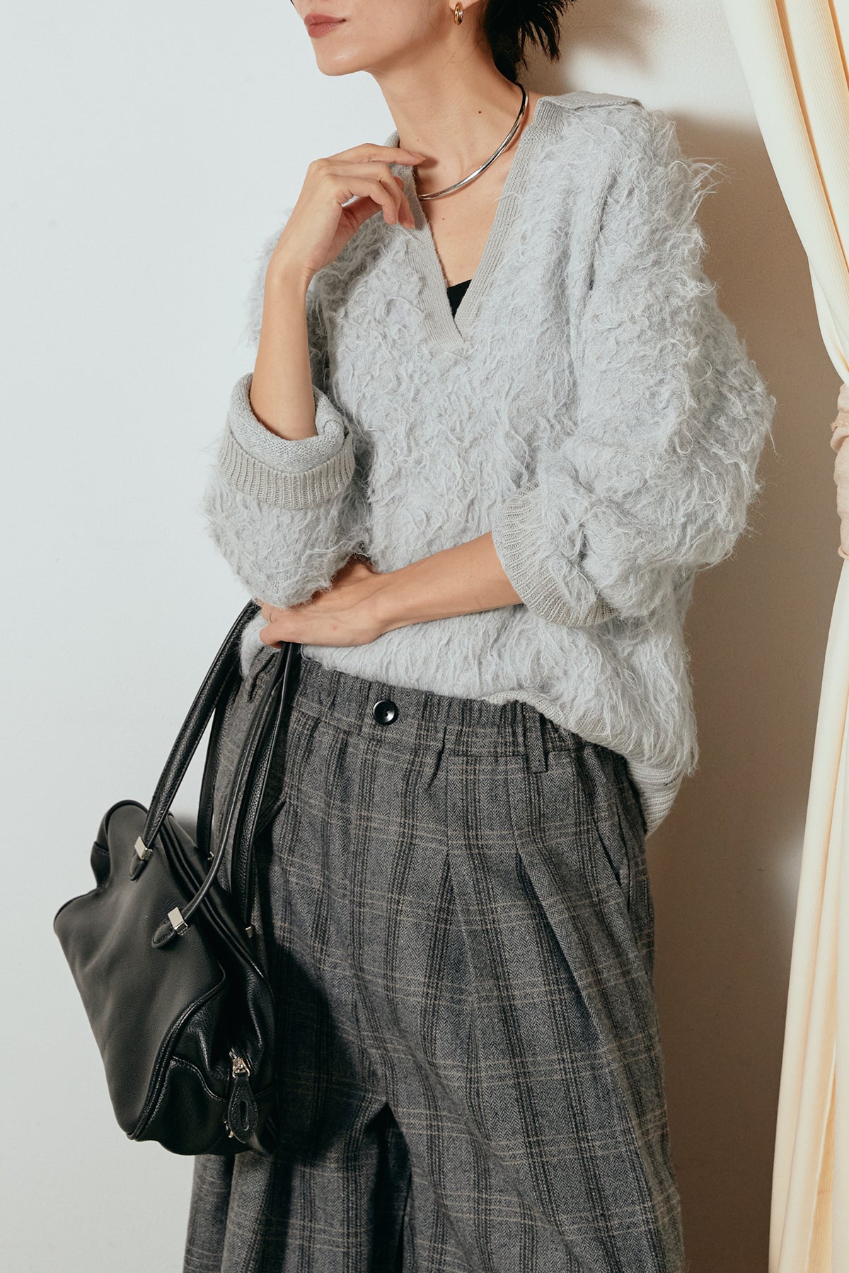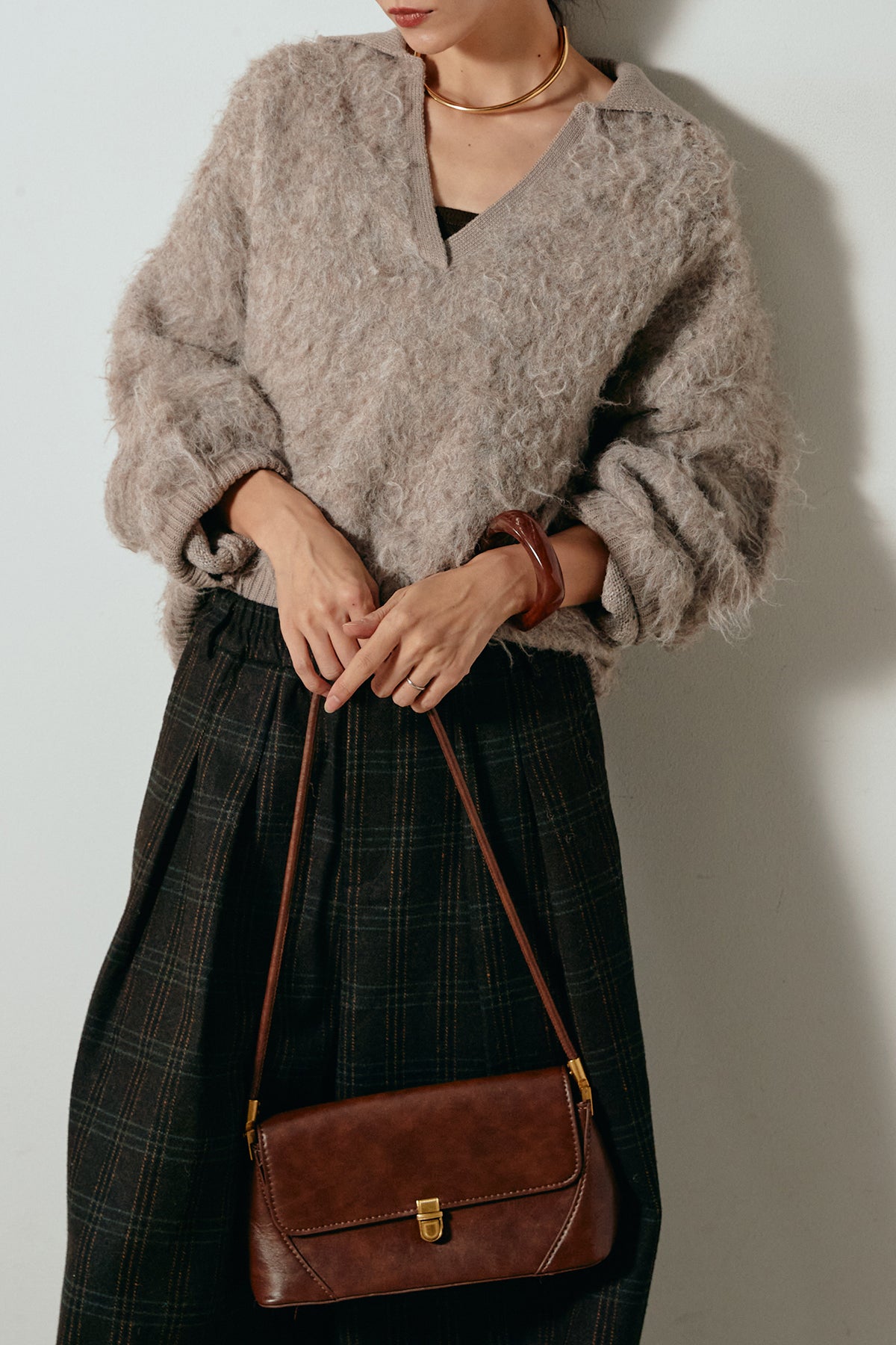 襟付きシャギーニットポロトップスの他のセットページはこちら