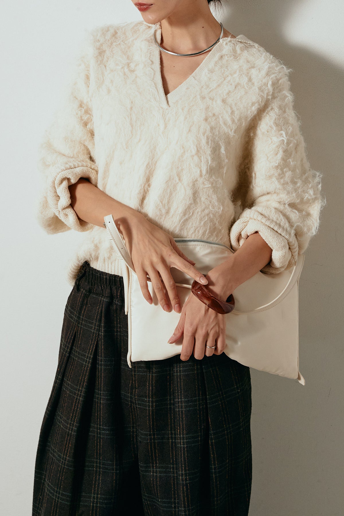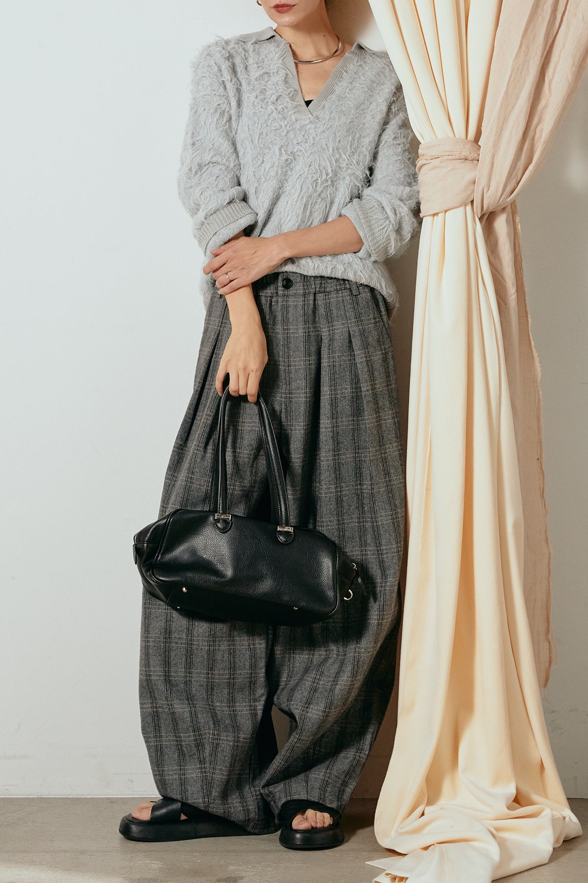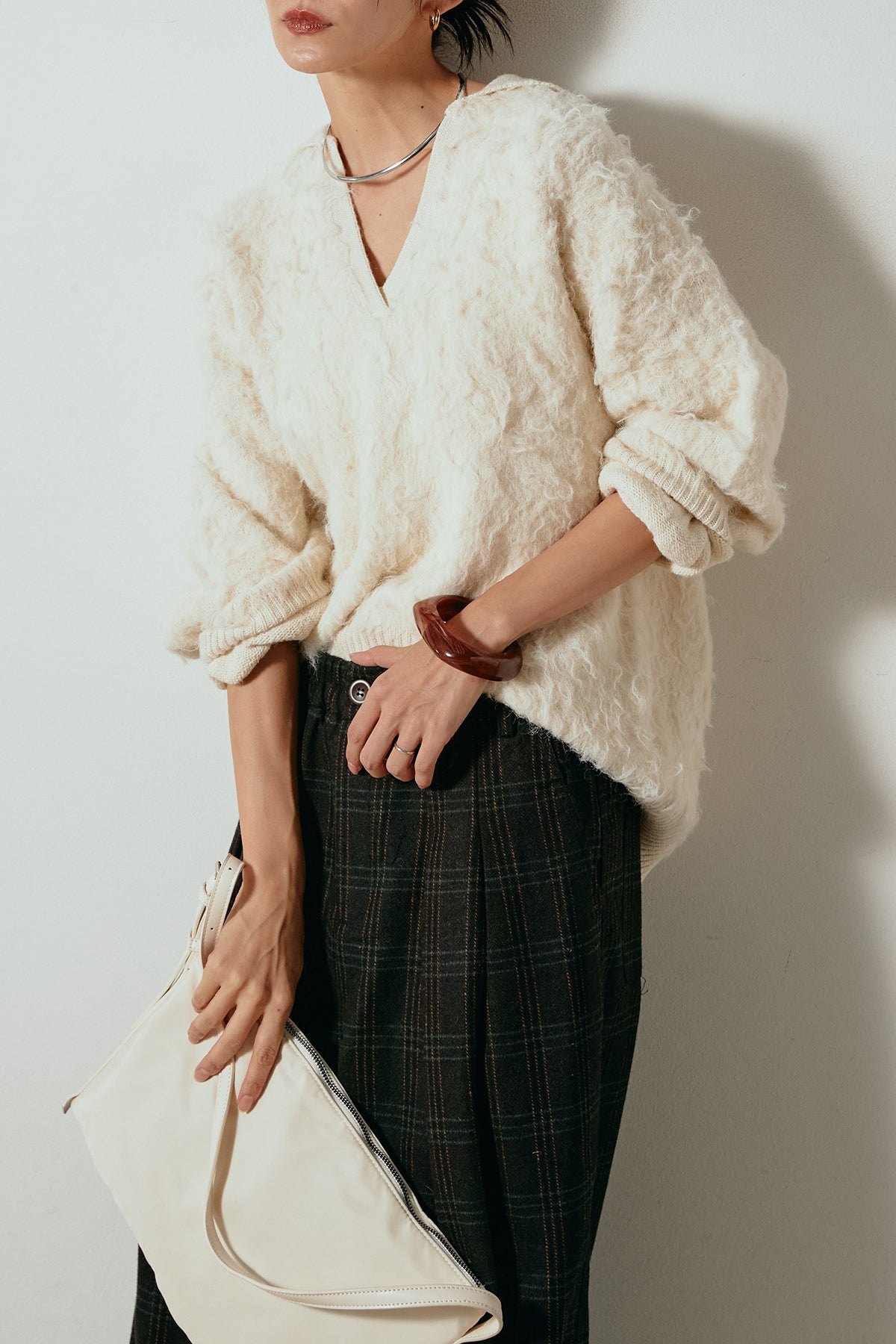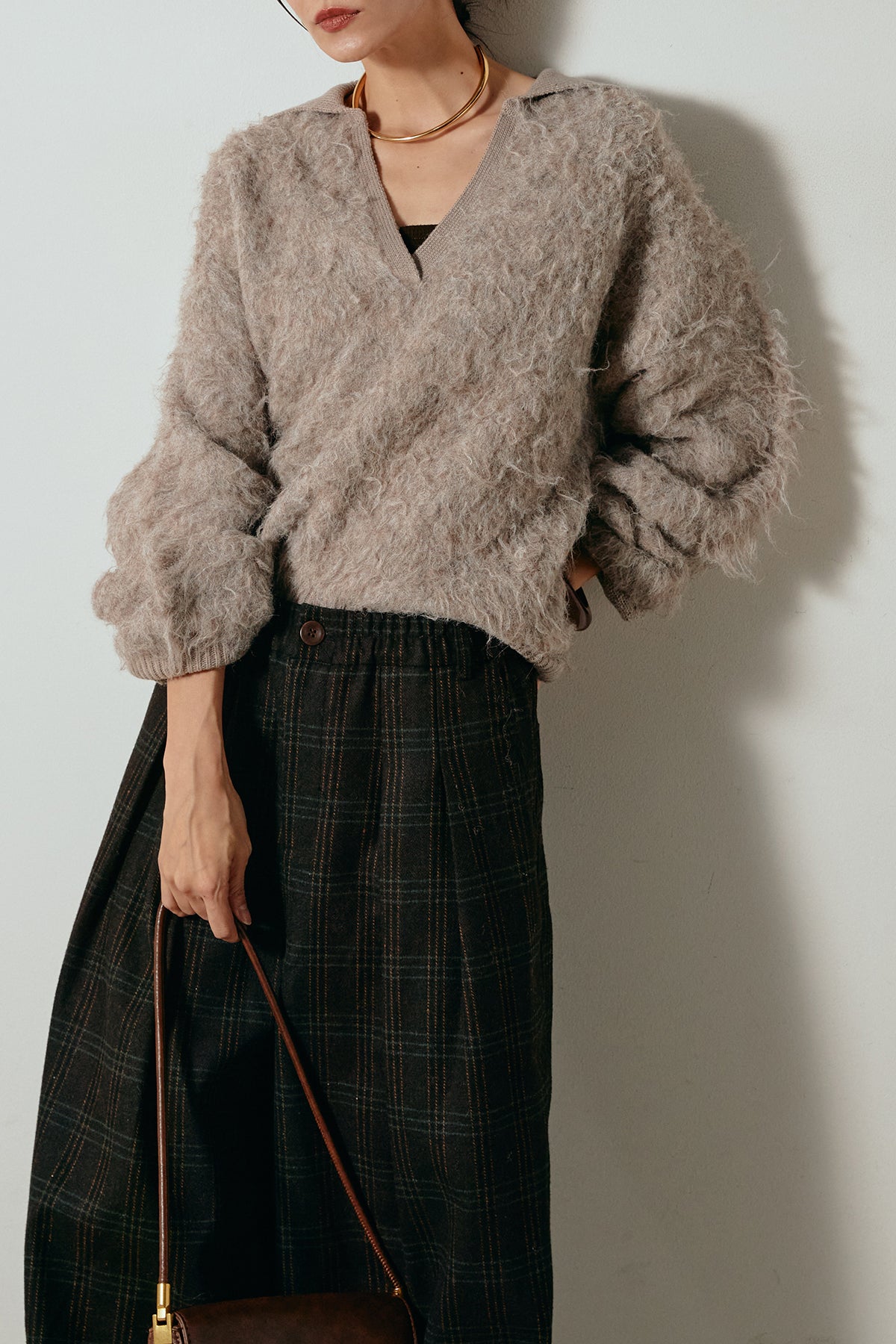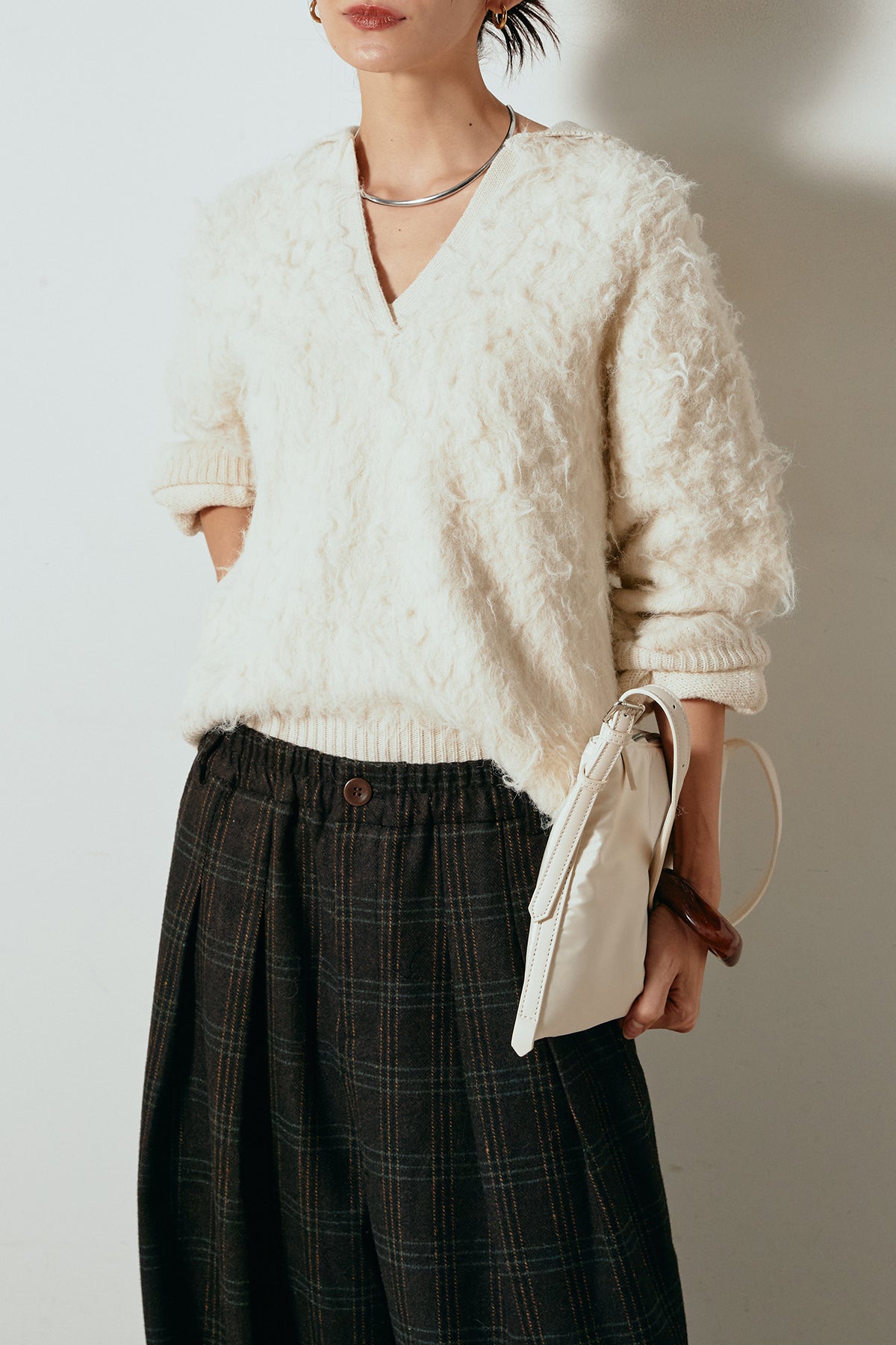 襟付きシャギーニットポロトップスの他のセットページはこちら