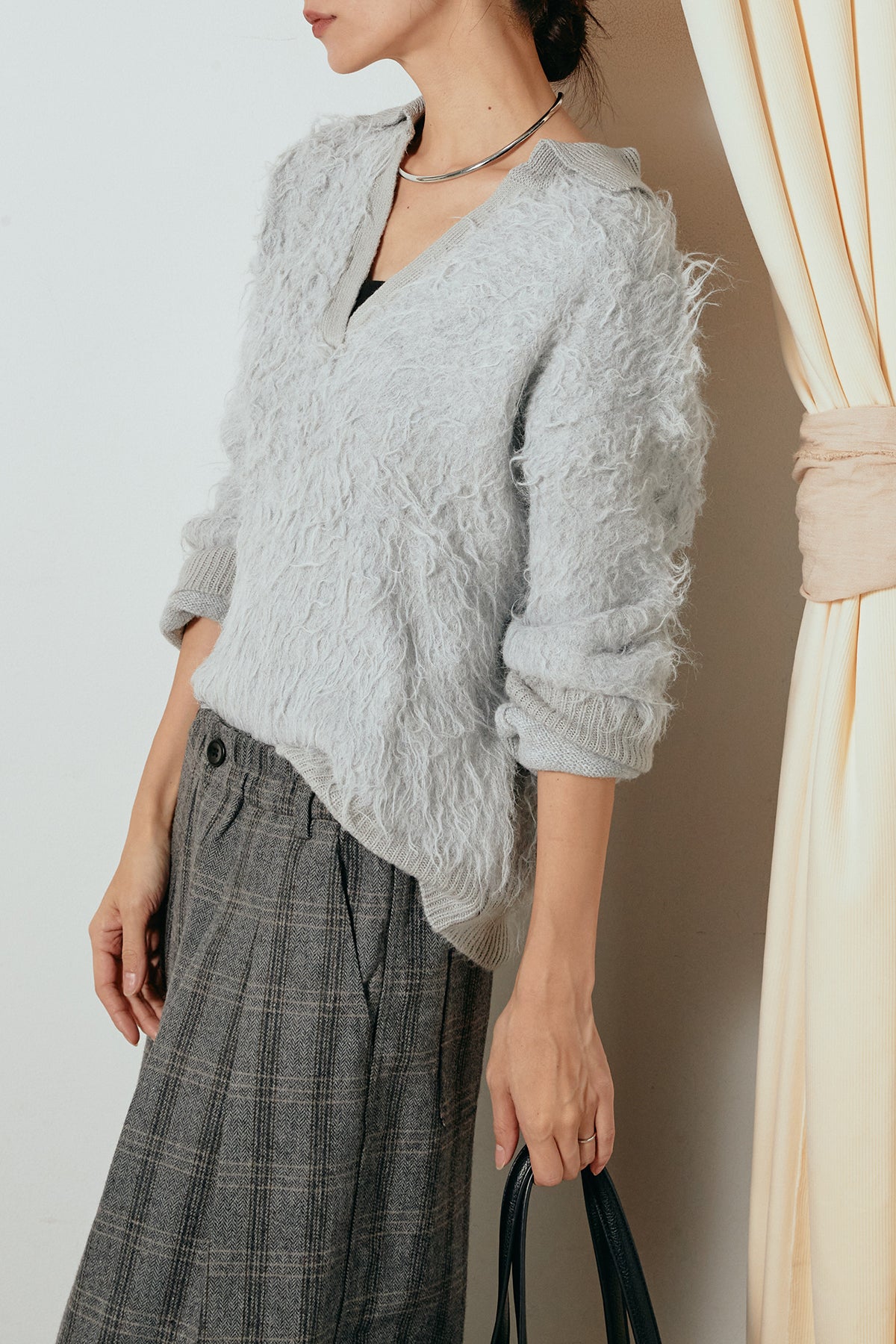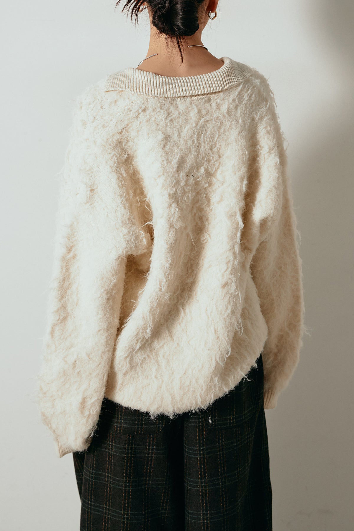 ◆ 襟付きシャギーニットポロトップス