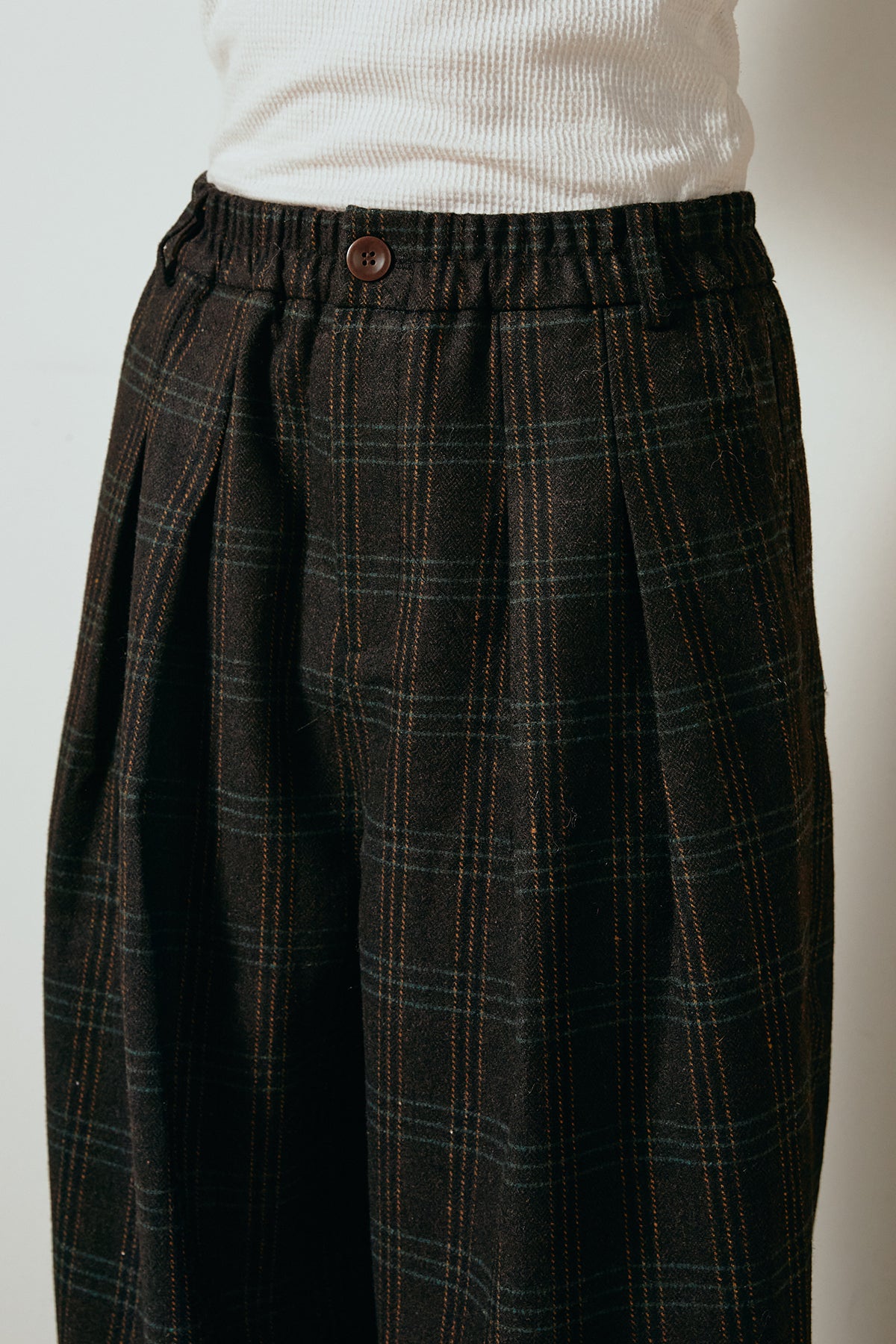 タータンチェック柄タックパンツ