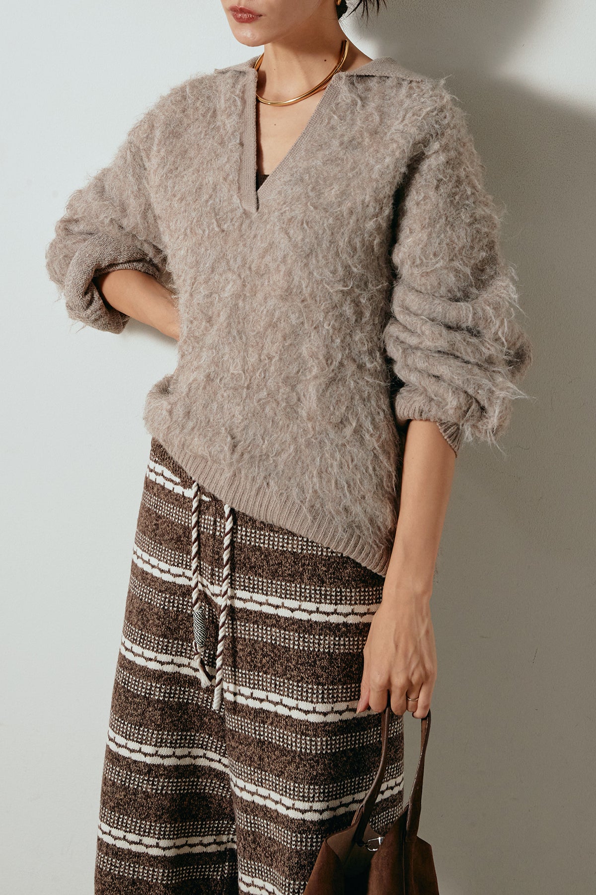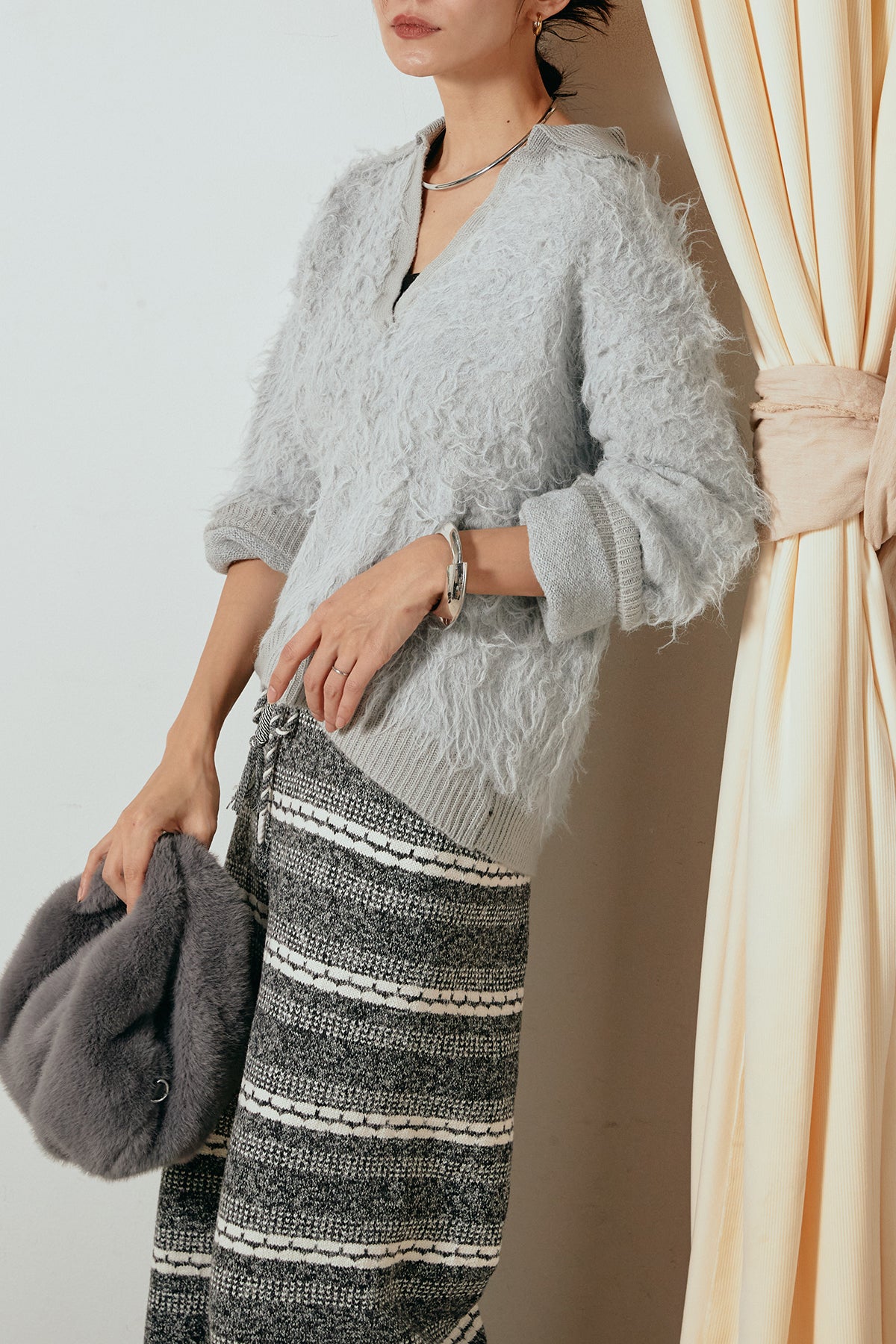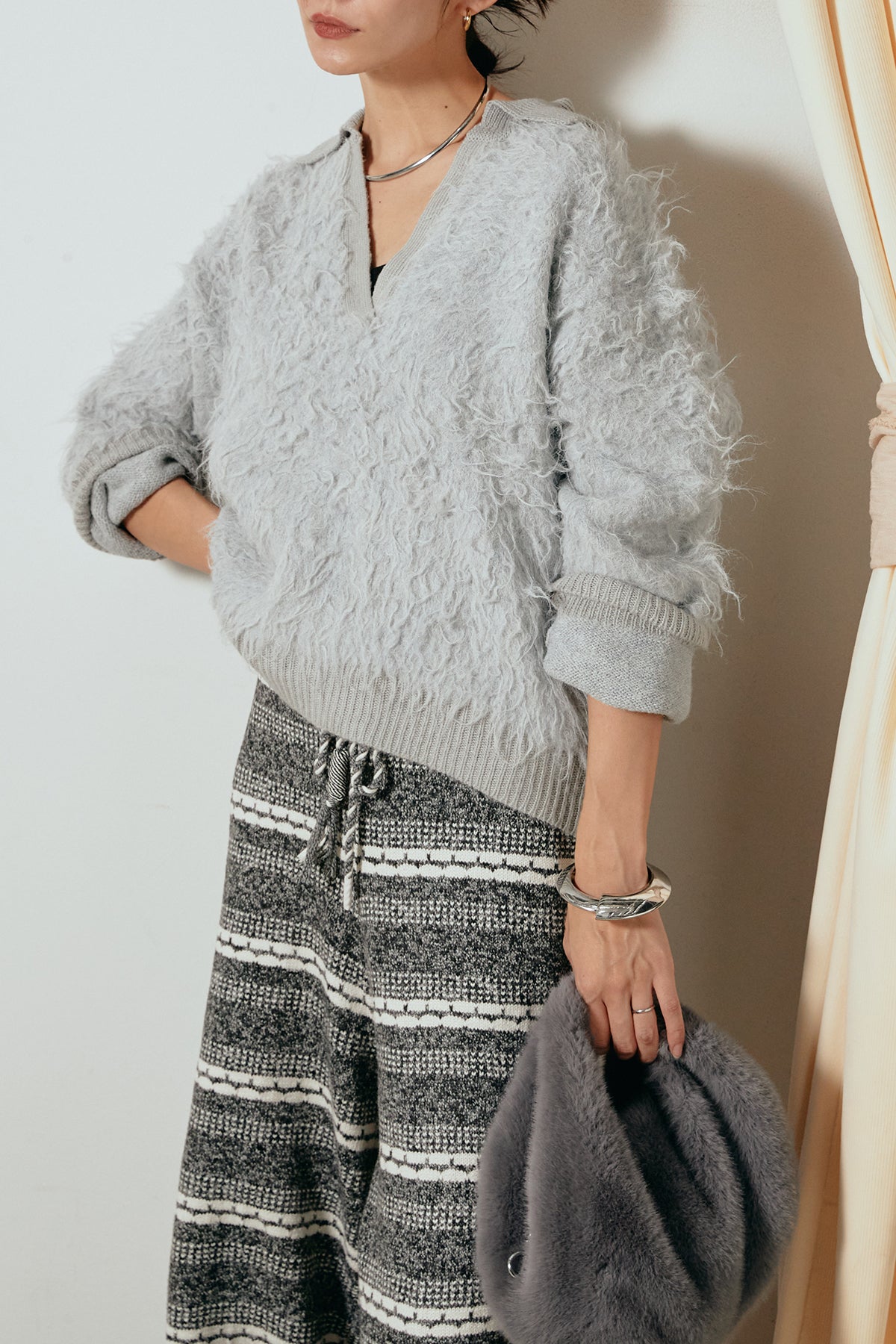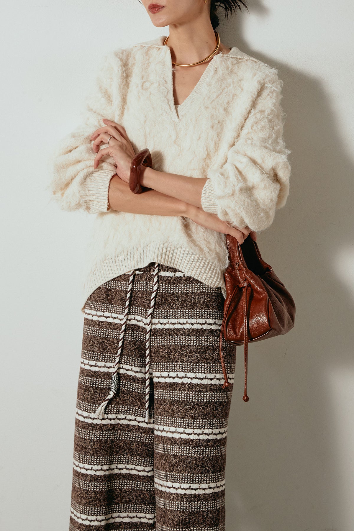 襟付きシャギーニットポロトップスの他のセットページはこちら