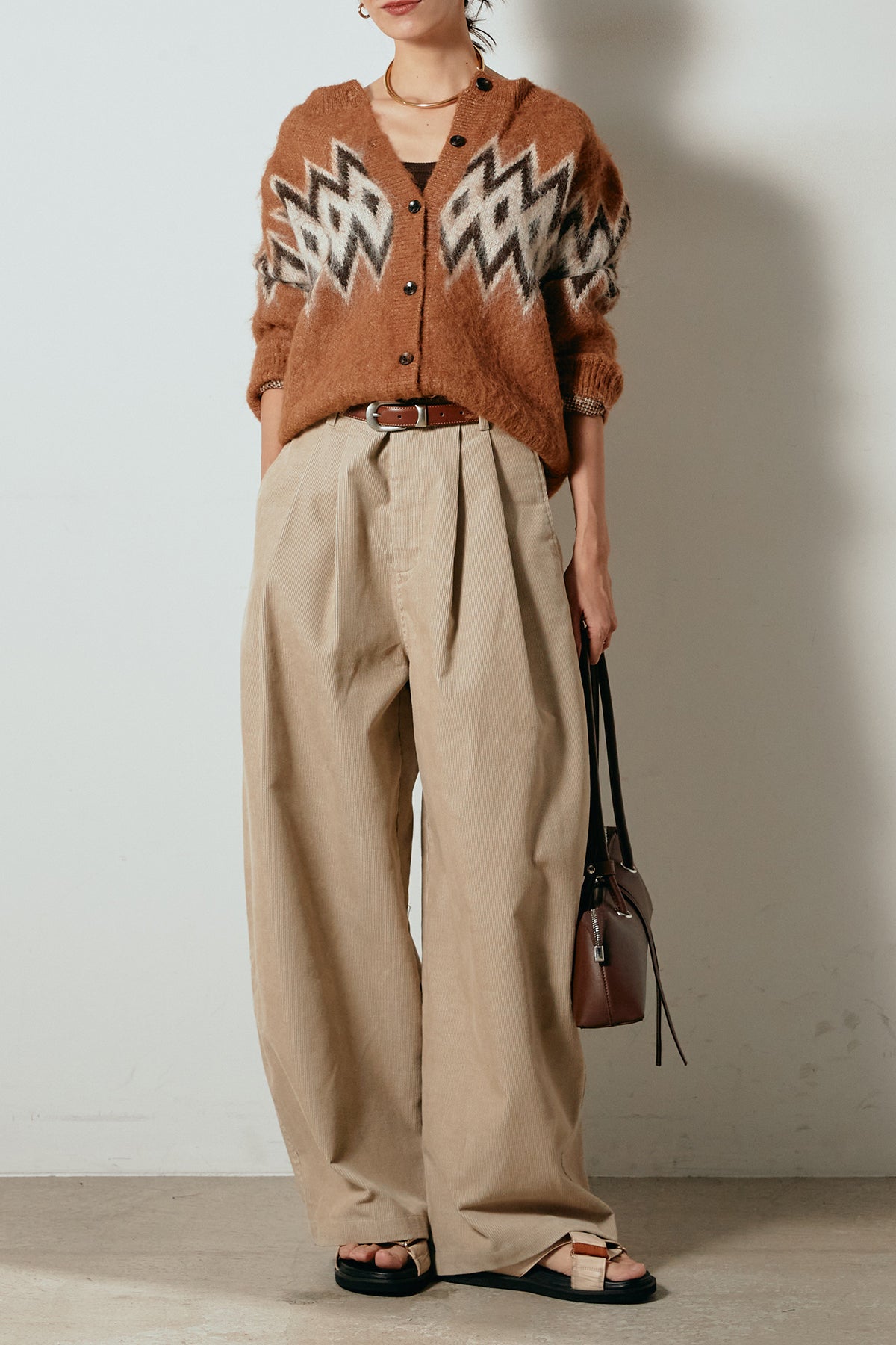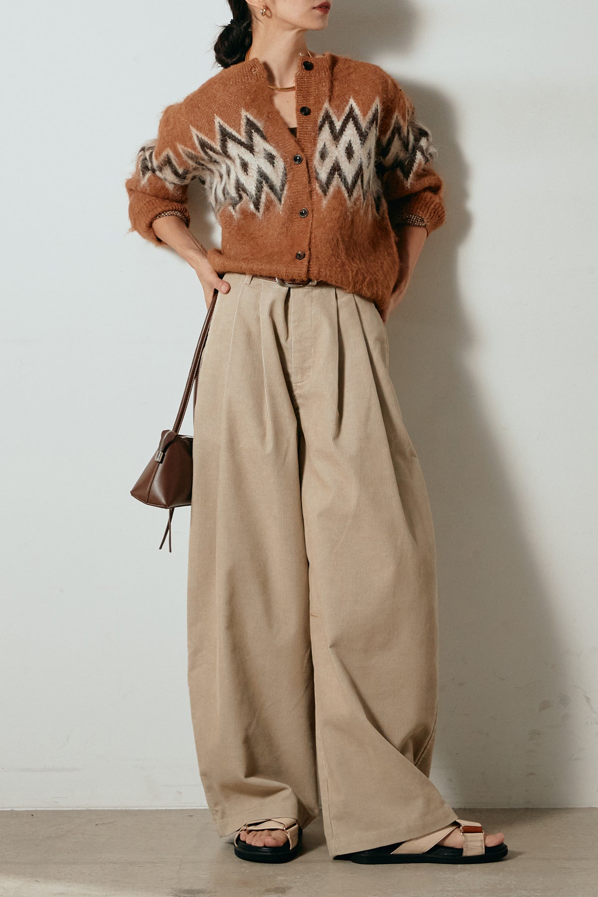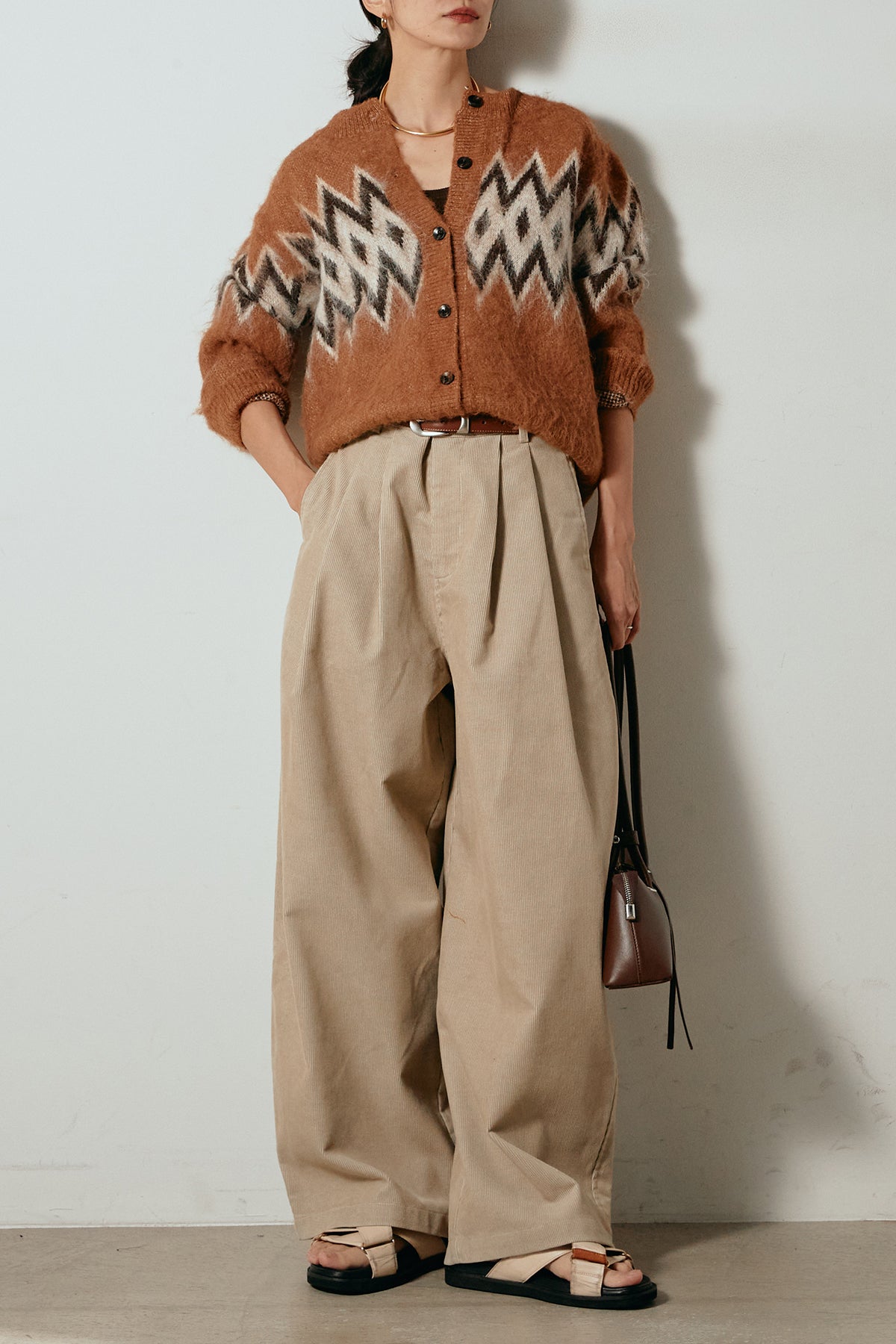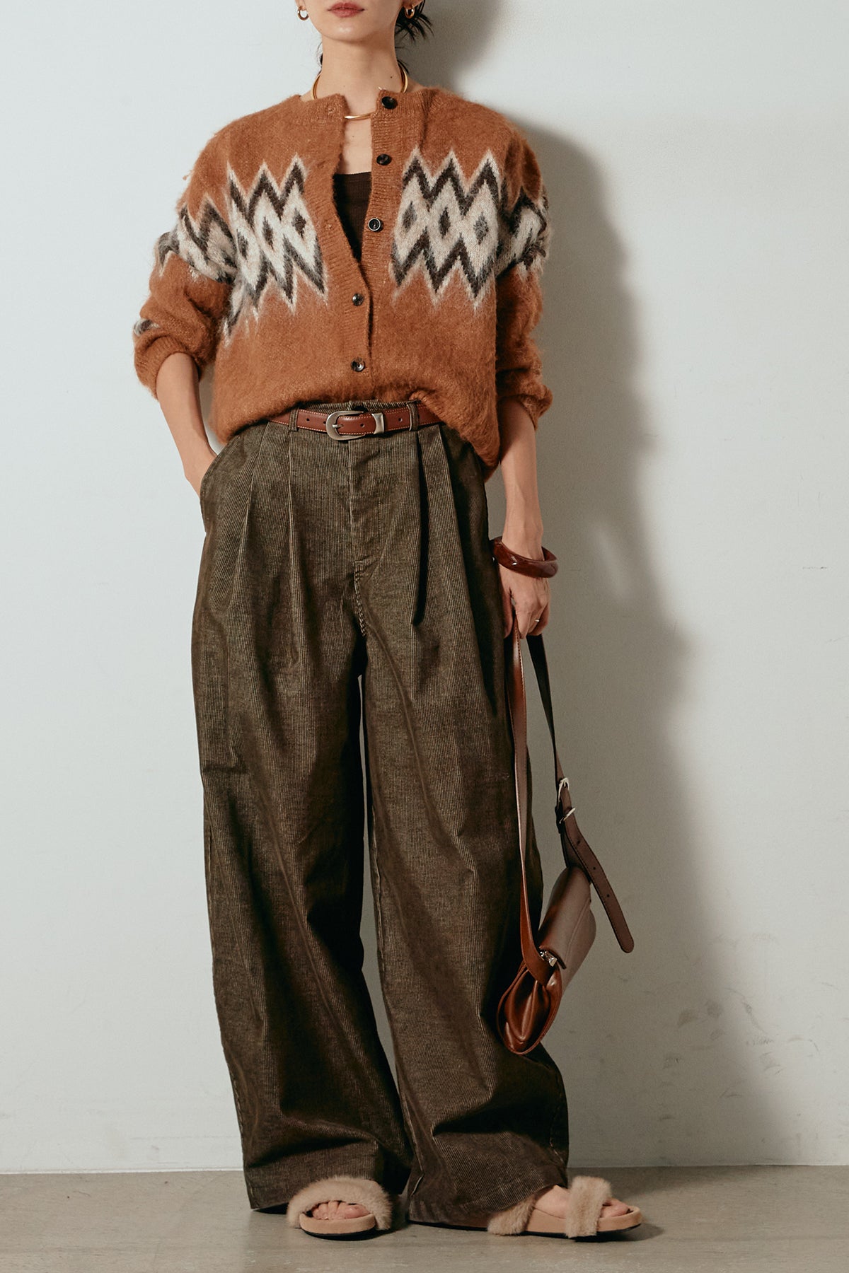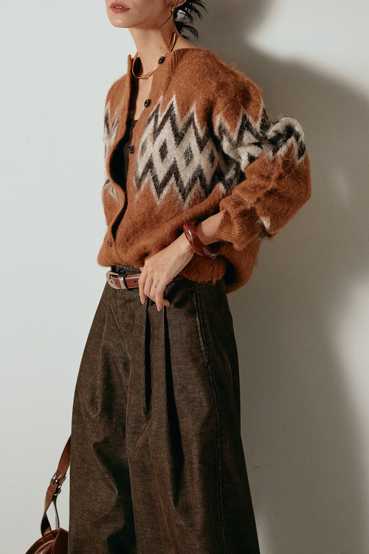 [SET]起毛ノルディック柄ニットカーディガン+フロントタック入りコーデュロイパンツ(2set)