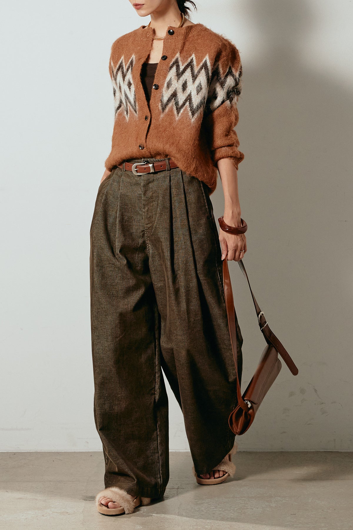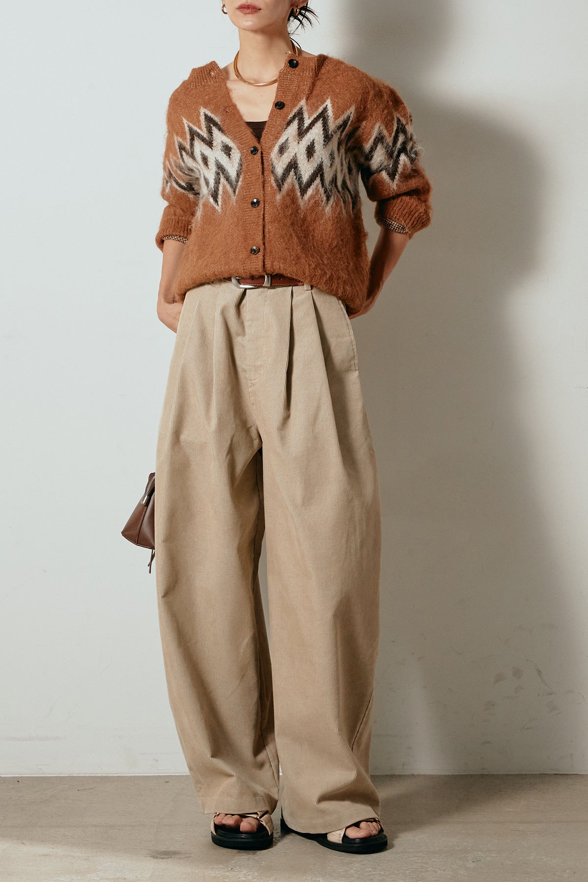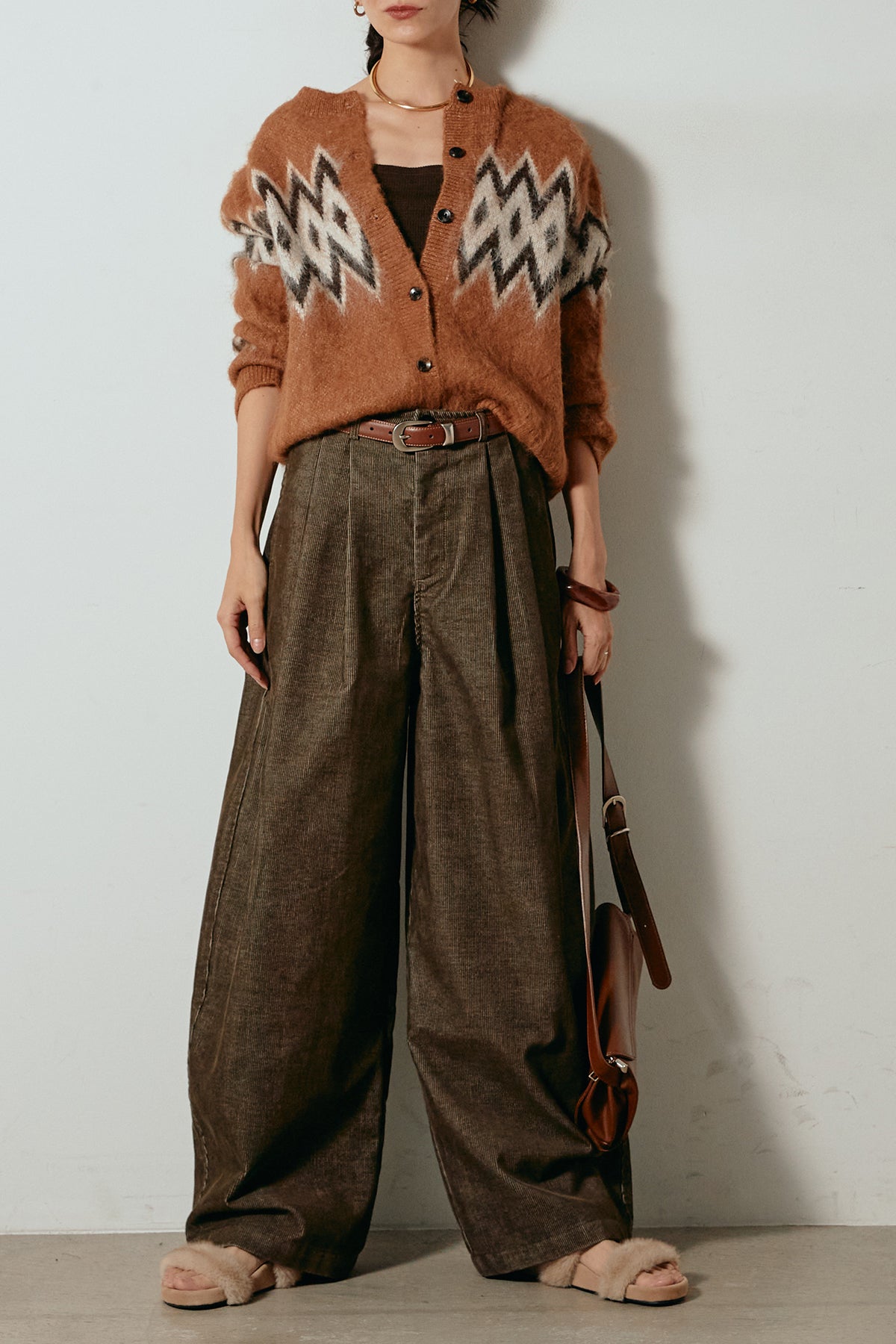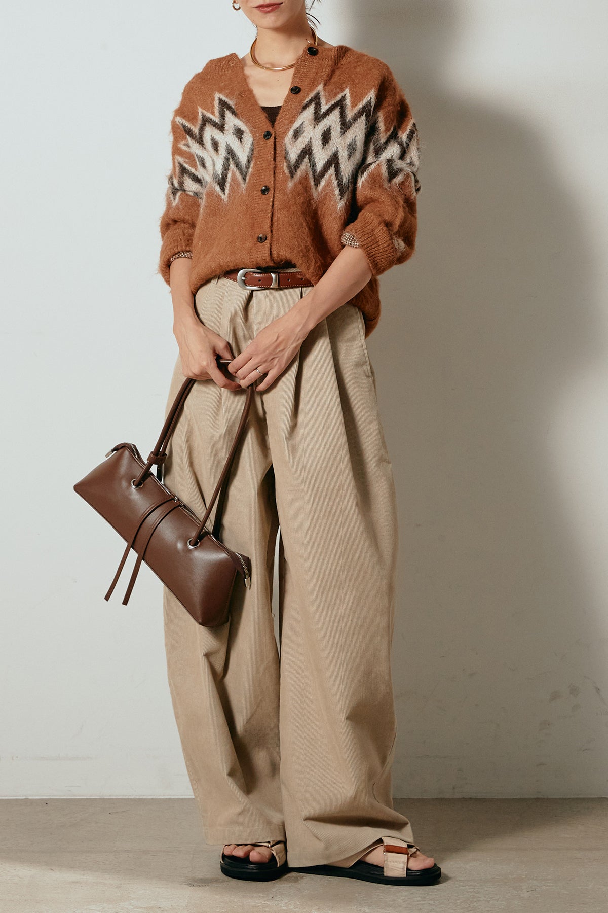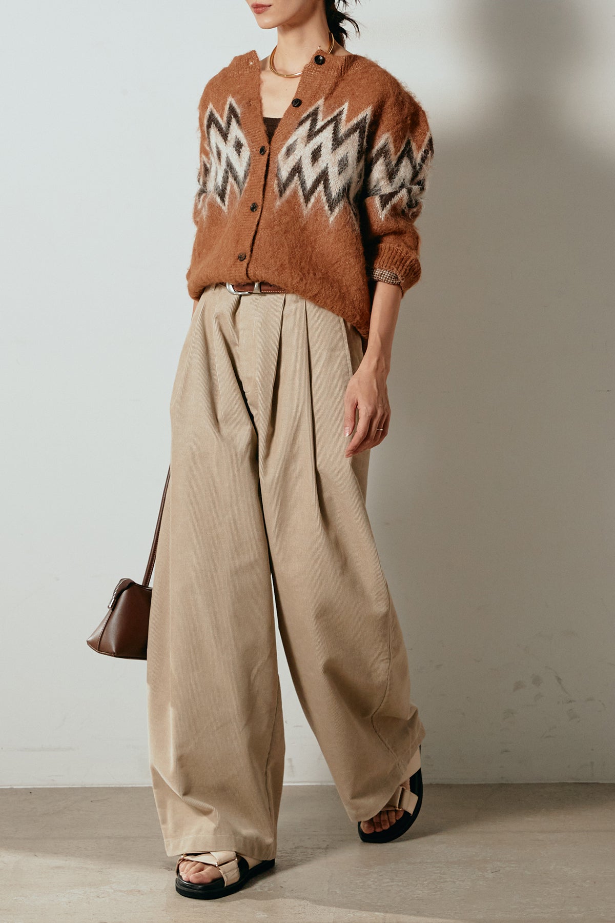 [SET]起毛ノルディック柄ニットカーディガン+フロントタック入りコーデュロイパンツ(2set)