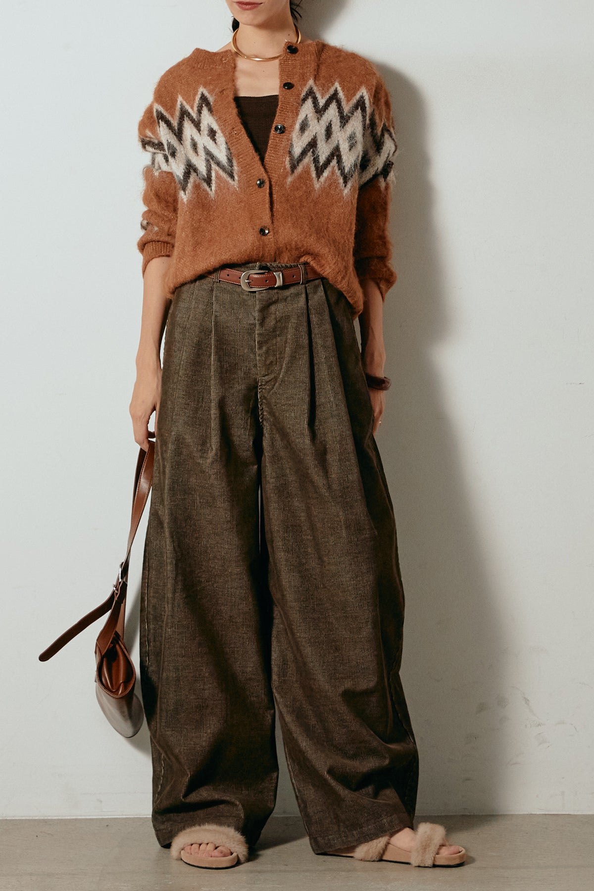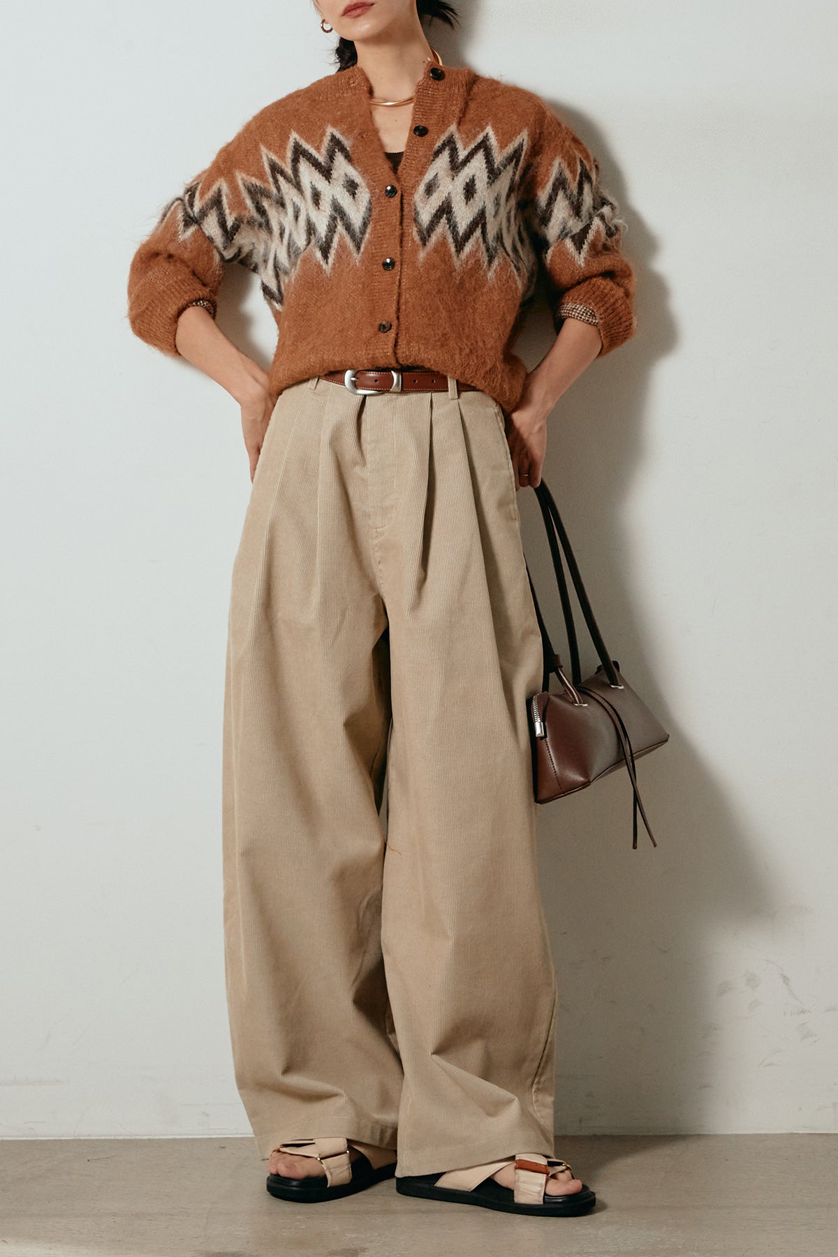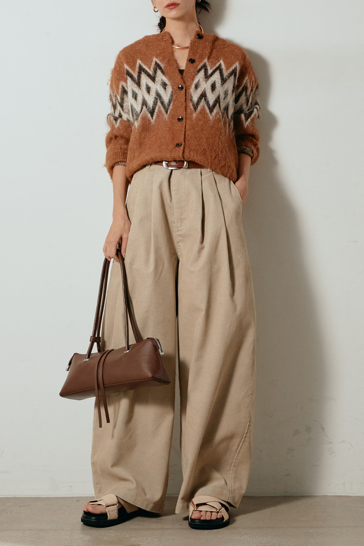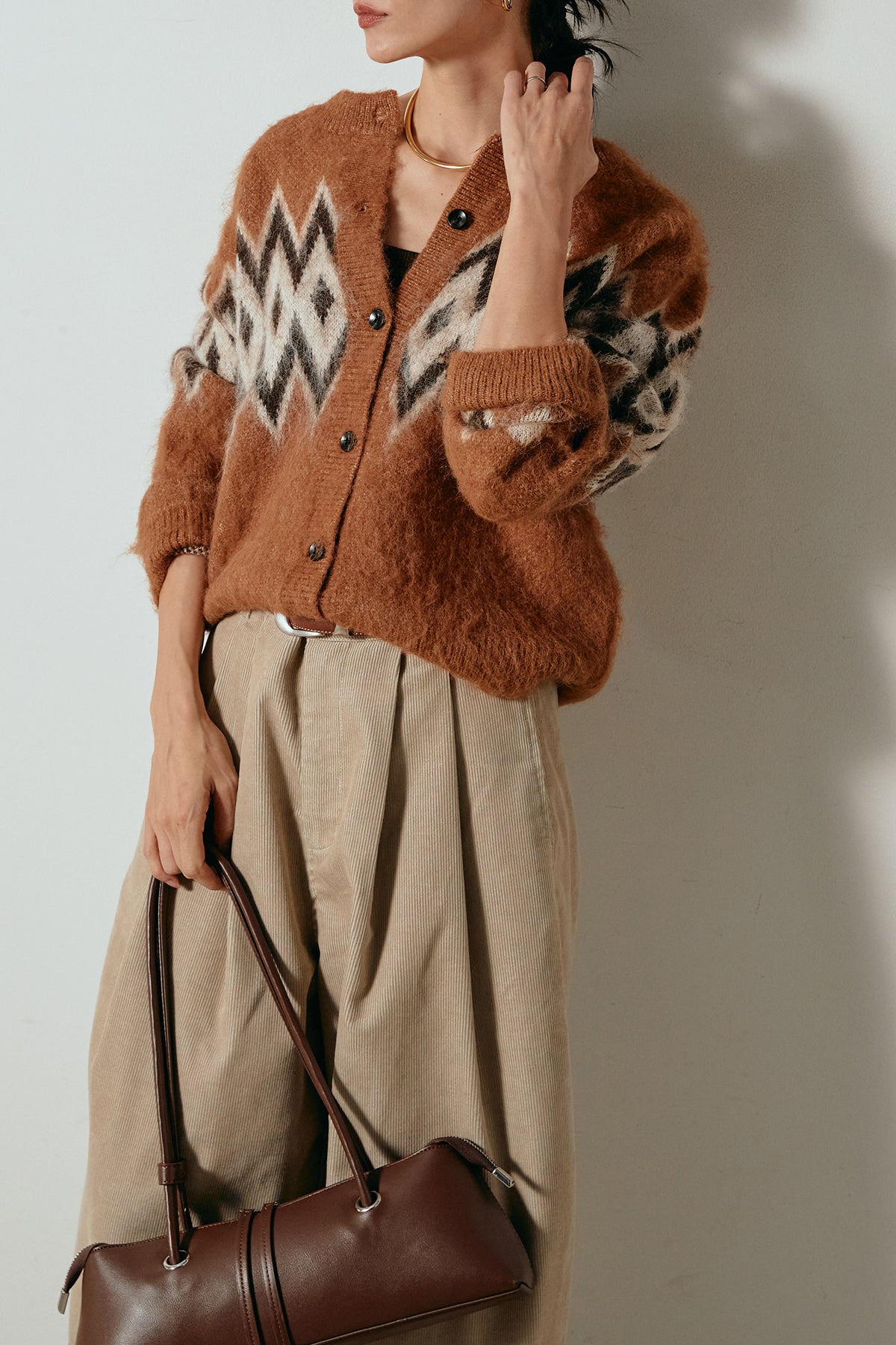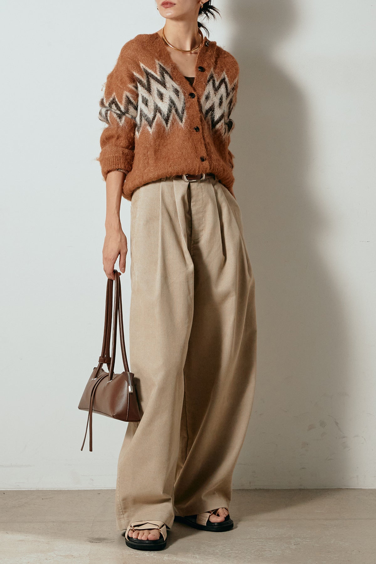 [SET]起毛ノルディック柄ニットカーディガン+フロントタック入りコーデュロイパンツ(2set)
