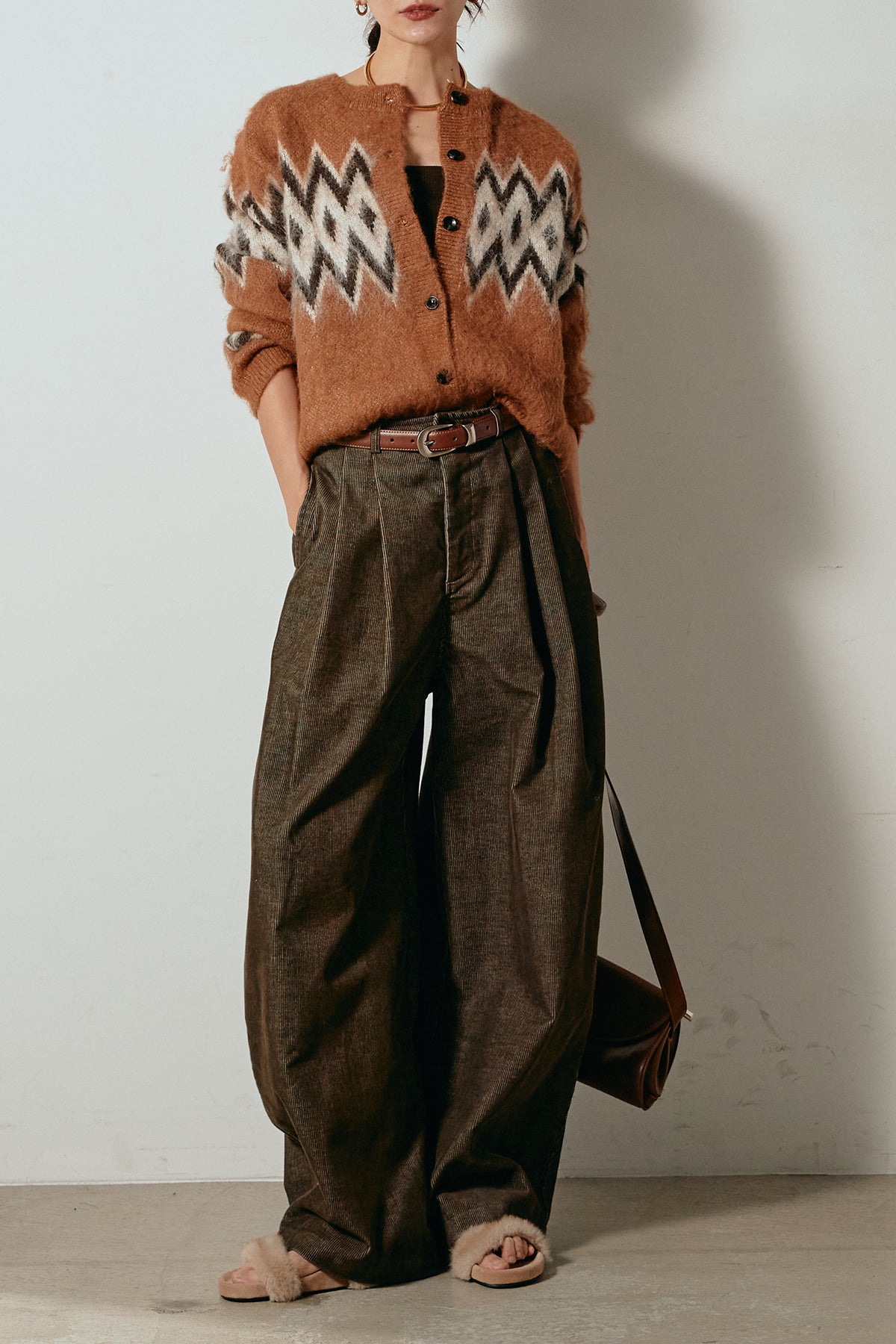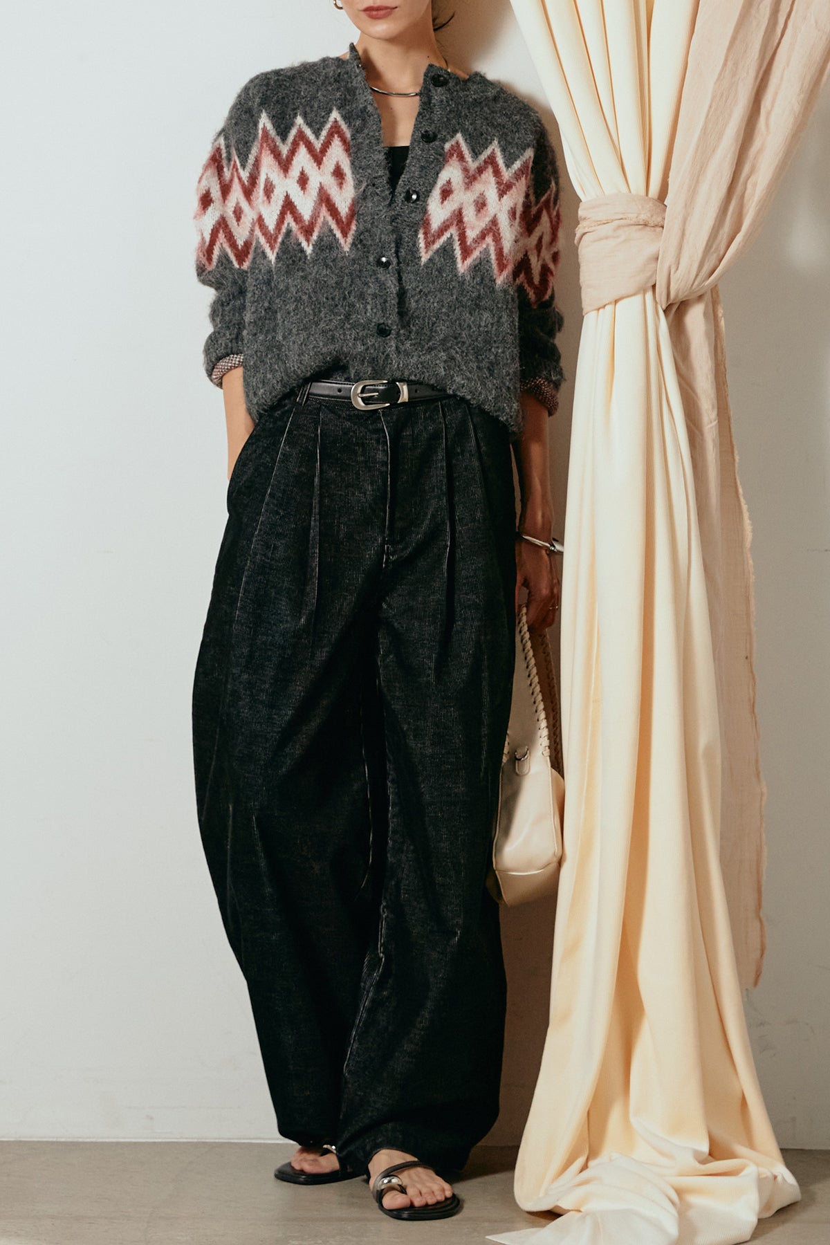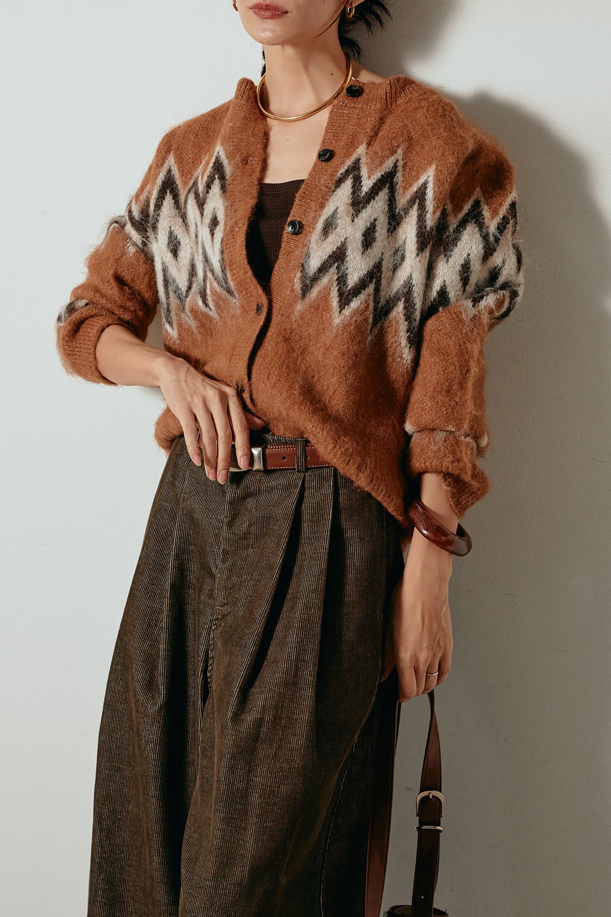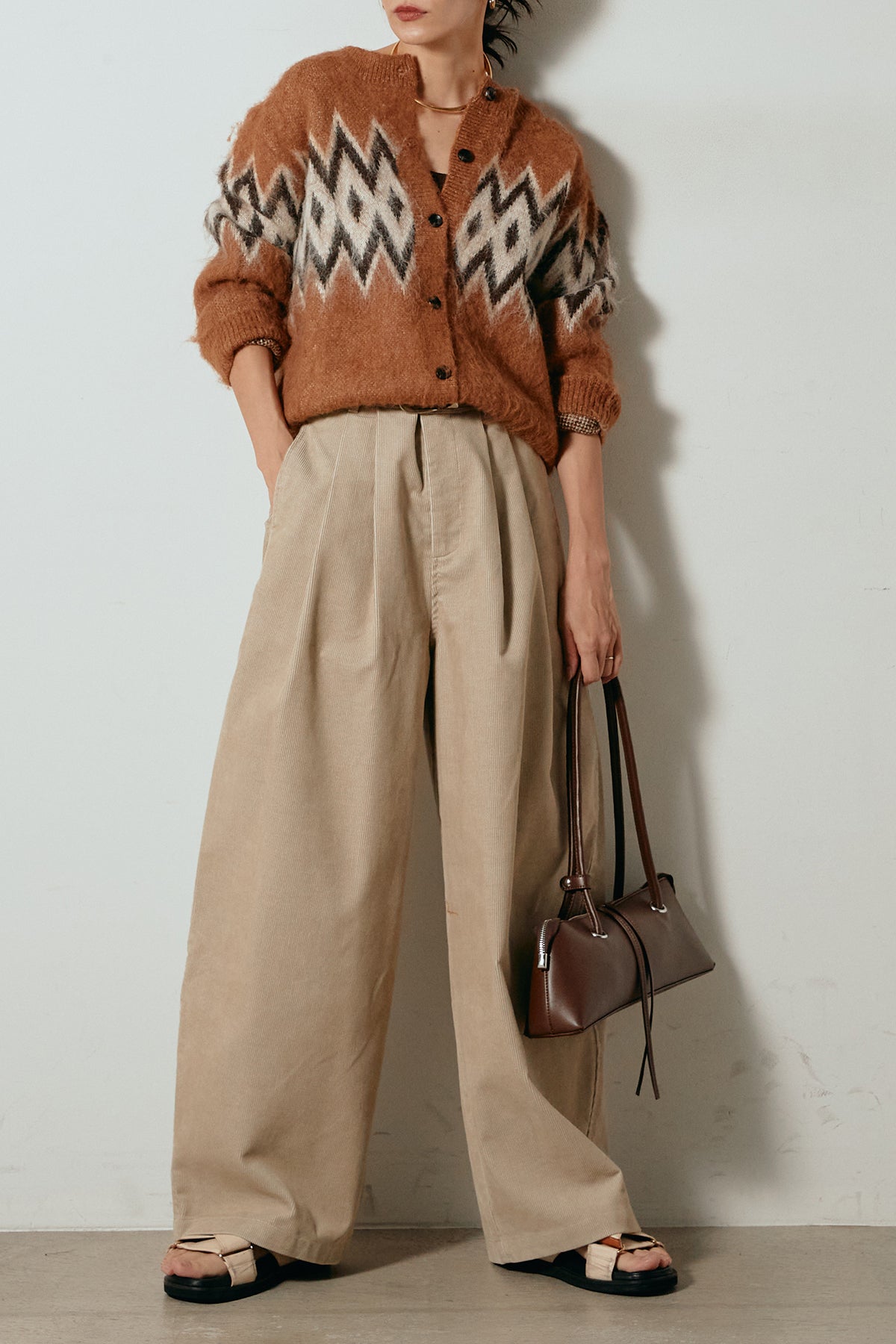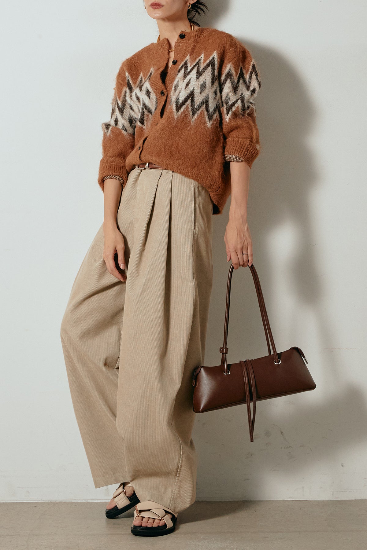 [SET]起毛ノルディック柄ニットカーディガン+フロントタック入りコーデュロイパンツ(2set)