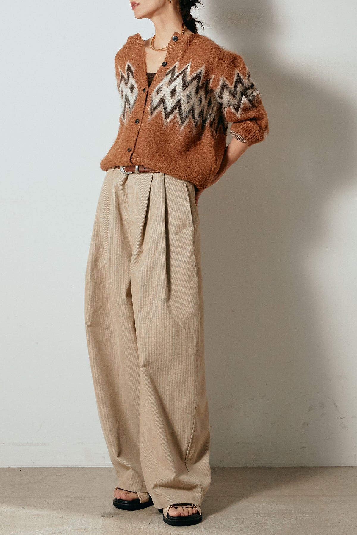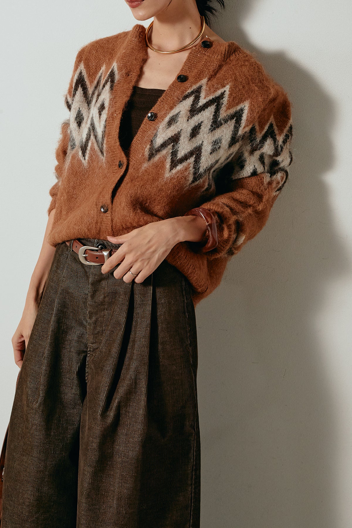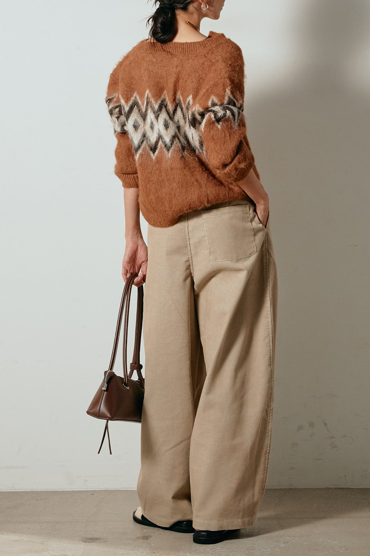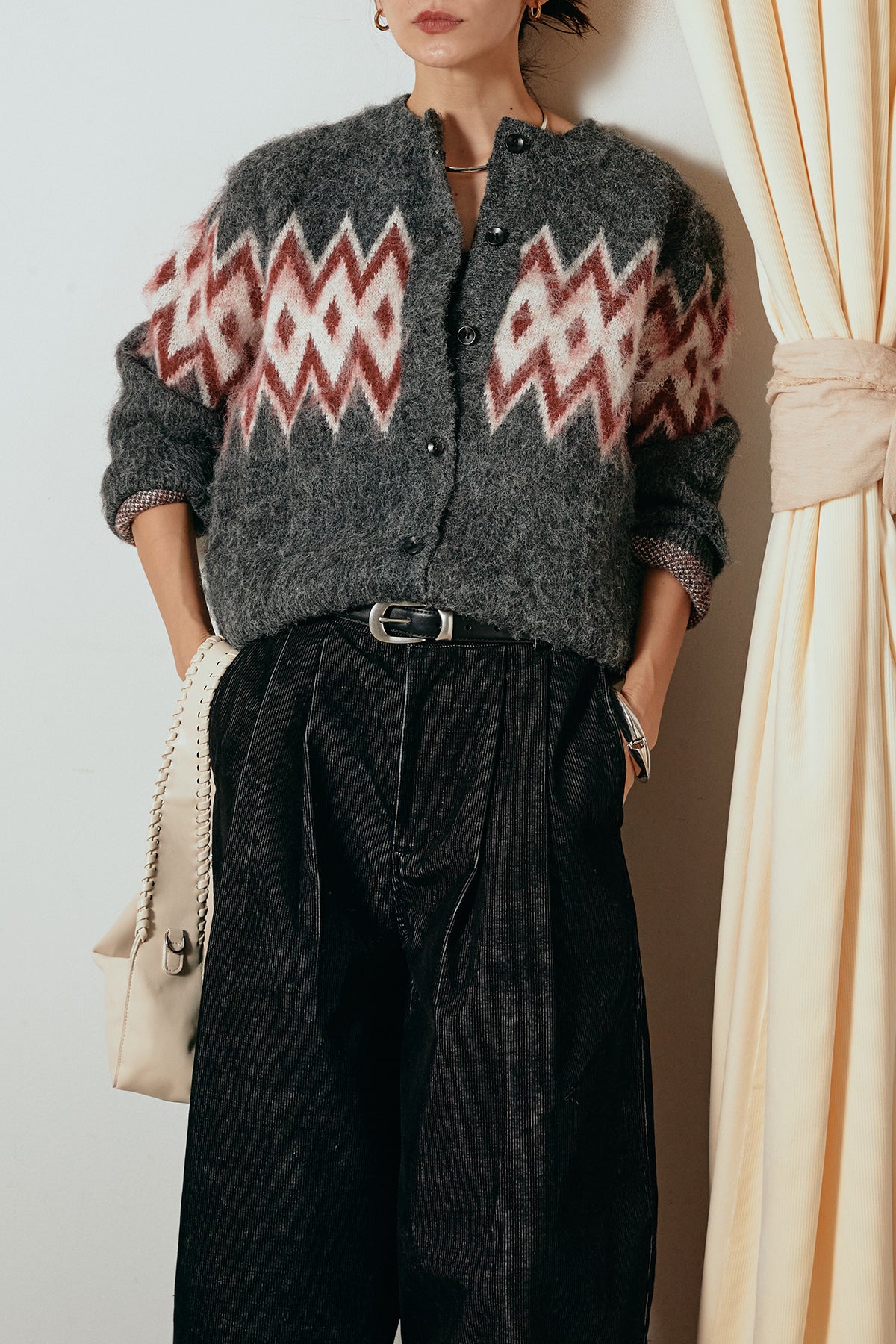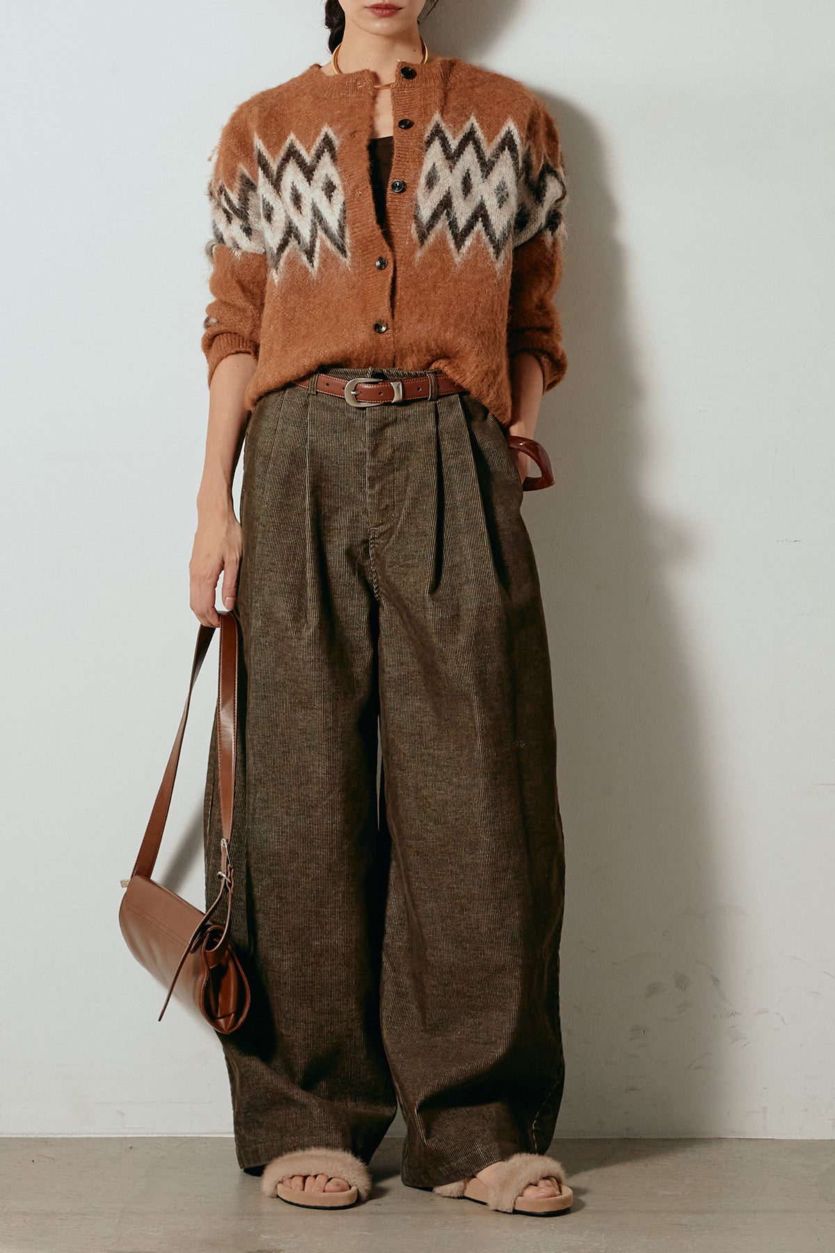 [SET]起毛ノルディック柄ニットカーディガン+フロントタック入りコーデュロイパンツ(2set)