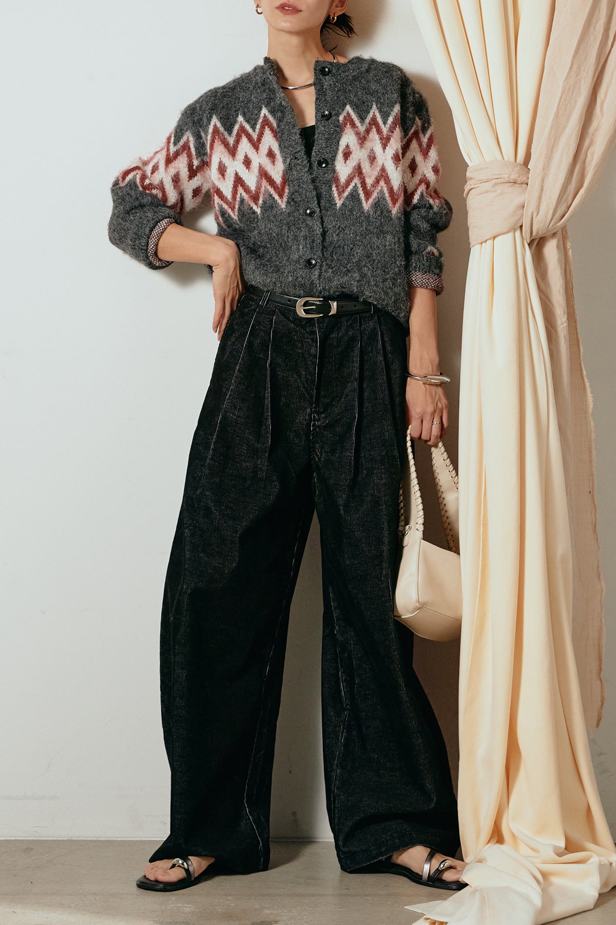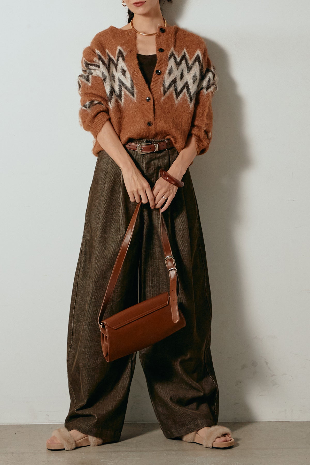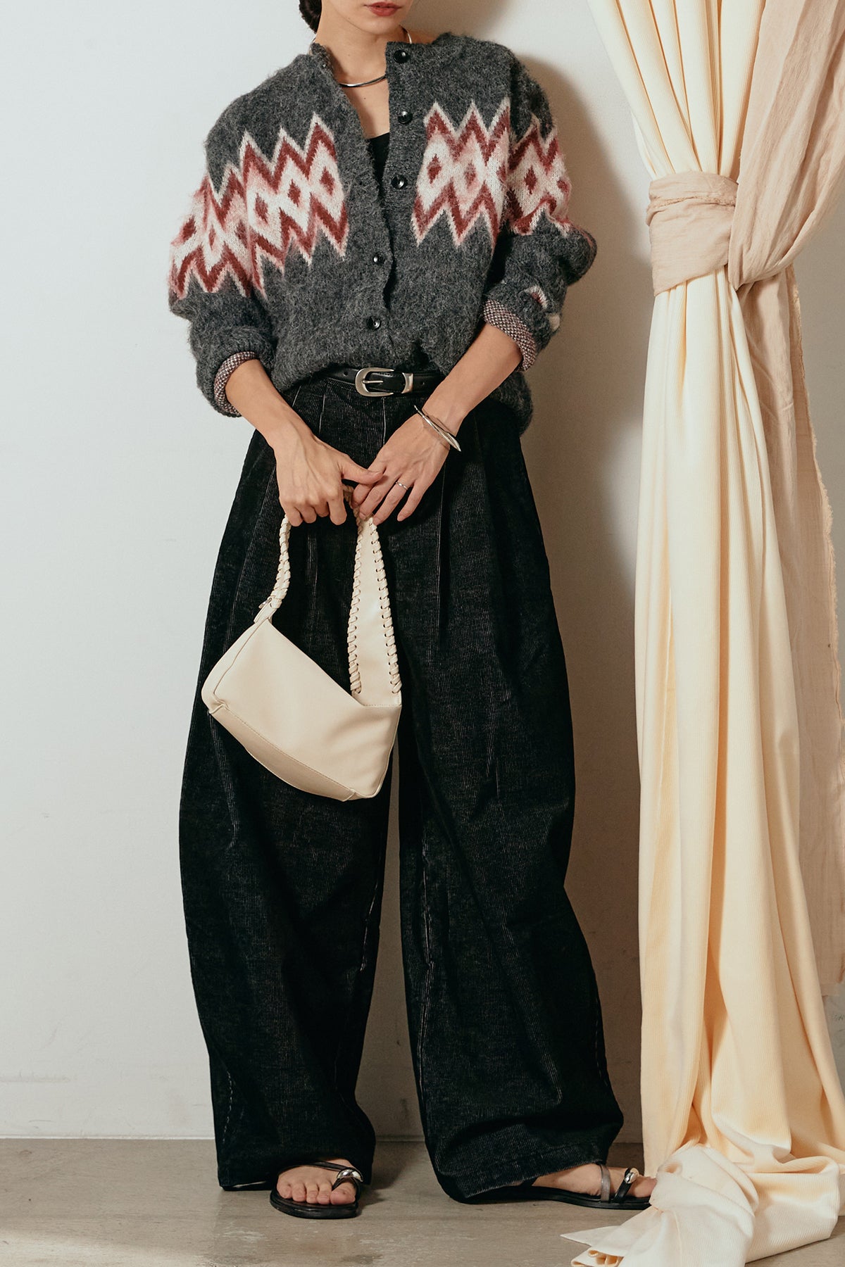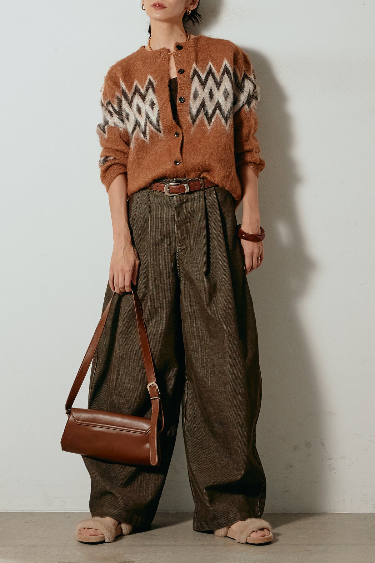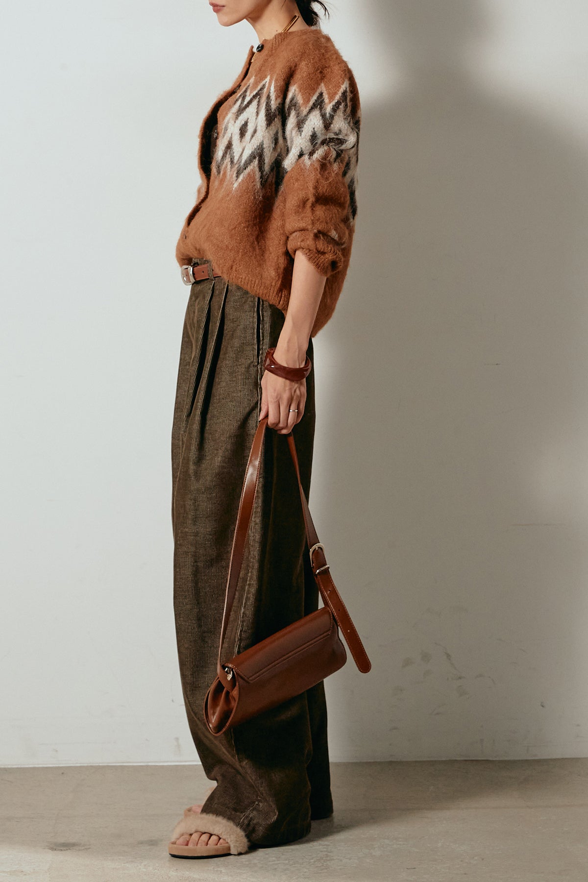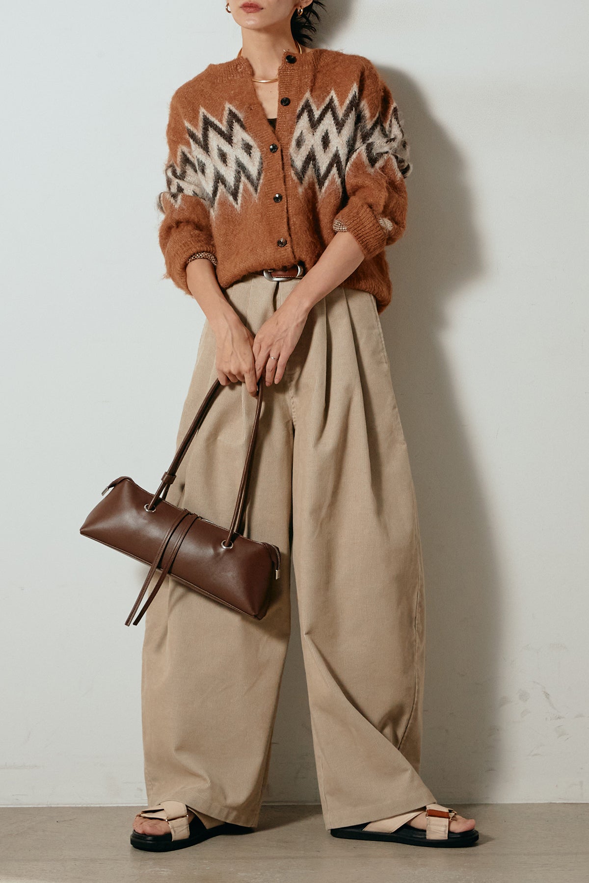 [SET]起毛ノルディック柄ニットカーディガン+フロントタック入りコーデュロイパンツ(2set)