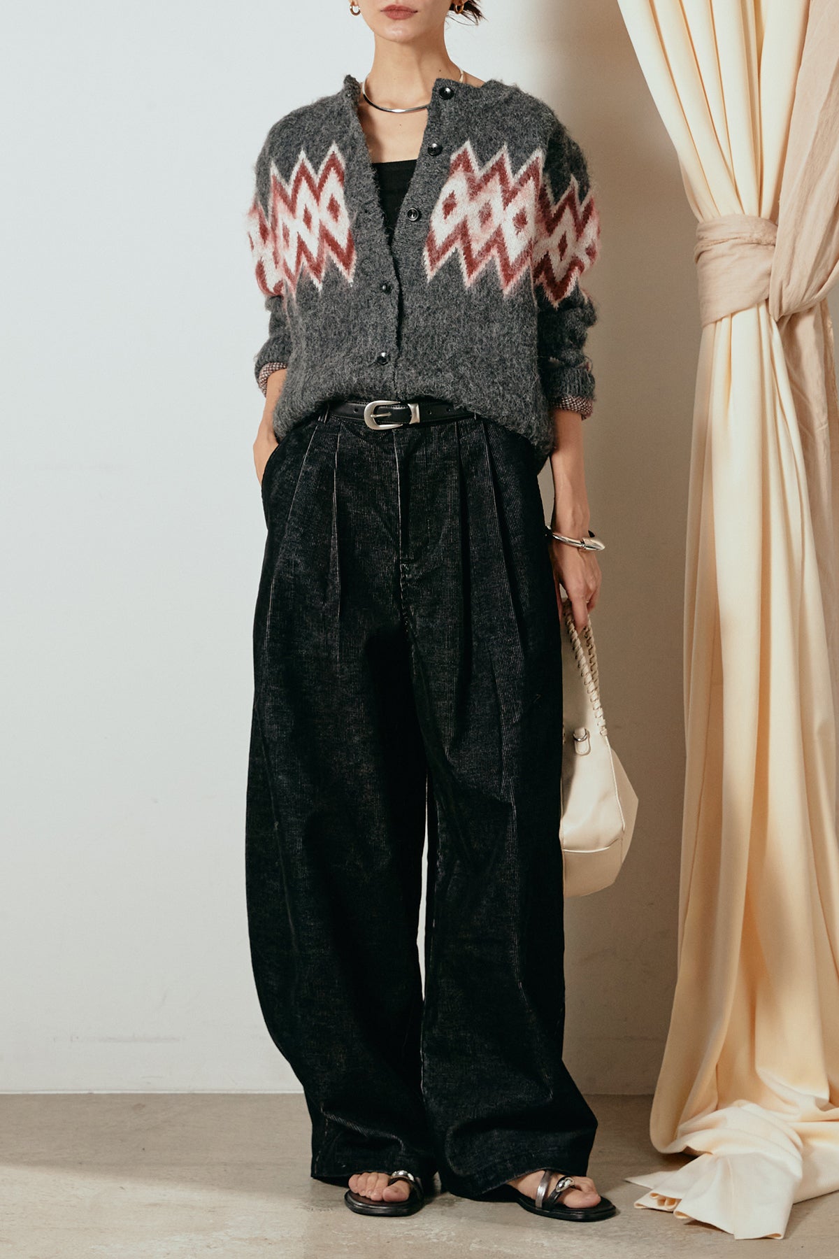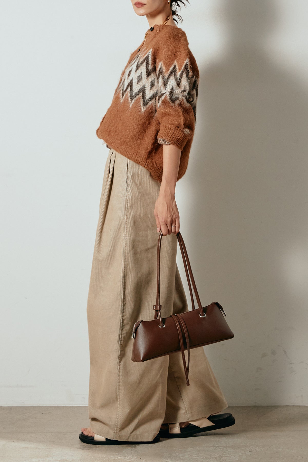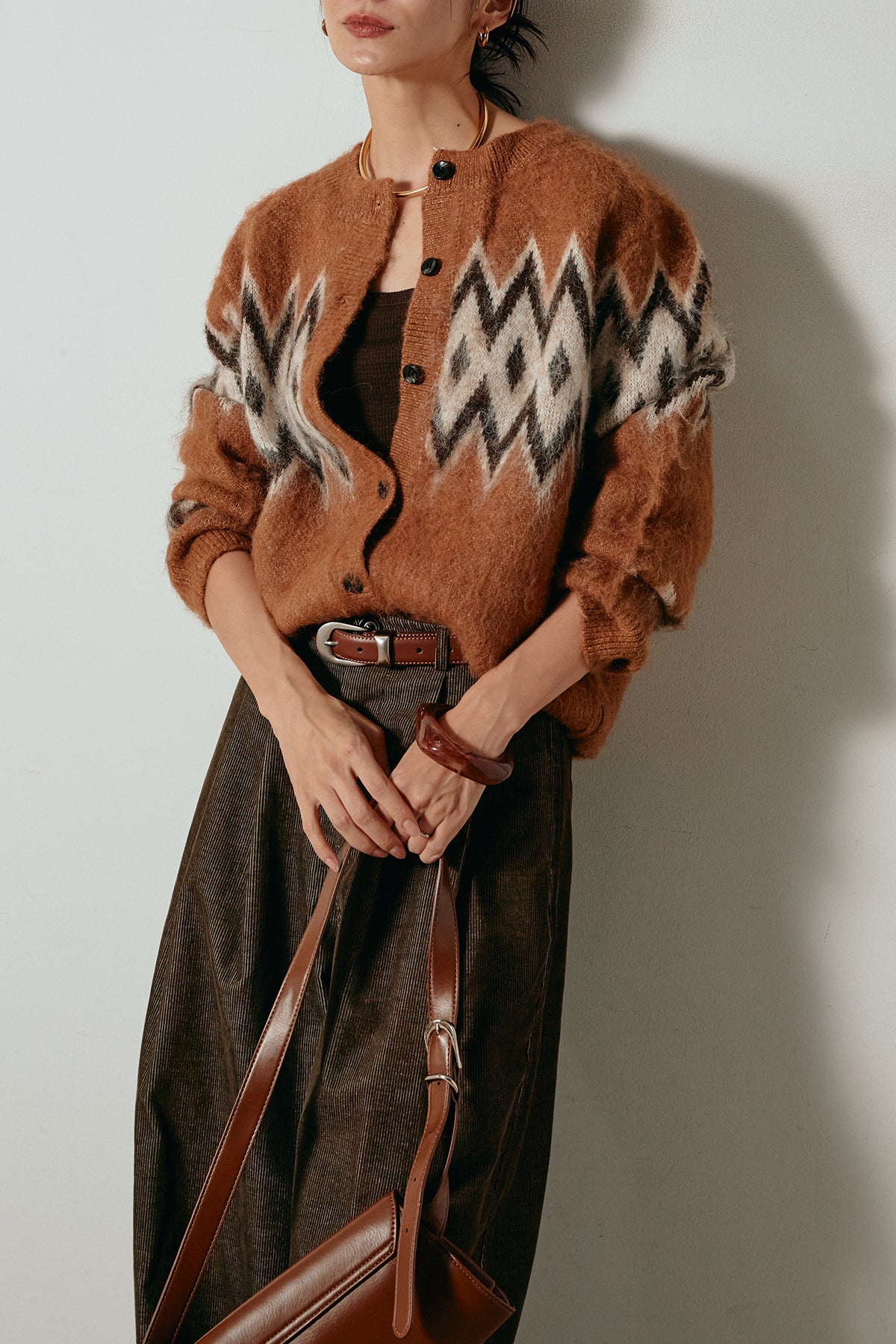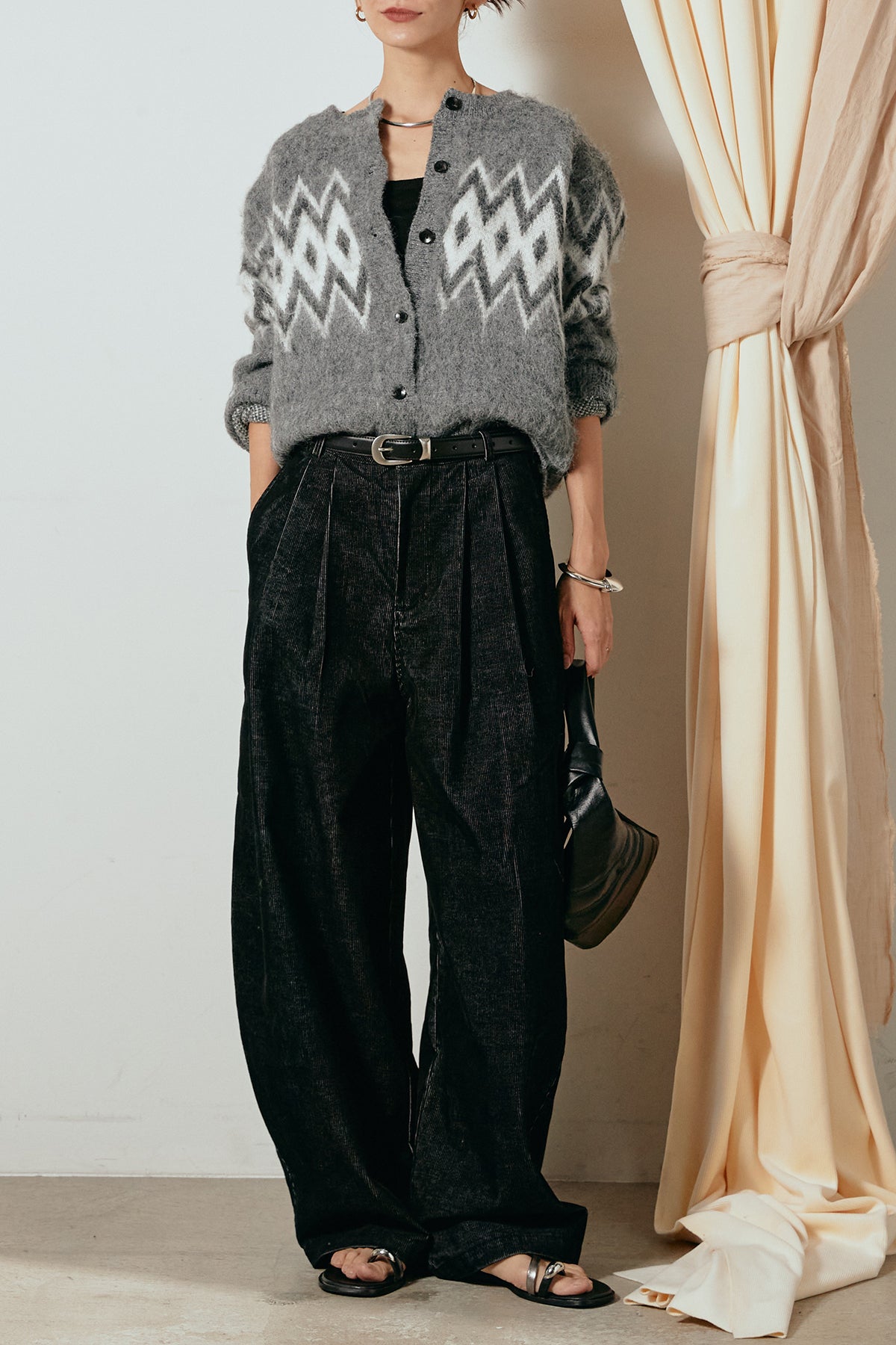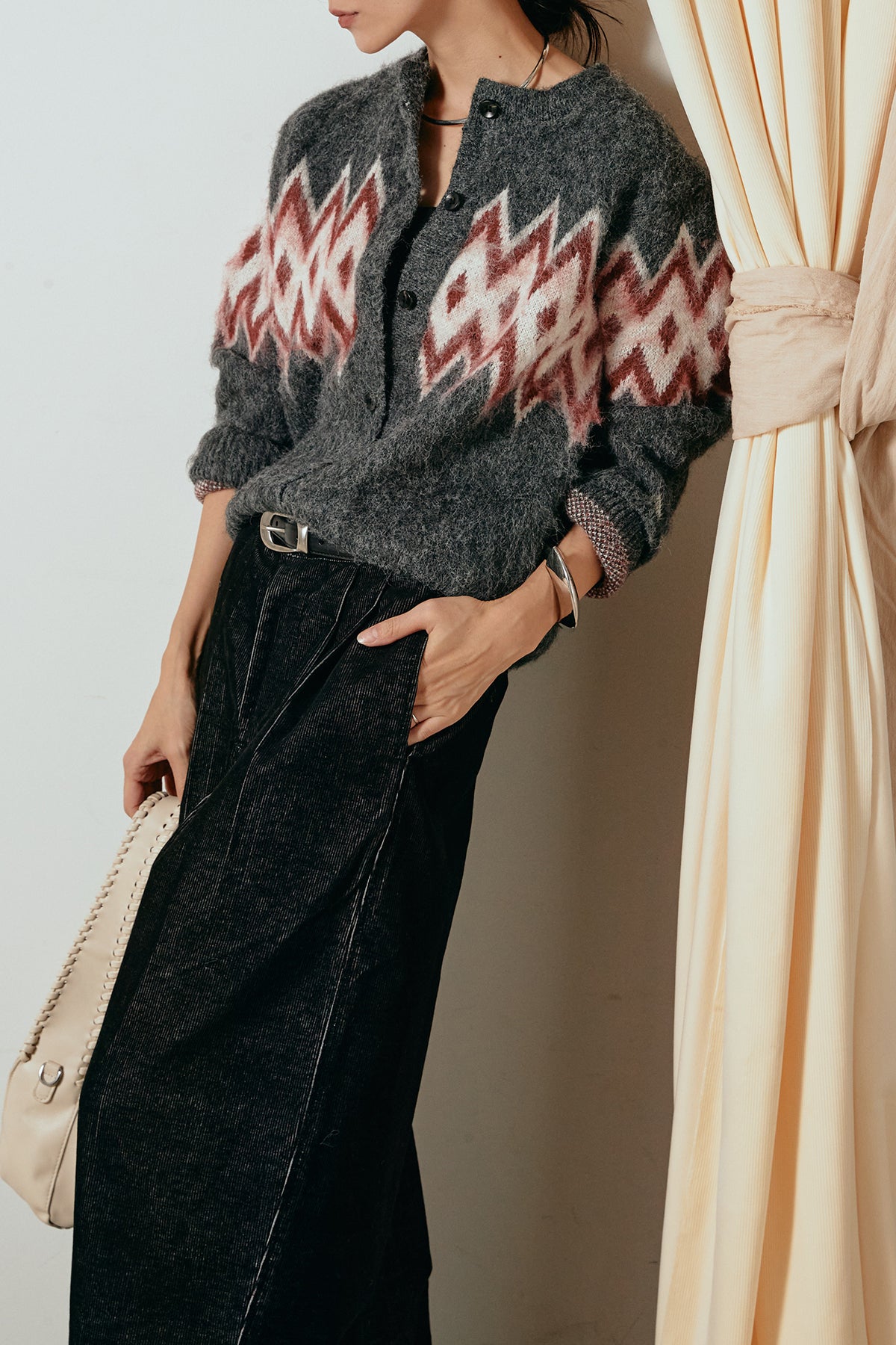 [SET]起毛ノルディック柄ニットカーディガン+フロントタック入りコーデュロイパンツ(2set)