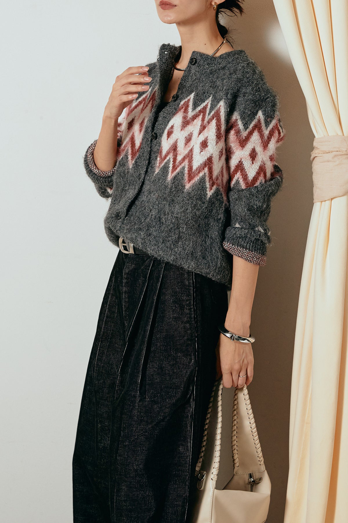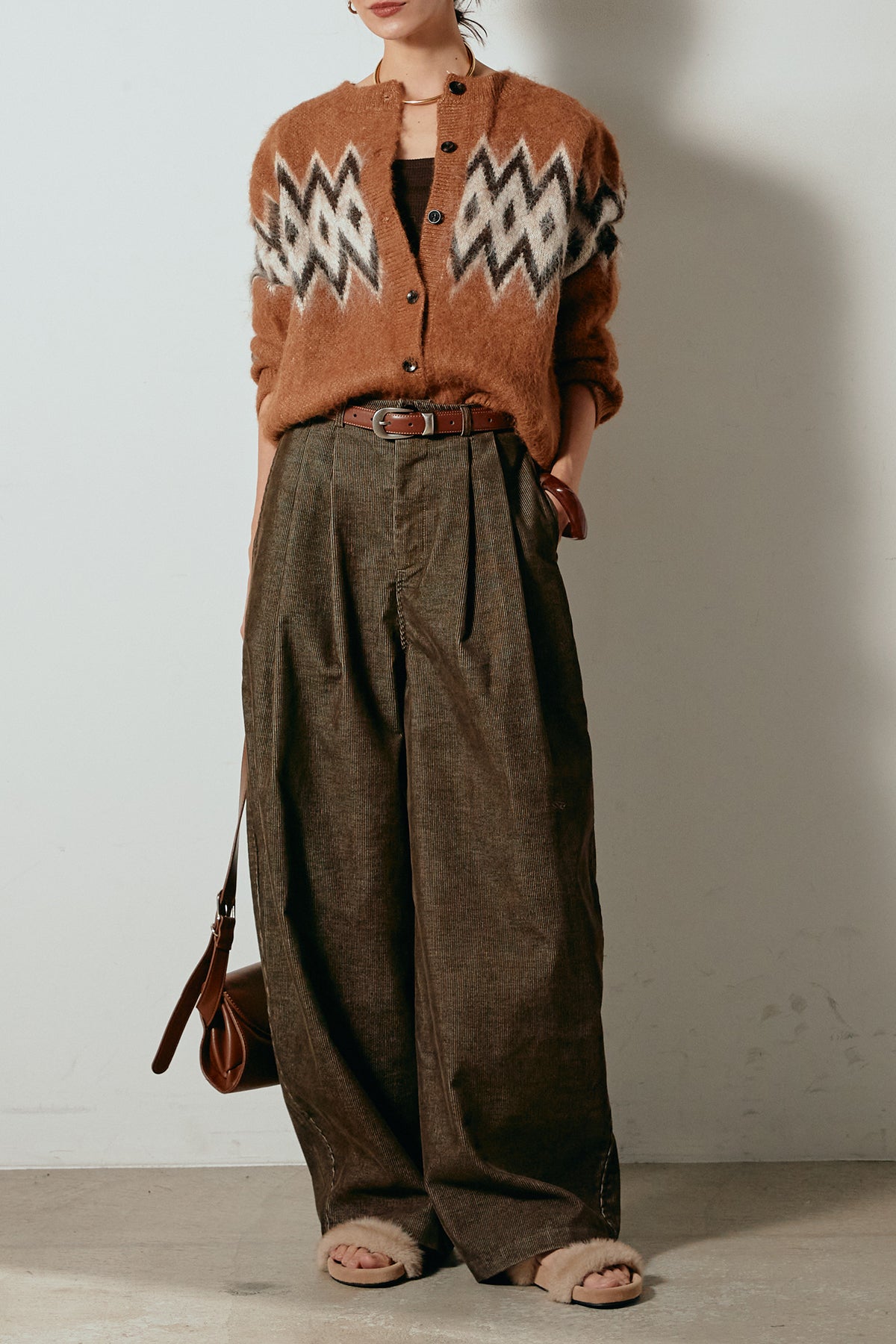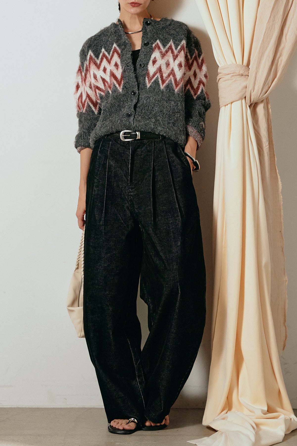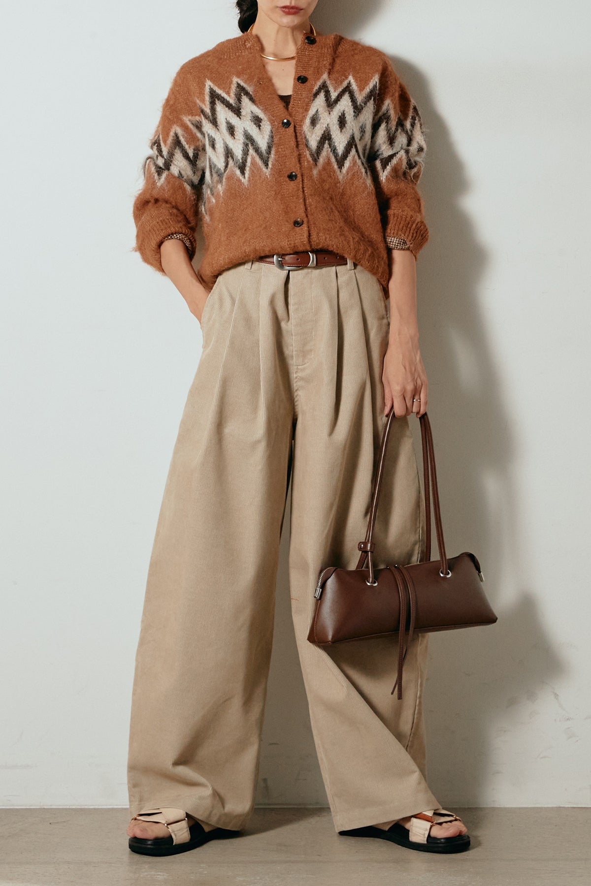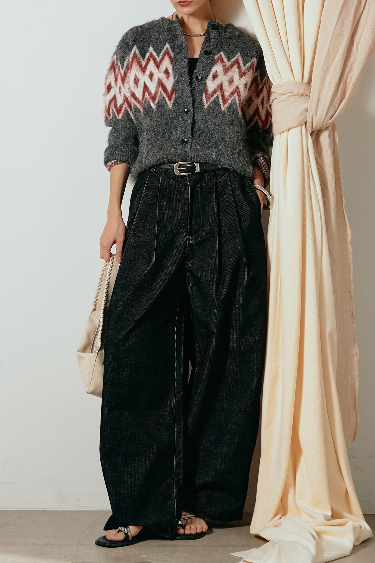 [SET]起毛ノルディック柄ニットカーディガン+フロントタック入りコーデュロイパンツ(2set)