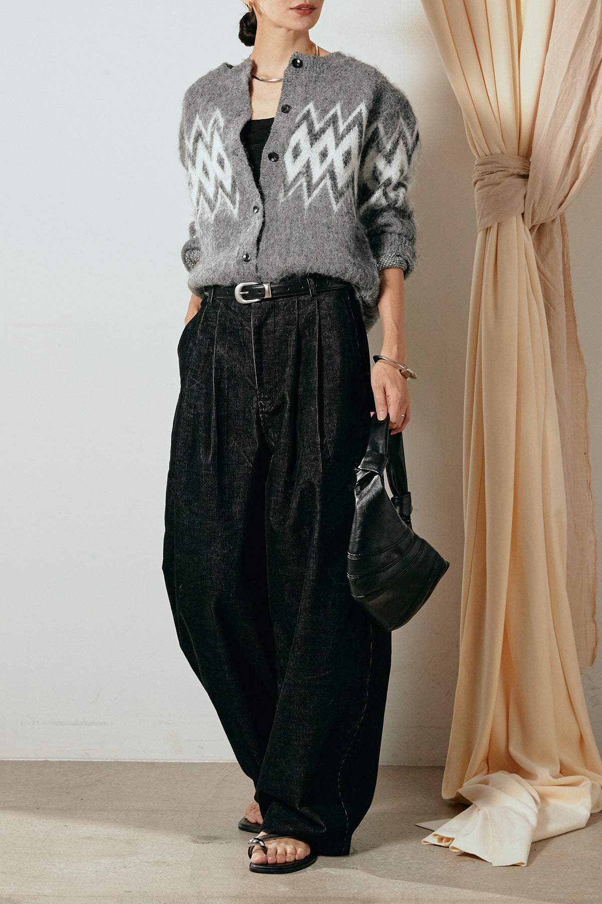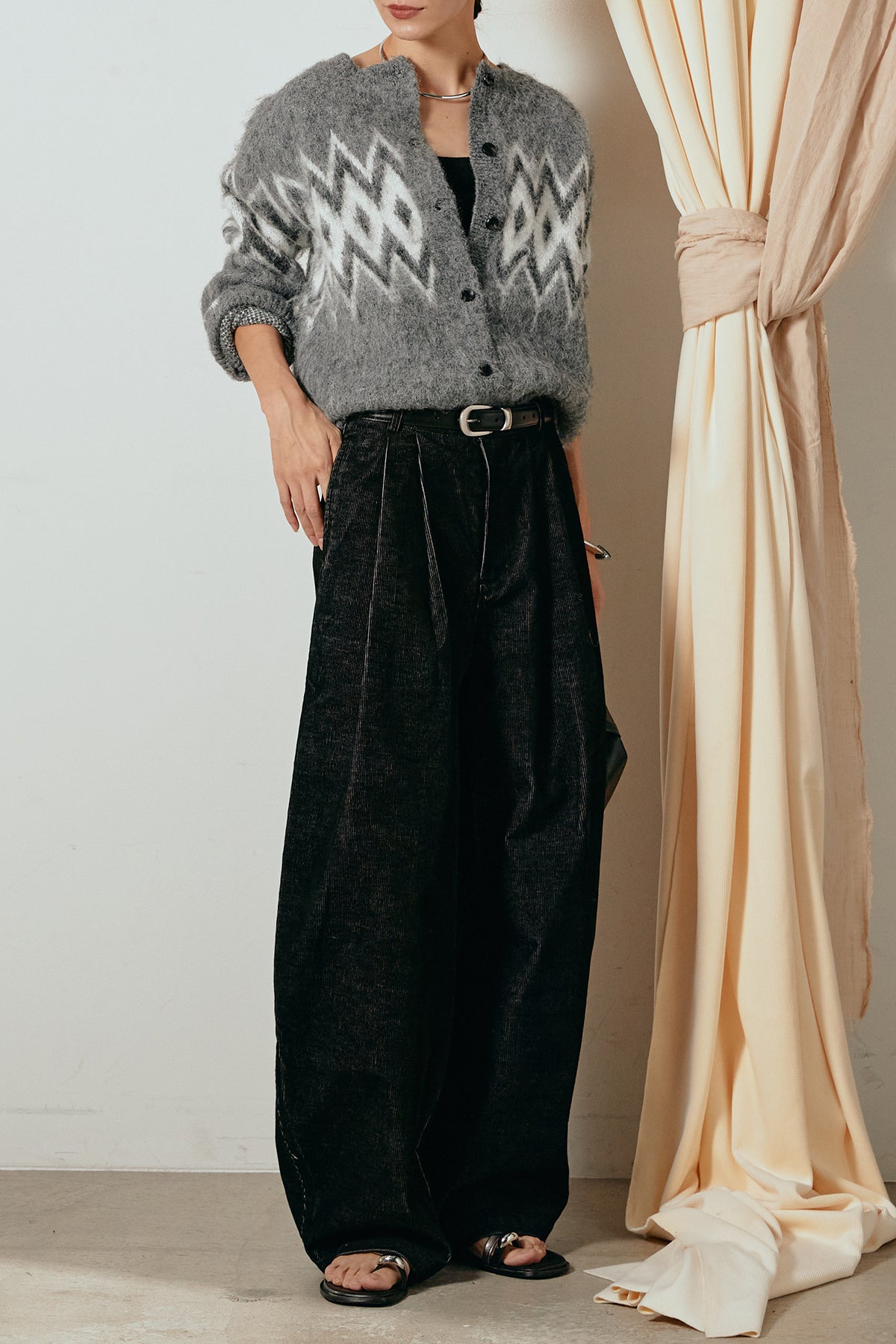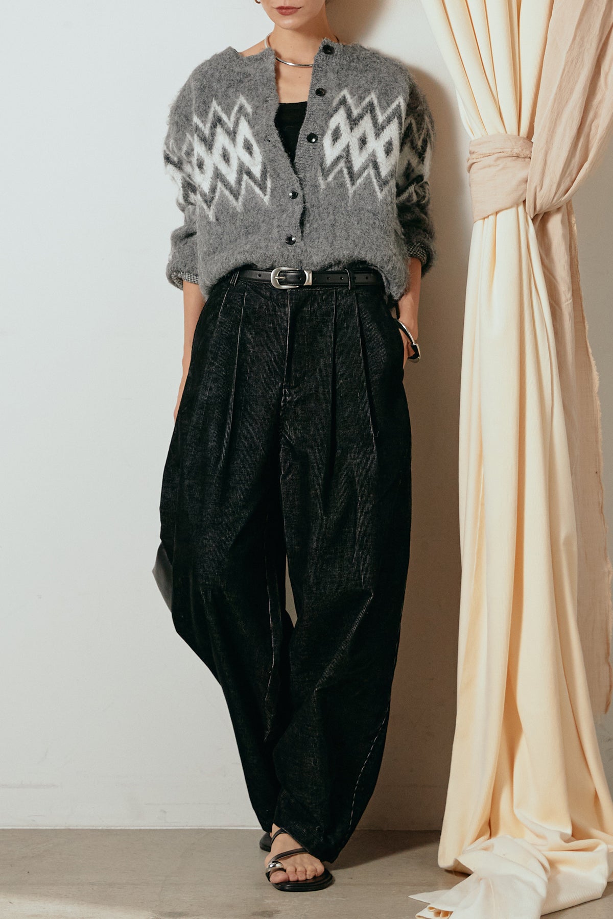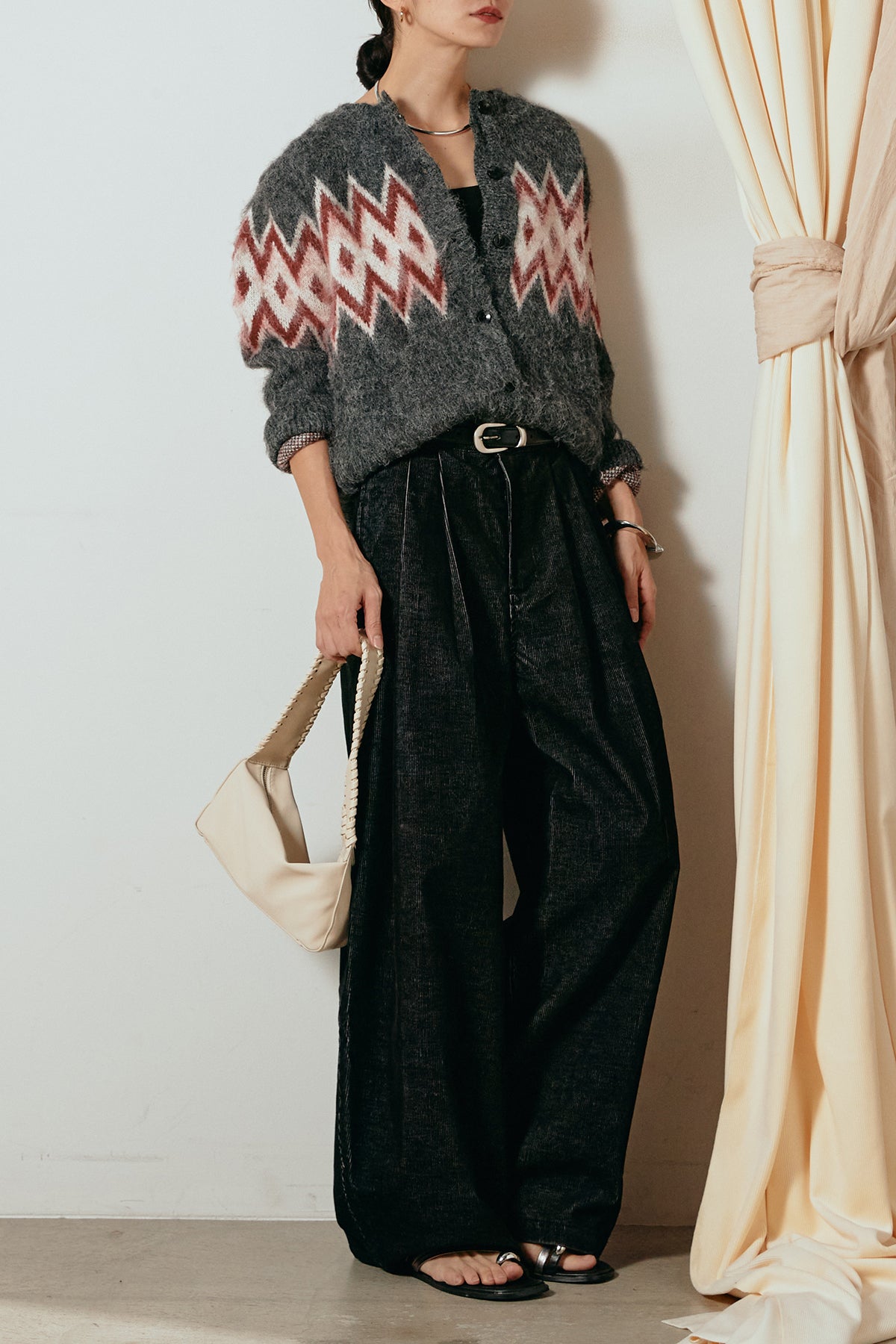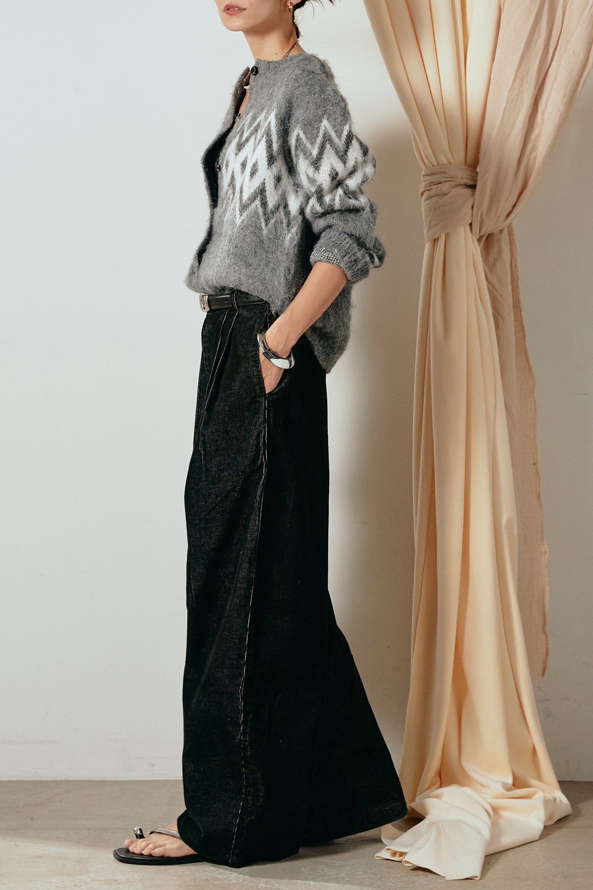 [SET]起毛ノルディック柄ニットカーディガン+フロントタック入りコーデュロイパンツ(2set)