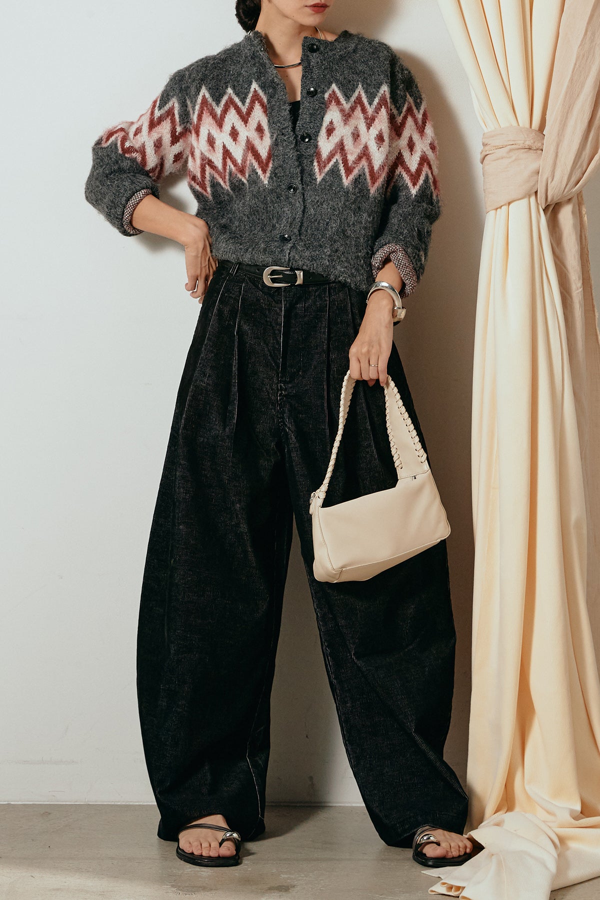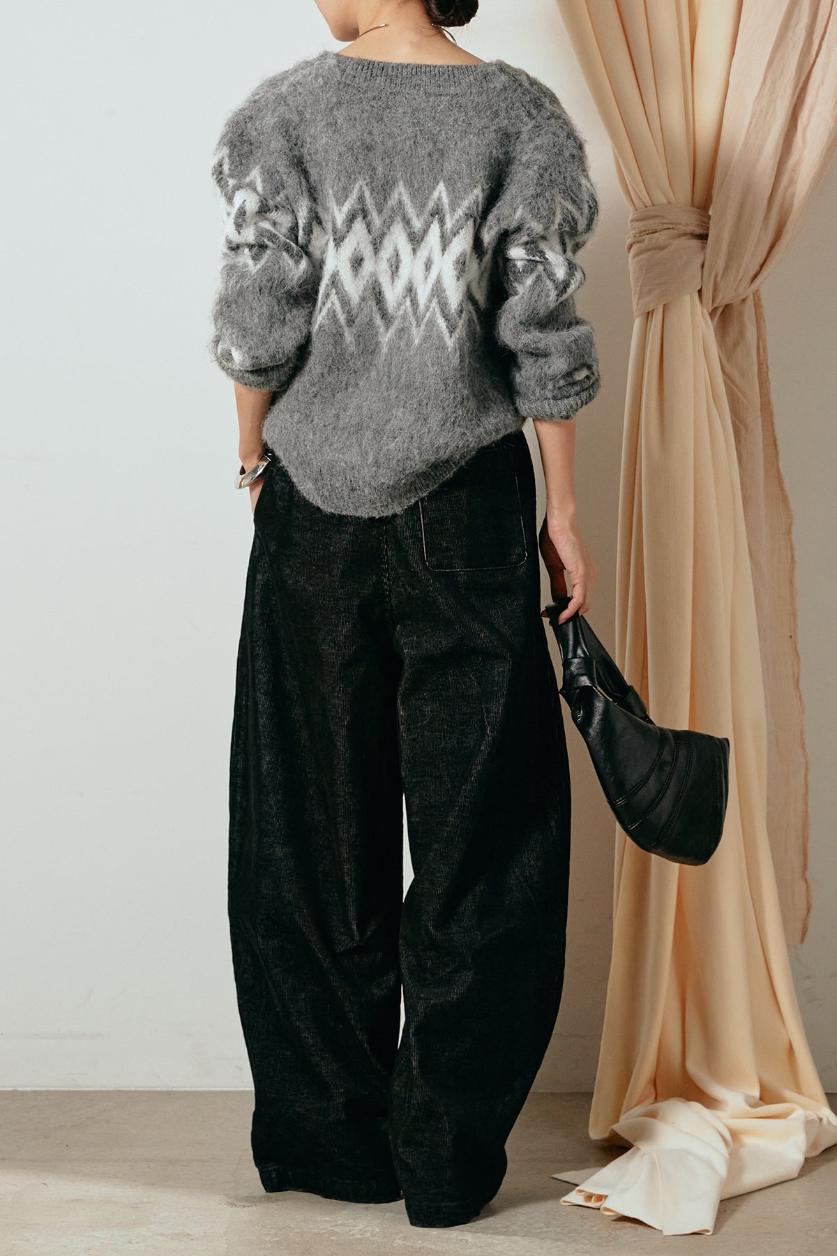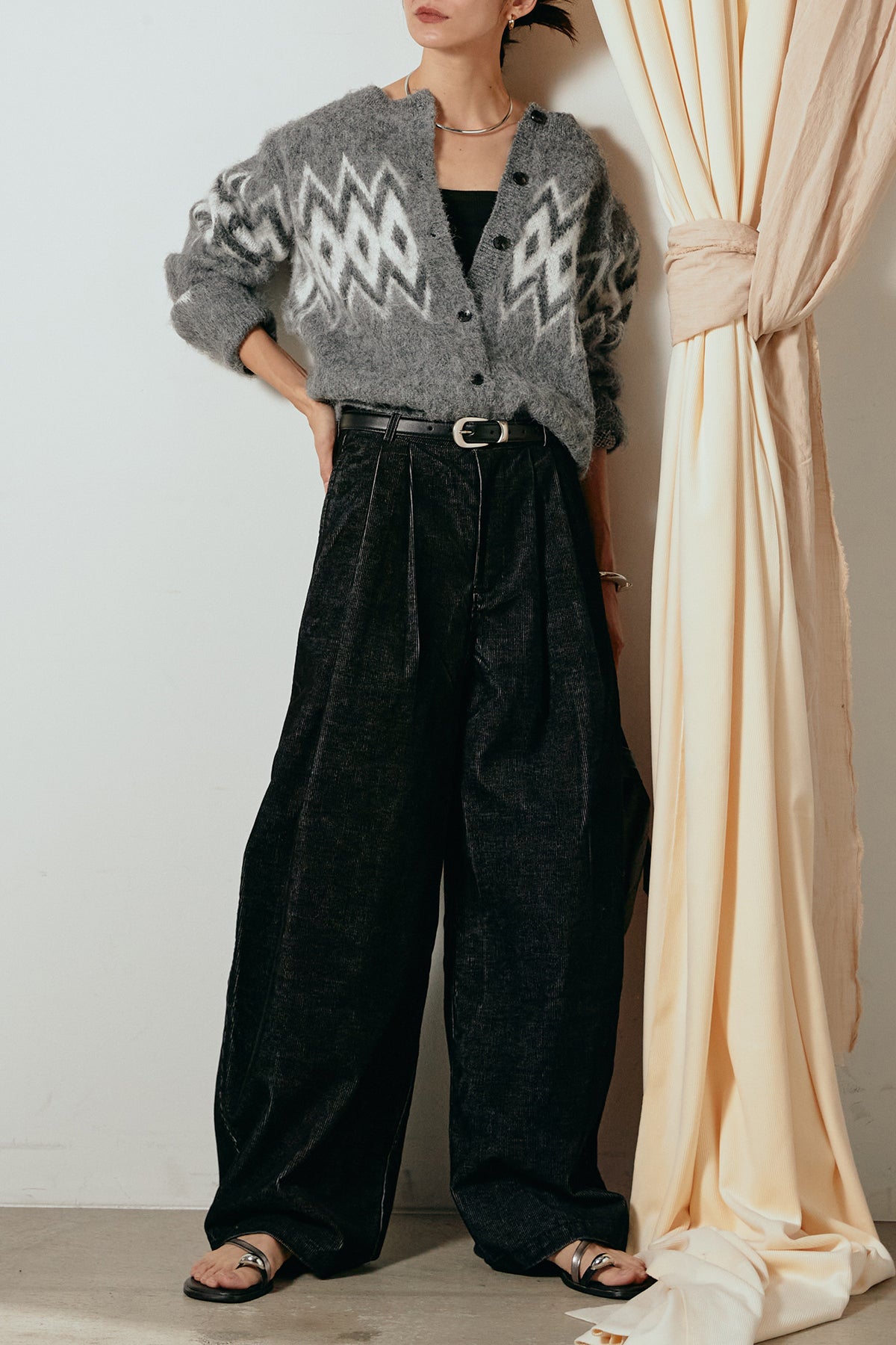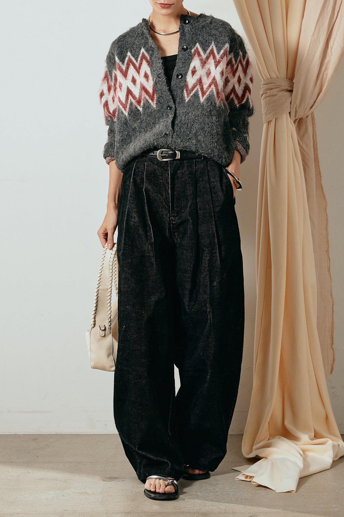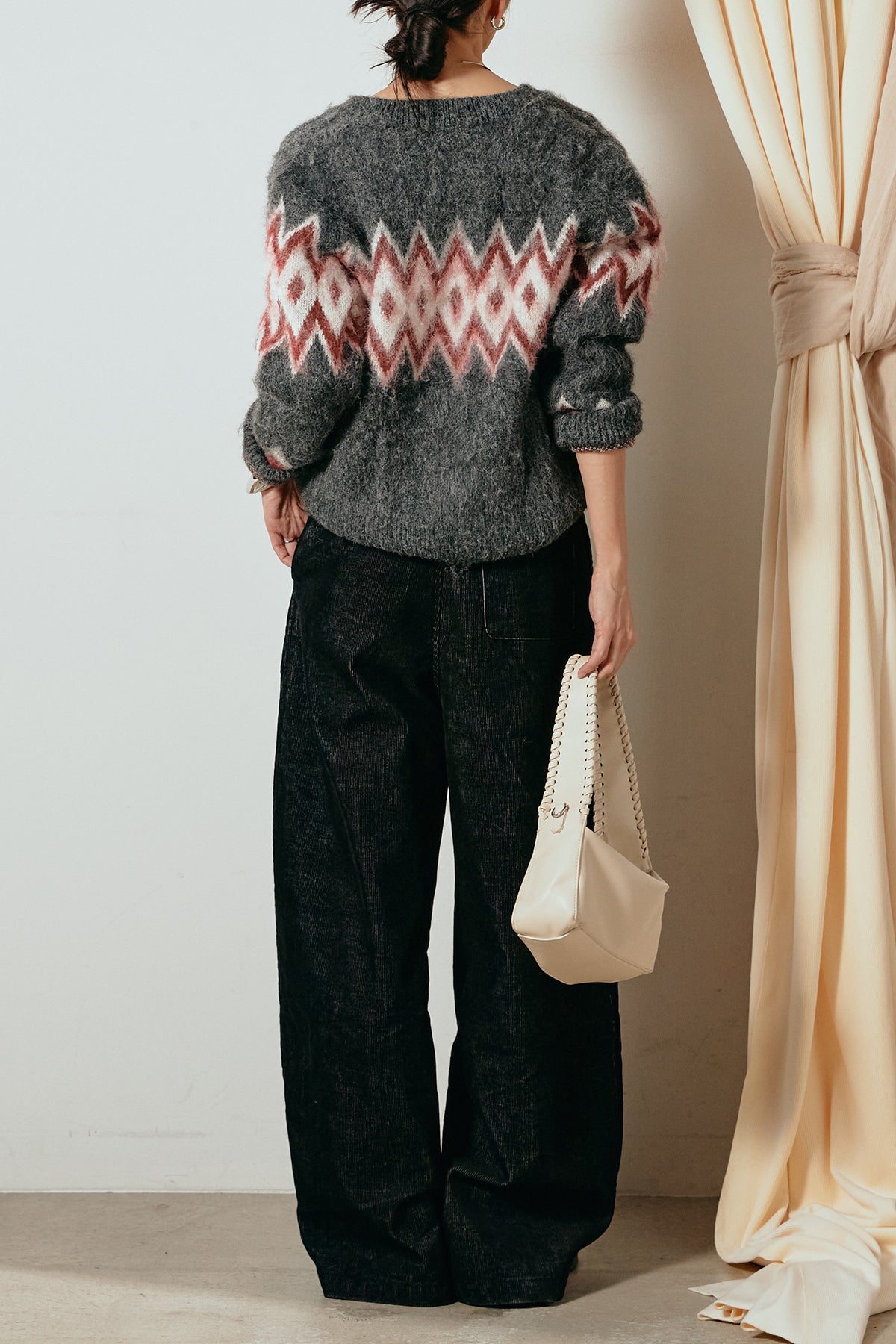 [SET]起毛ノルディック柄ニットカーディガン+フロントタック入りコーデュロイパンツ(2set)