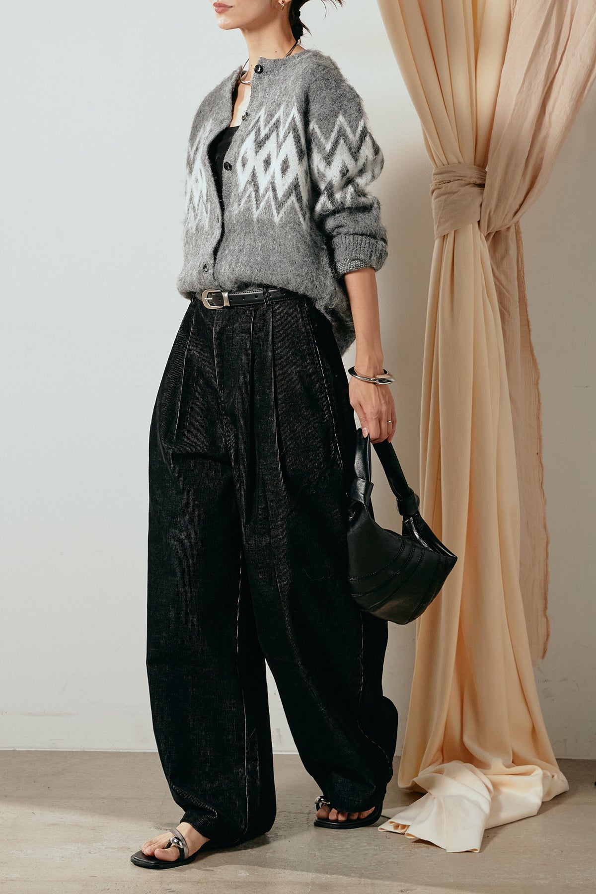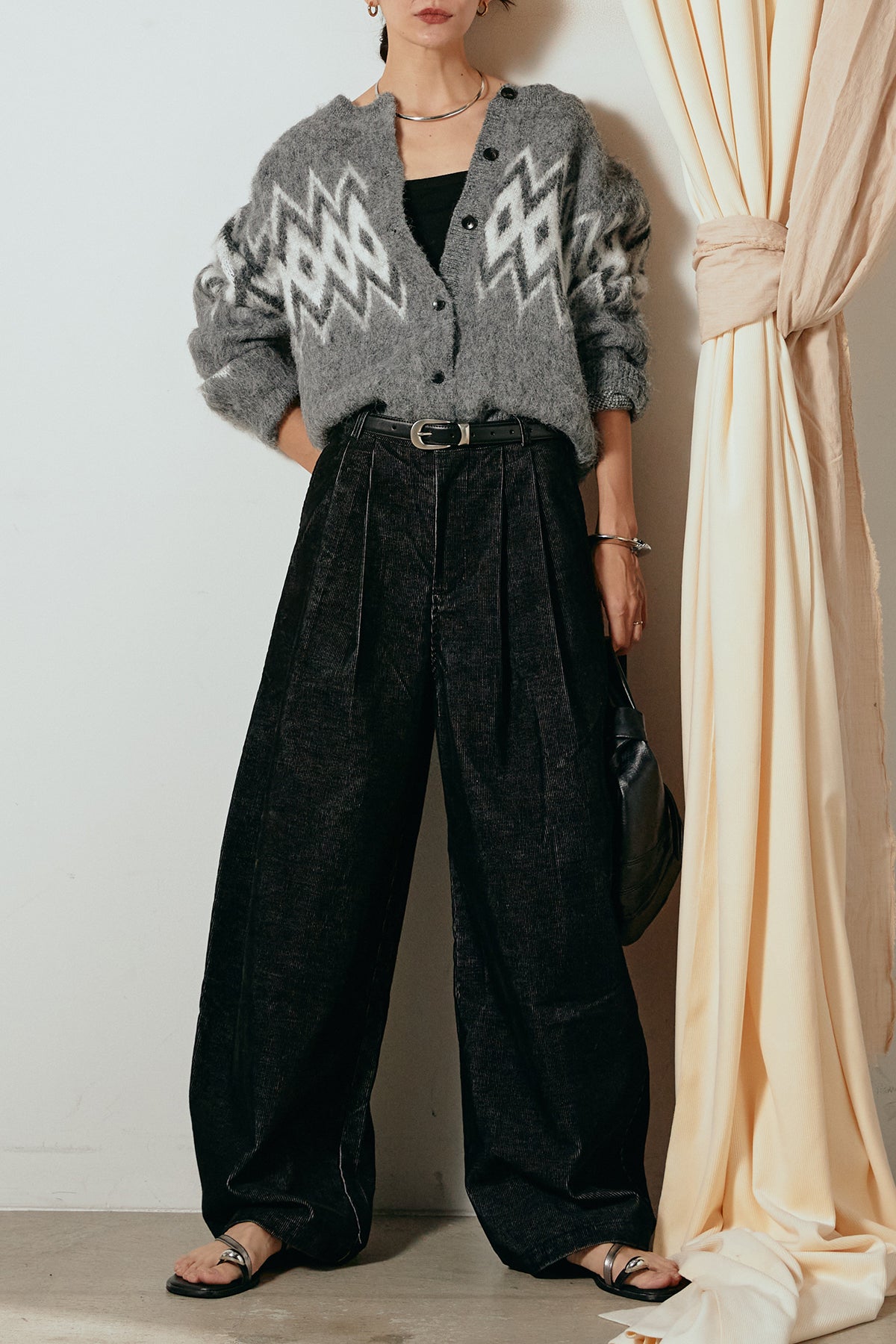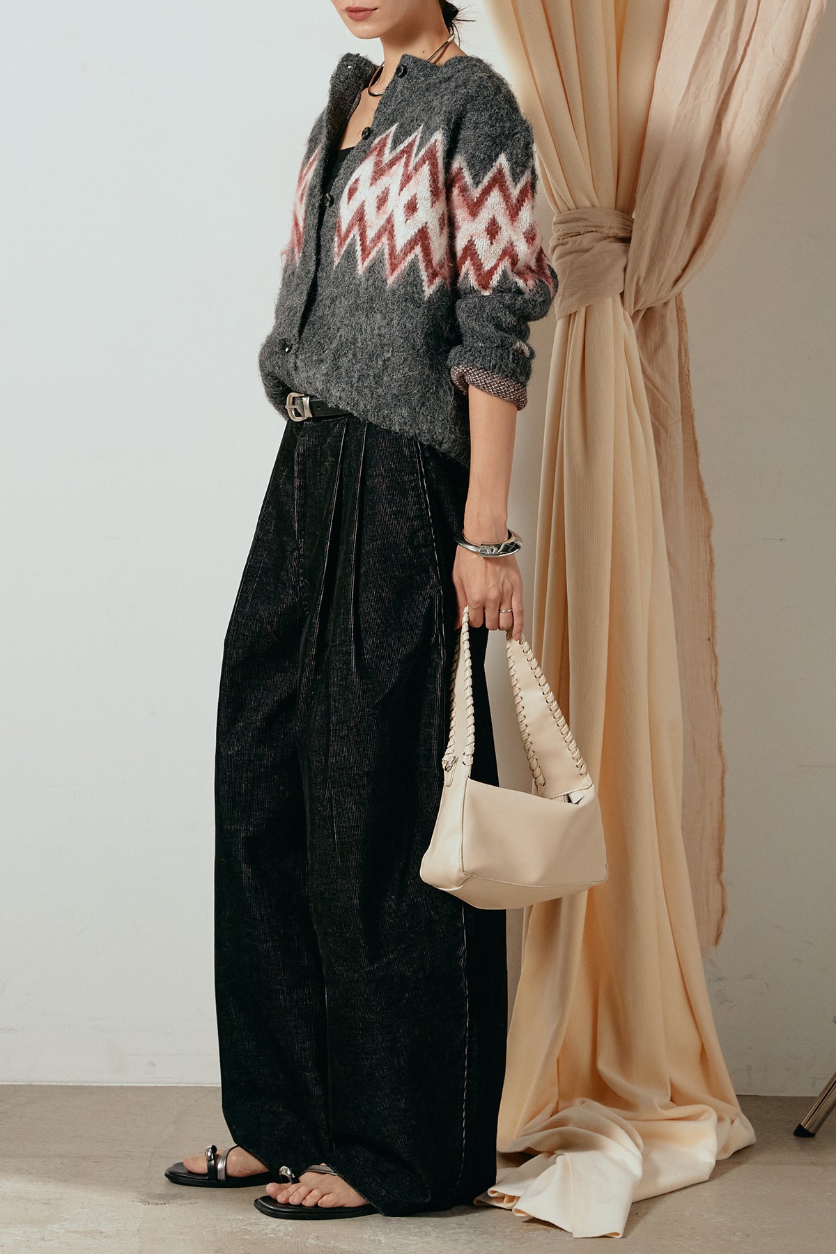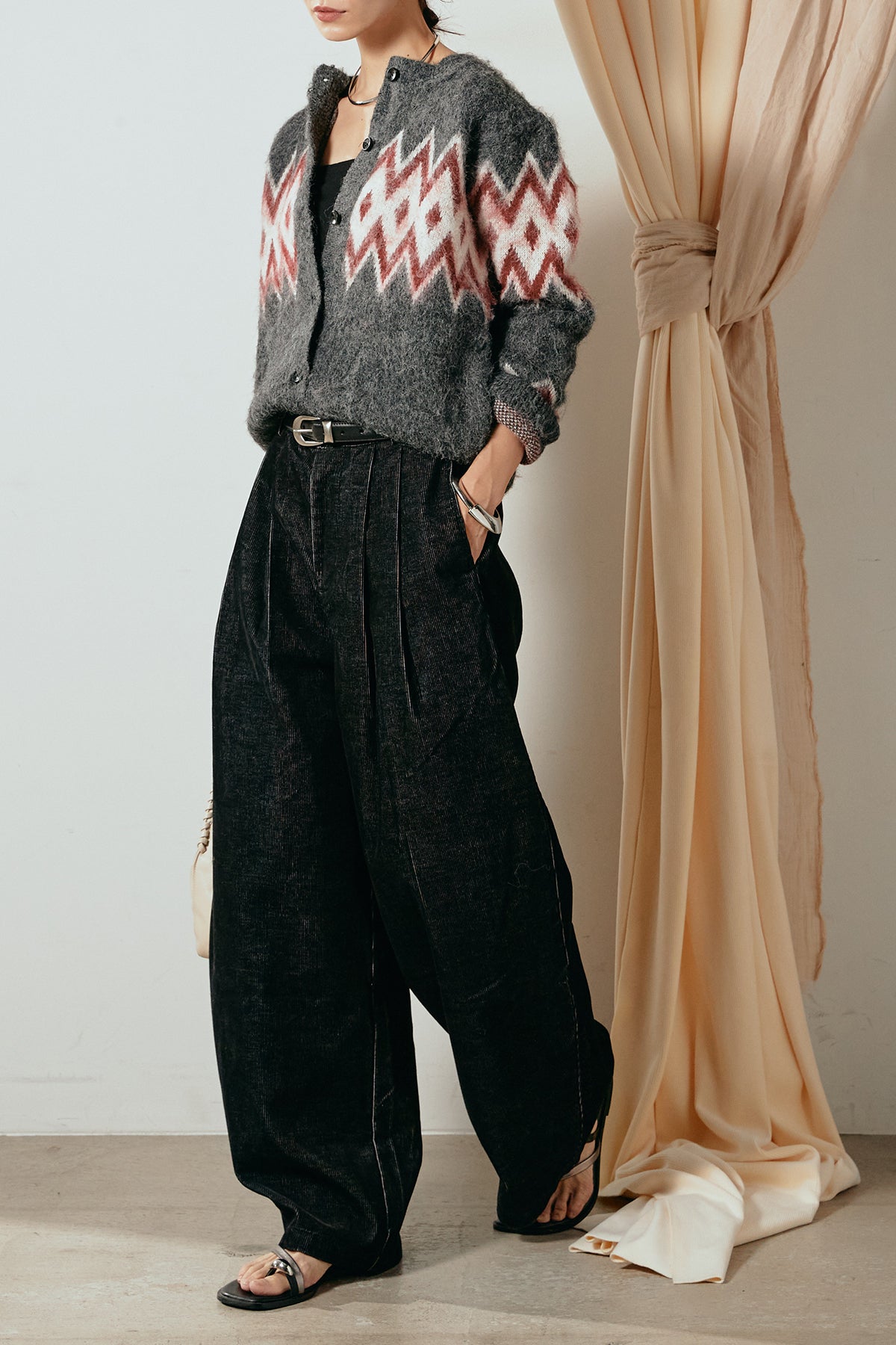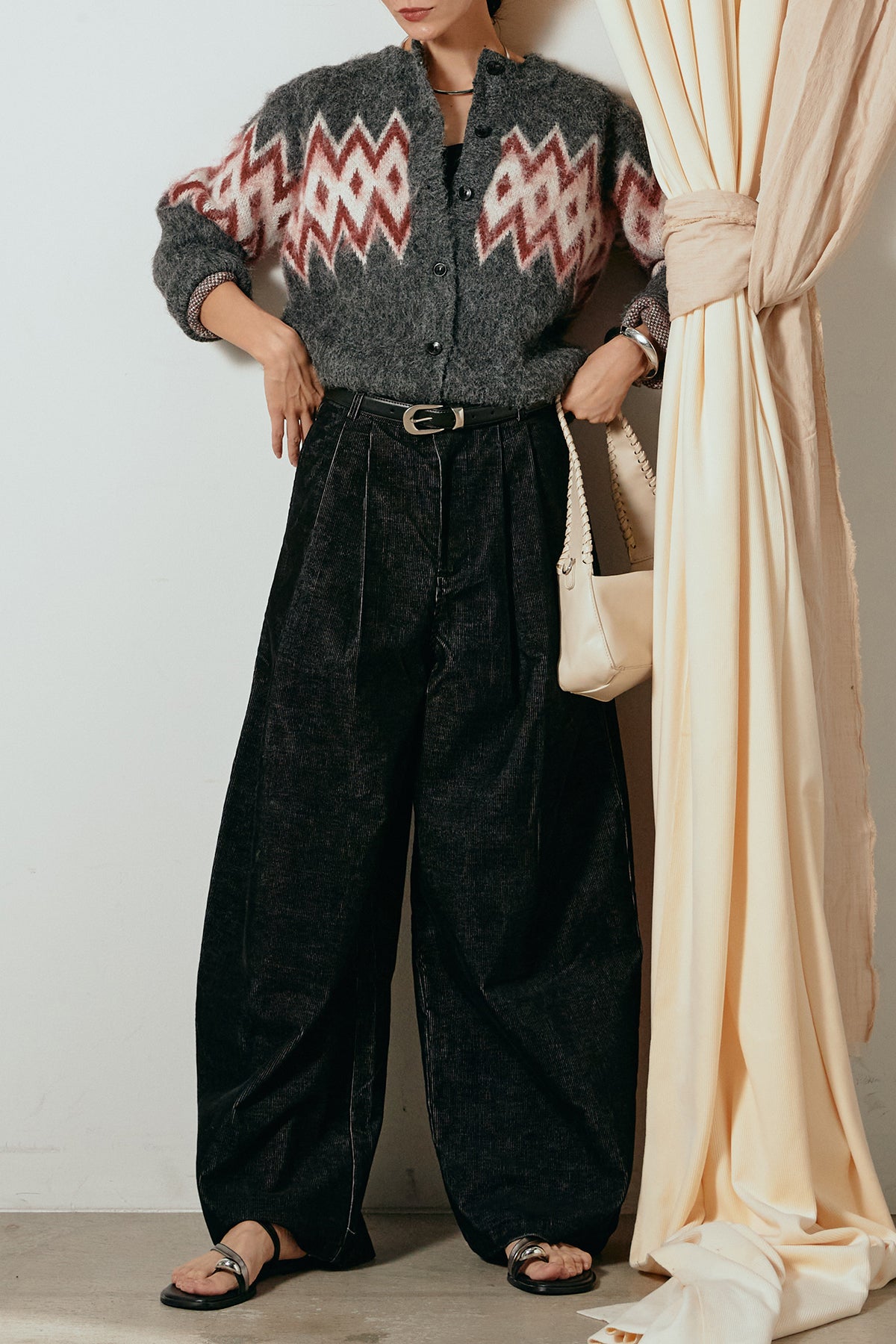 [SET]起毛ノルディック柄ニットカーディガン+フロントタック入りコーデュロイパンツ(2set)