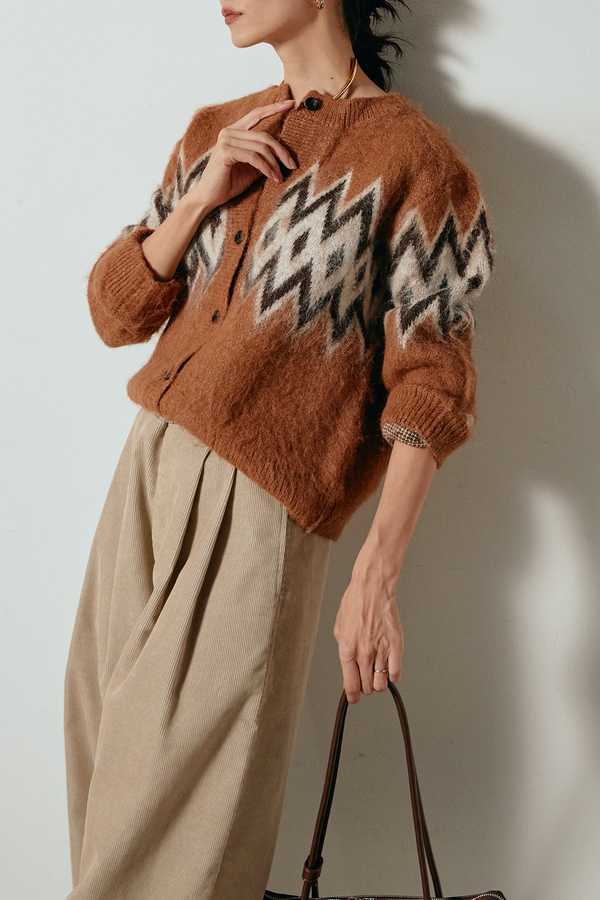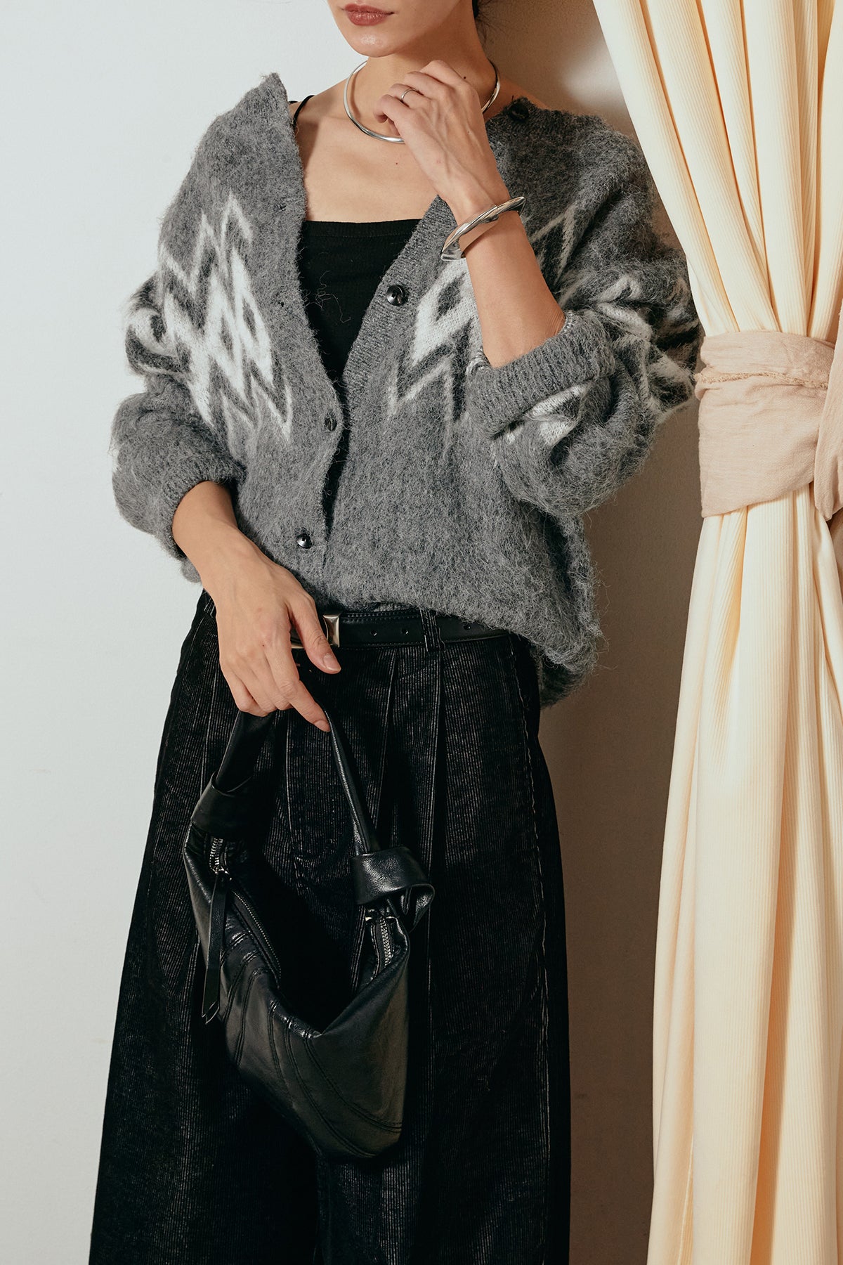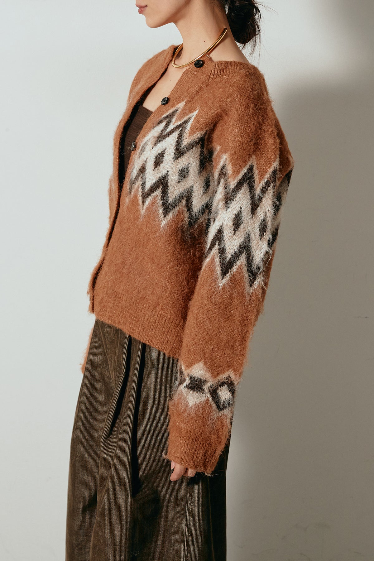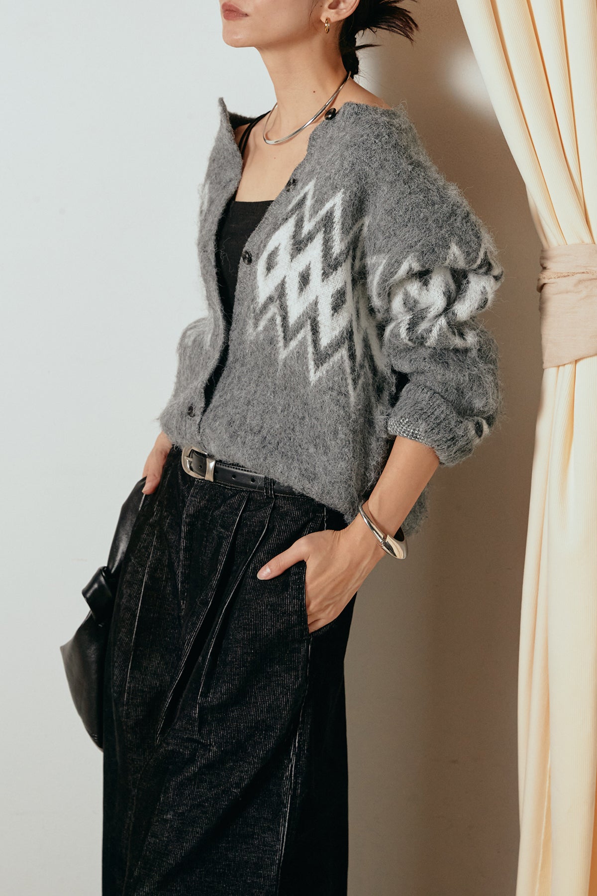 起毛感のある風合いが魅力のノルディック柄ニットカーディガン。 季節感のあるモヘアタッチ素材で、やわらかな印象に仕上げました。 程よいショート丈とゆるめのシルエットが抜け感を生み、どんなボトムともバランスよくマッチ。 一枚で主役になる存在感のあるデザインで、羽織るだけで秋冬ムードを高めてくれるアイテムです。