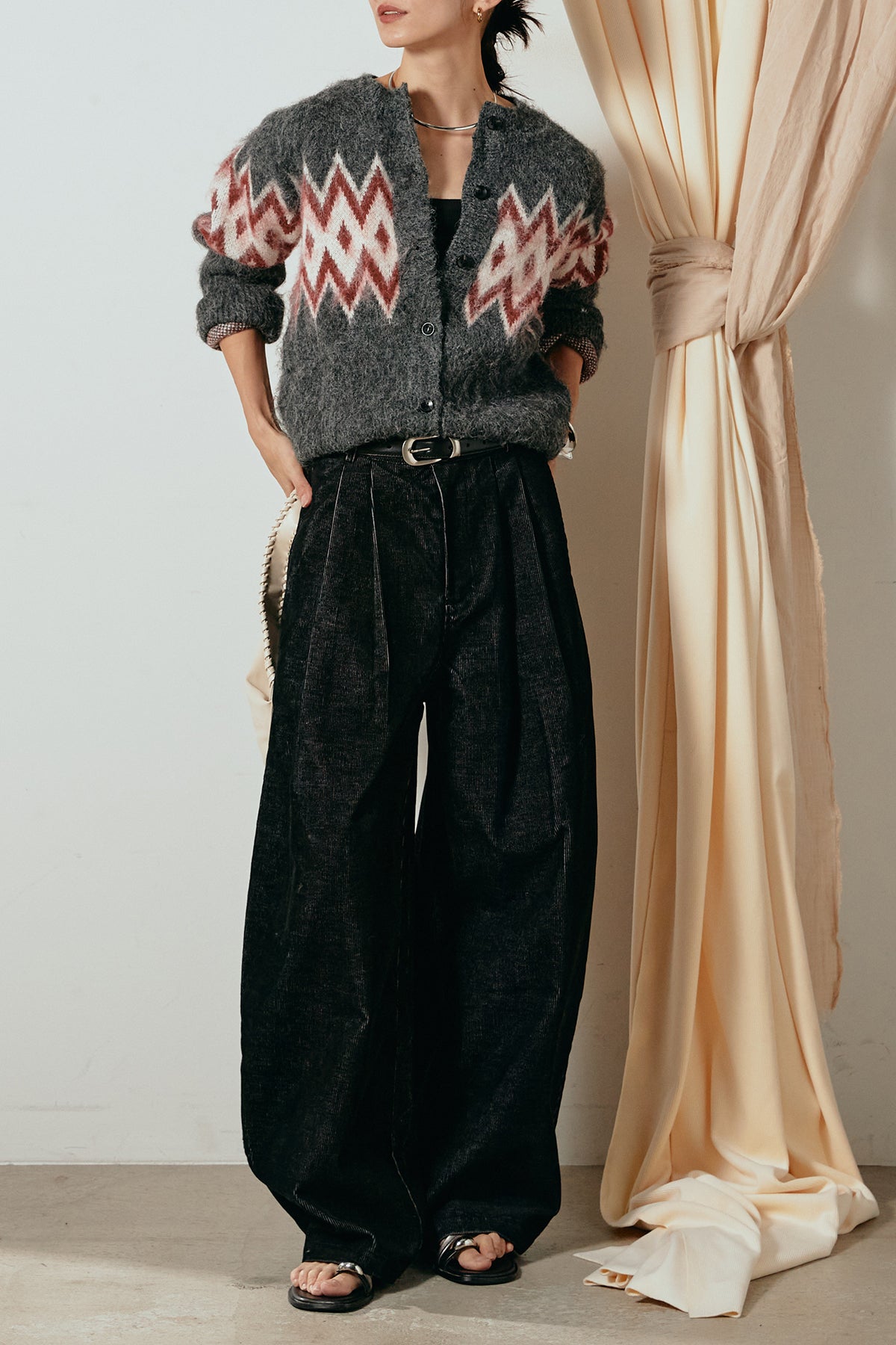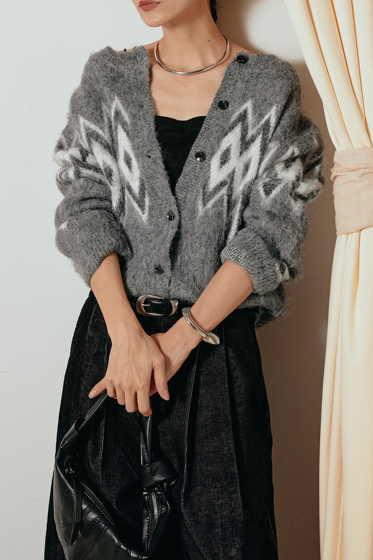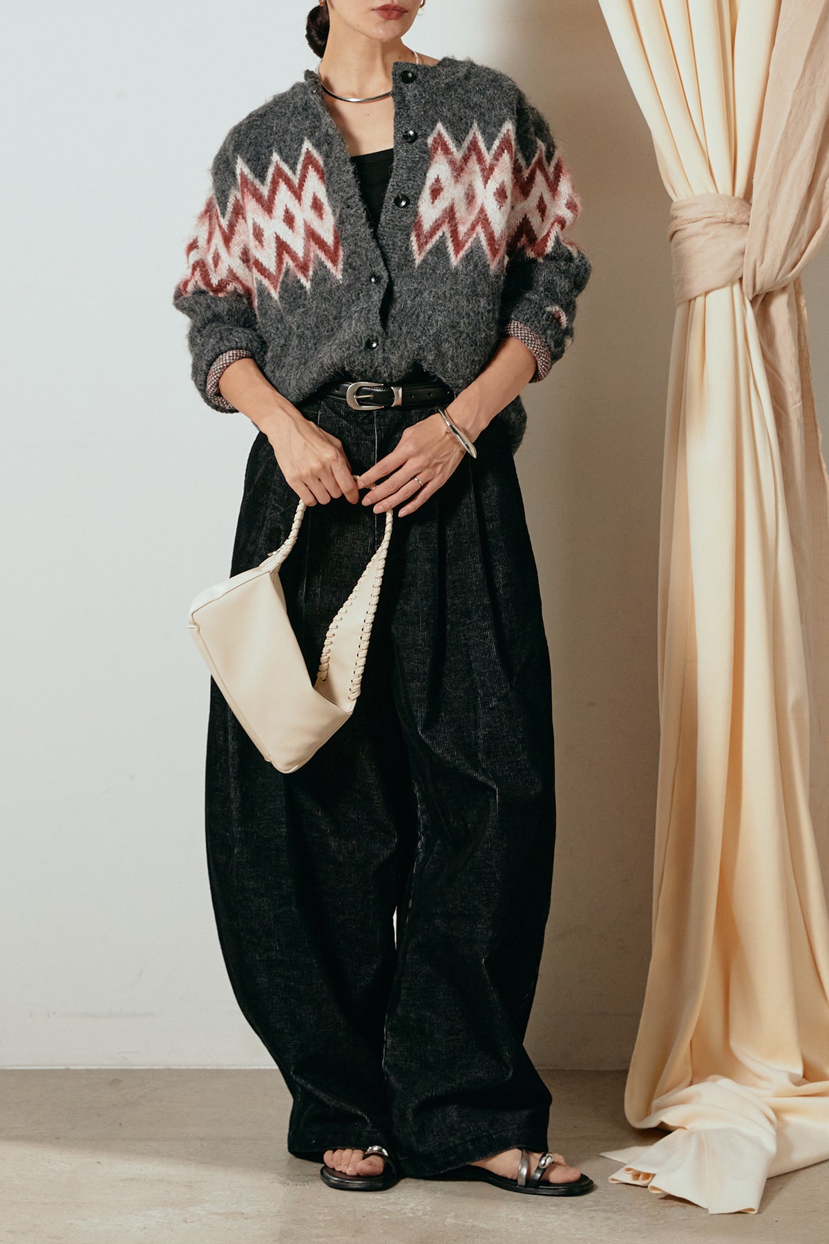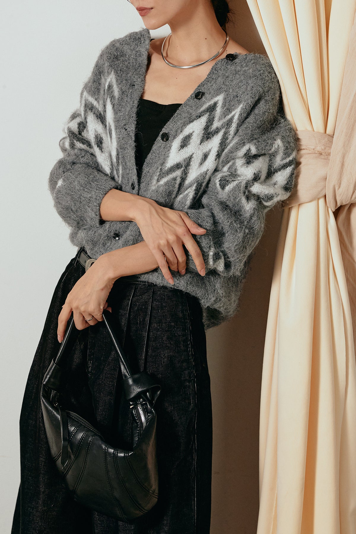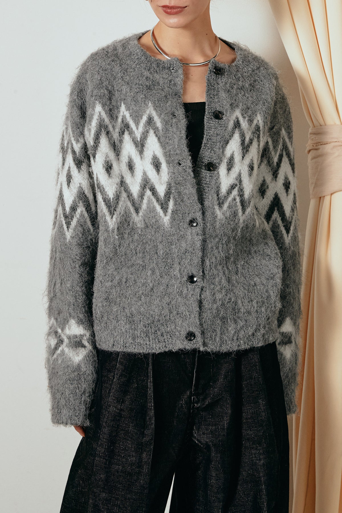 起毛感のある風合いが魅力のノルディック柄ニットカーディガン。 季節感のあるモヘアタッチ素材で、やわらかな印象に仕上げました。 程よいショート丈とゆるめのシルエットが抜け感を生み、どんなボトムともバランスよくマッチ。 一枚で主役になる存在感のあるデザインで、羽織るだけで秋冬ムードを高めてくれるアイテムです。