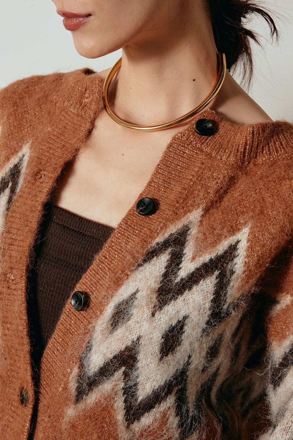 起毛ノルディック柄ニットカーディガン