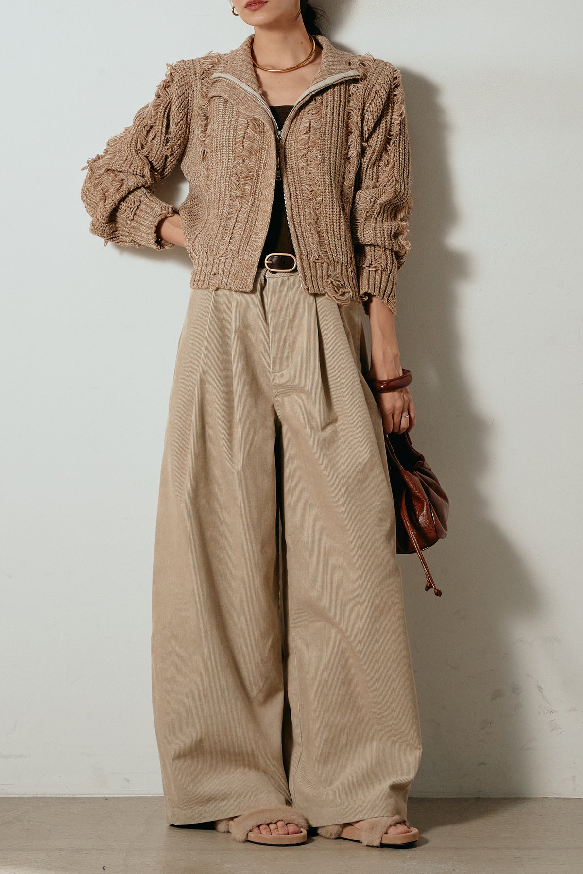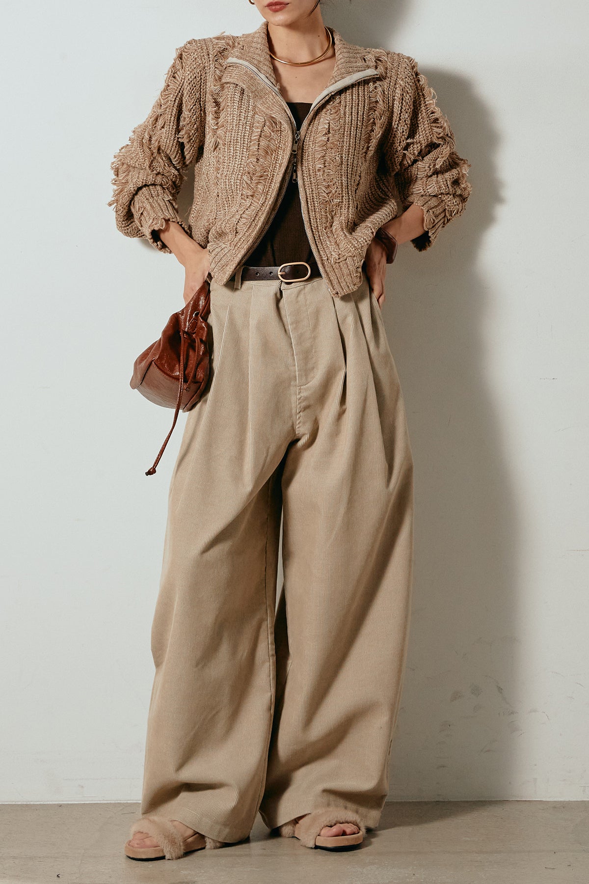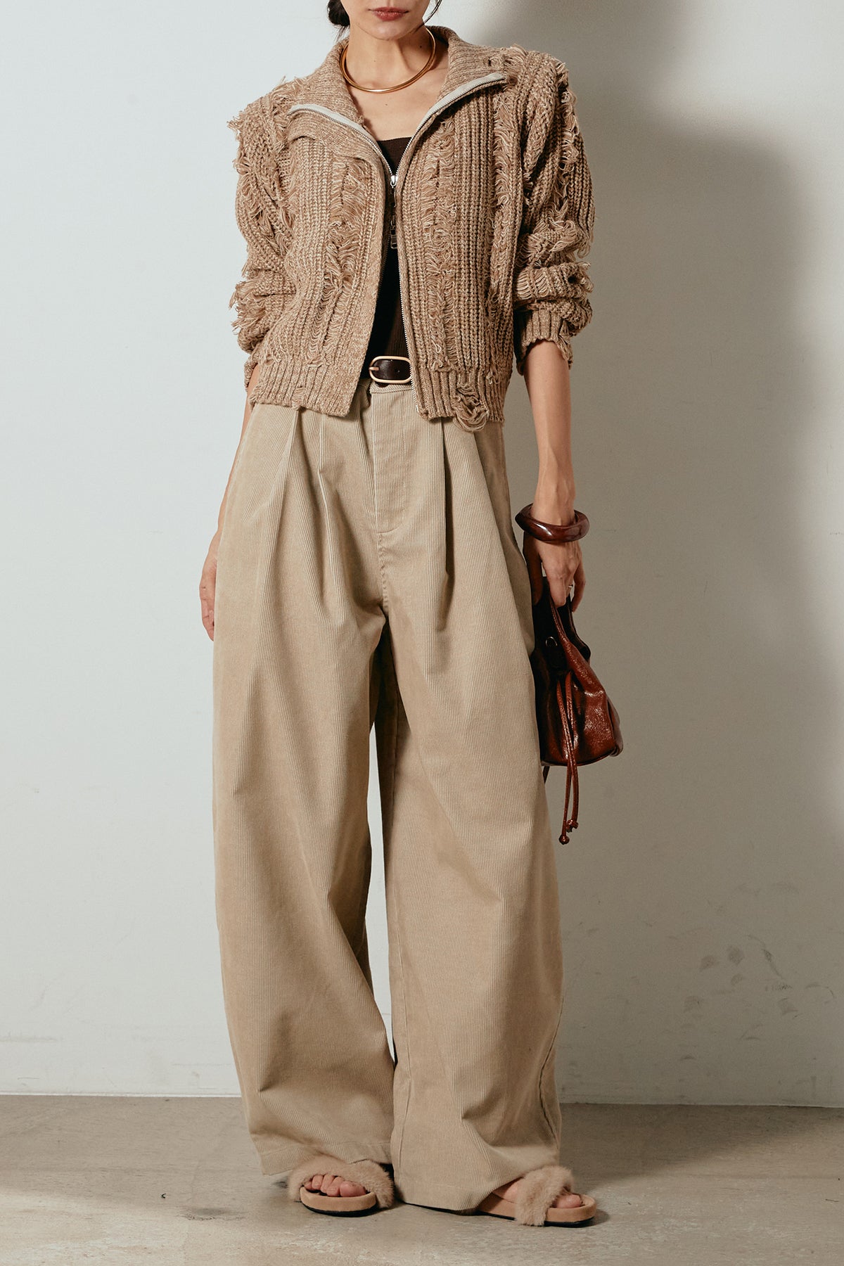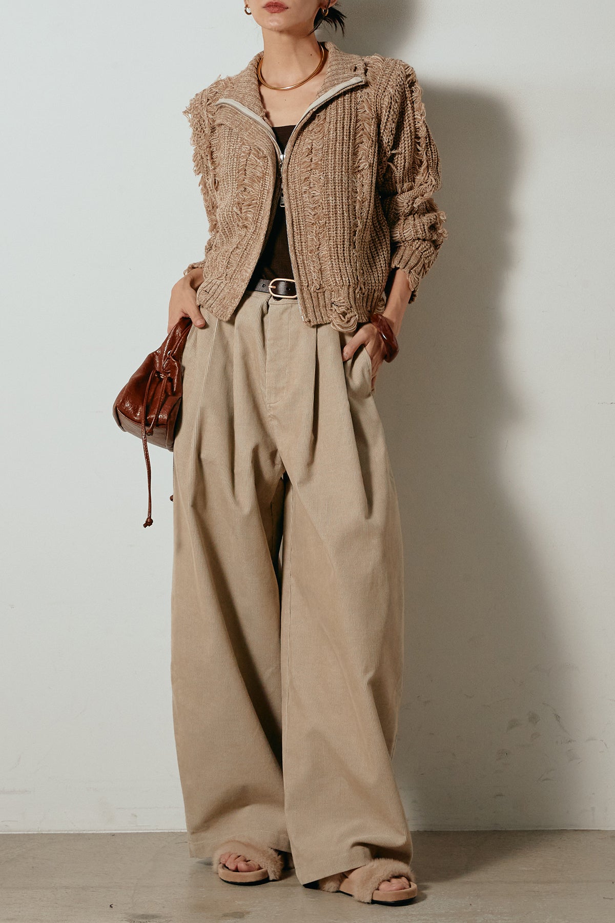 [SET]ハイネックフリンジジップニットトップス+フロントタック入りコーデュロイパンツ(2set)