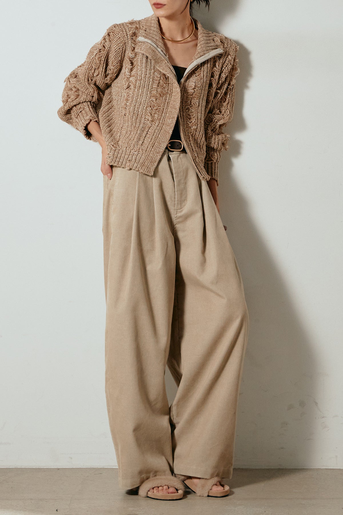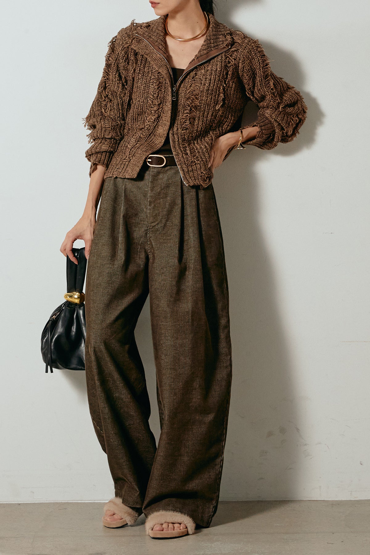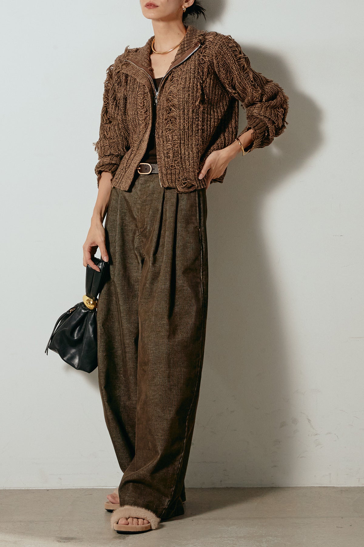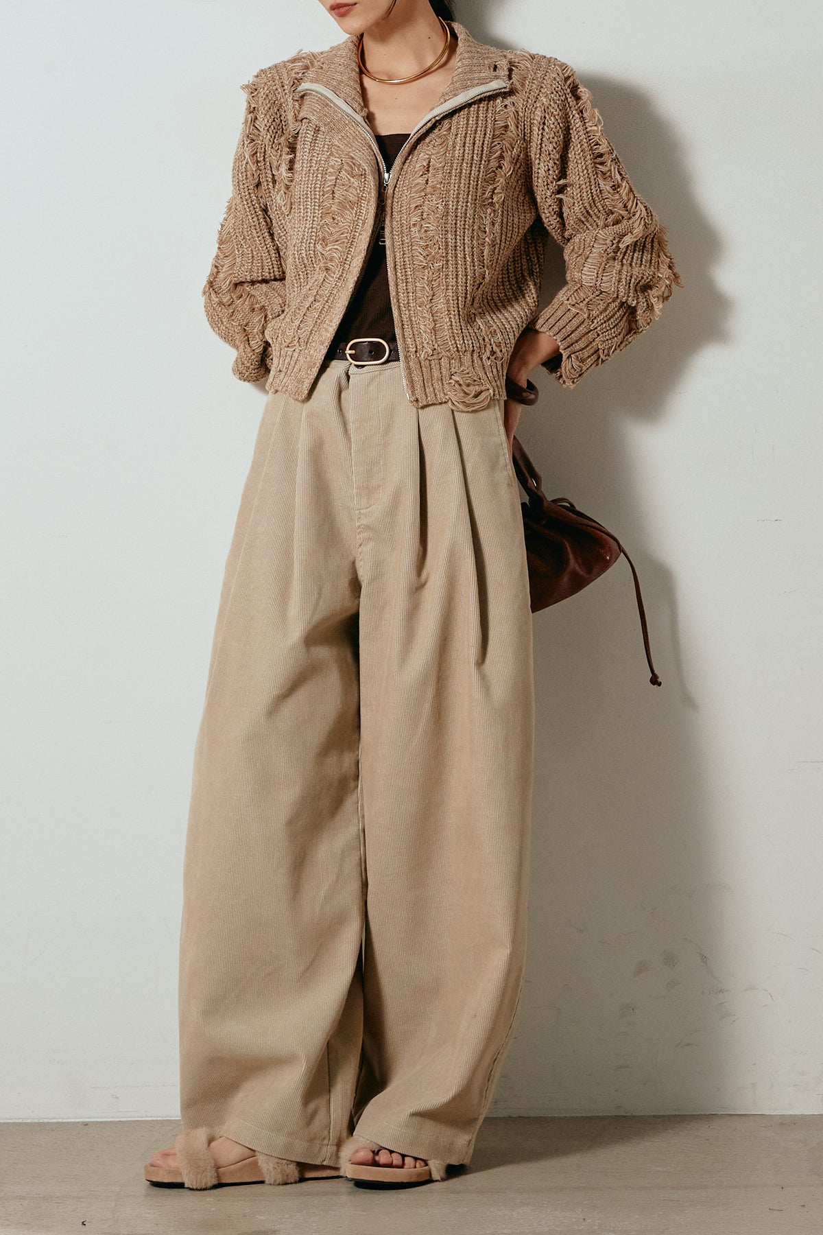 [SET]ハイネックフリンジジップニットトップス+フロントタック入りコーデュロイパンツ(2set)