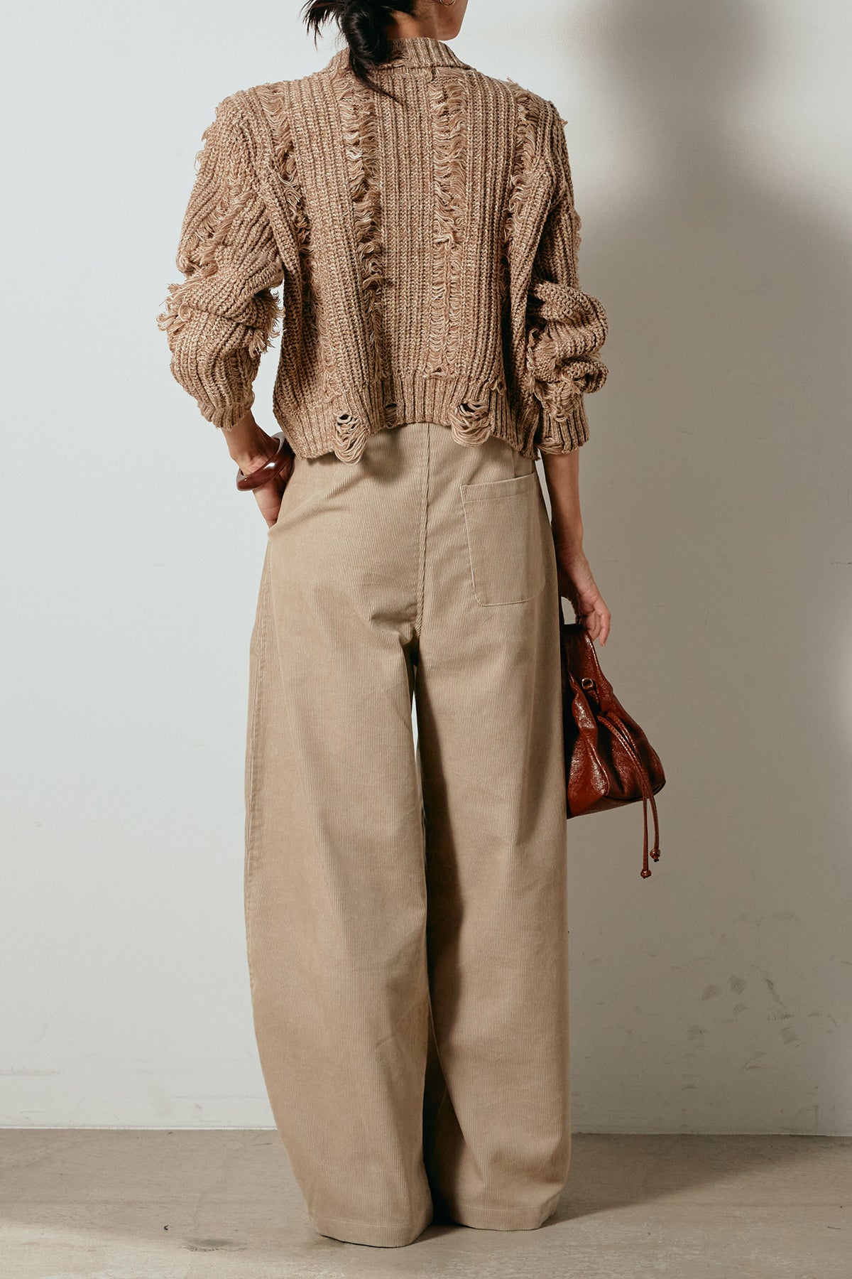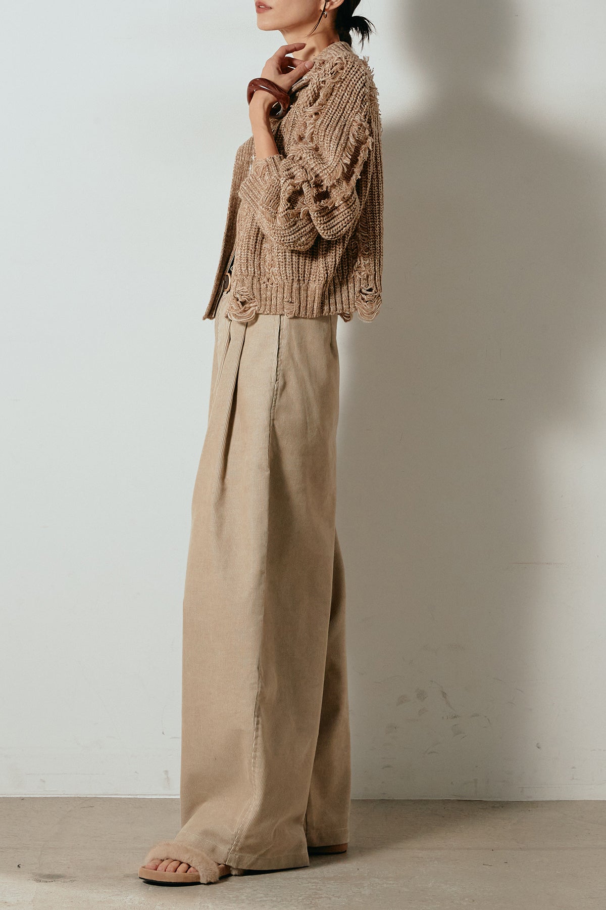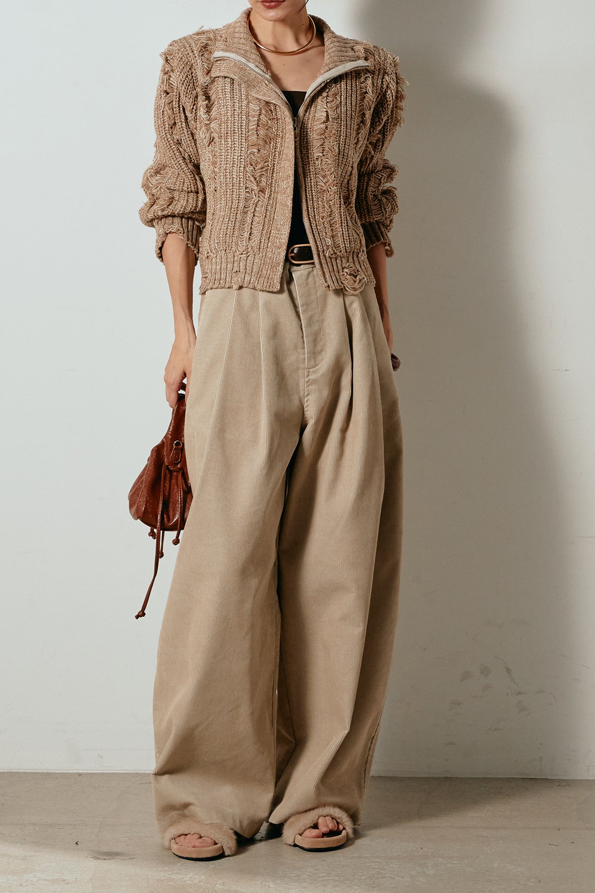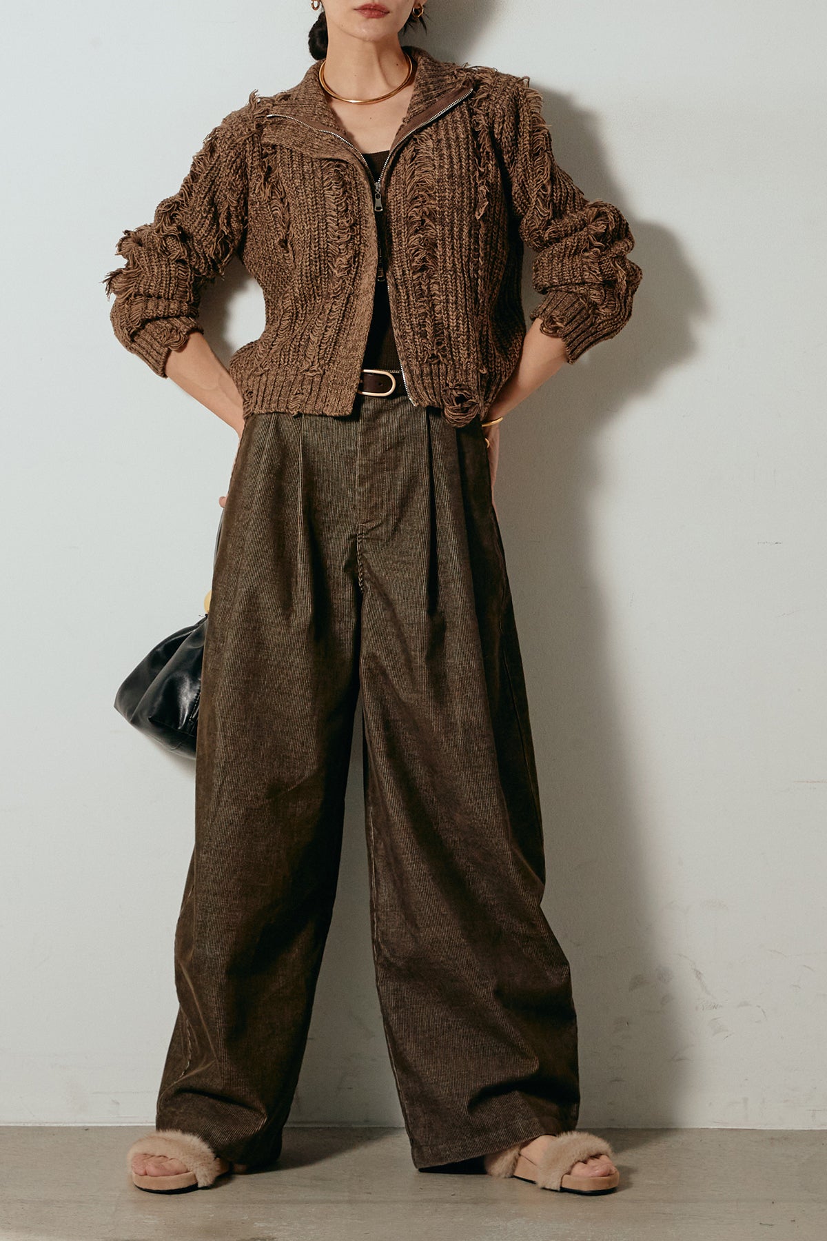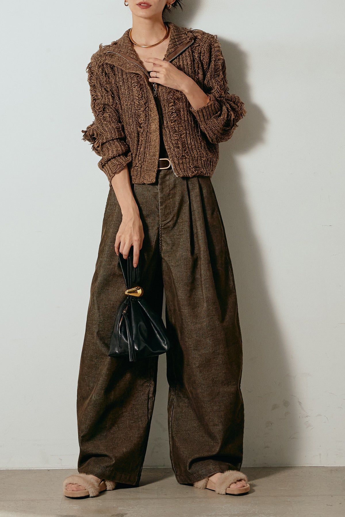 [SET]ハイネックフリンジジップニットトップス+フロントタック入りコーデュロイパンツ(2set)