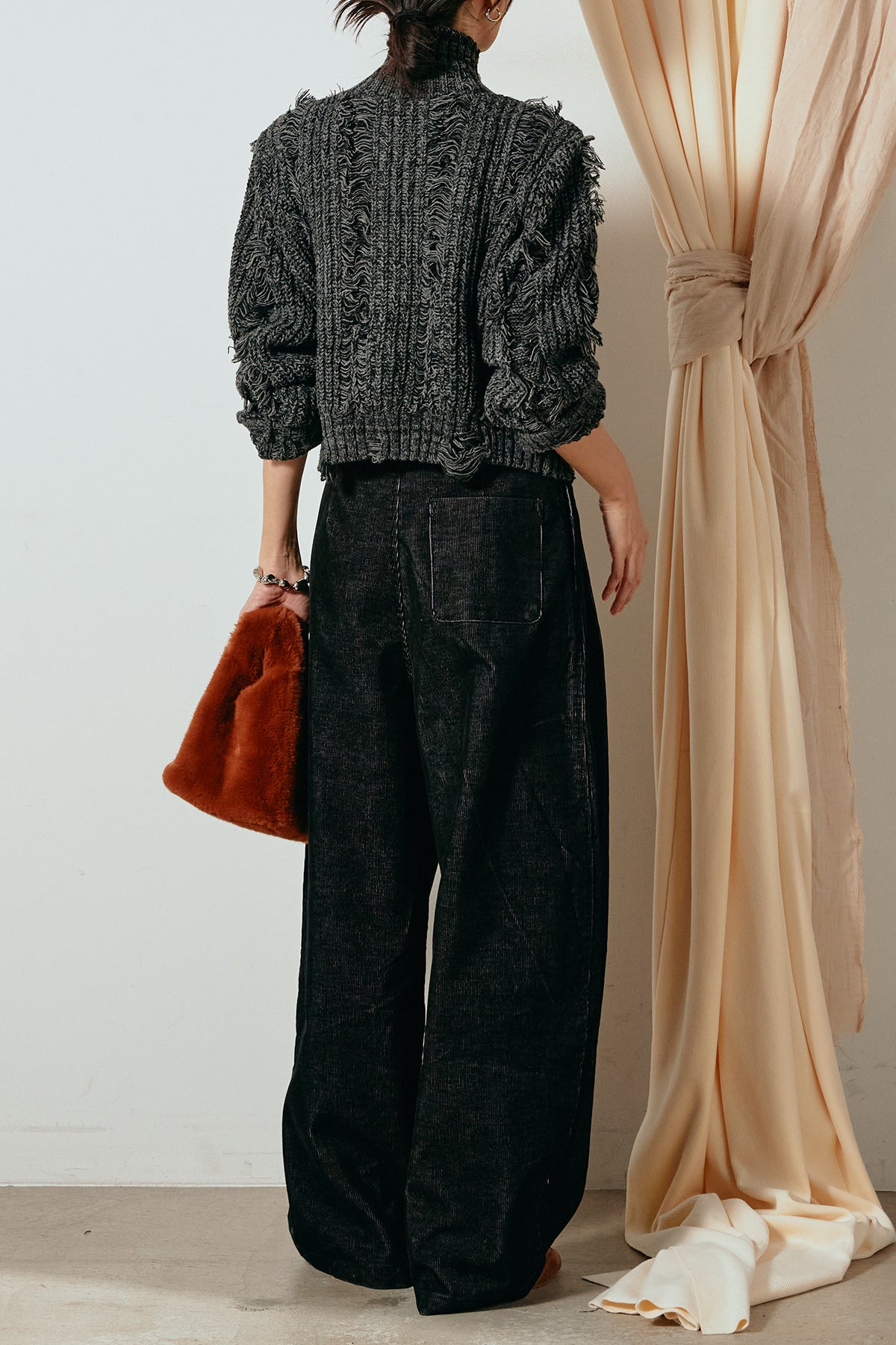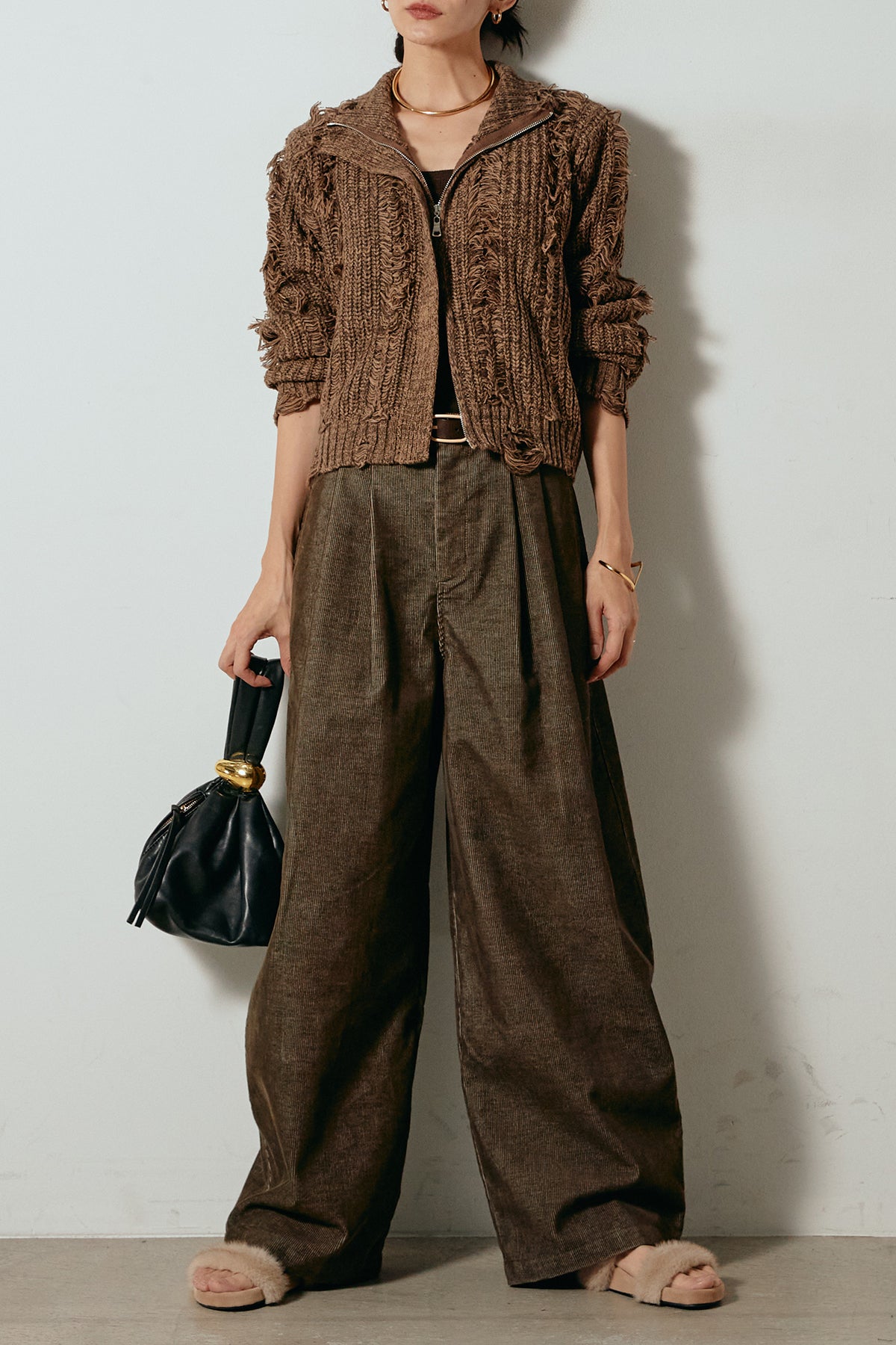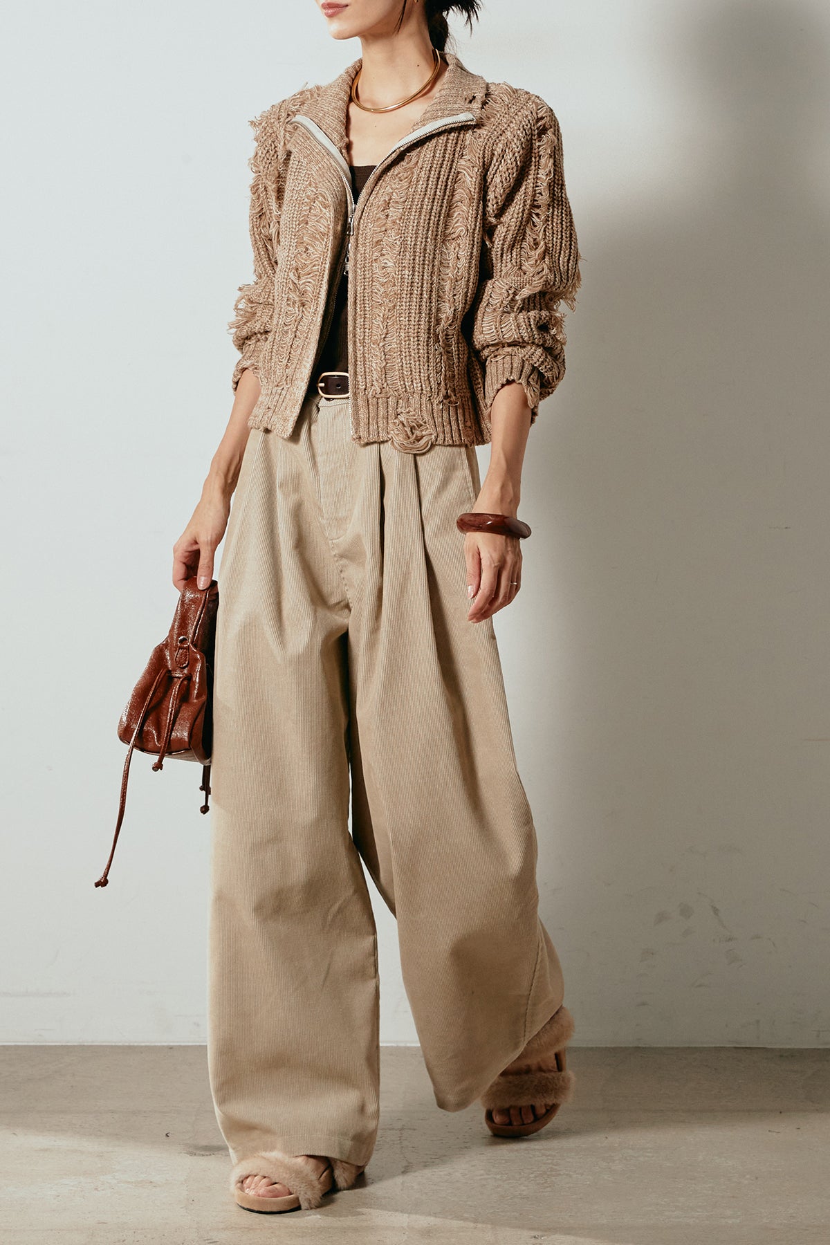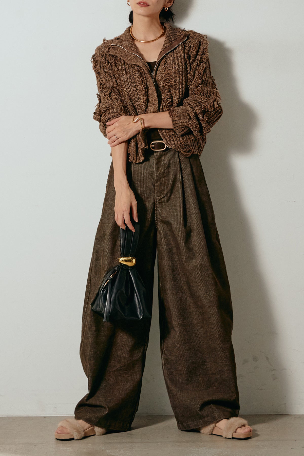 [SET]ハイネックフリンジジップニットトップス+フロントタック入りコーデュロイパンツ(2set)