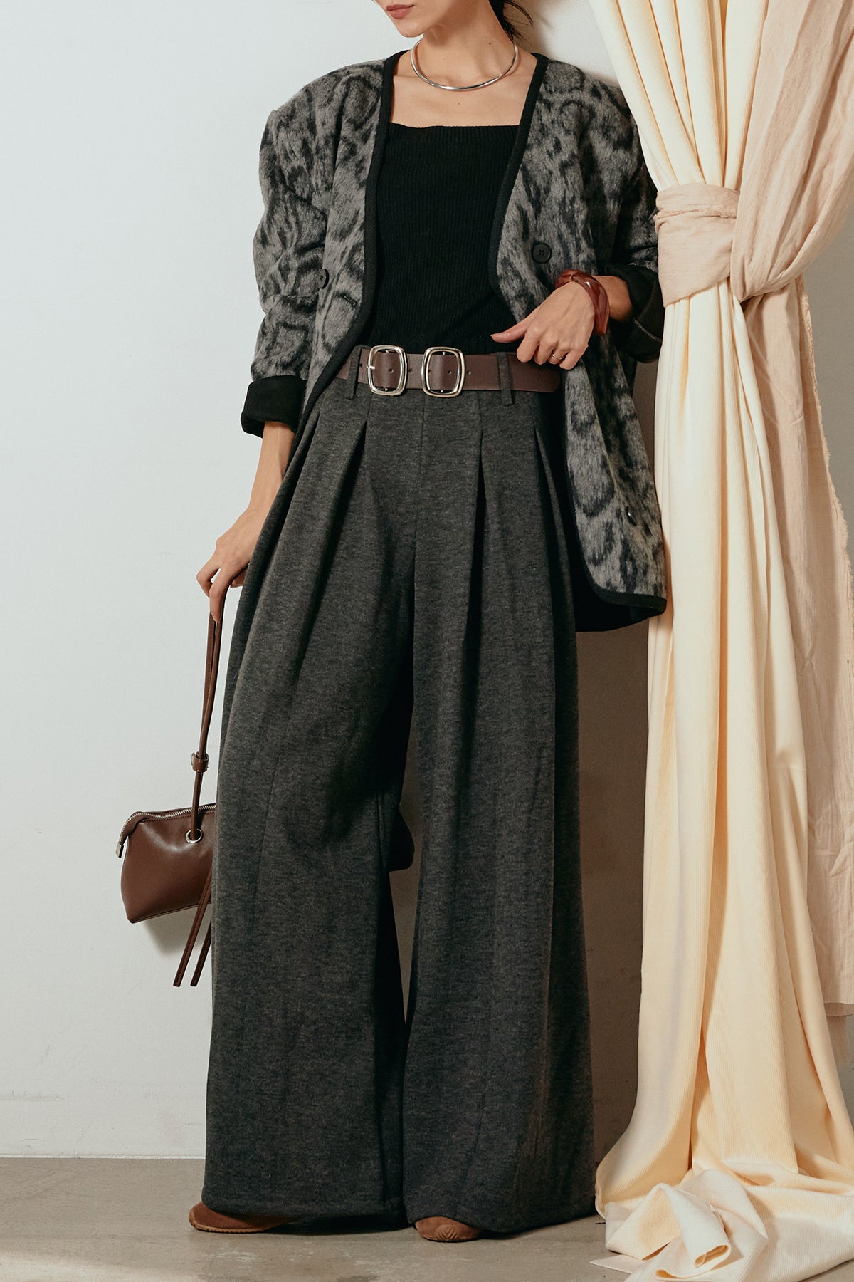 フェイクレザー太ベルト付きタックワイドパンツの他のセットページはこちら