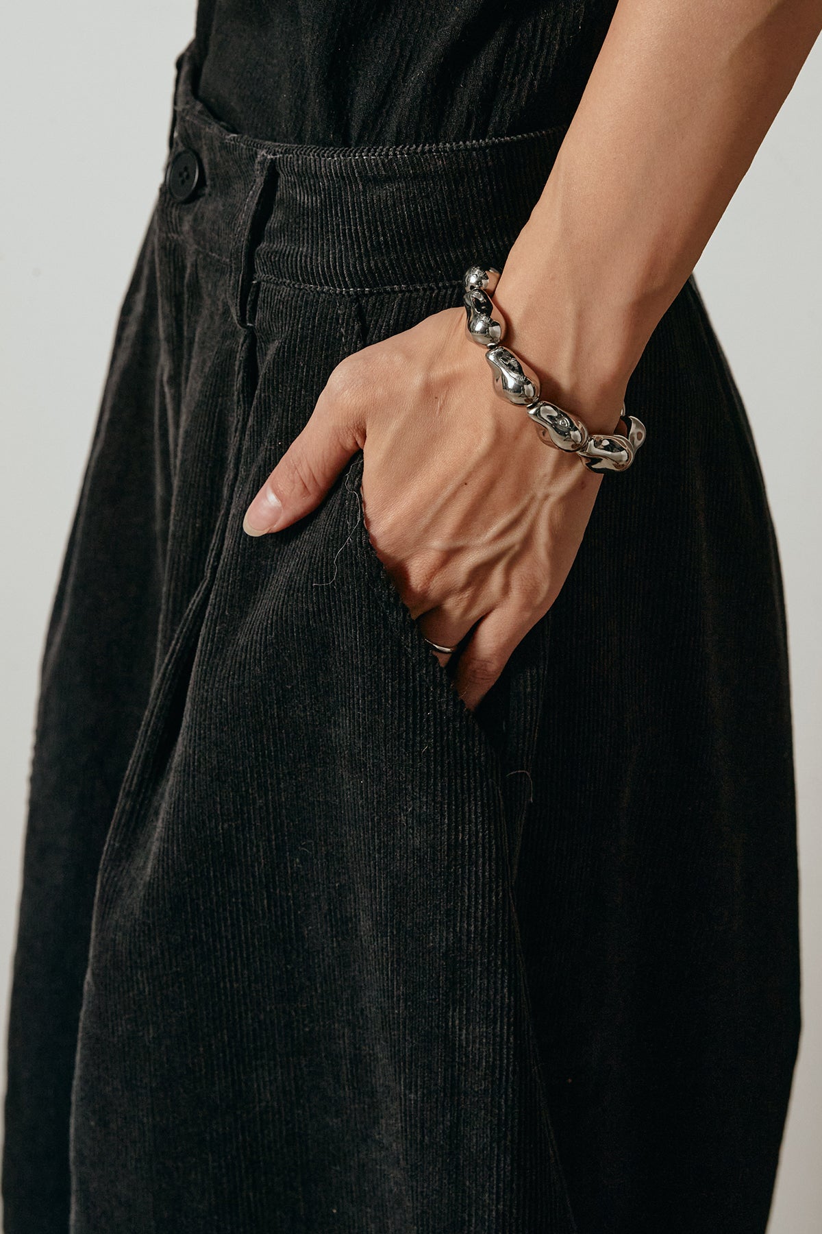 柔らかな風合いと深みのある表情が魅力のコーデュロイ素材を使用したワイドパンツ。ウエストに入ったタックが立体感を生み出し、ゆとりのあるワイドシルエットながらも美しいラインをキープします。程よい厚みの生地が季節感を引き立て、トップスをインしてもアウトでもバランス良く着こなせるデザイン。リラックス感とモードな雰囲気を両立したアイテムです。