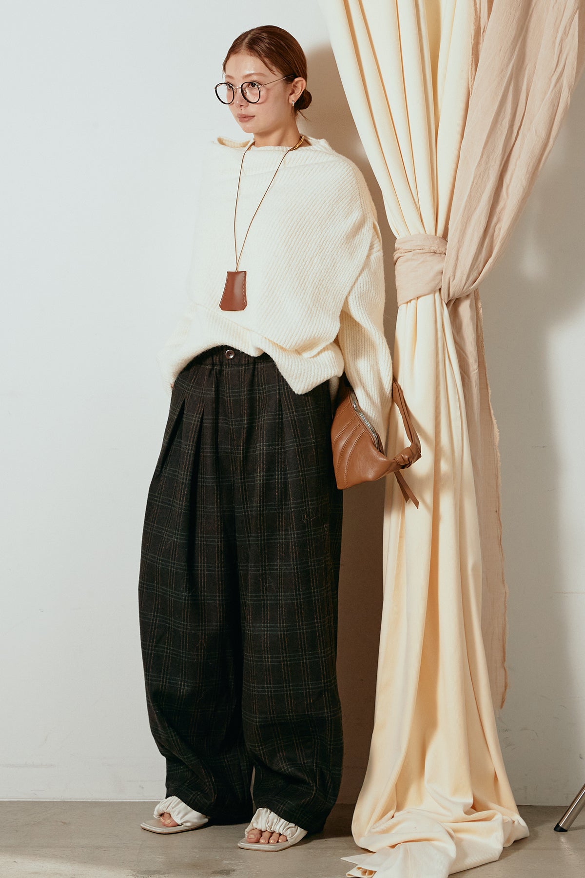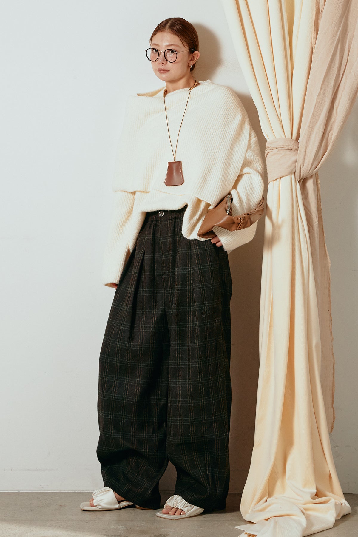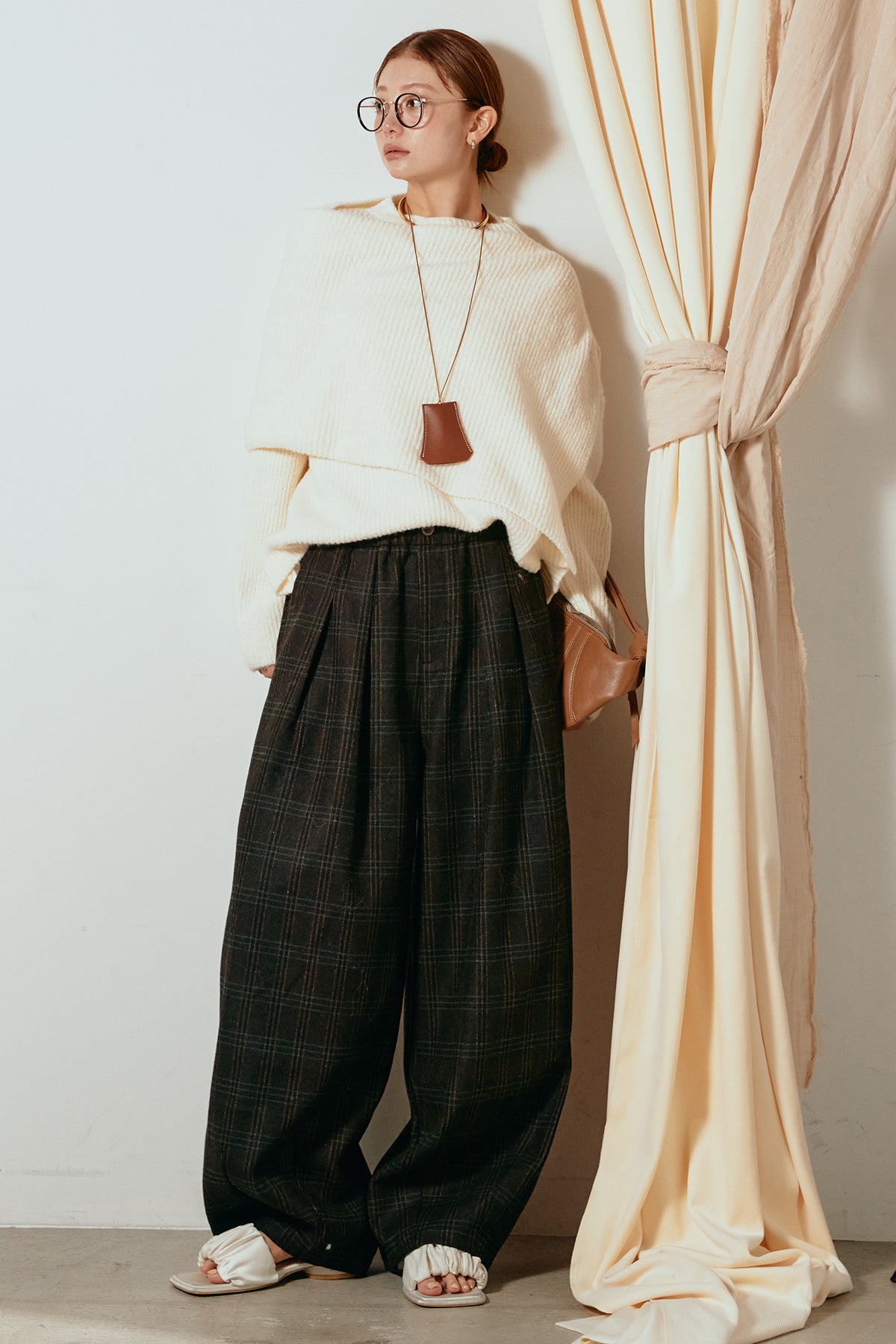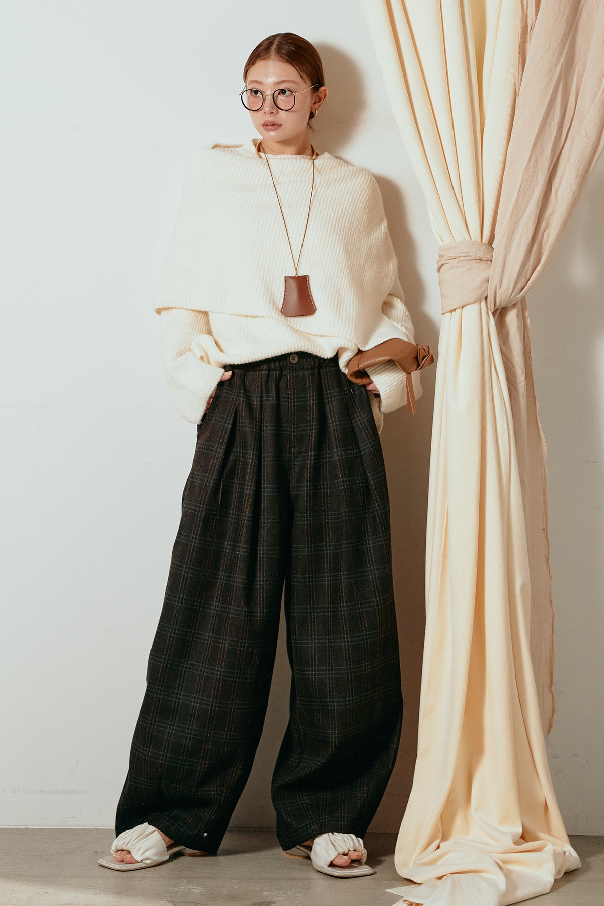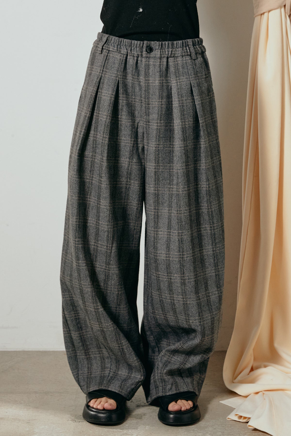 クラシックな雰囲気漂うタータンチェック柄タックパンツ。