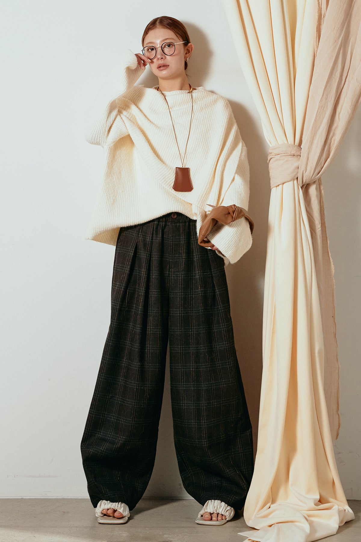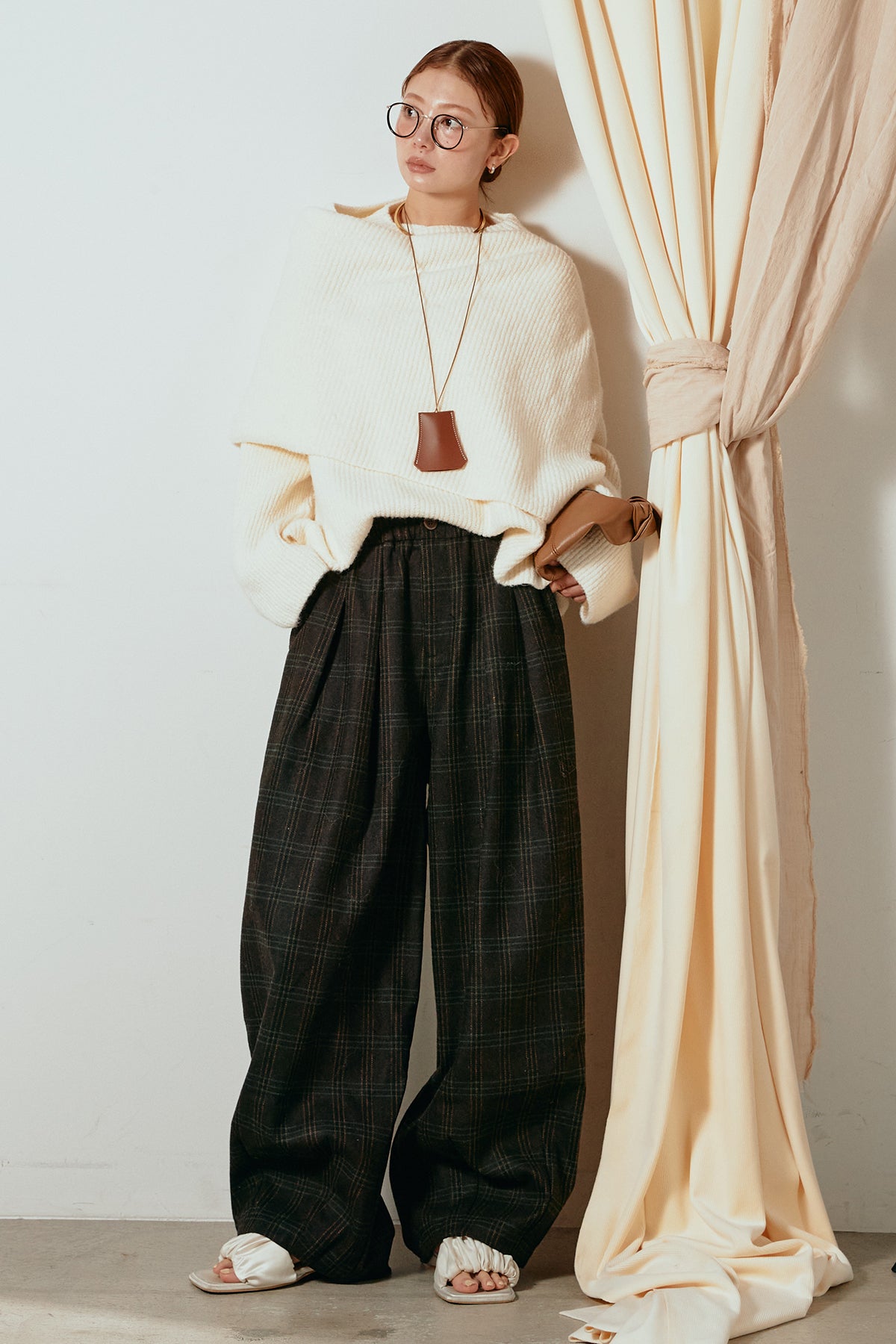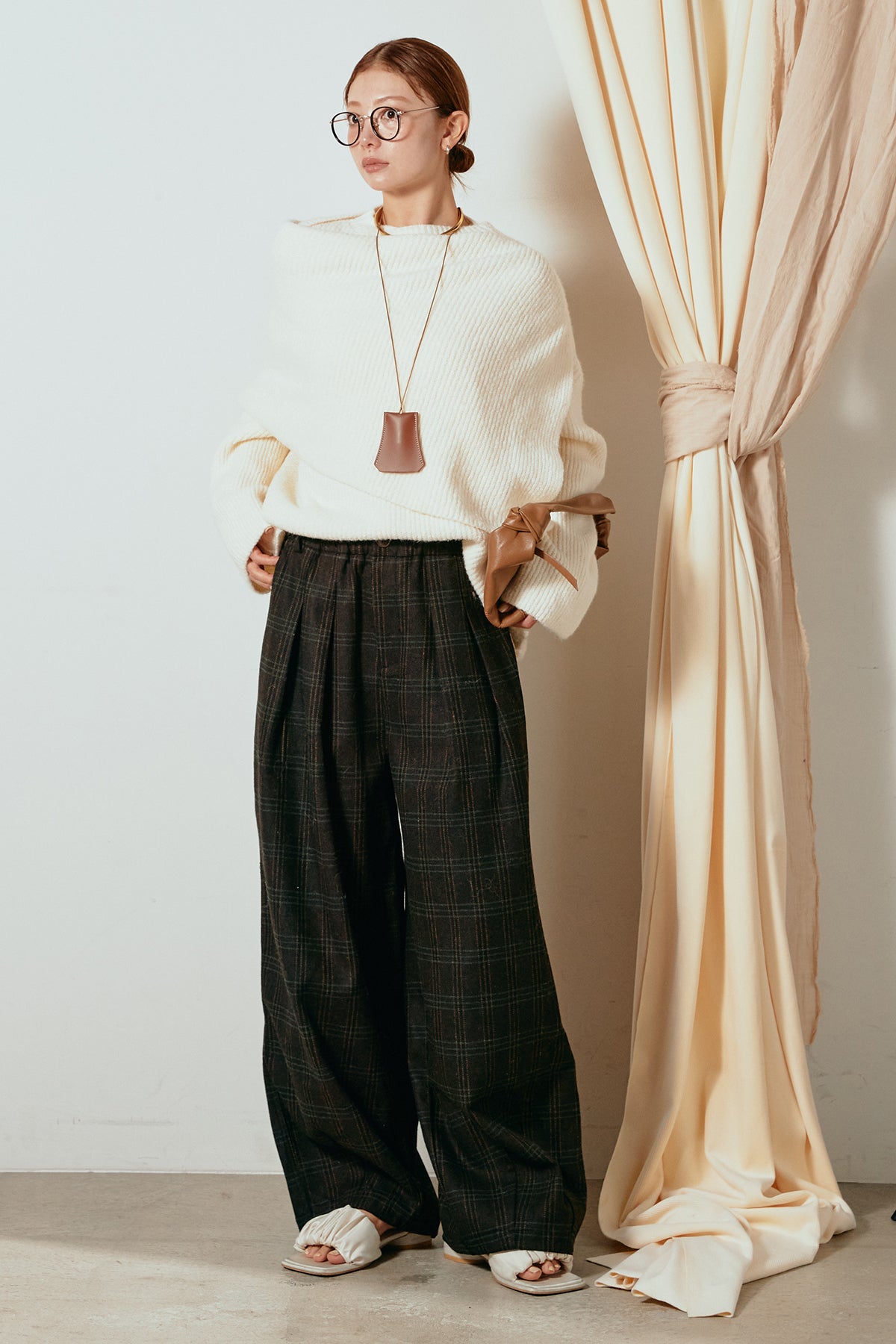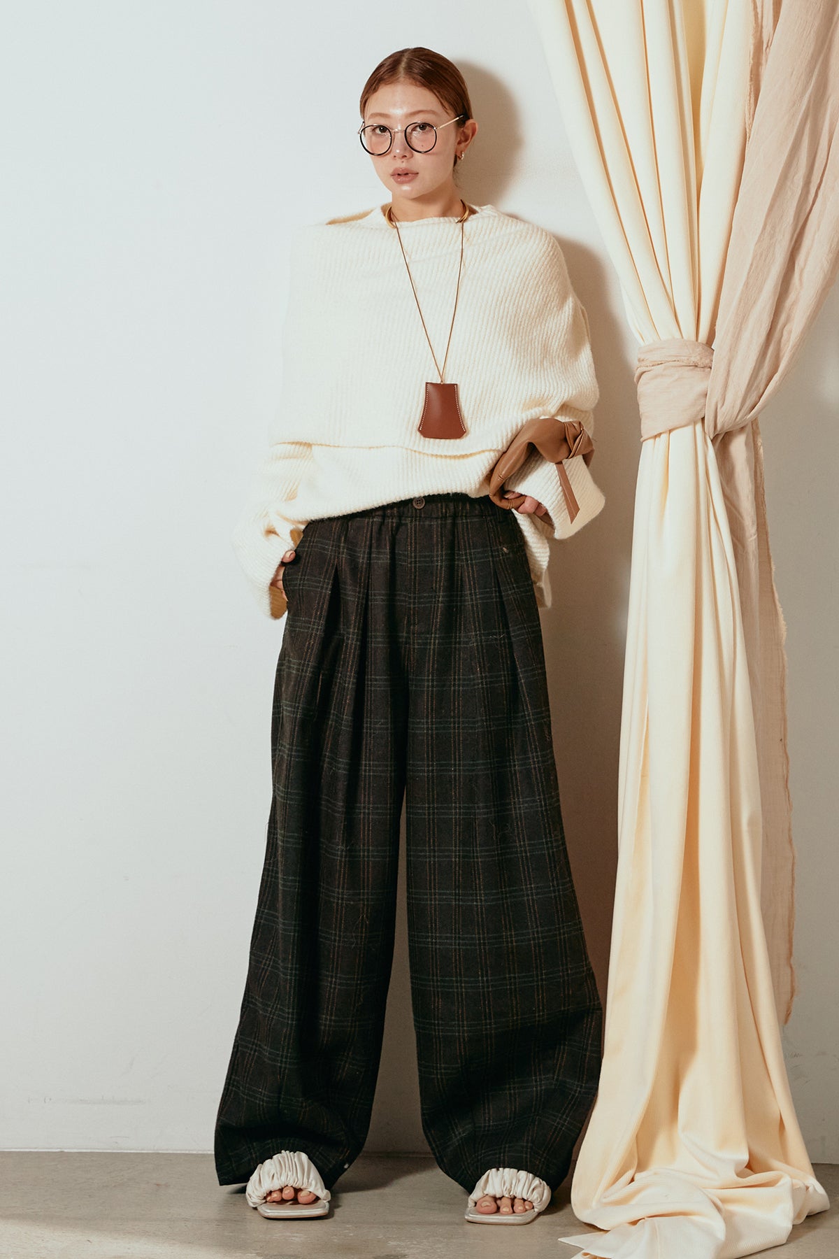 クラシックな雰囲気漂うタータンチェック柄タックパンツ。