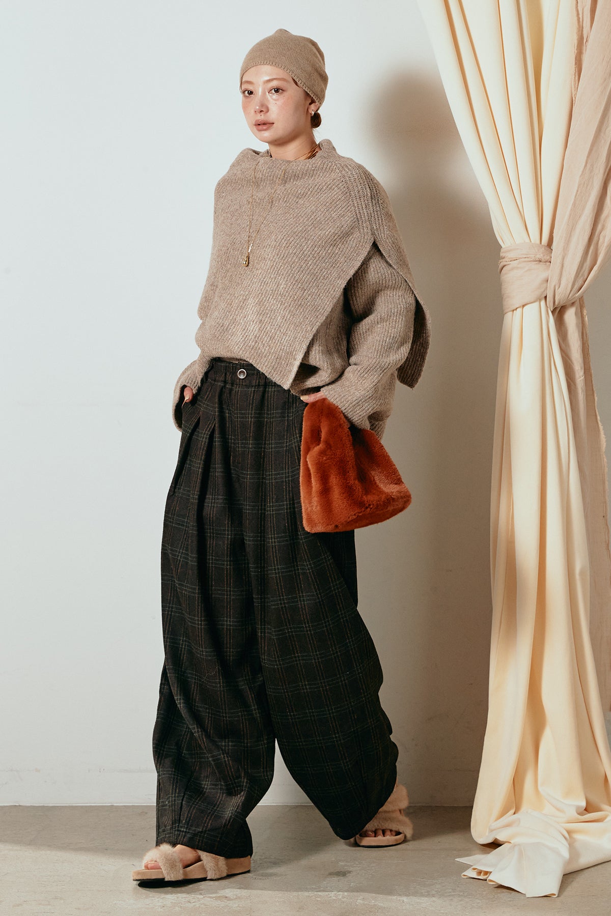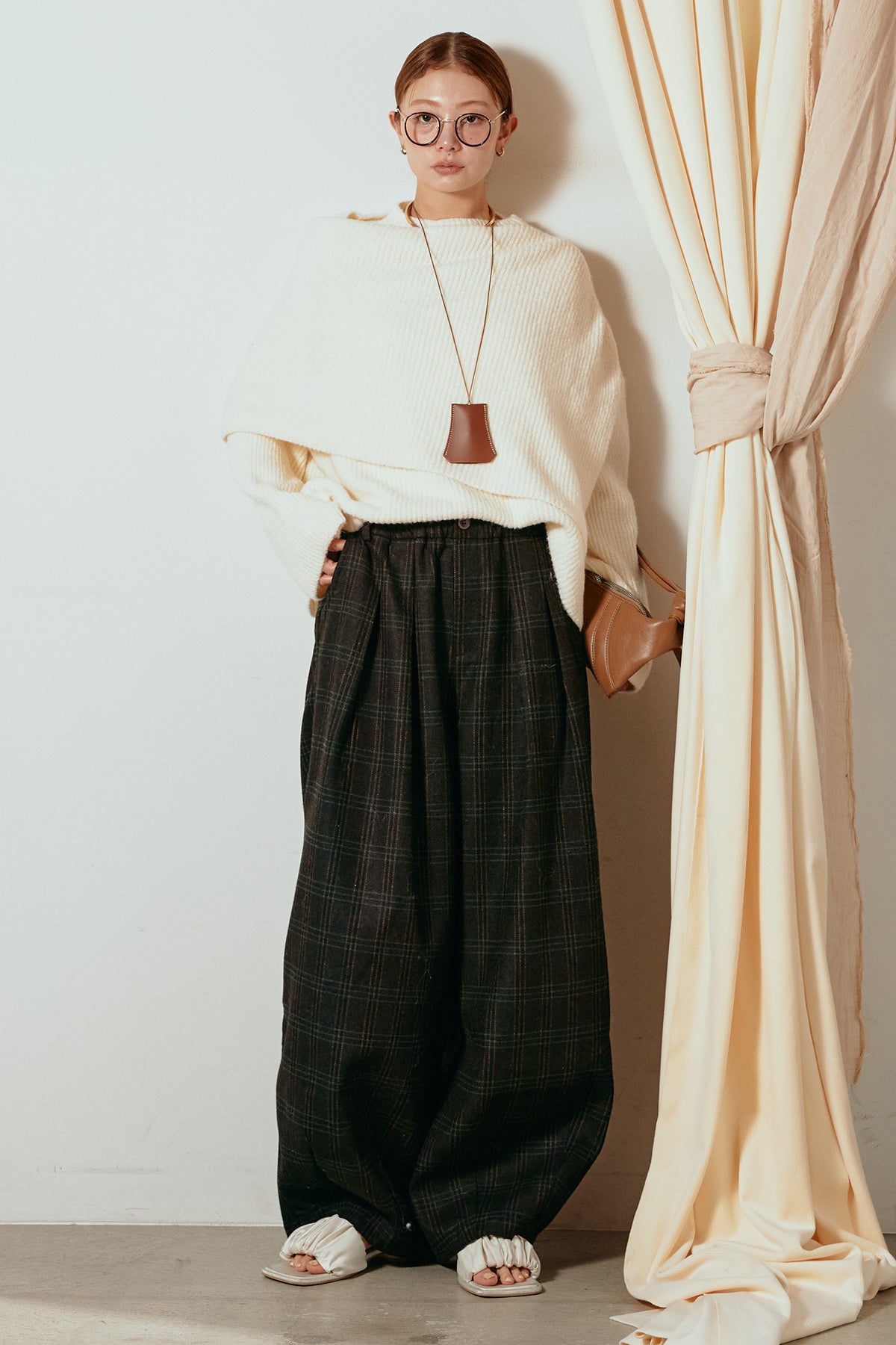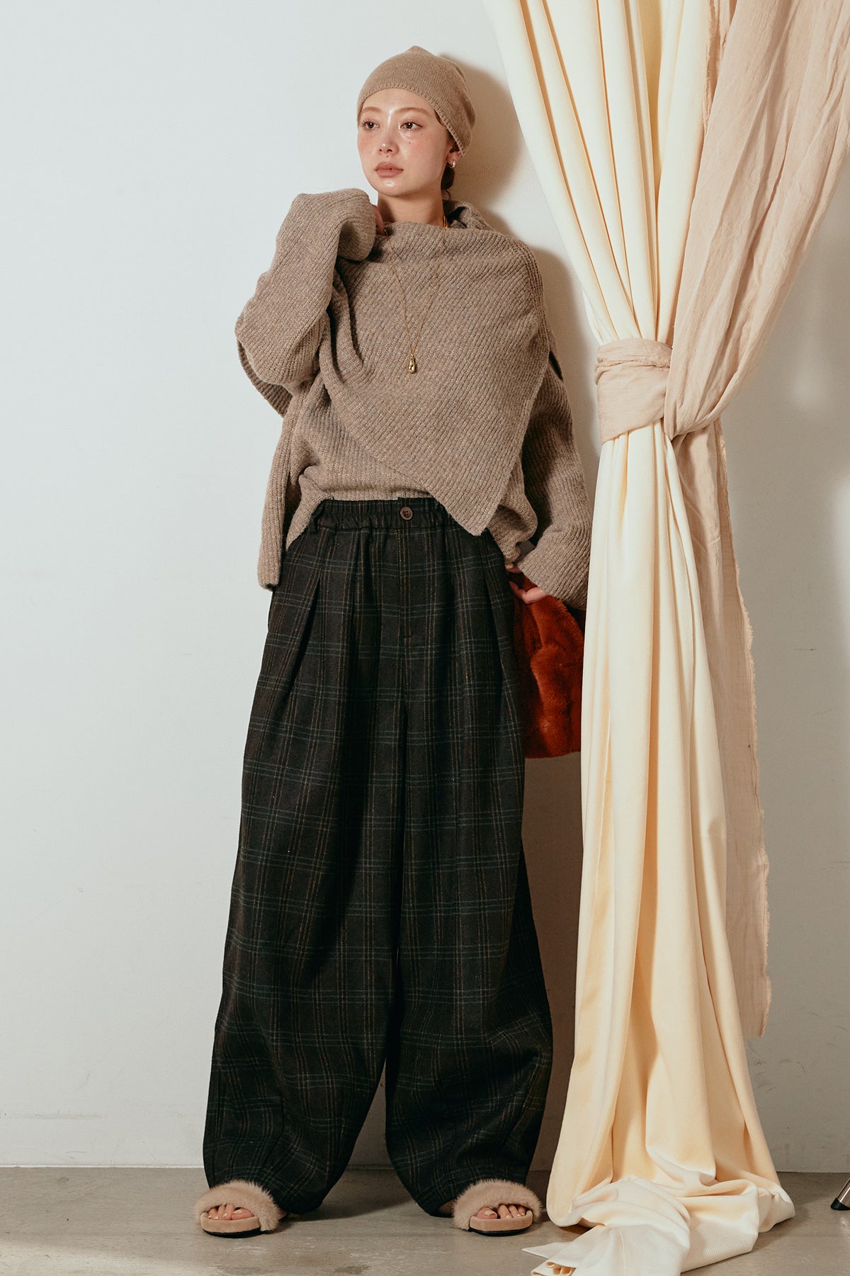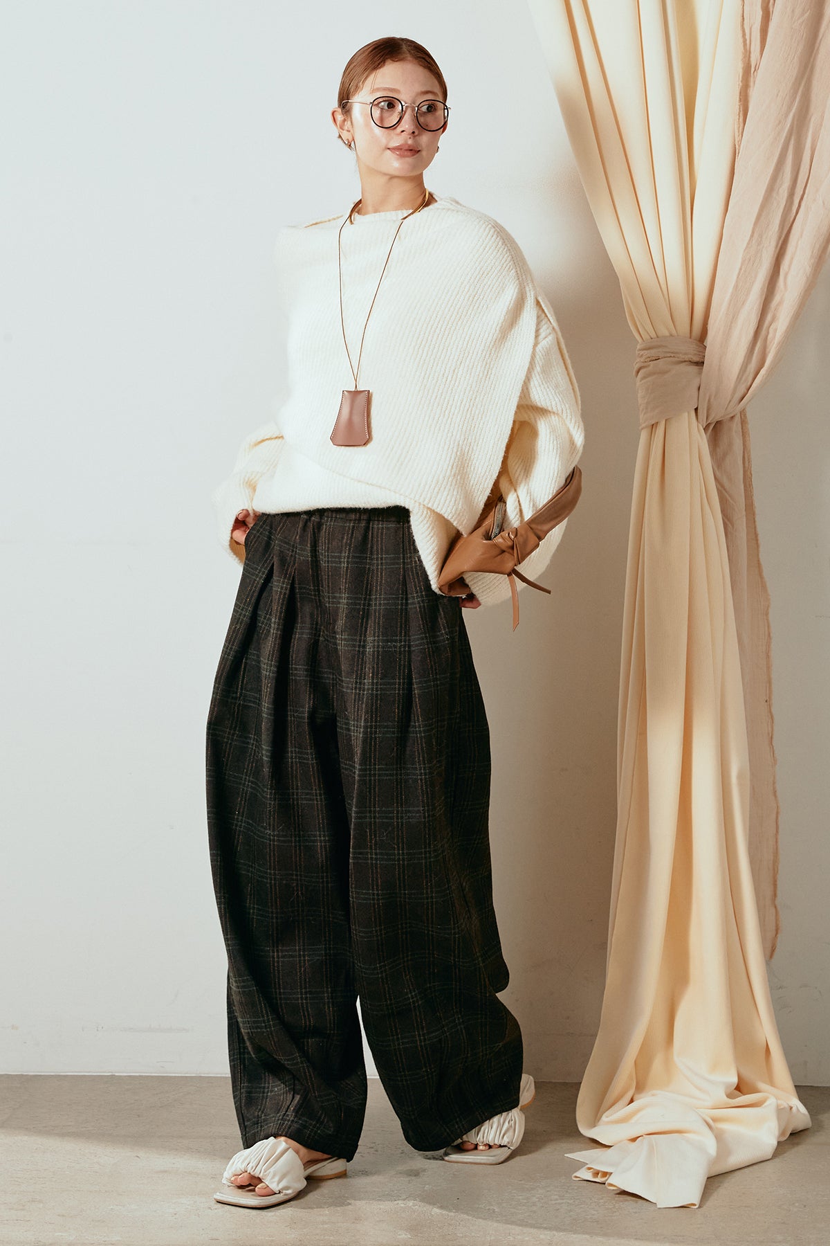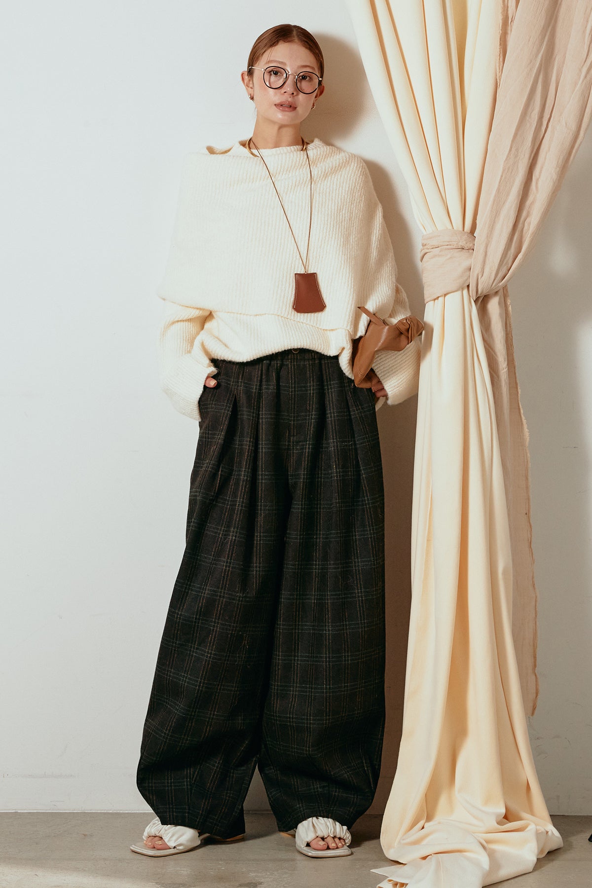 クラシックな雰囲気漂うタータンチェック柄タックパンツ。