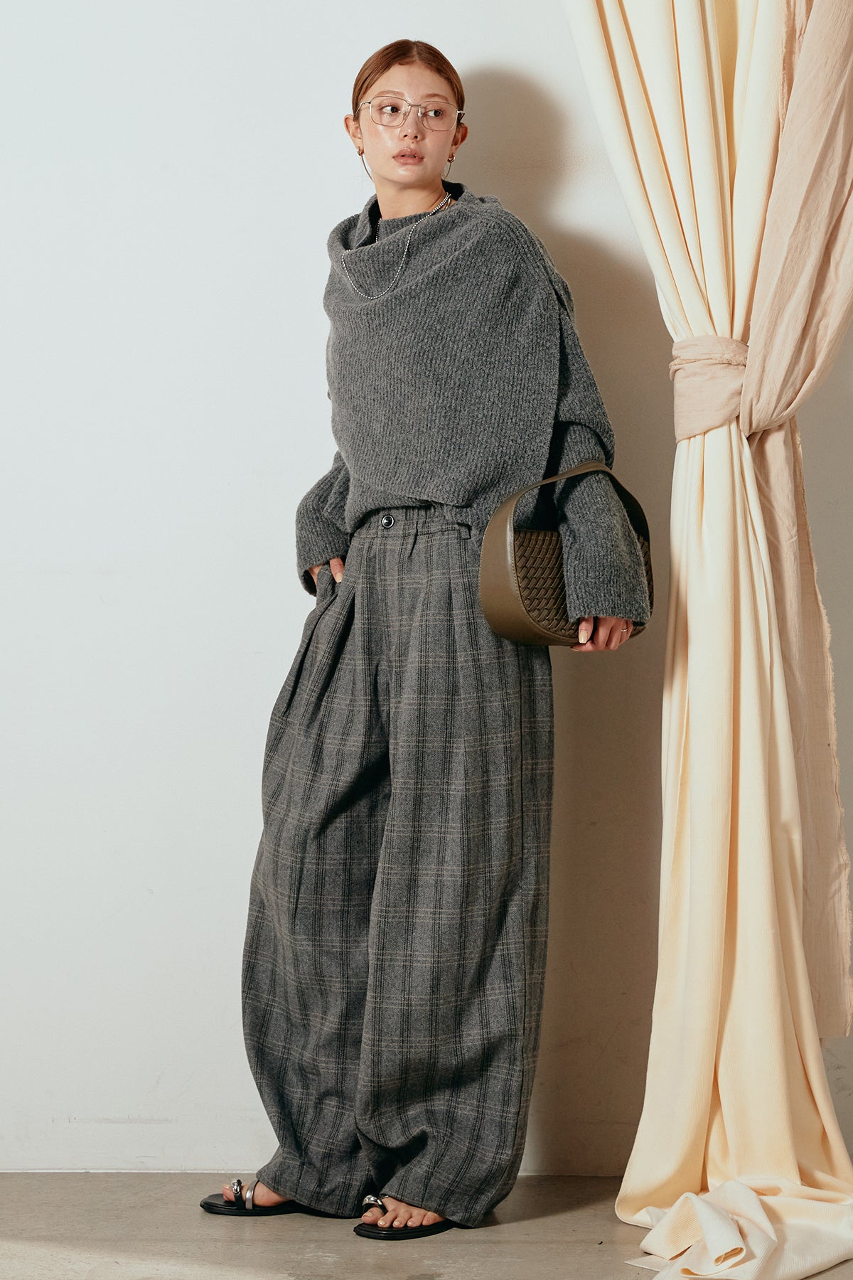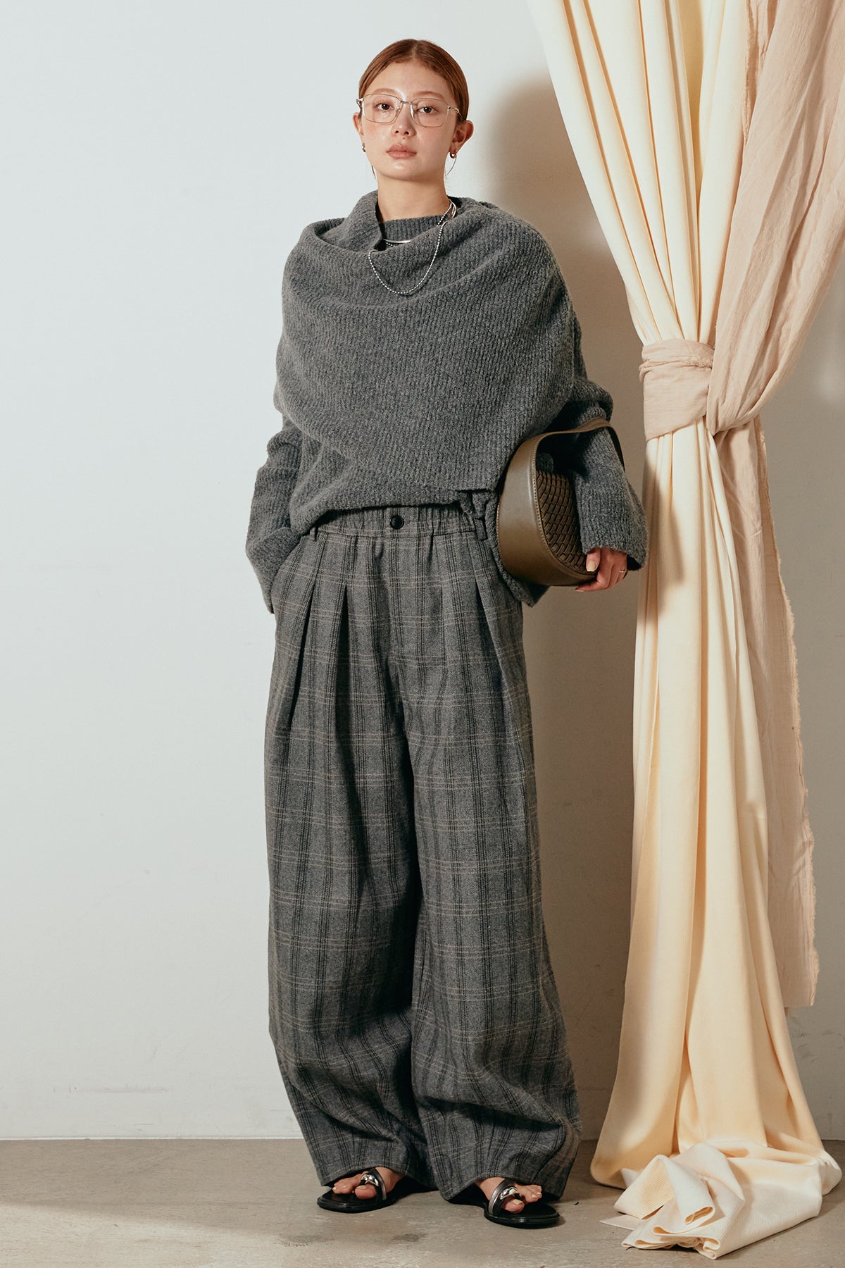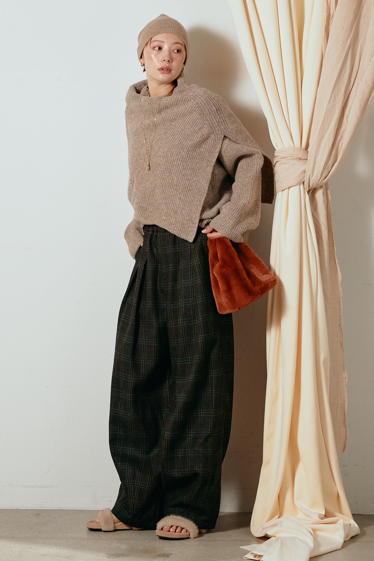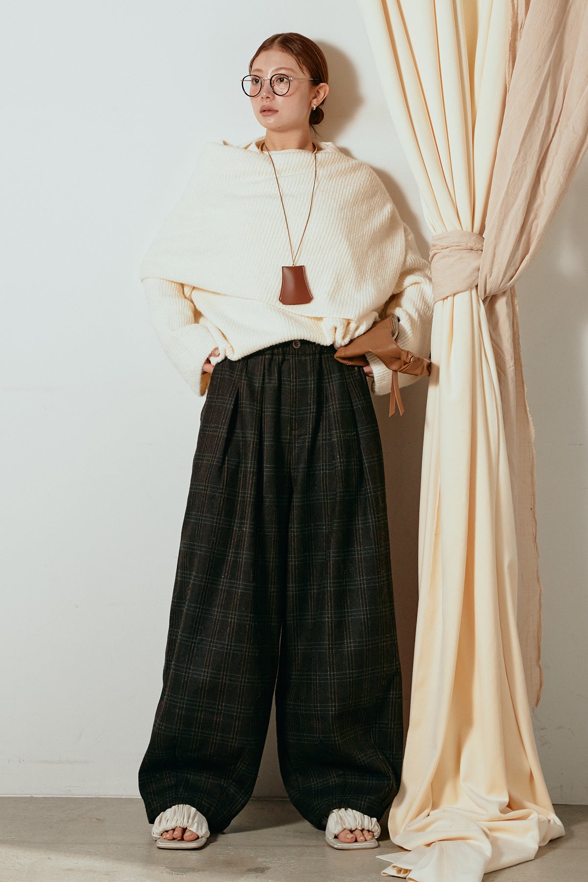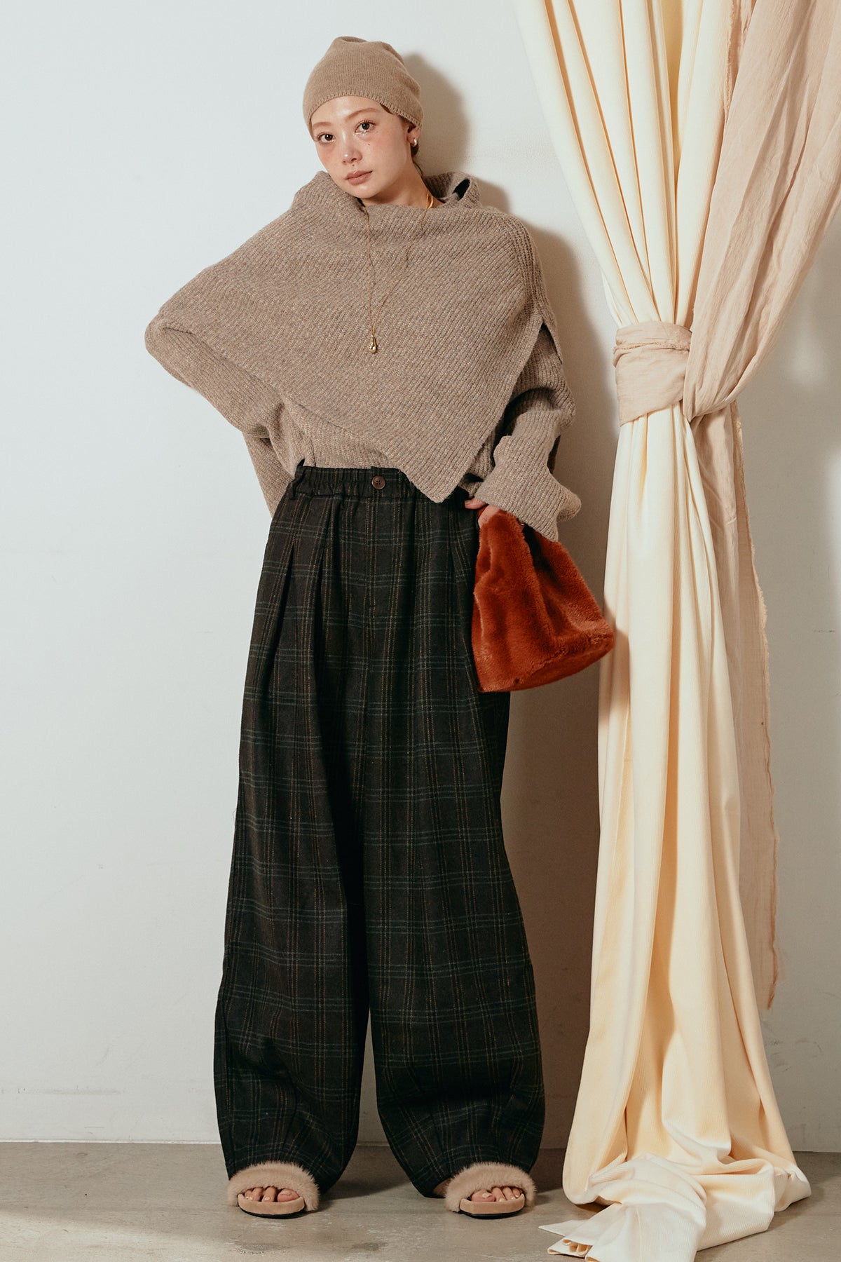 クラシックな雰囲気漂うタータンチェック柄タックパンツ。
