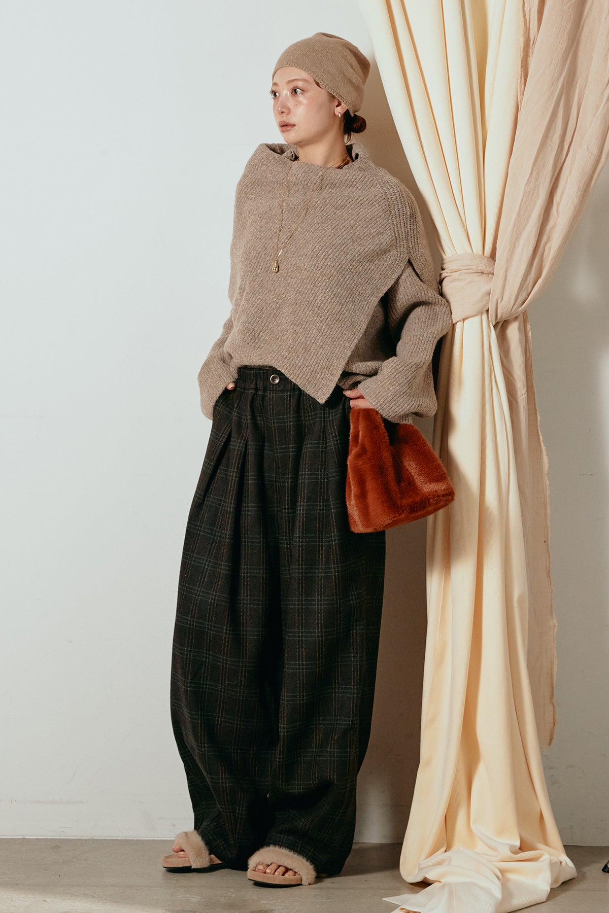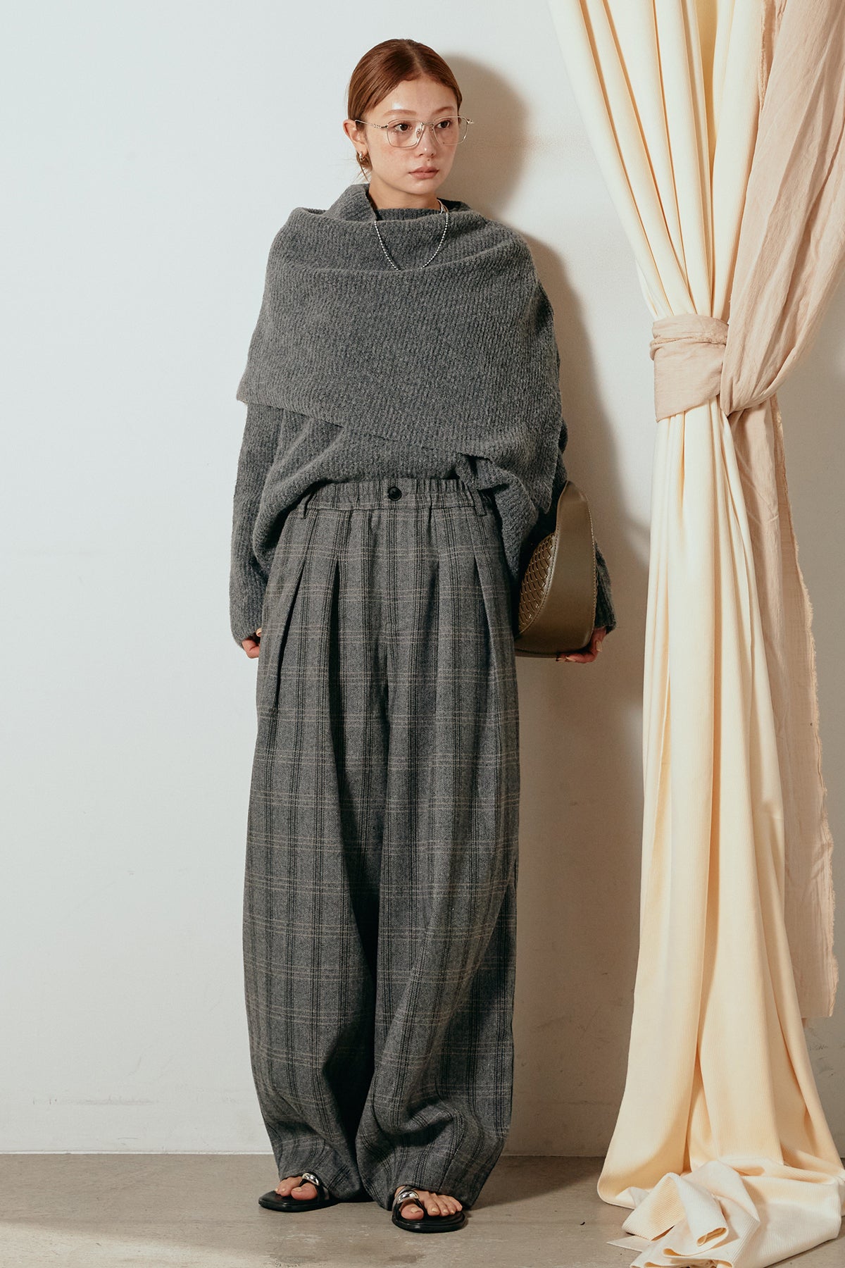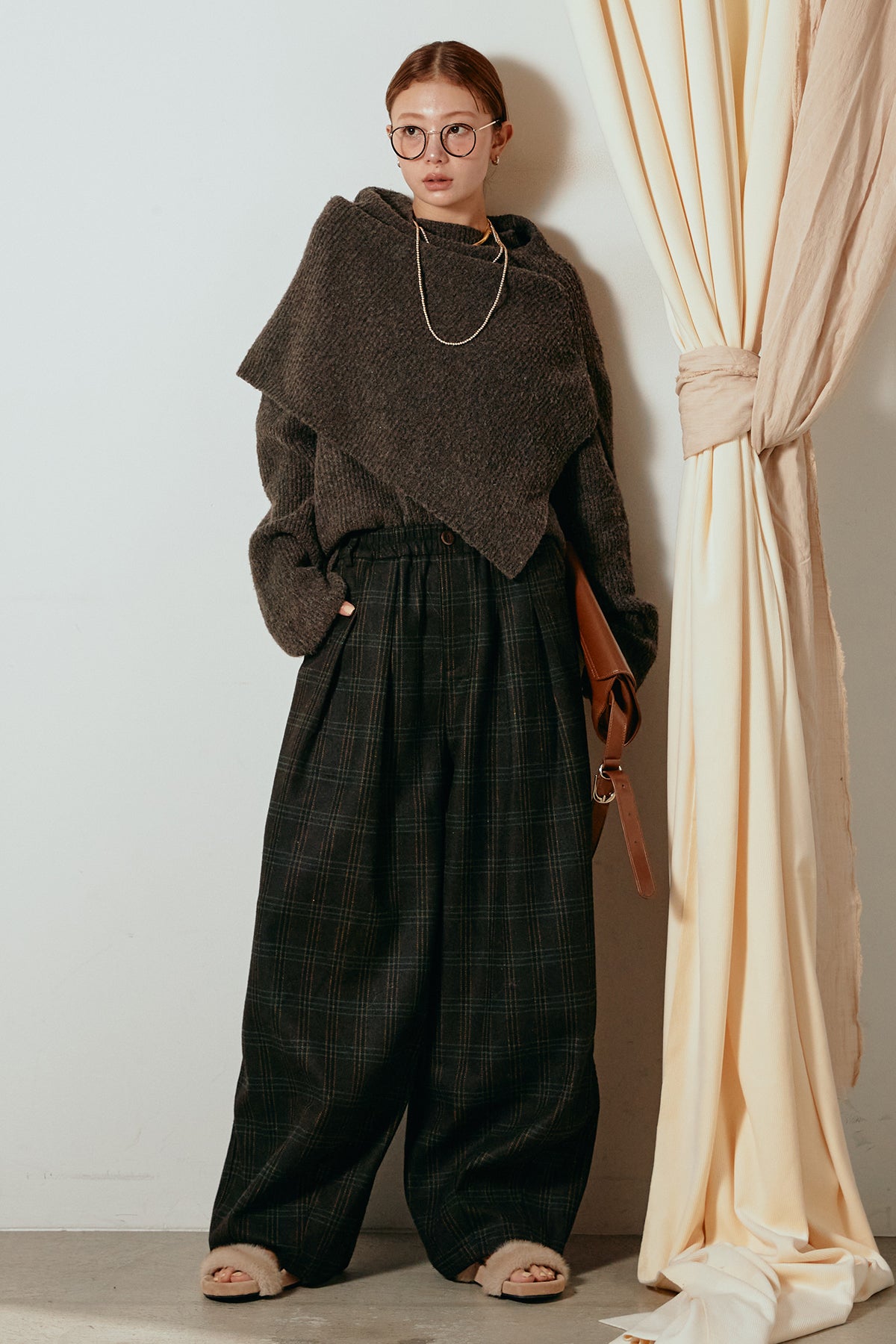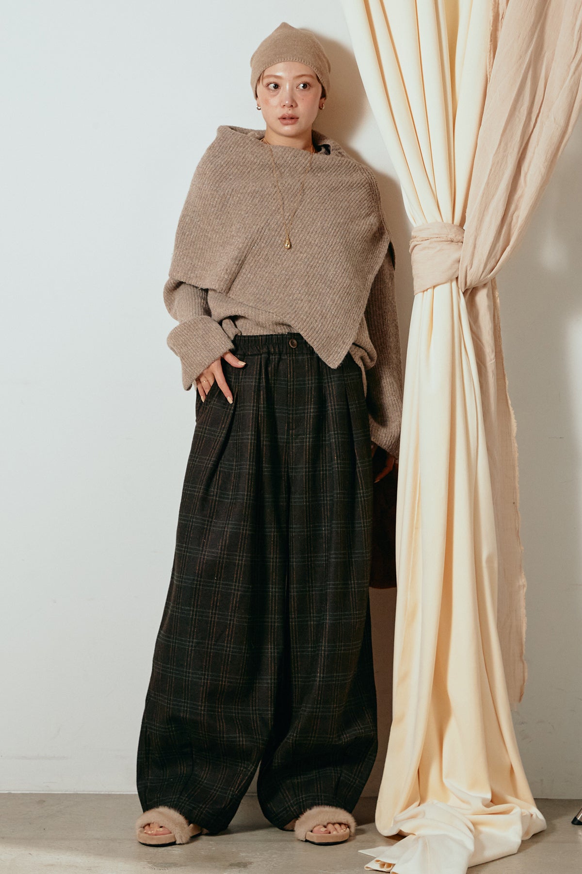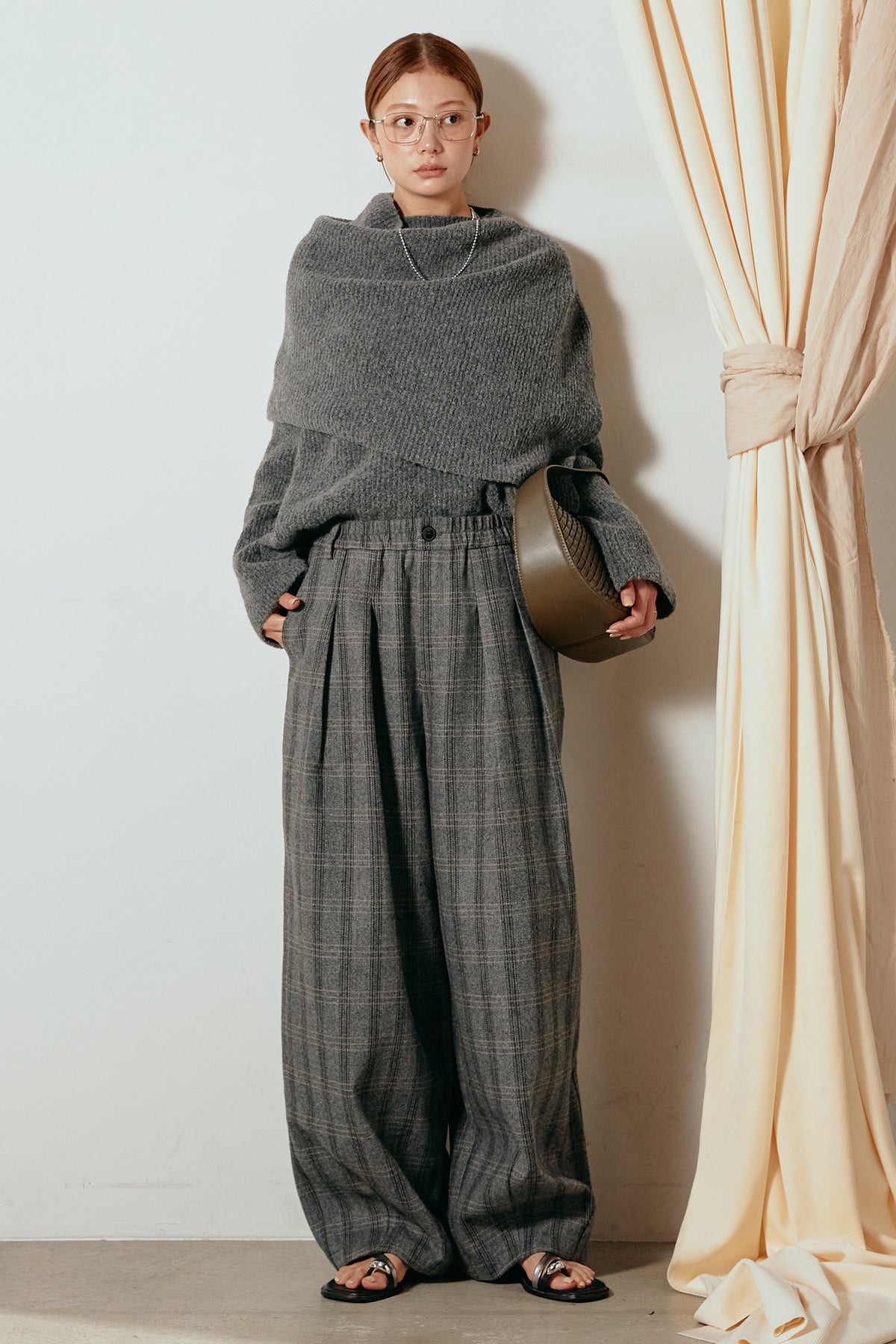 クラシックな雰囲気漂うタータンチェック柄タックパンツ。