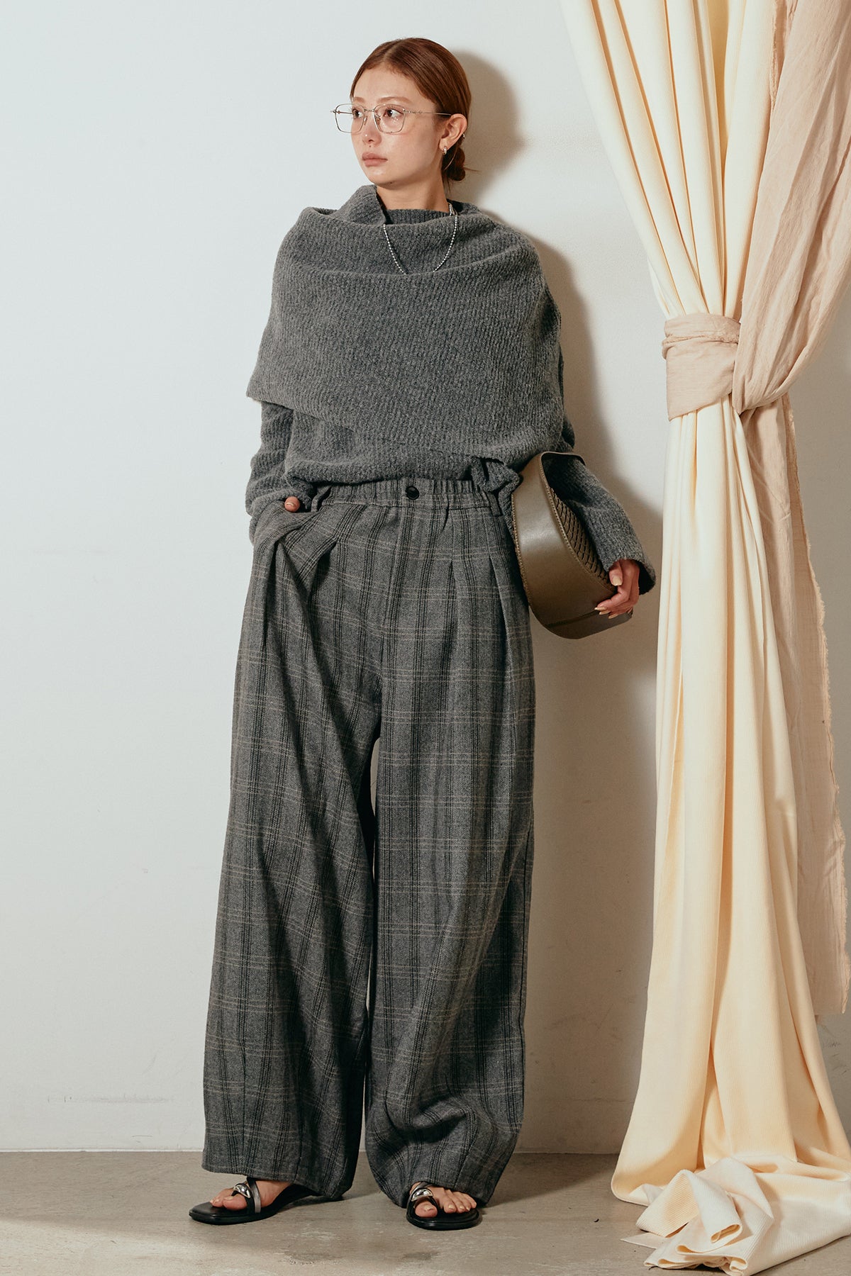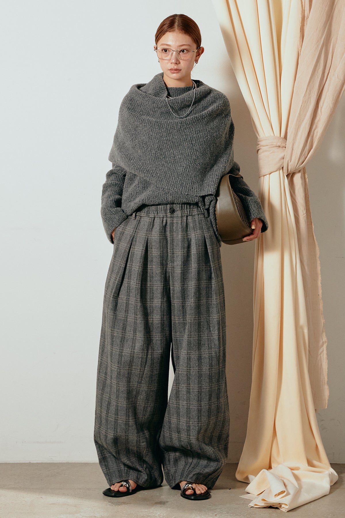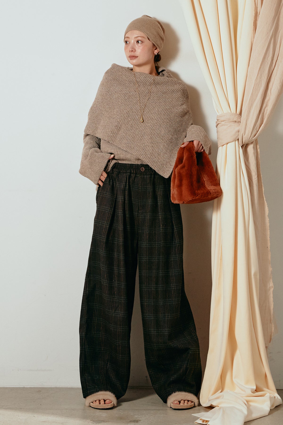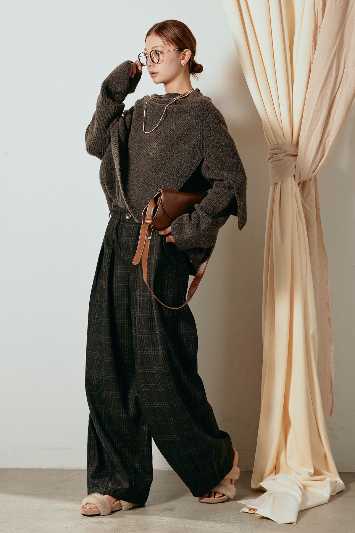 クラシックな雰囲気漂うタータンチェック柄タックパンツ。