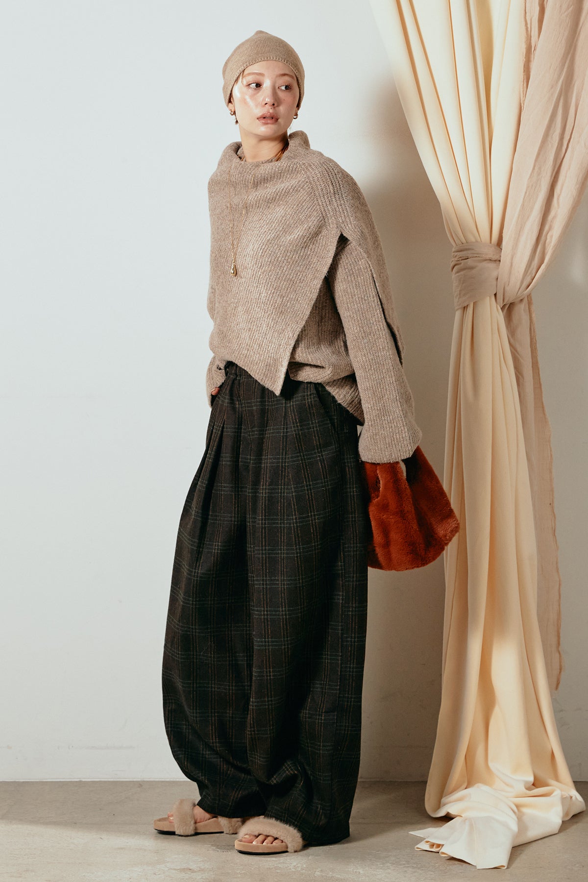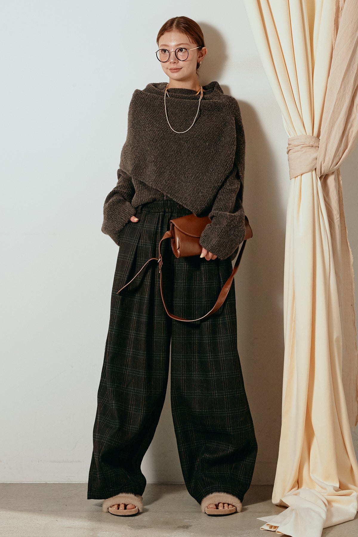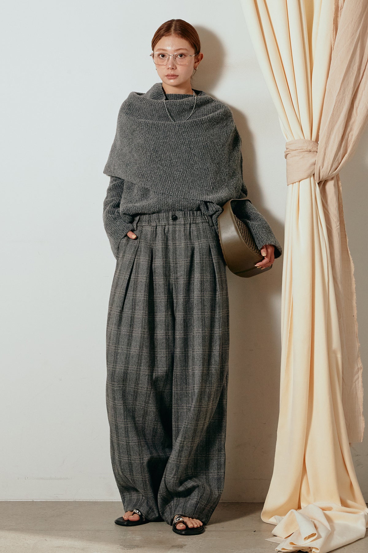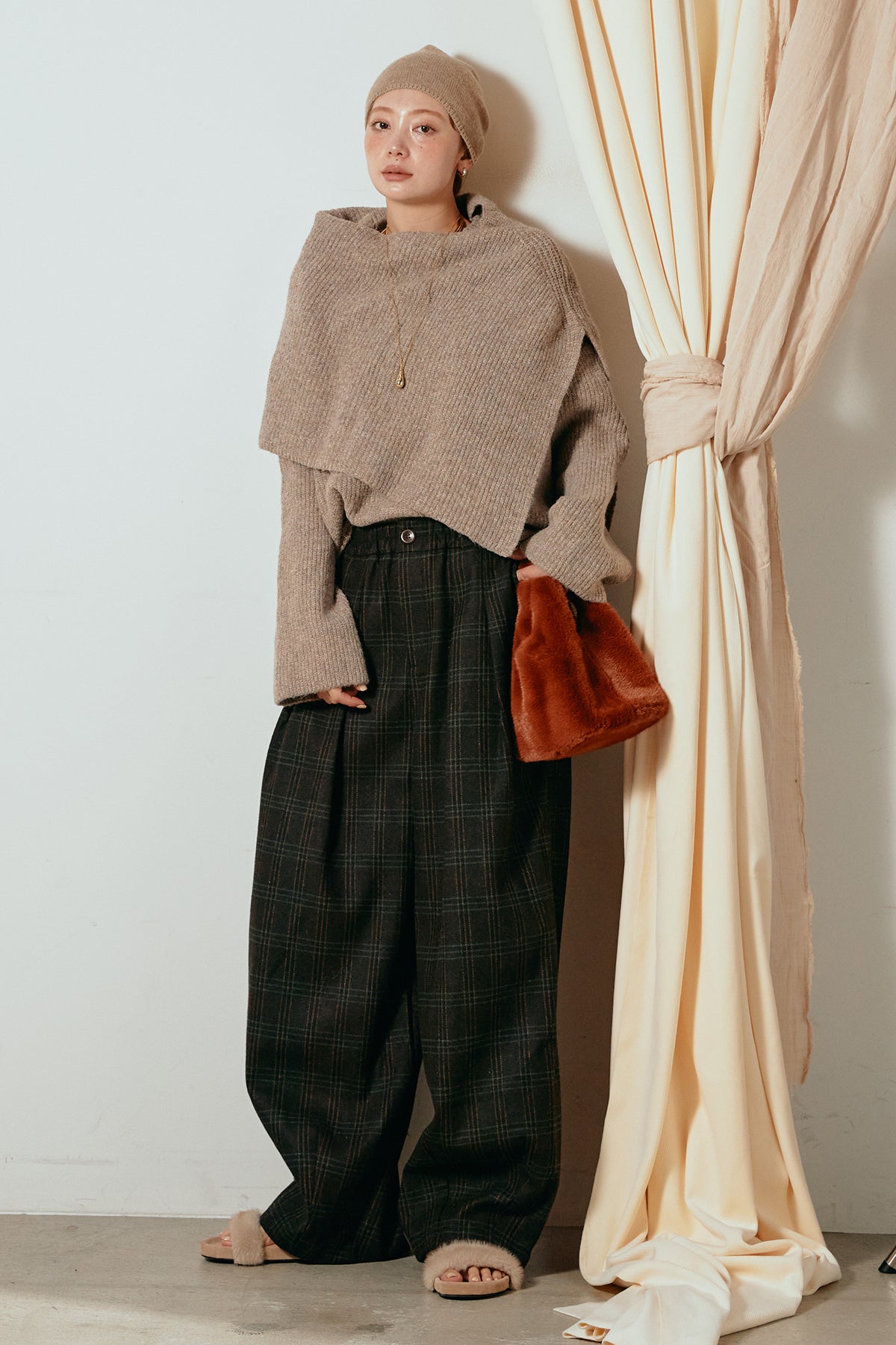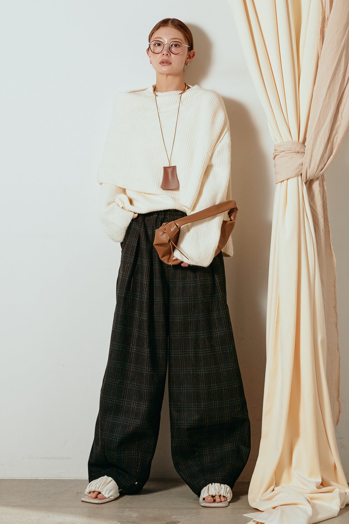クラシックな雰囲気漂うタータンチェック柄タックパンツ。