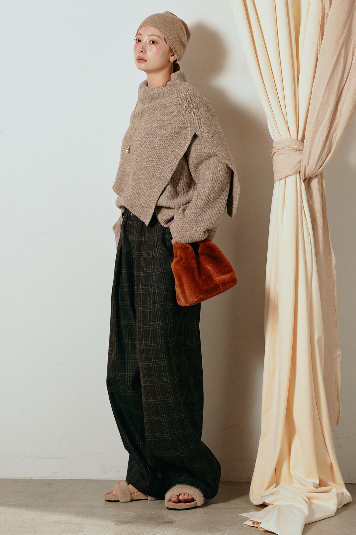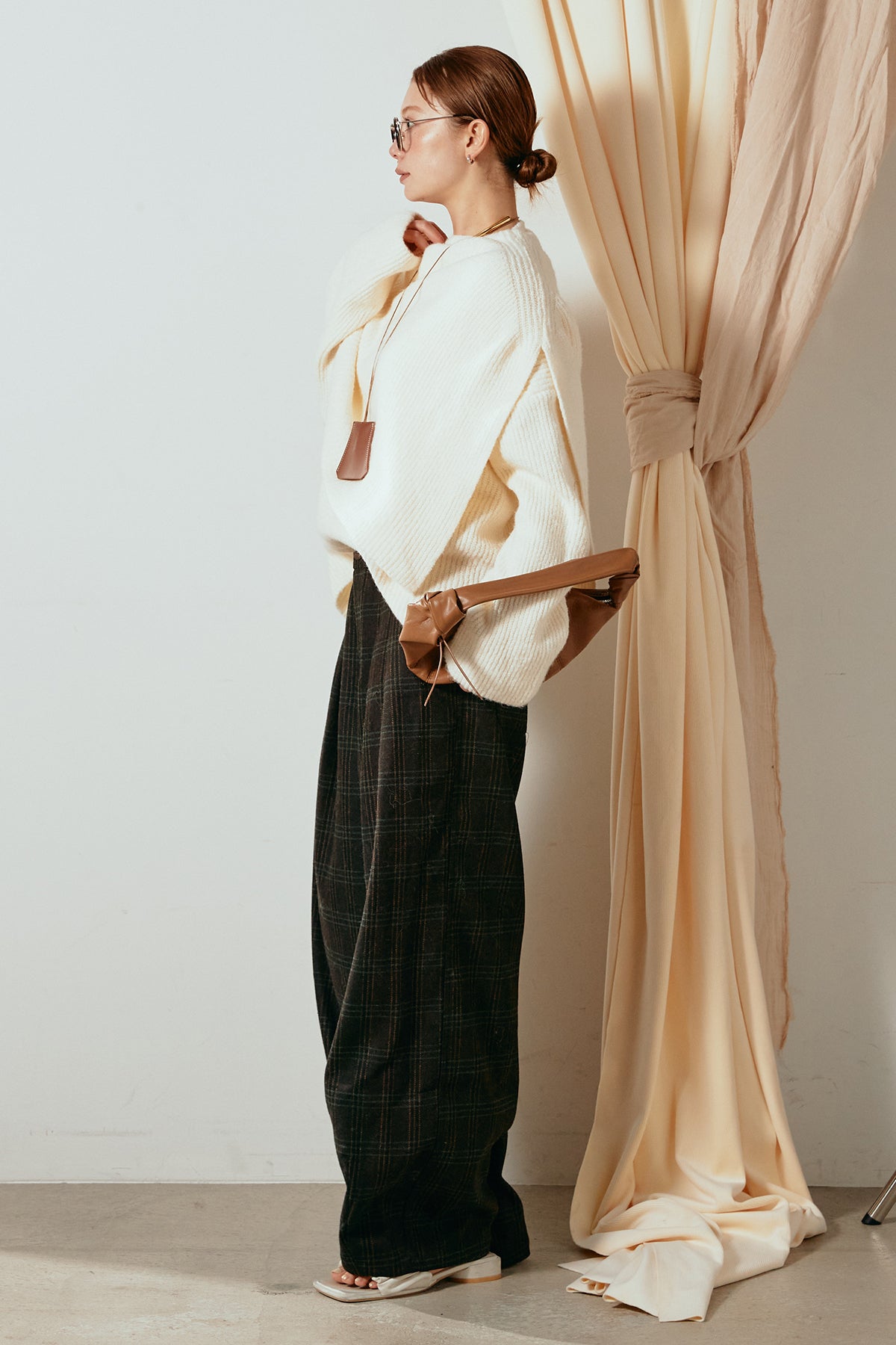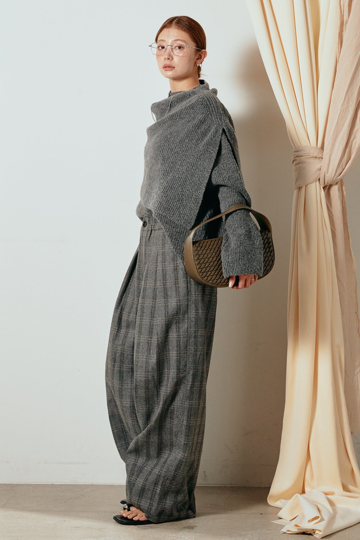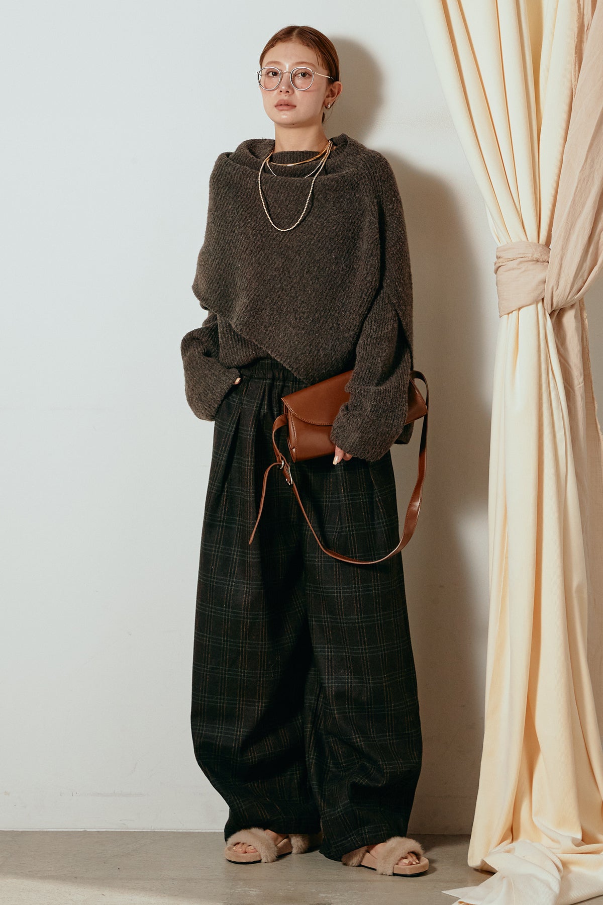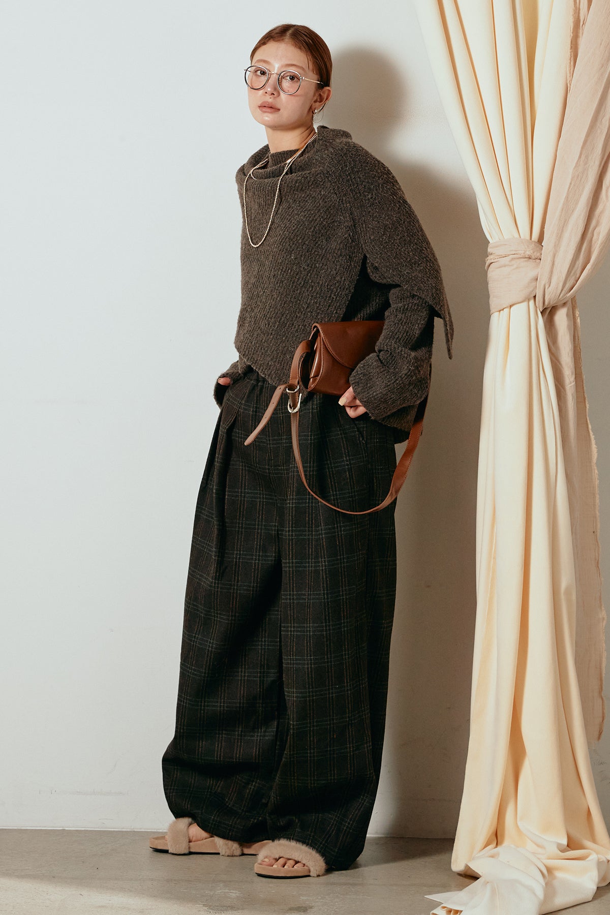 クラシックな雰囲気漂うタータンチェック柄タックパンツ。