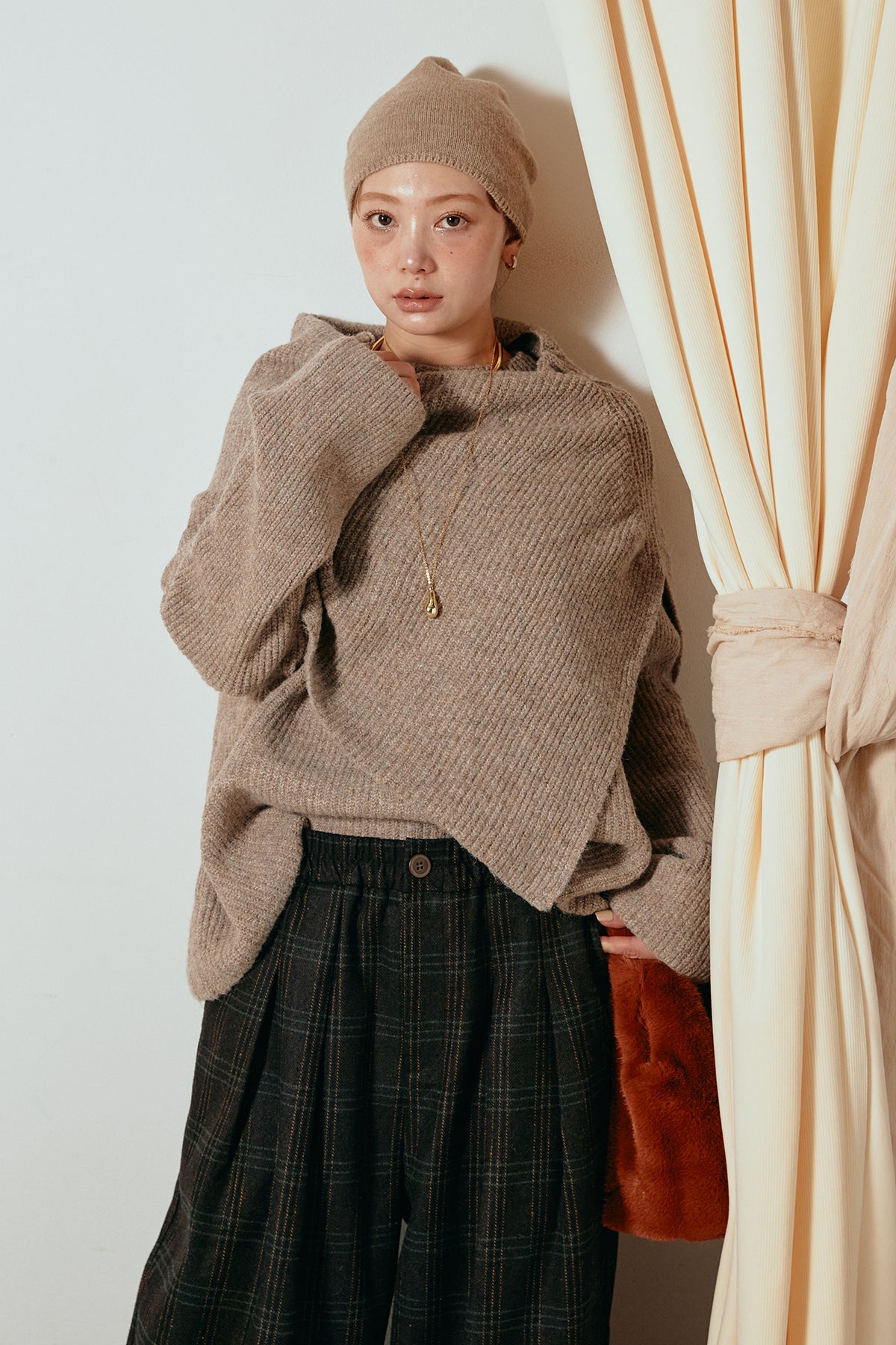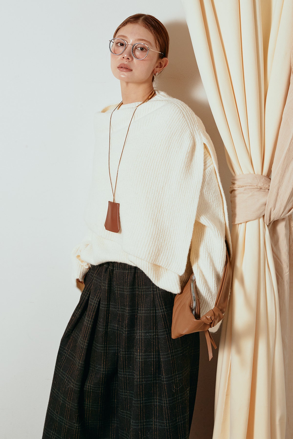 シンプルなボトムを合わせるだけでサマになる主役級ニットです。