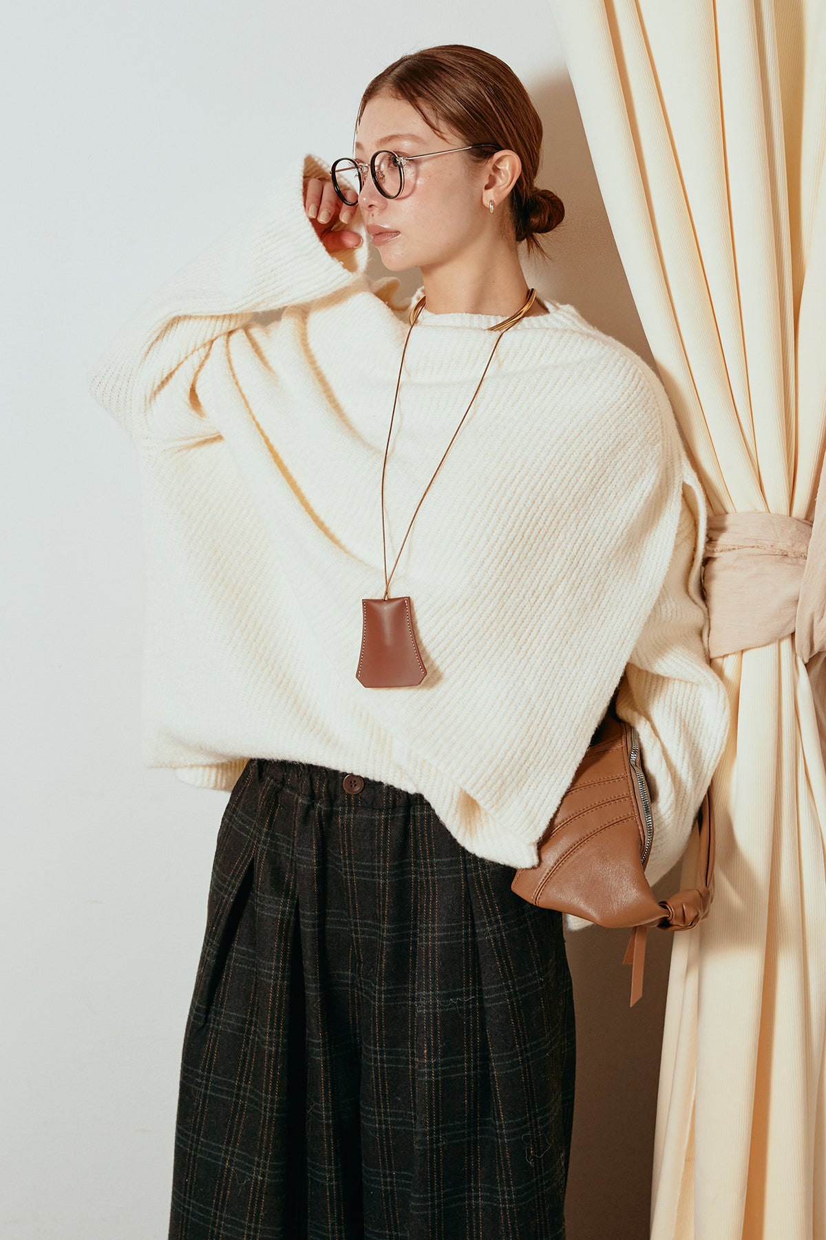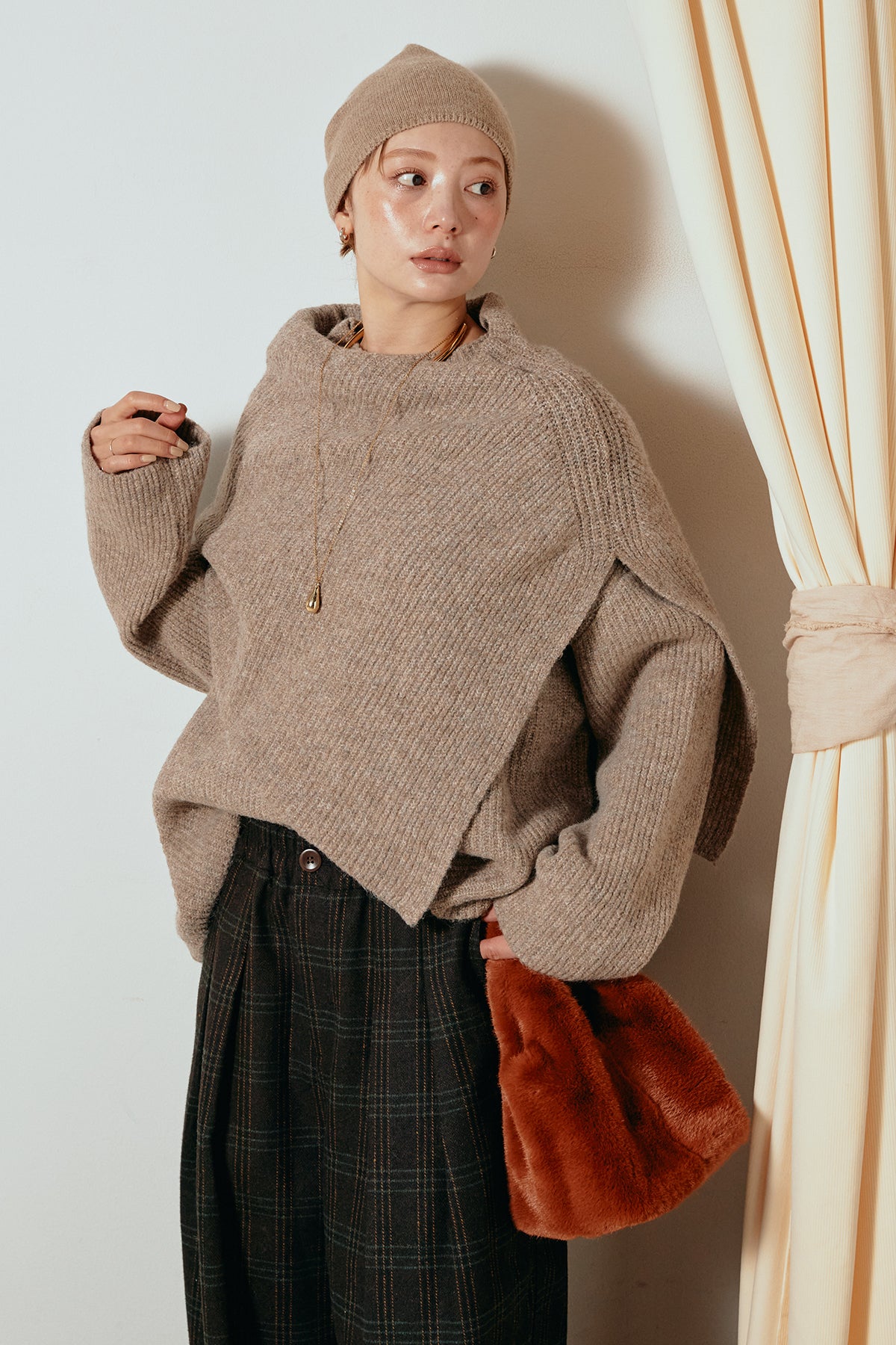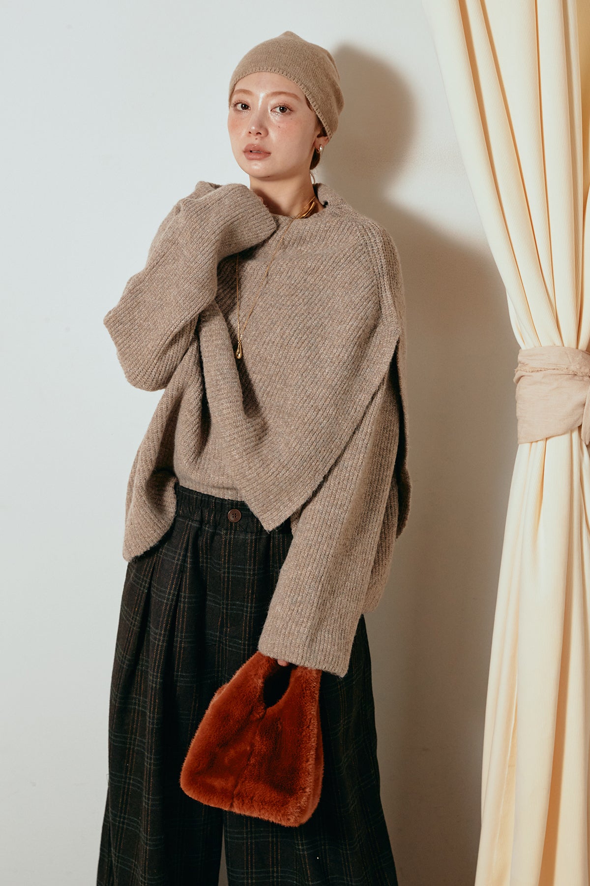 程よくボリュームのあるスリーブと柔らかなリブ編みが、上品で洗練された雰囲気を演出します。