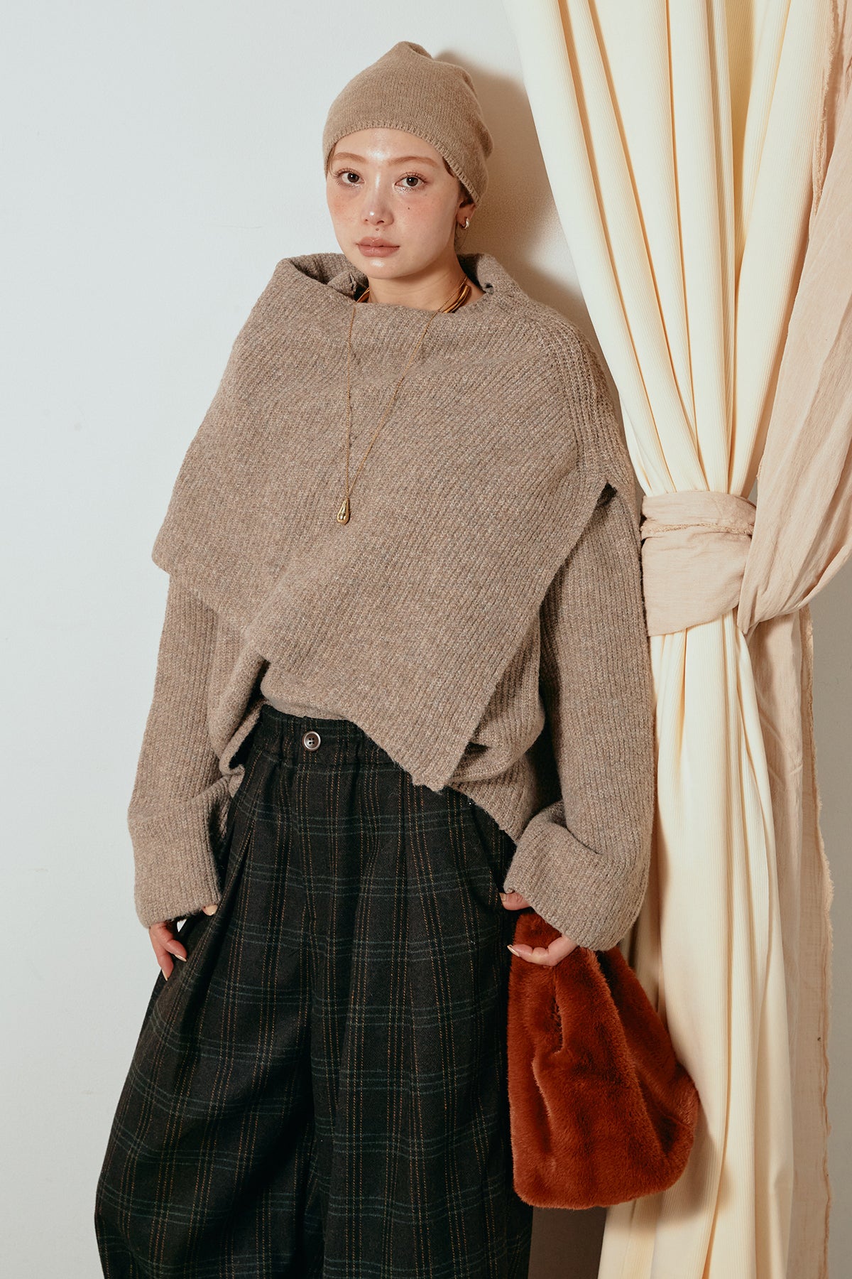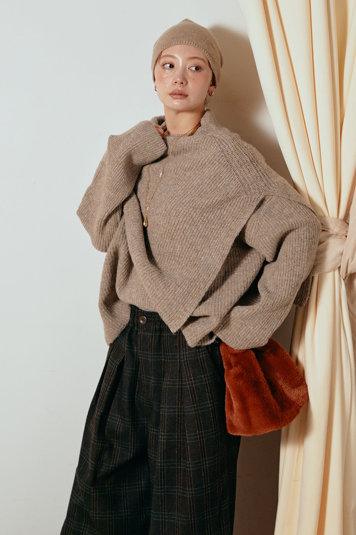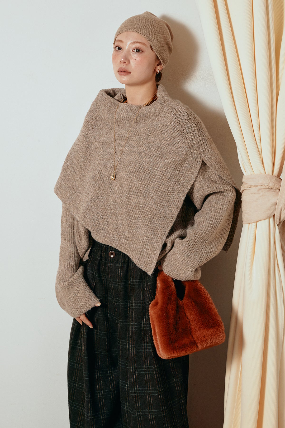 程よくボリュームのあるスリーブと柔らかなリブ編みが、上品で洗練された雰囲気を演出します。